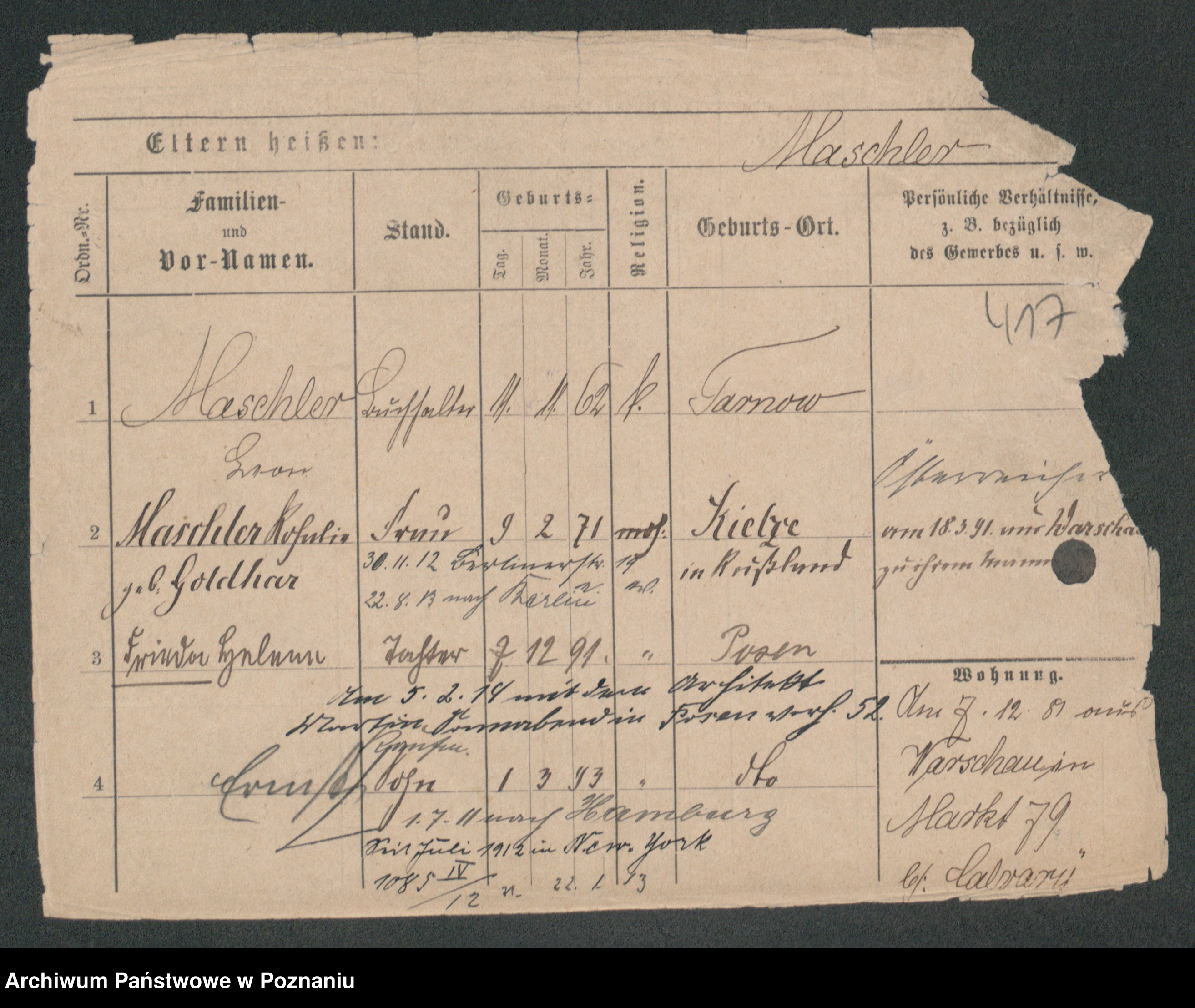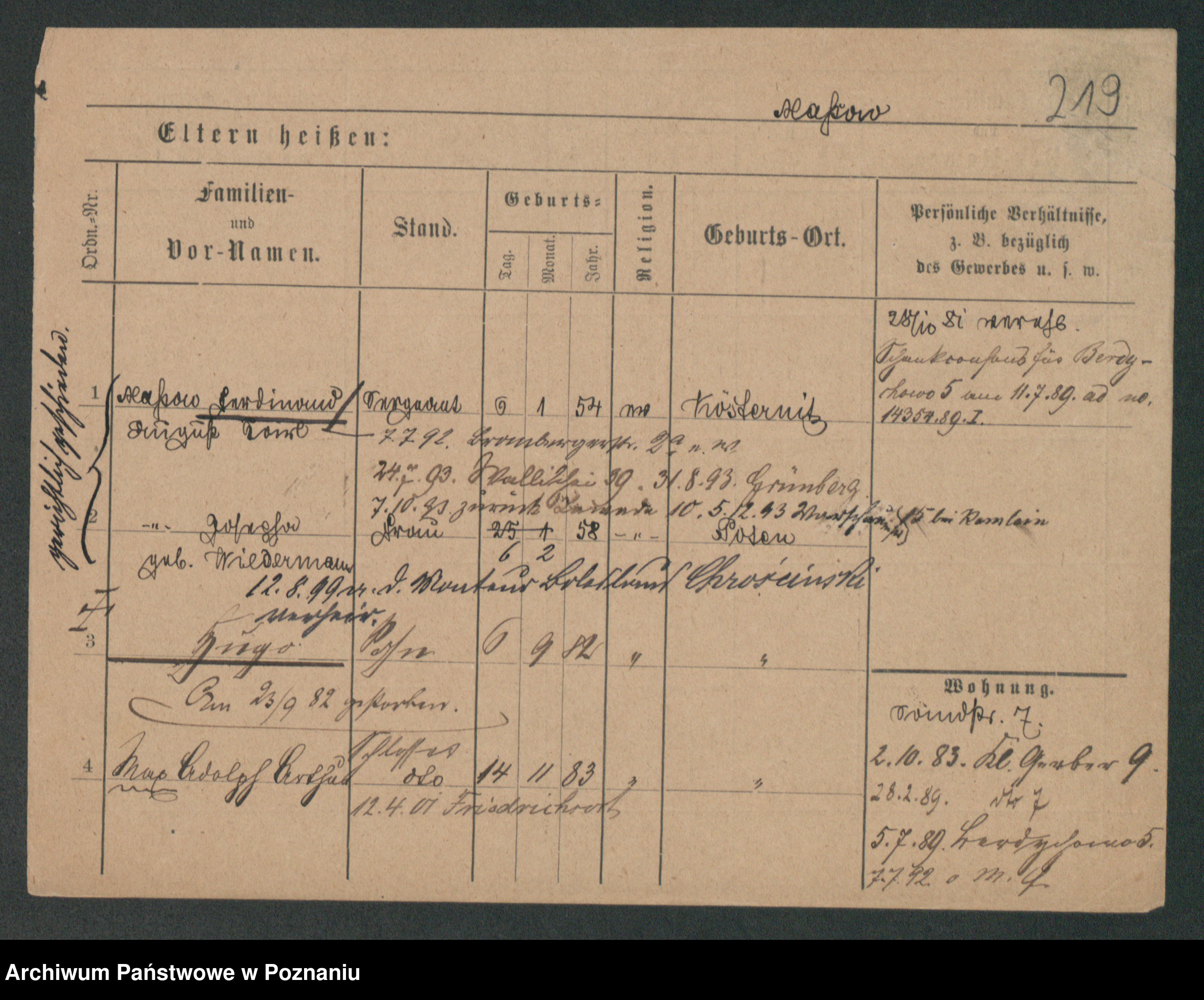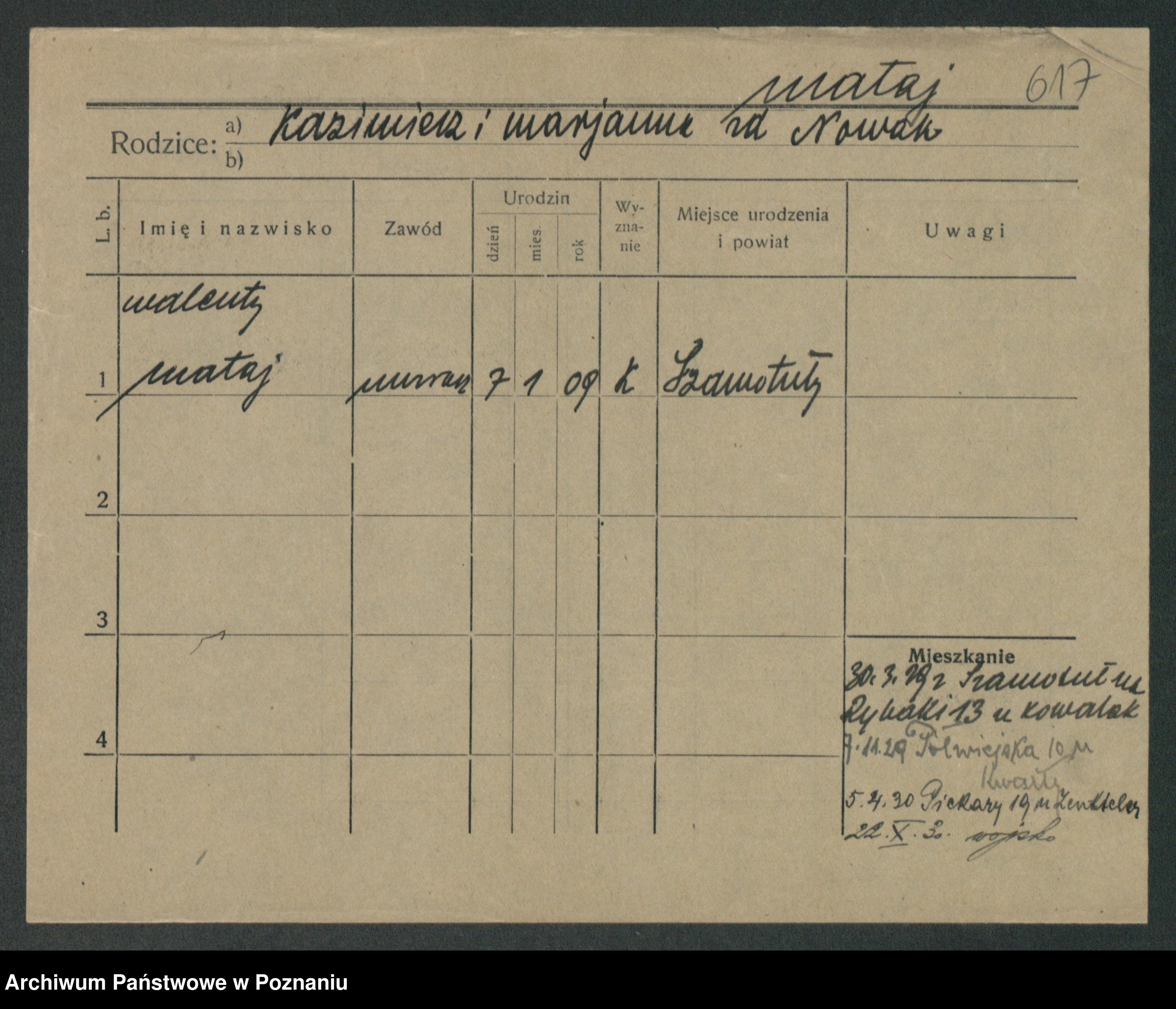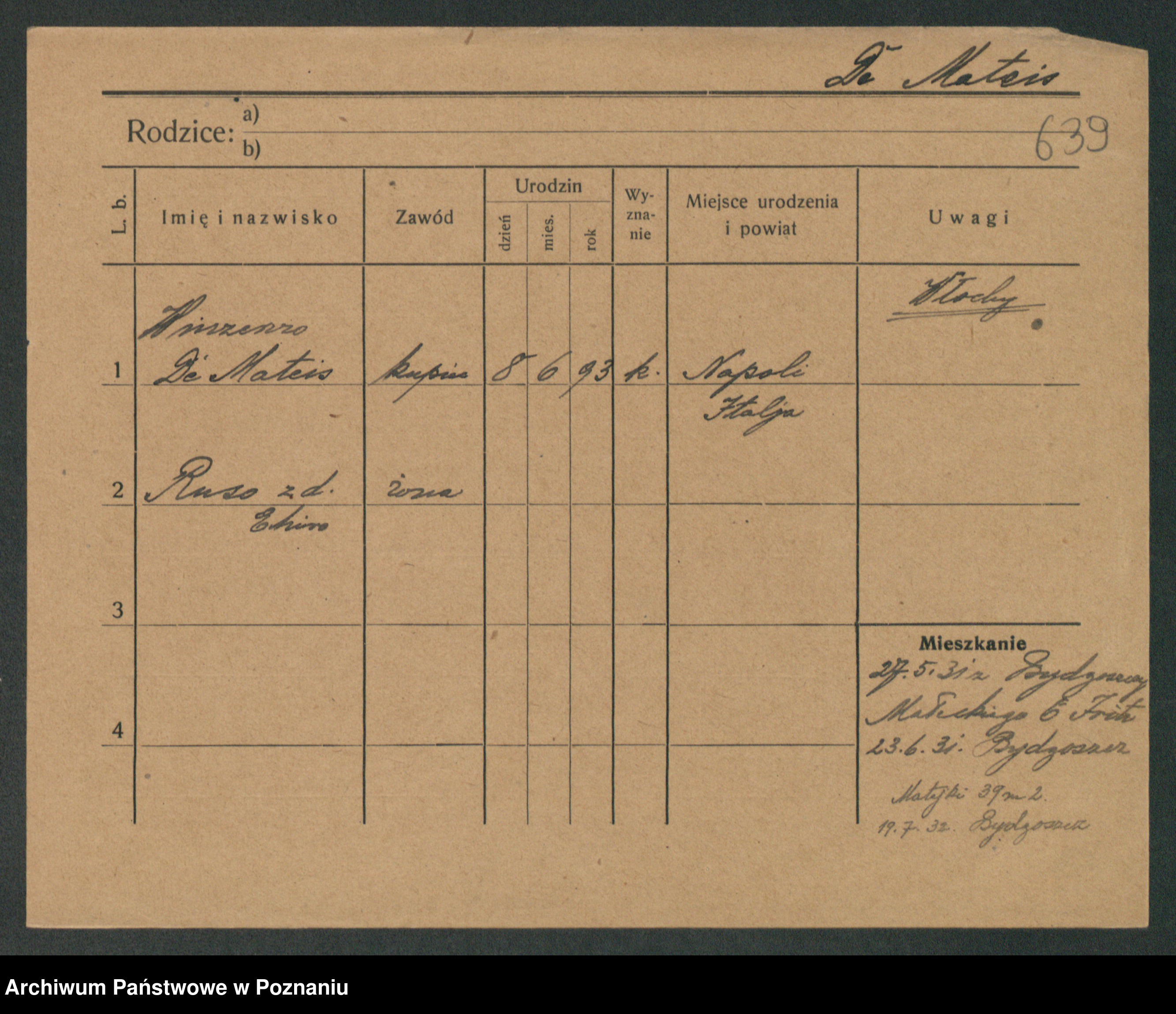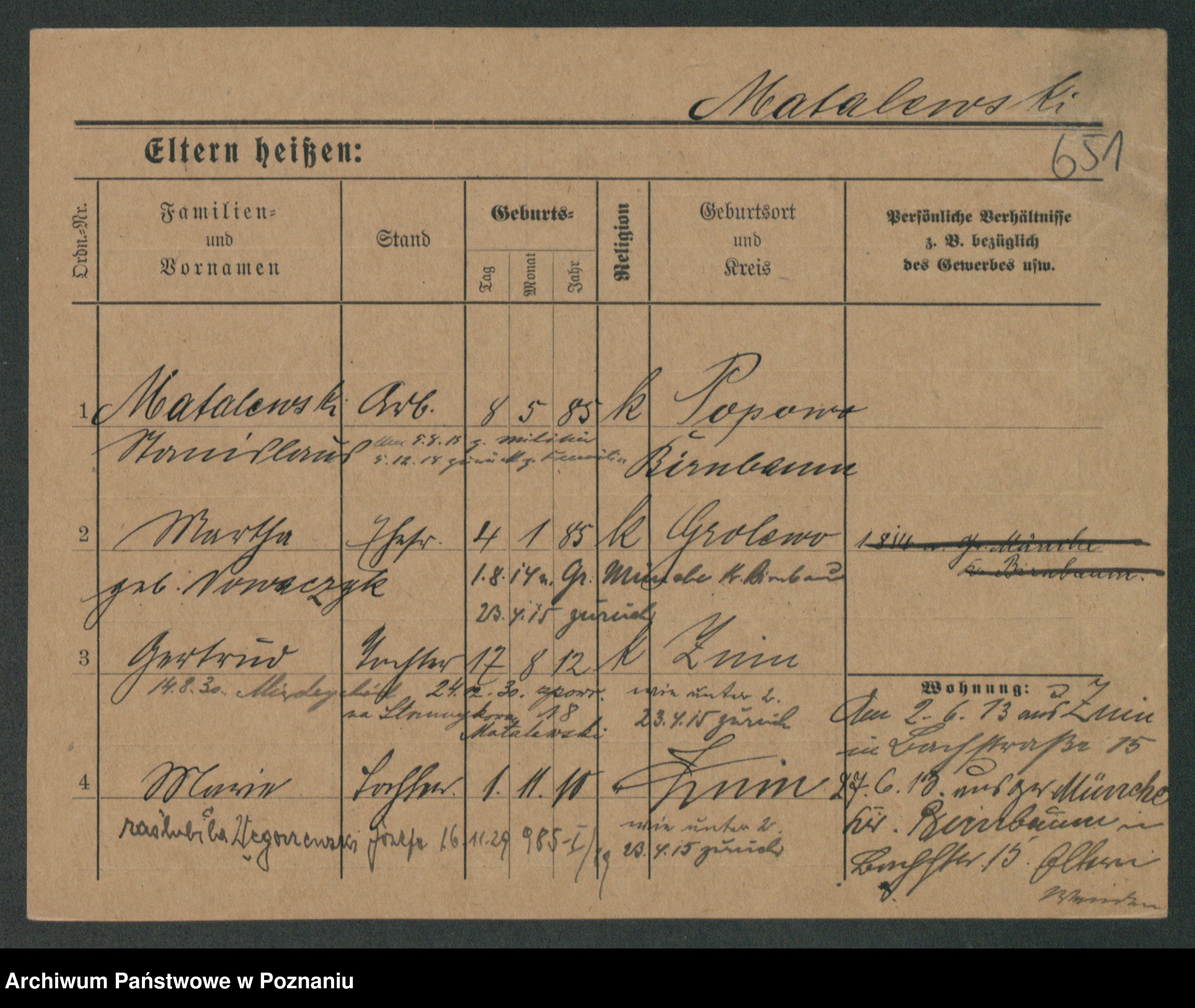Podgląd karty osobowej dostępny jest po kliknięciu na nazwisko lub ikonkę karty. Można dokonywać powiększenia (ikony na górze) lub przechodzić między kolejnymi skanami (strzałki po bokach).