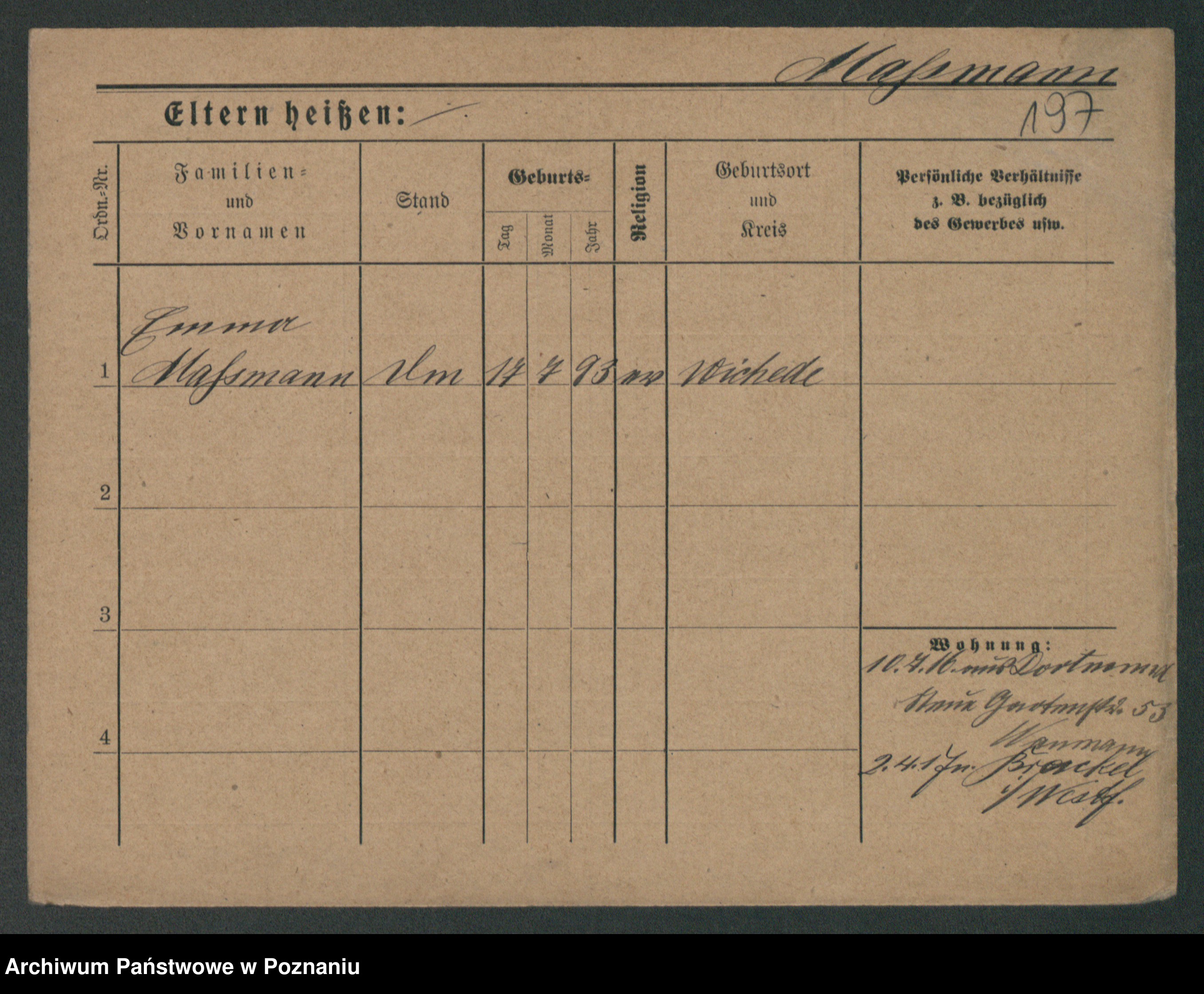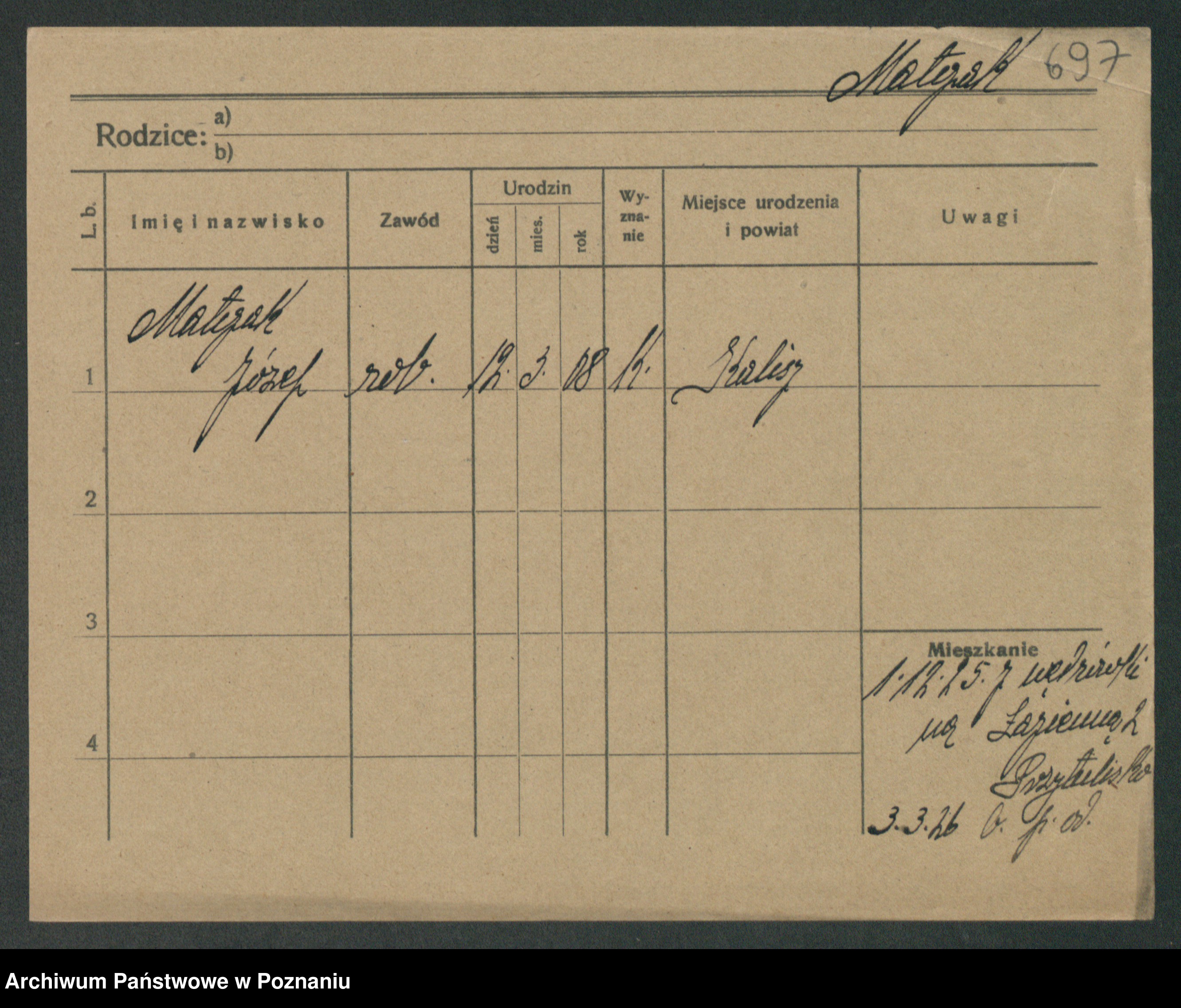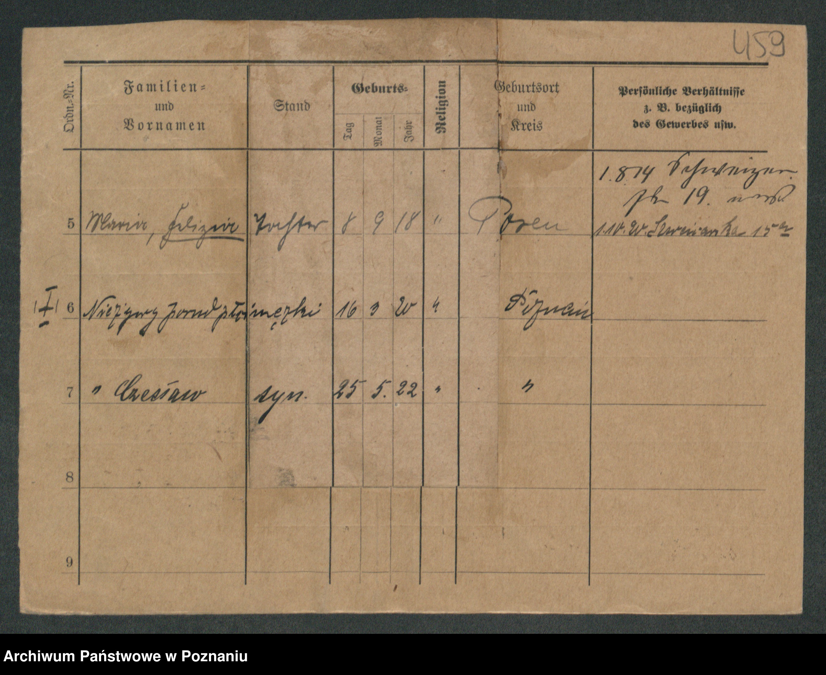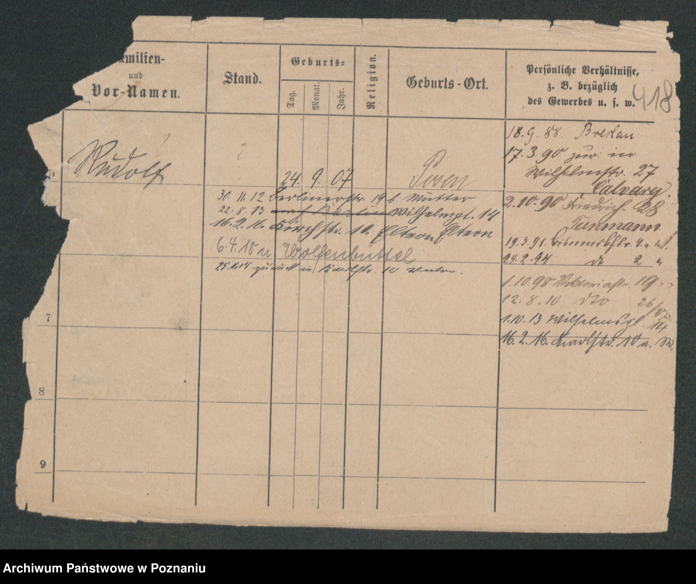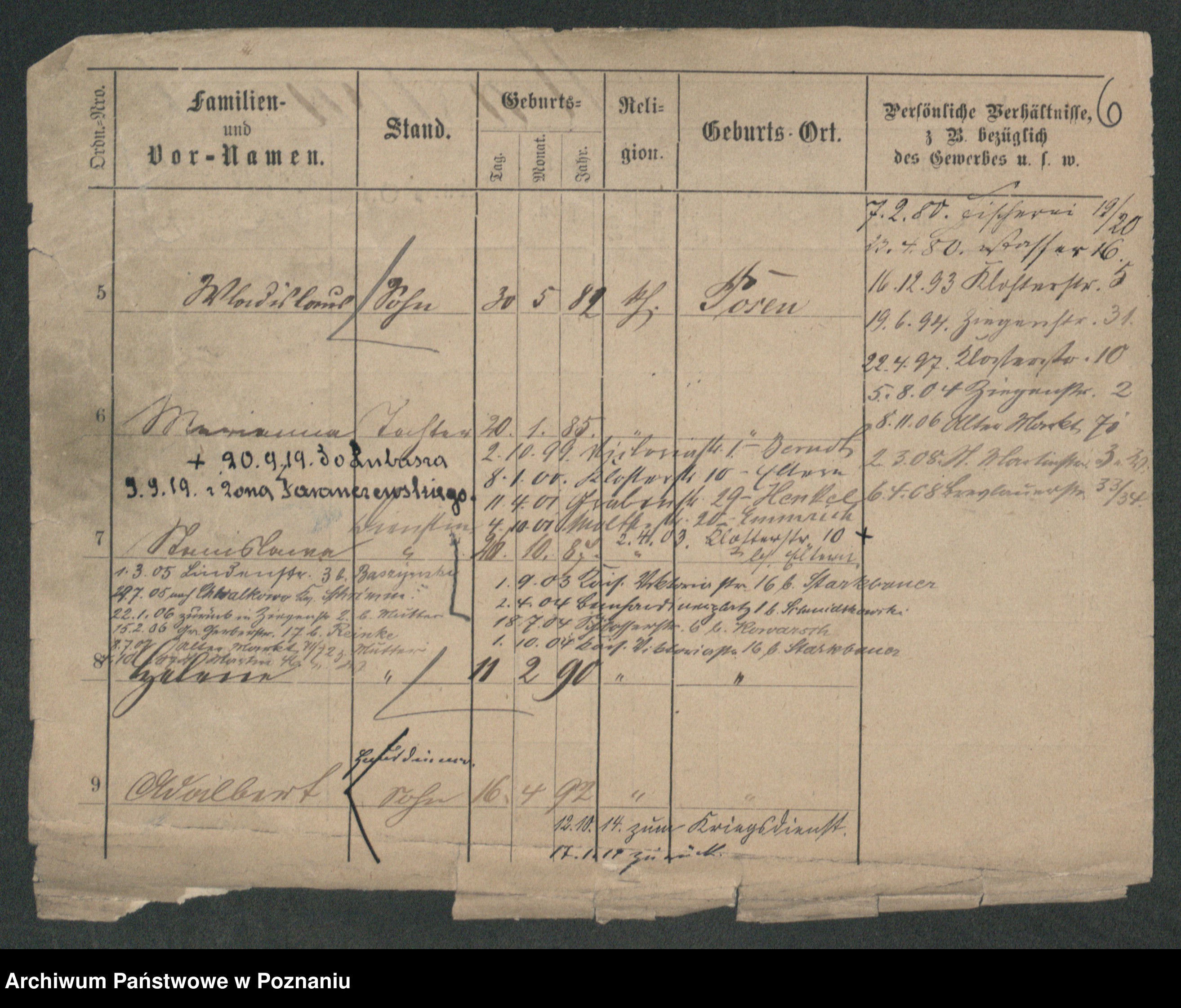Podgląd karty osobowej dostępny jest po kliknięciu na nazwisko lub ikonkę karty. Można dokonywać powiększenia (ikony na górze) lub przechodzić między kolejnymi skanami (strzałki po bokach).