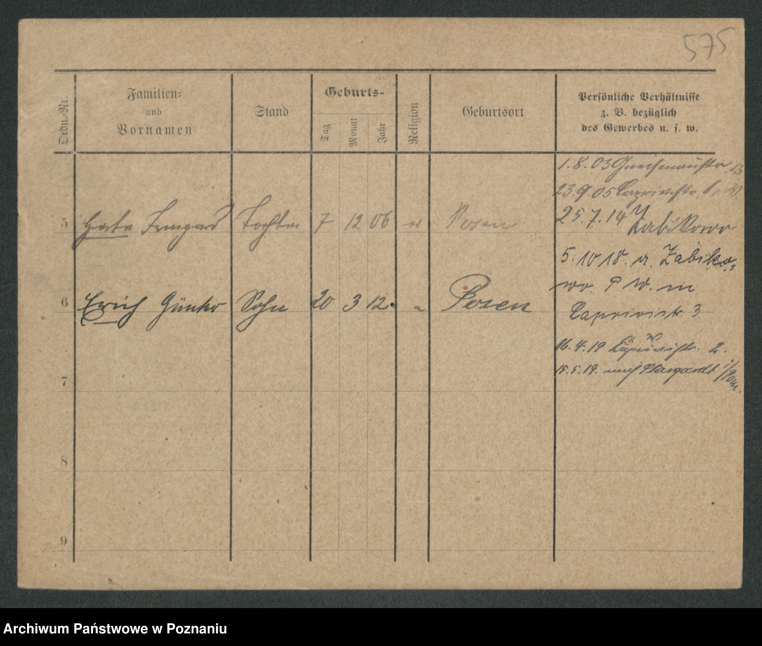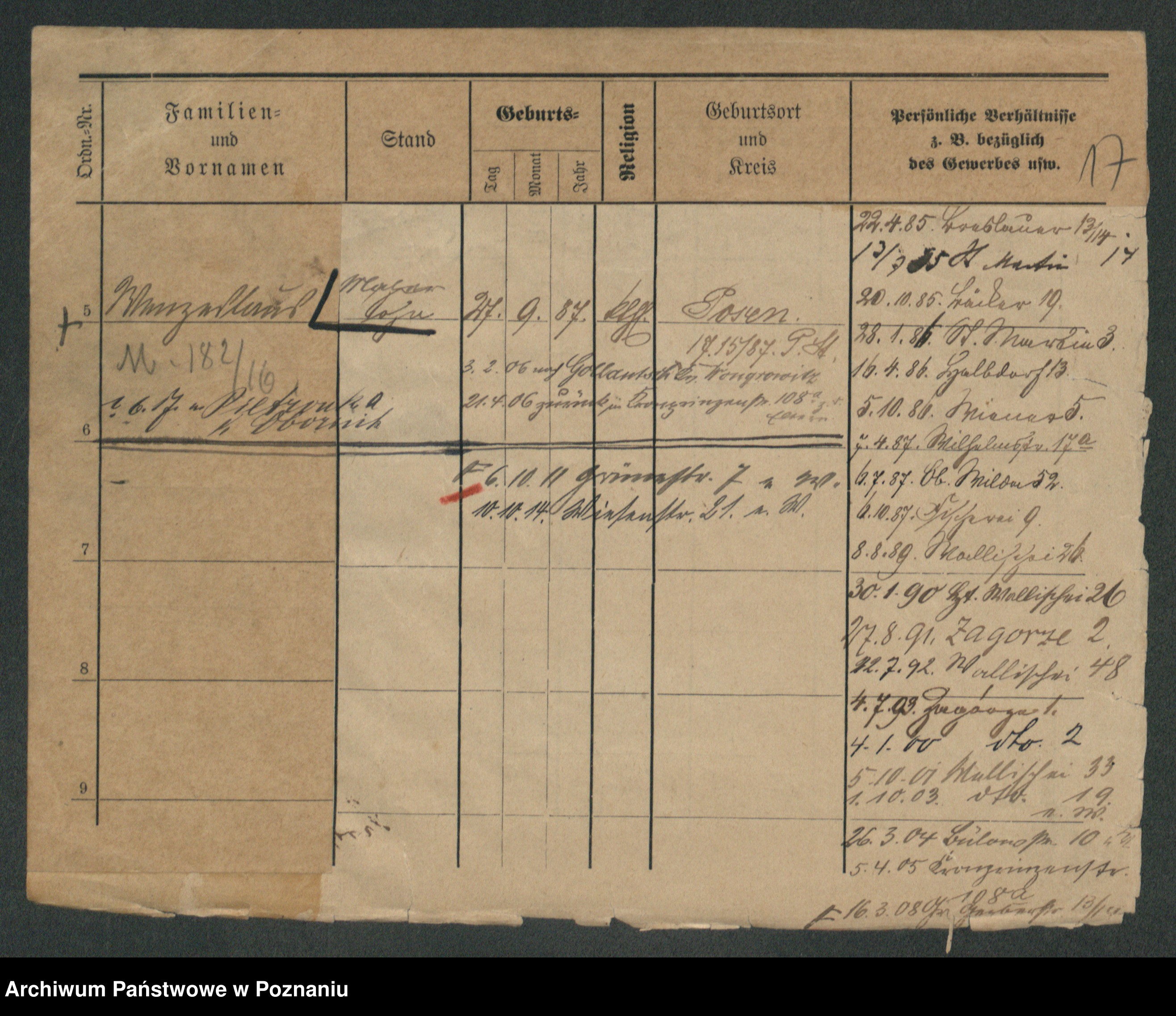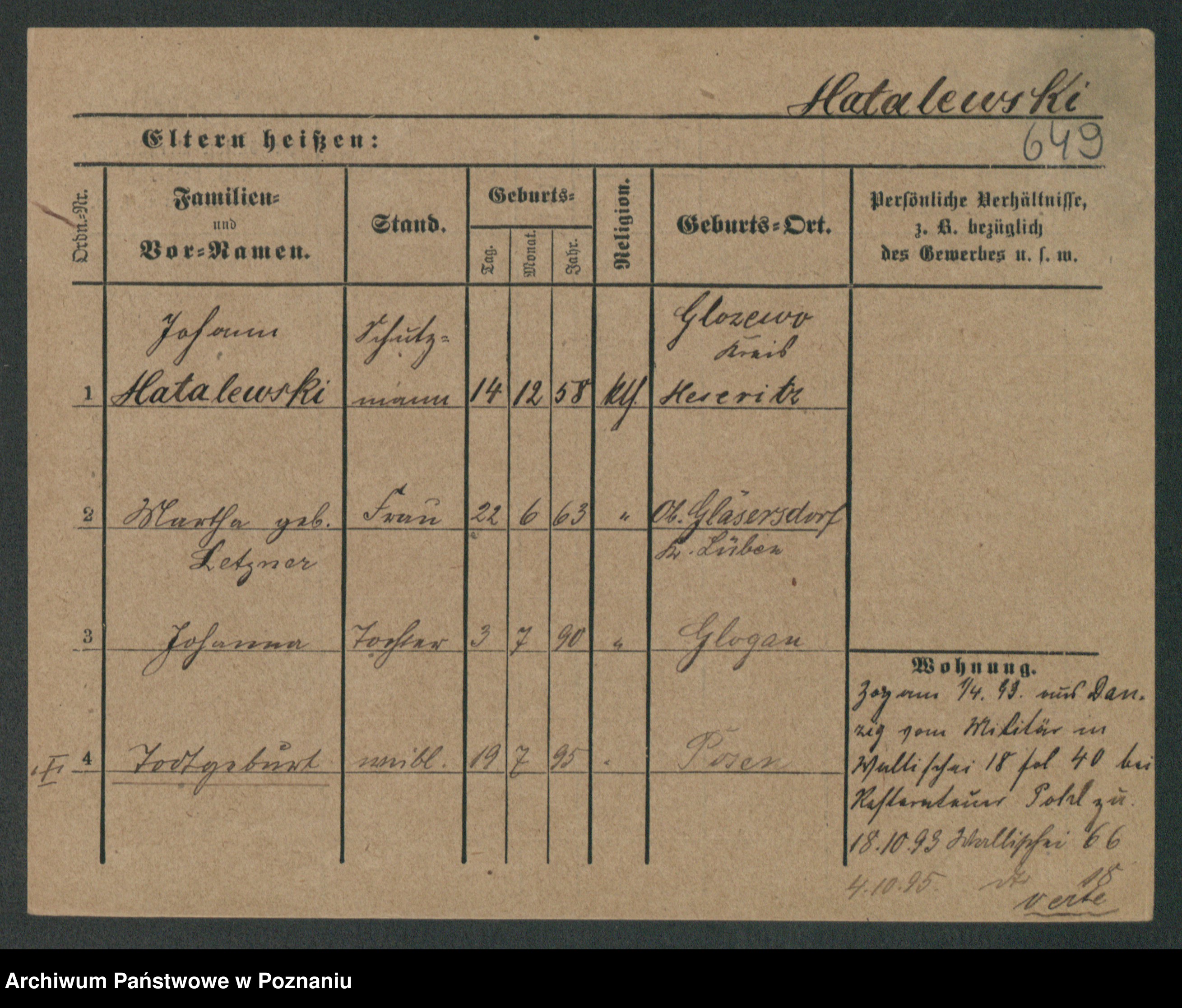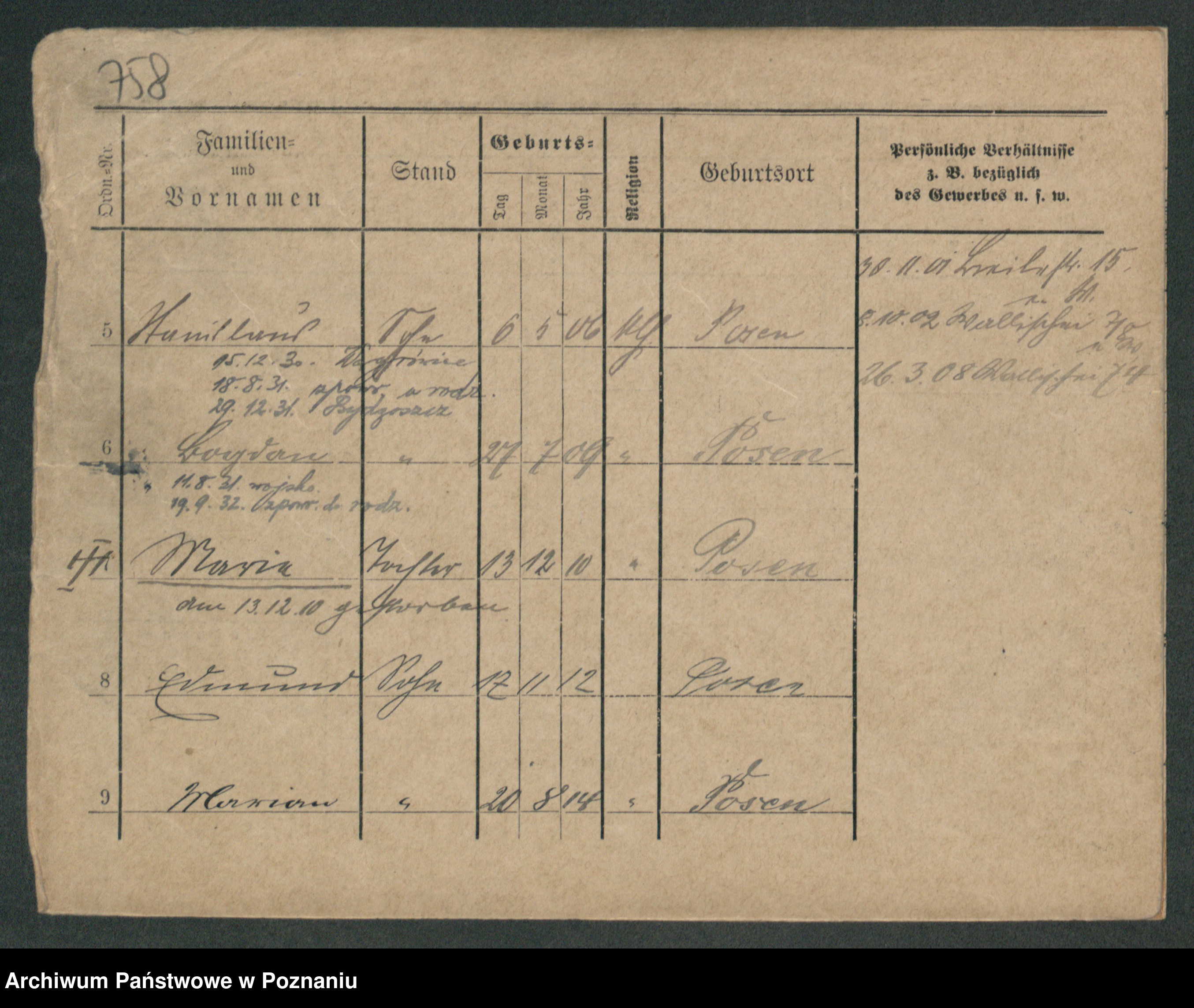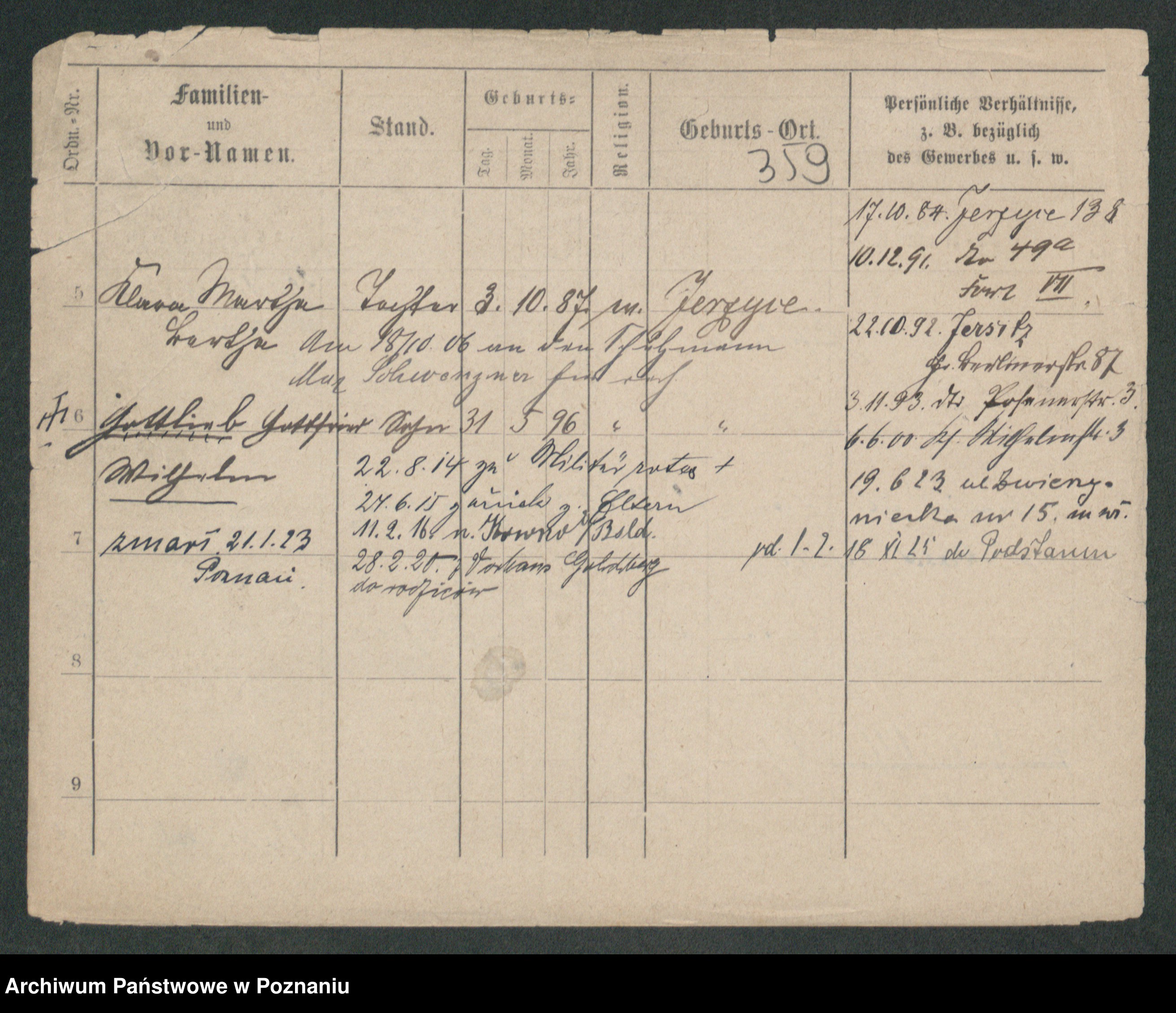 Podgląd karty osobowej dostępny jest po kliknięciu na nazwisko lub ikonkę karty. Można dokonywać powiększenia (ikony na górze) lub przechodzić między kolejnymi skanami (strzałki po bokach).