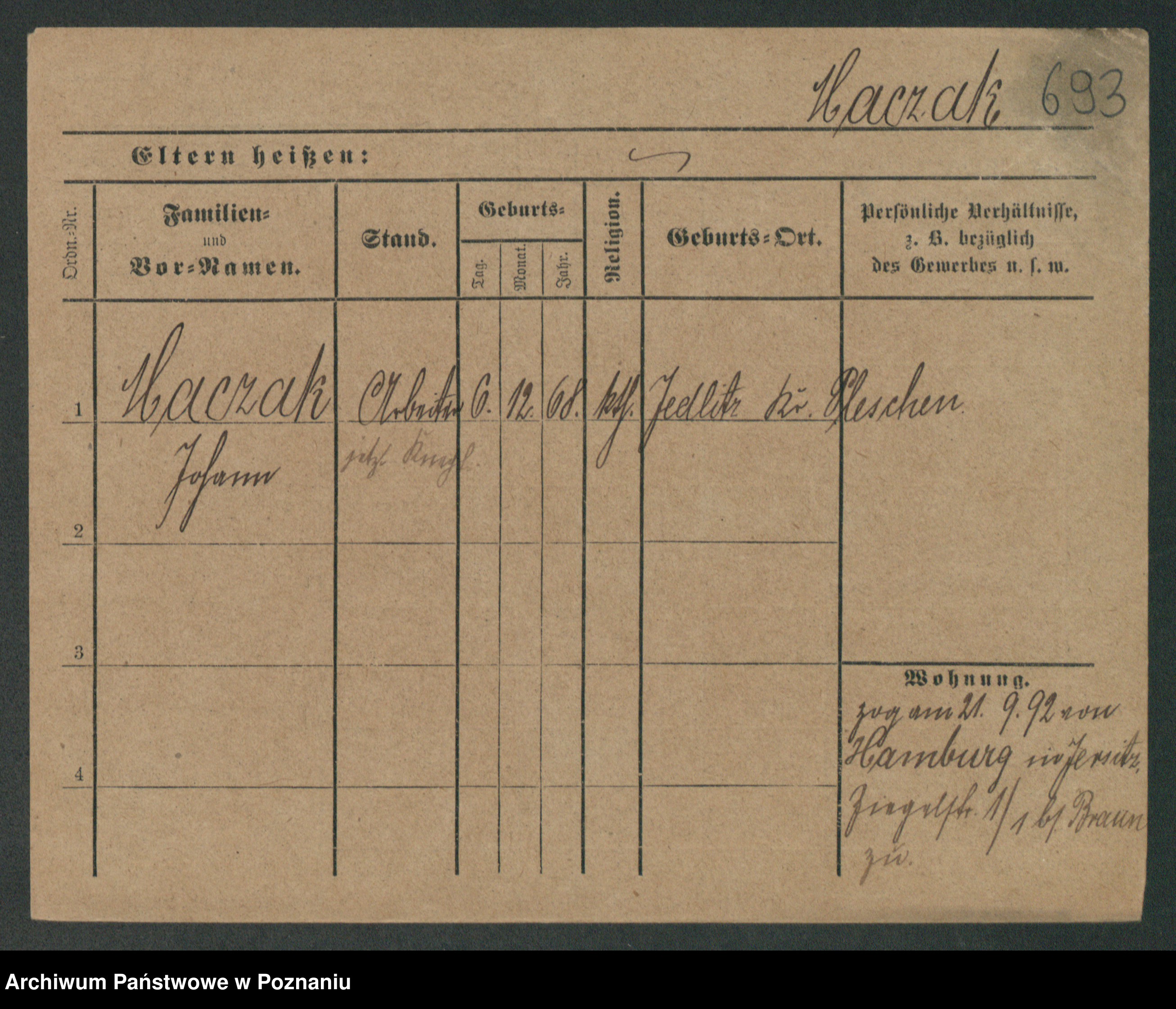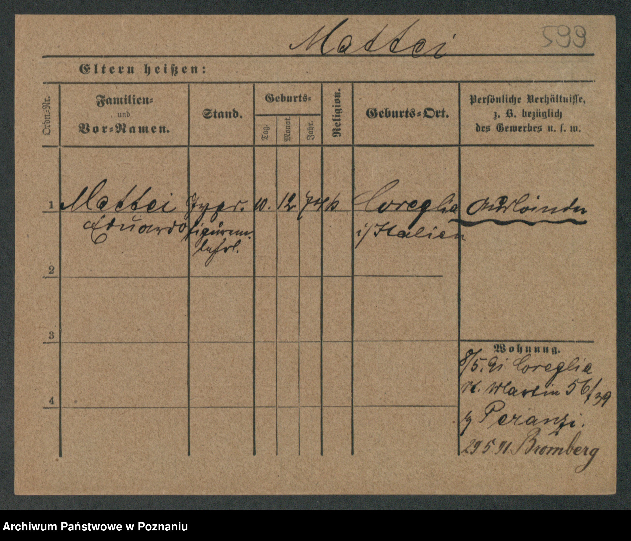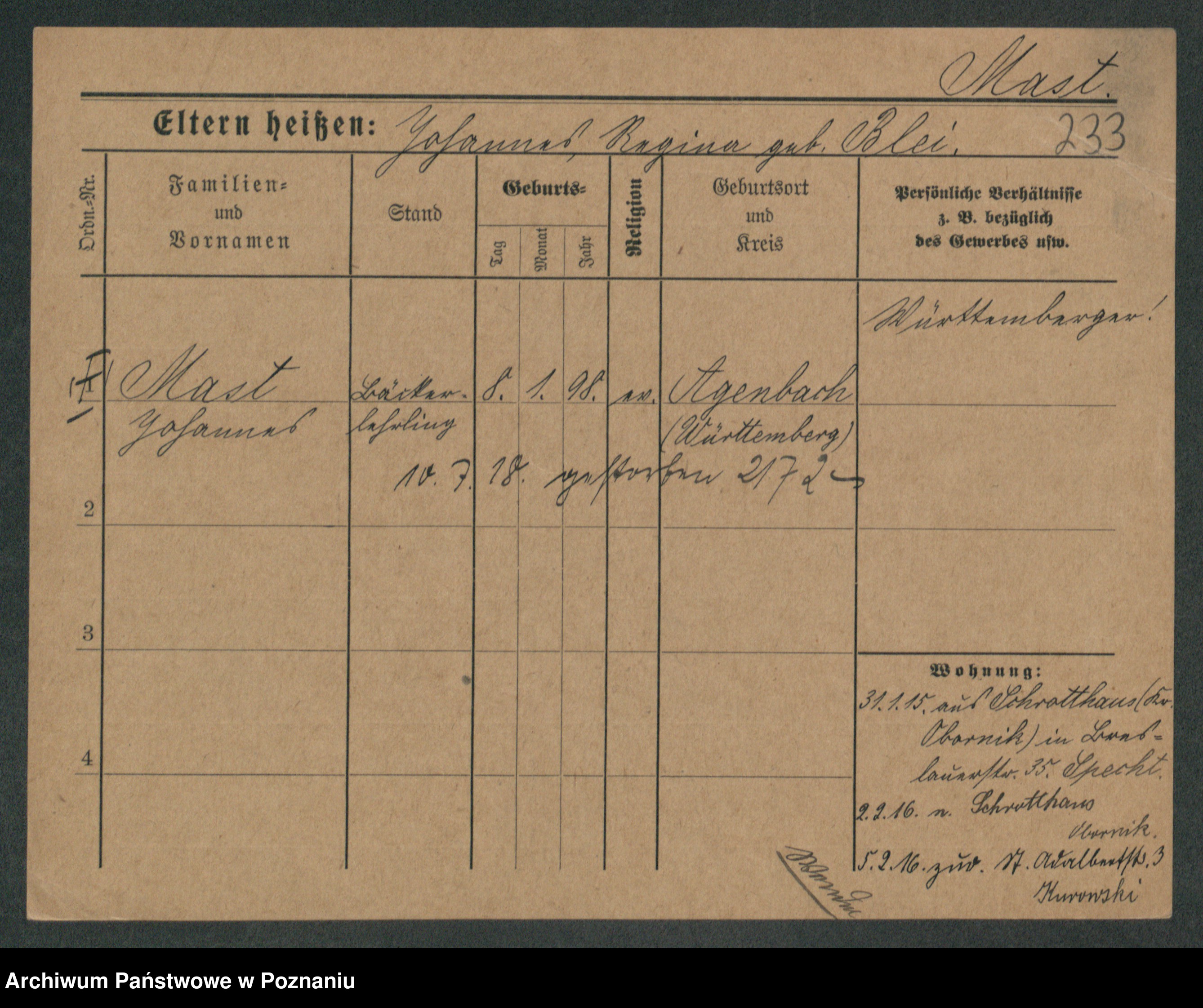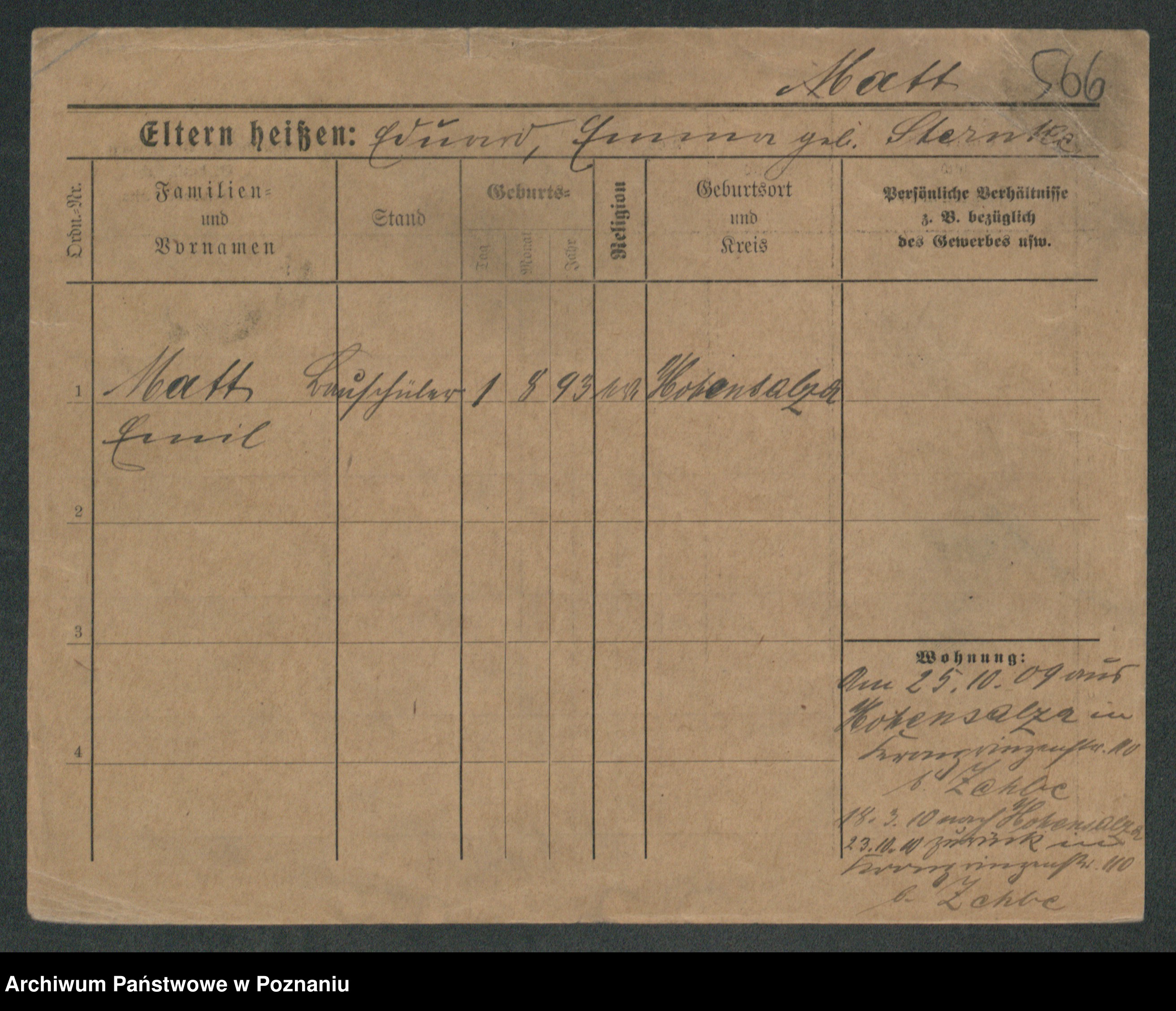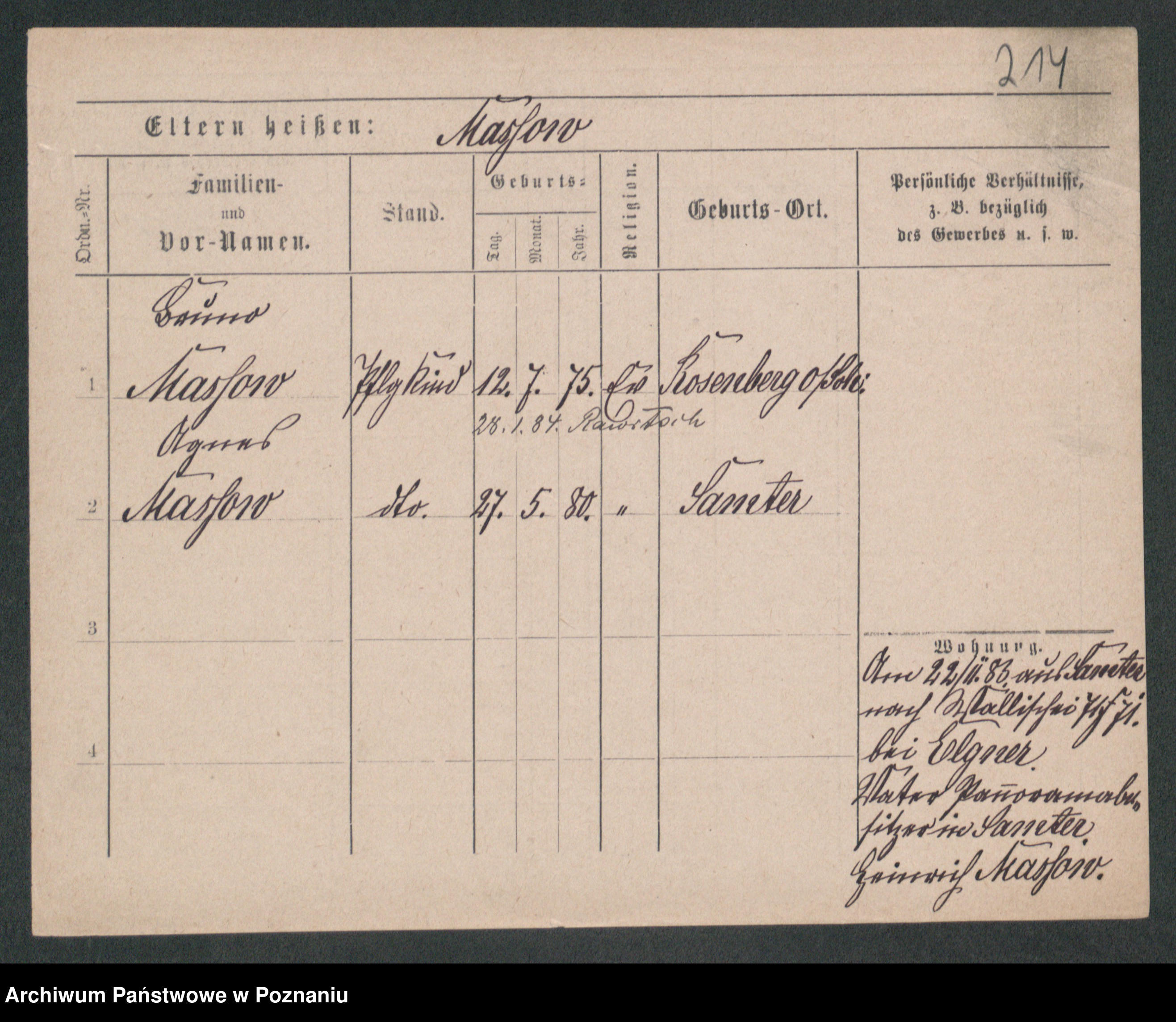 Podgląd karty osobowej dostępny jest po kliknięciu na nazwisko lub ikonkę karty. Można dokonywać powiększenia (ikony na górze) lub przechodzić między kolejnymi skanami (strzałki po bokach).