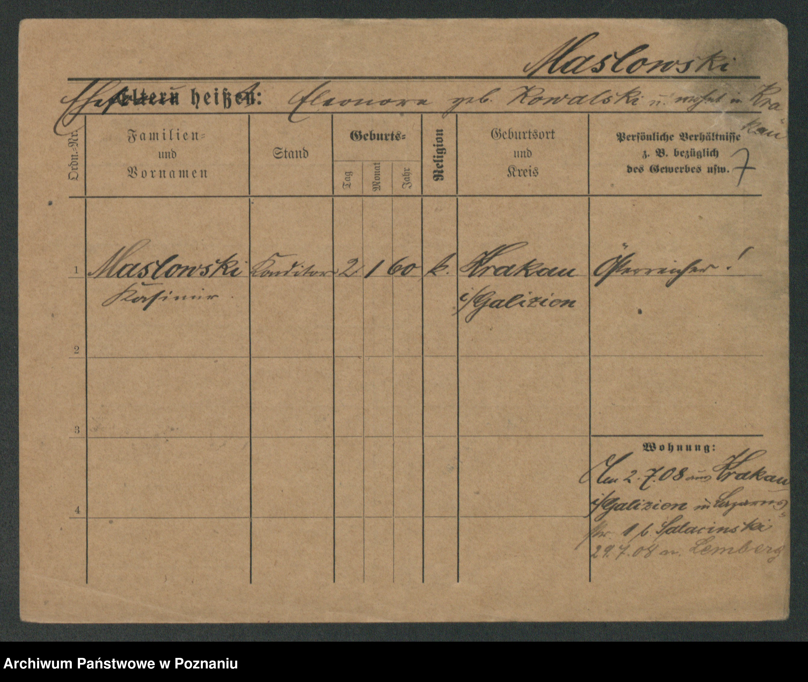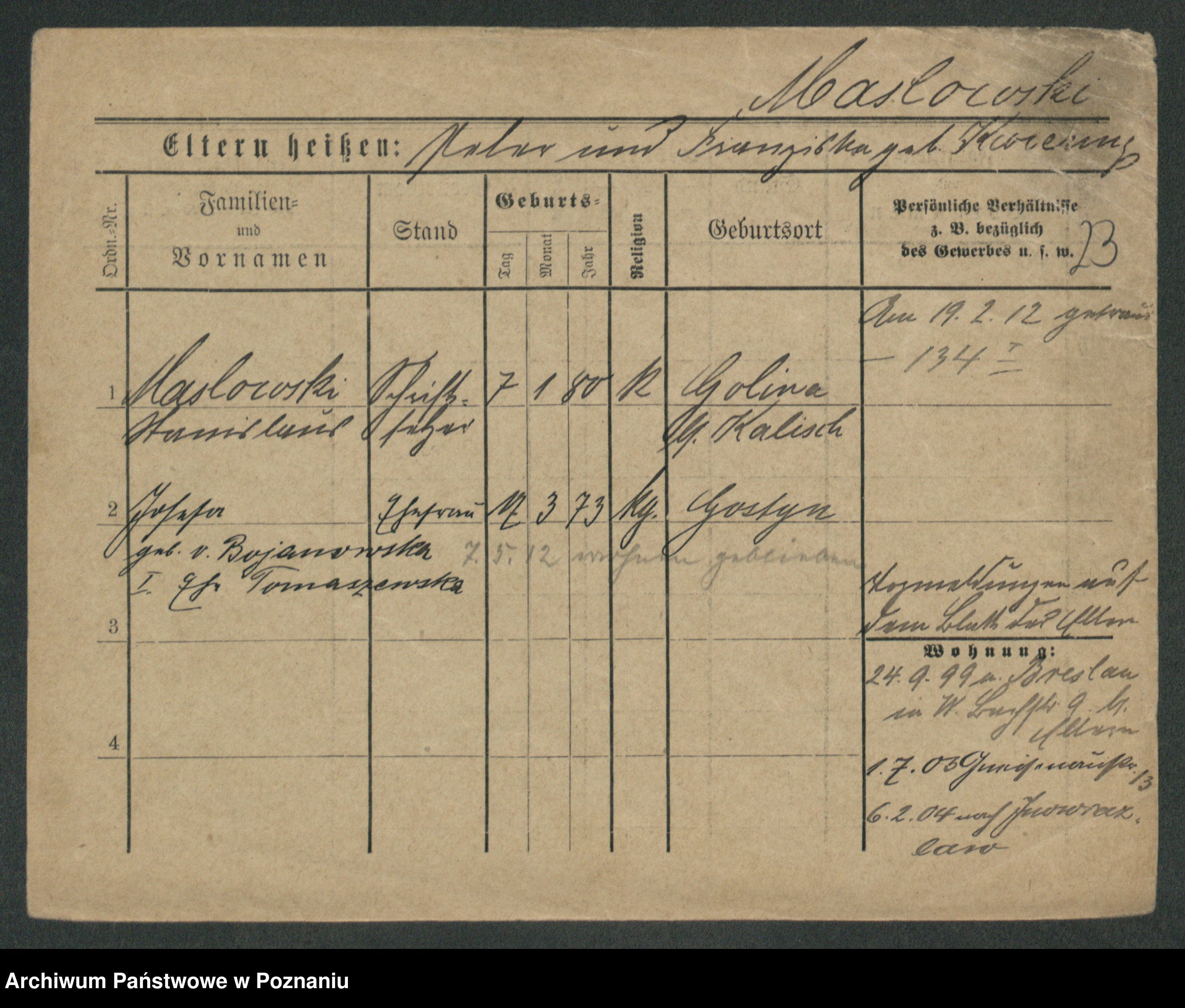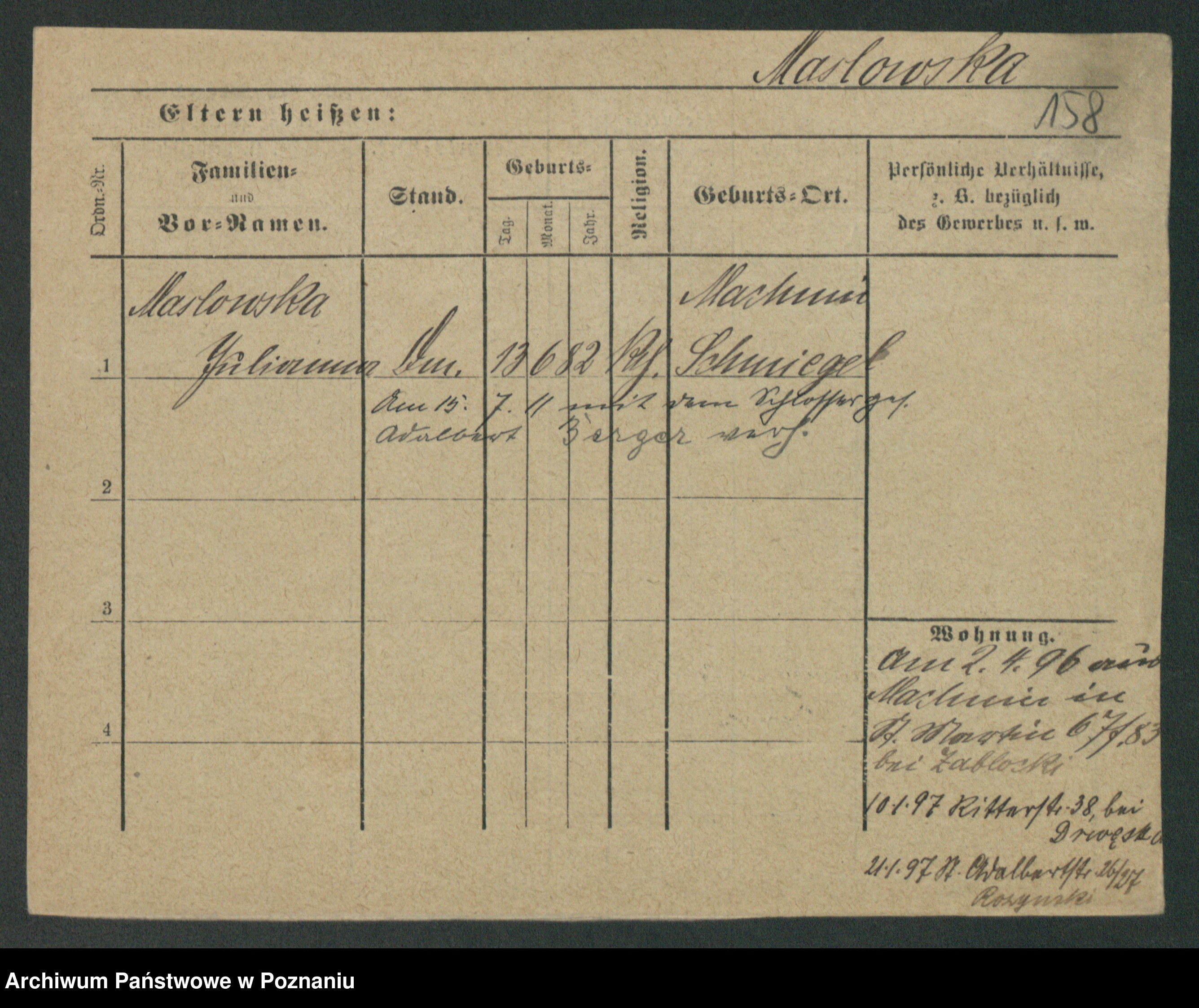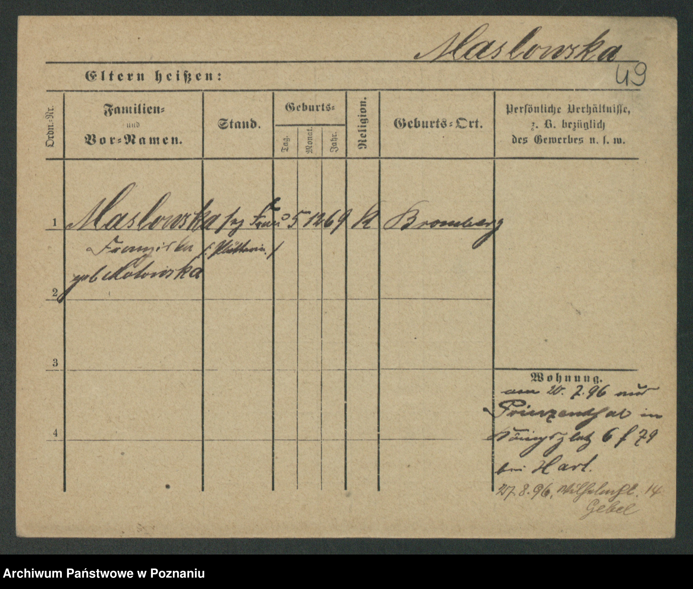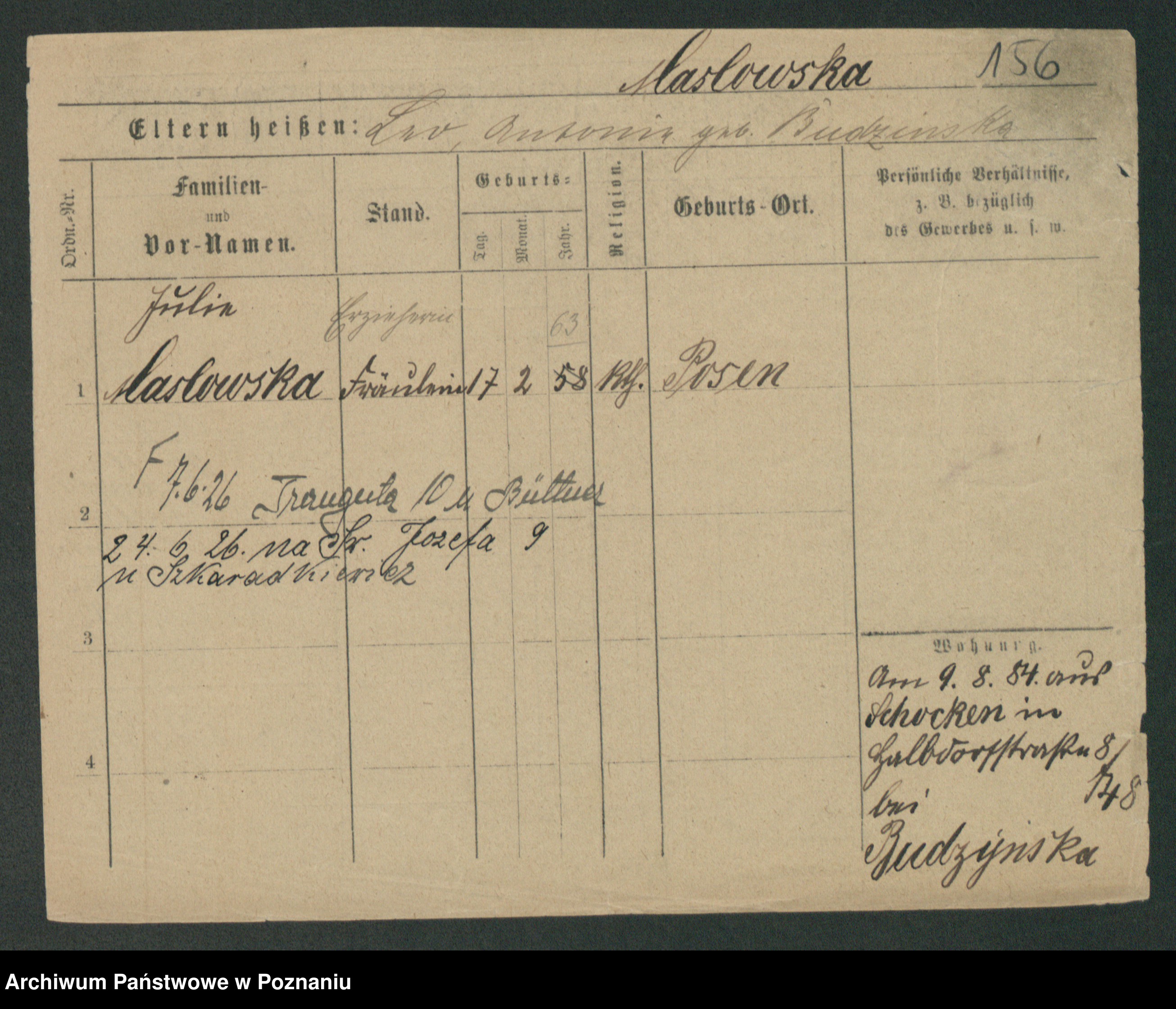 Maslowski zd. Bojanowska von Iv. Tomaszewska, Josefa
