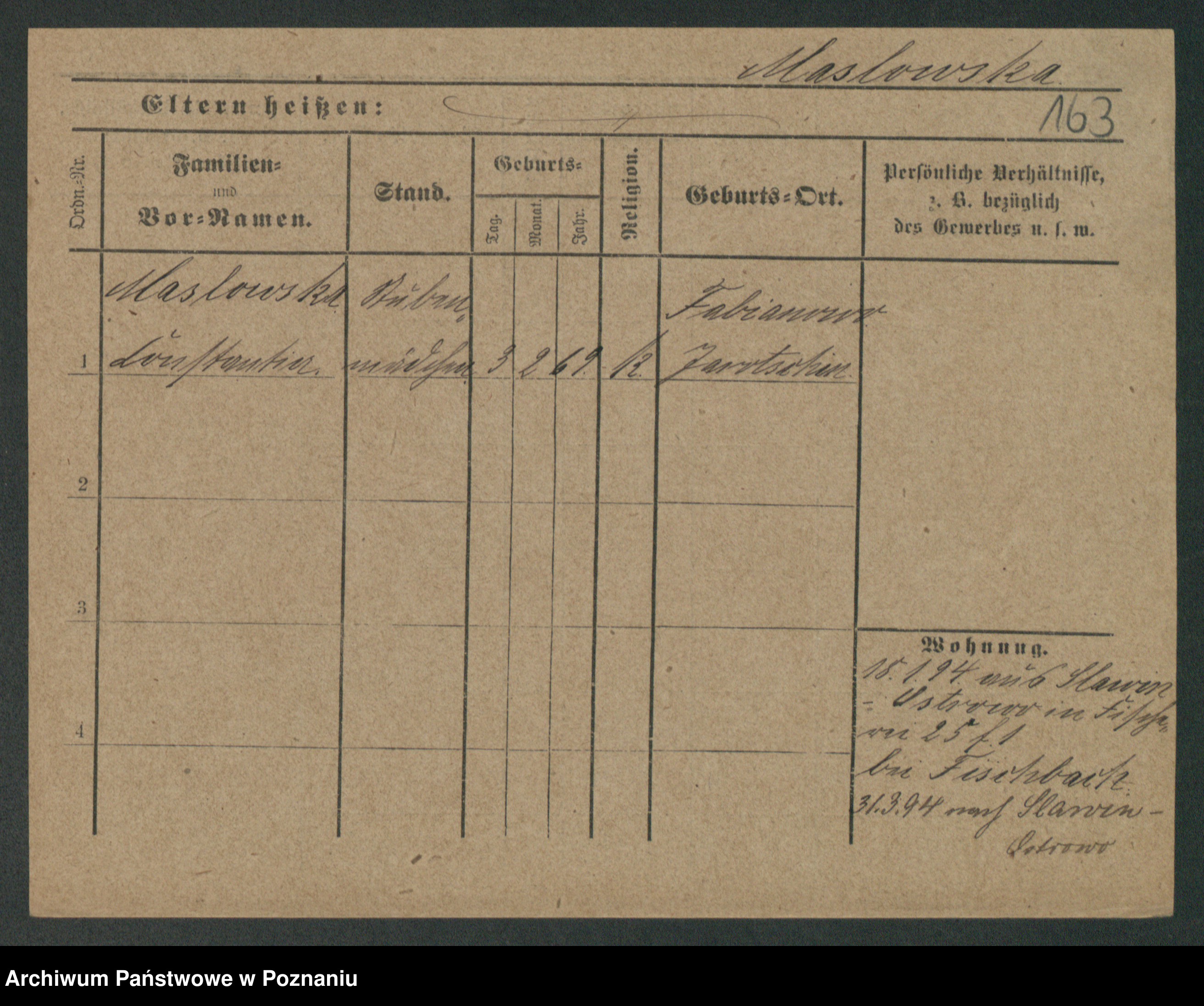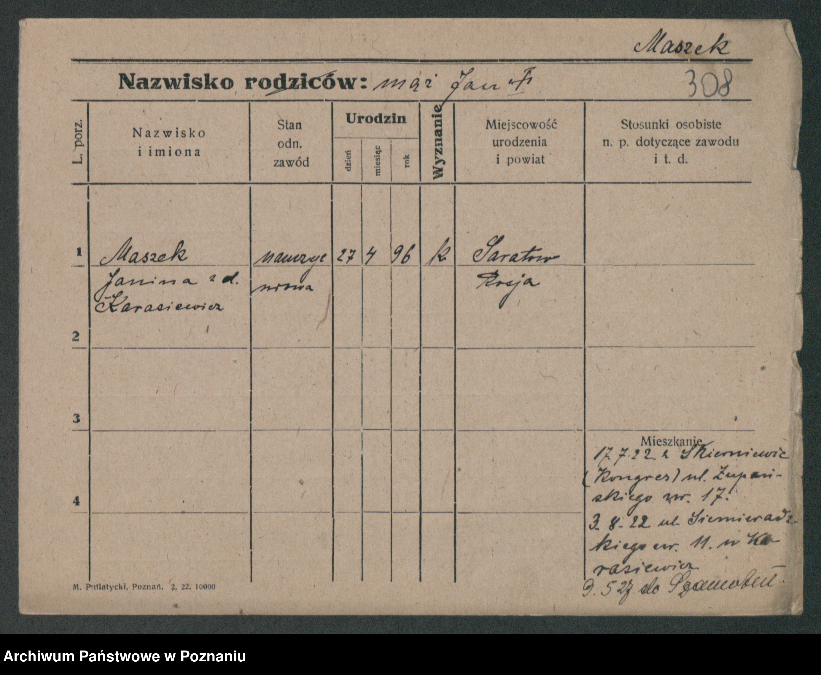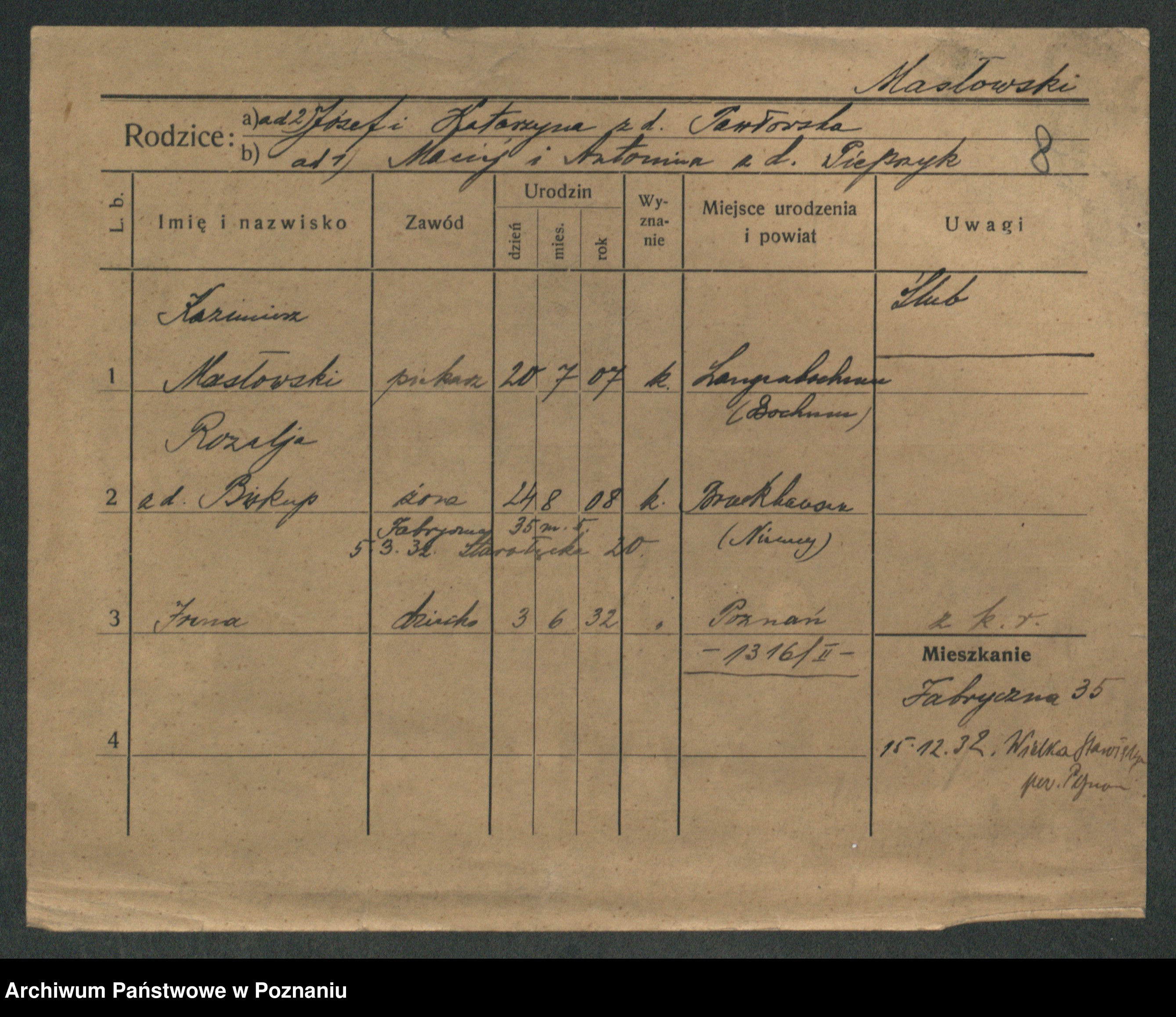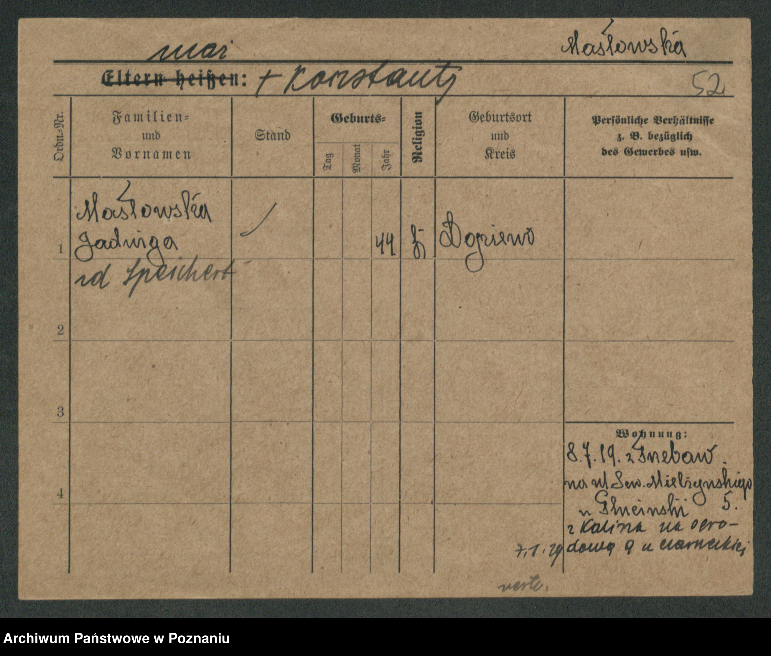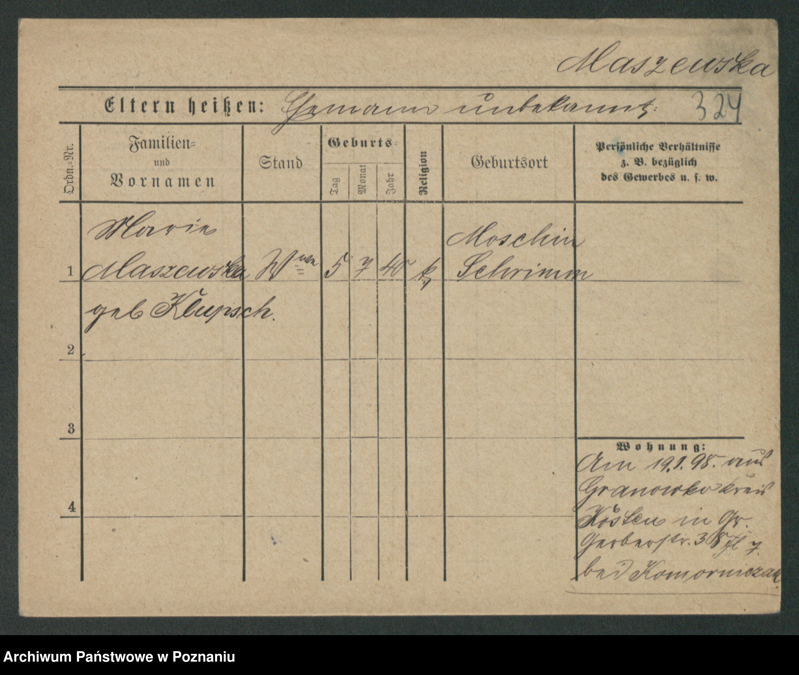 Maslowski zd. Bojanowska von Iv. Tomaszewska, Josefa
