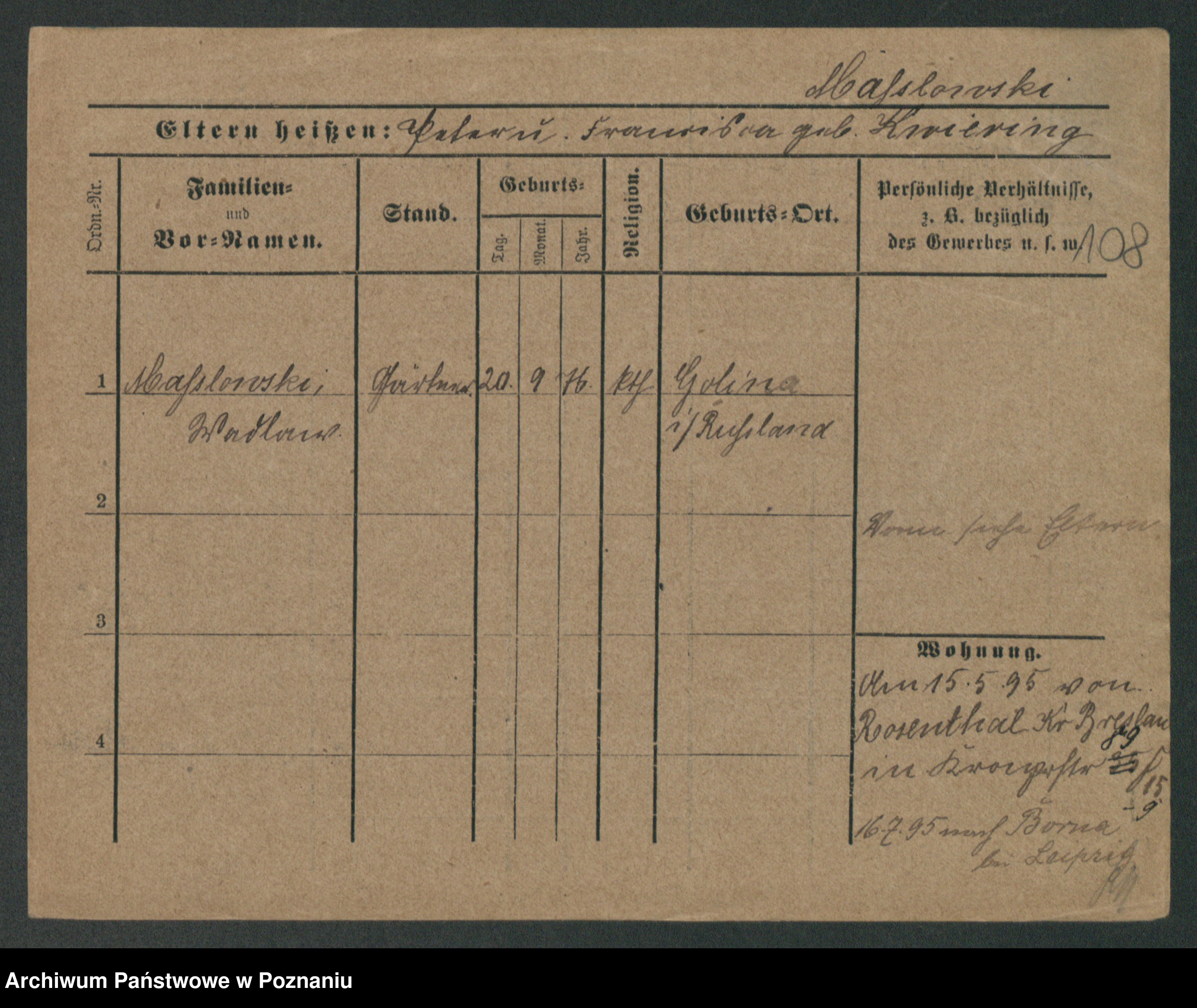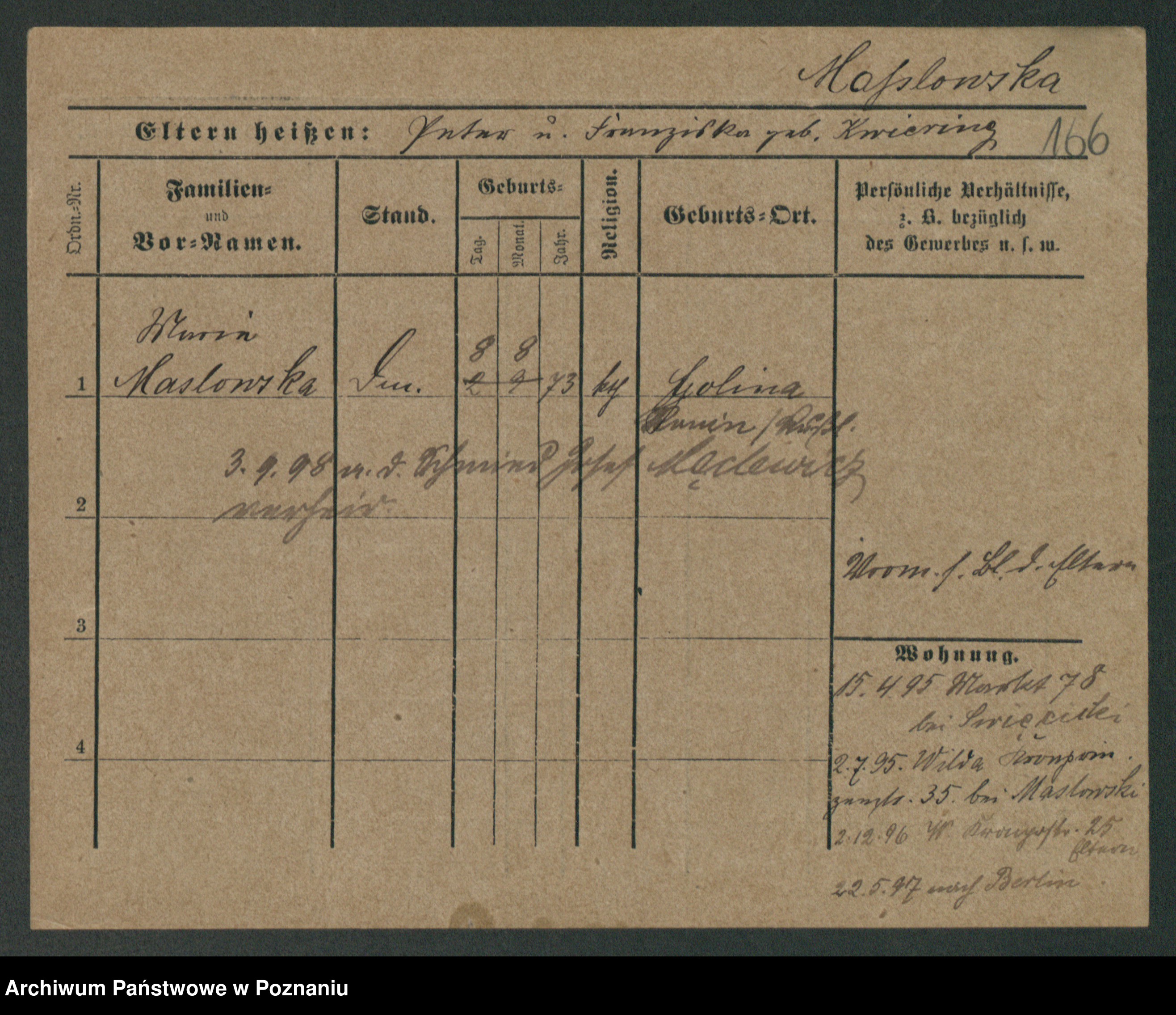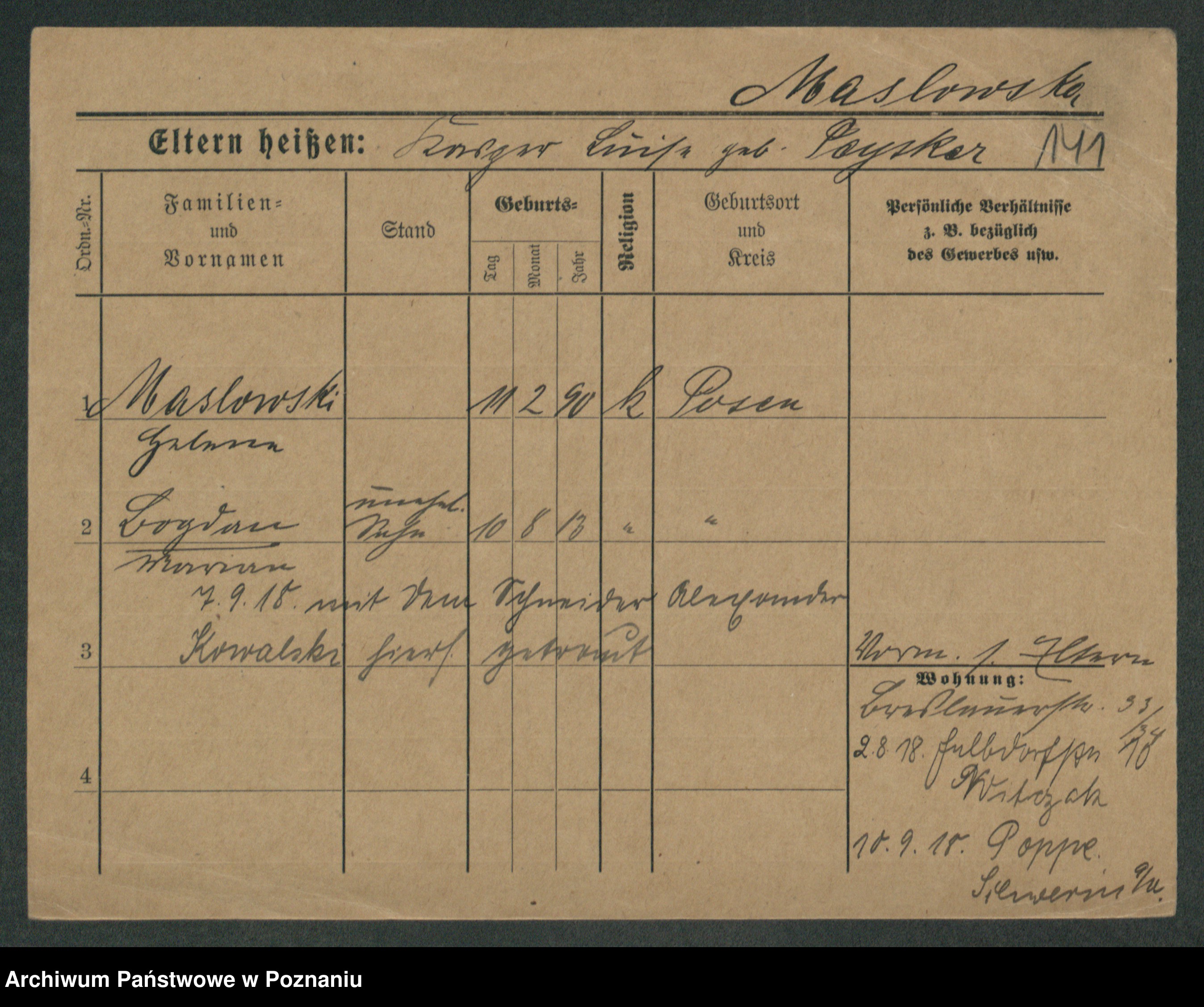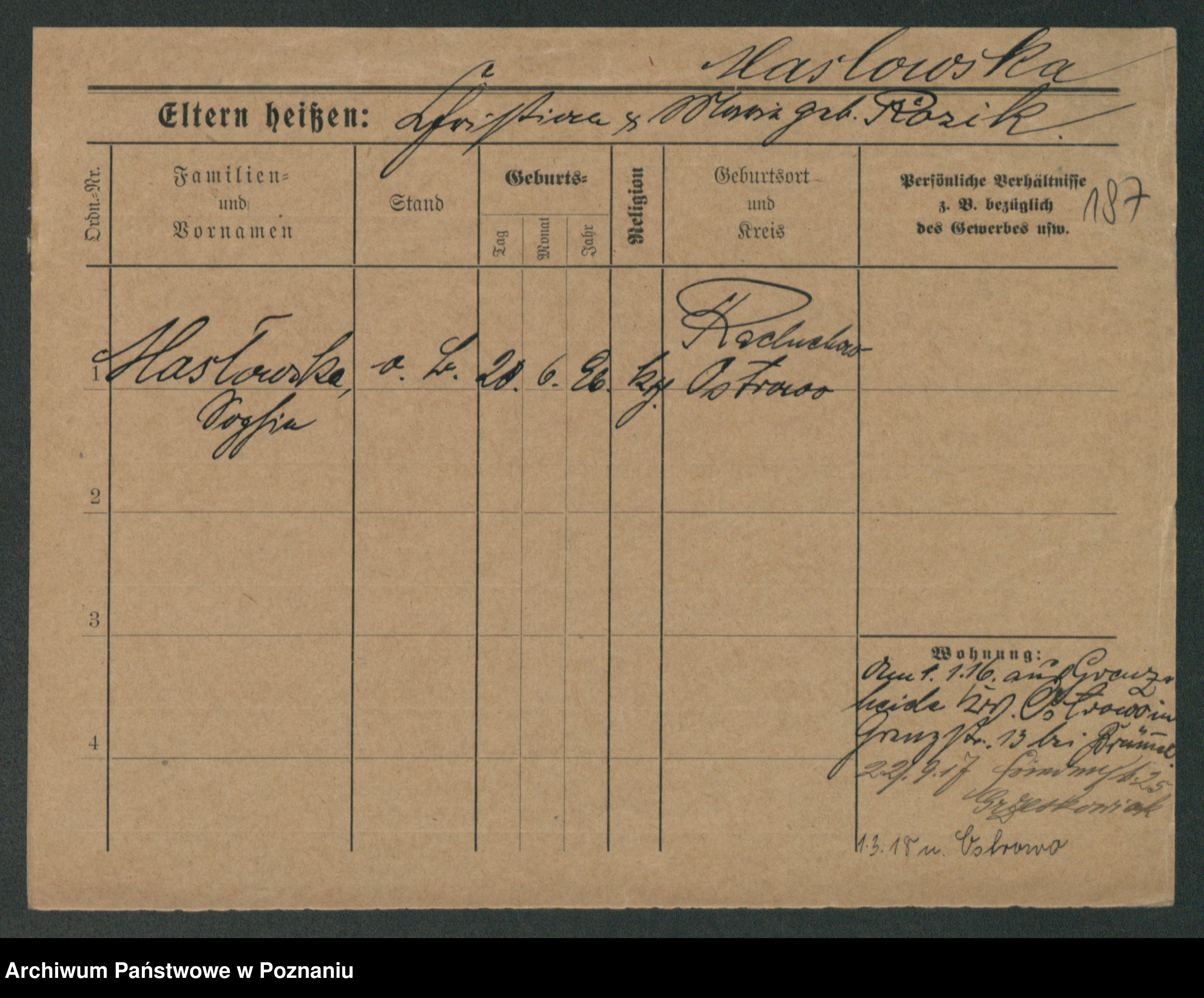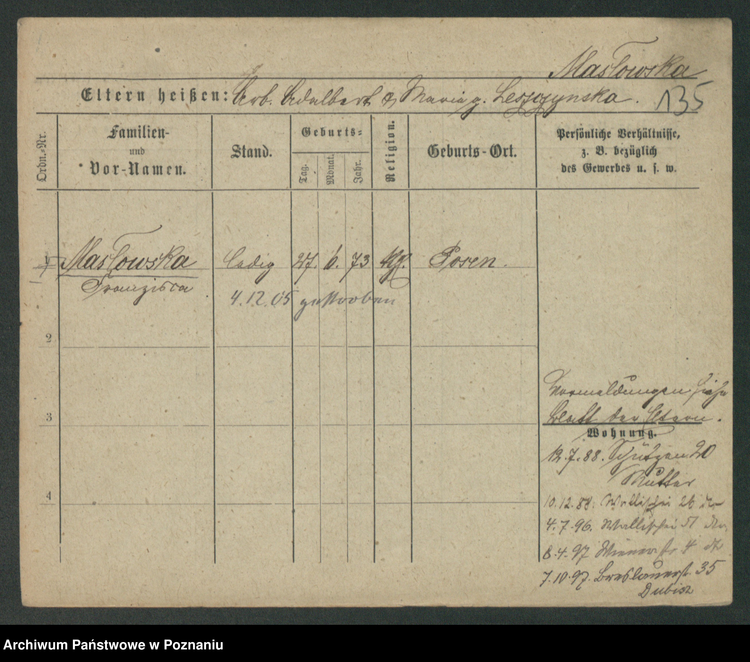 Maslowski zd. Bojanowska von Iv. Tomaszewska, Josefa
