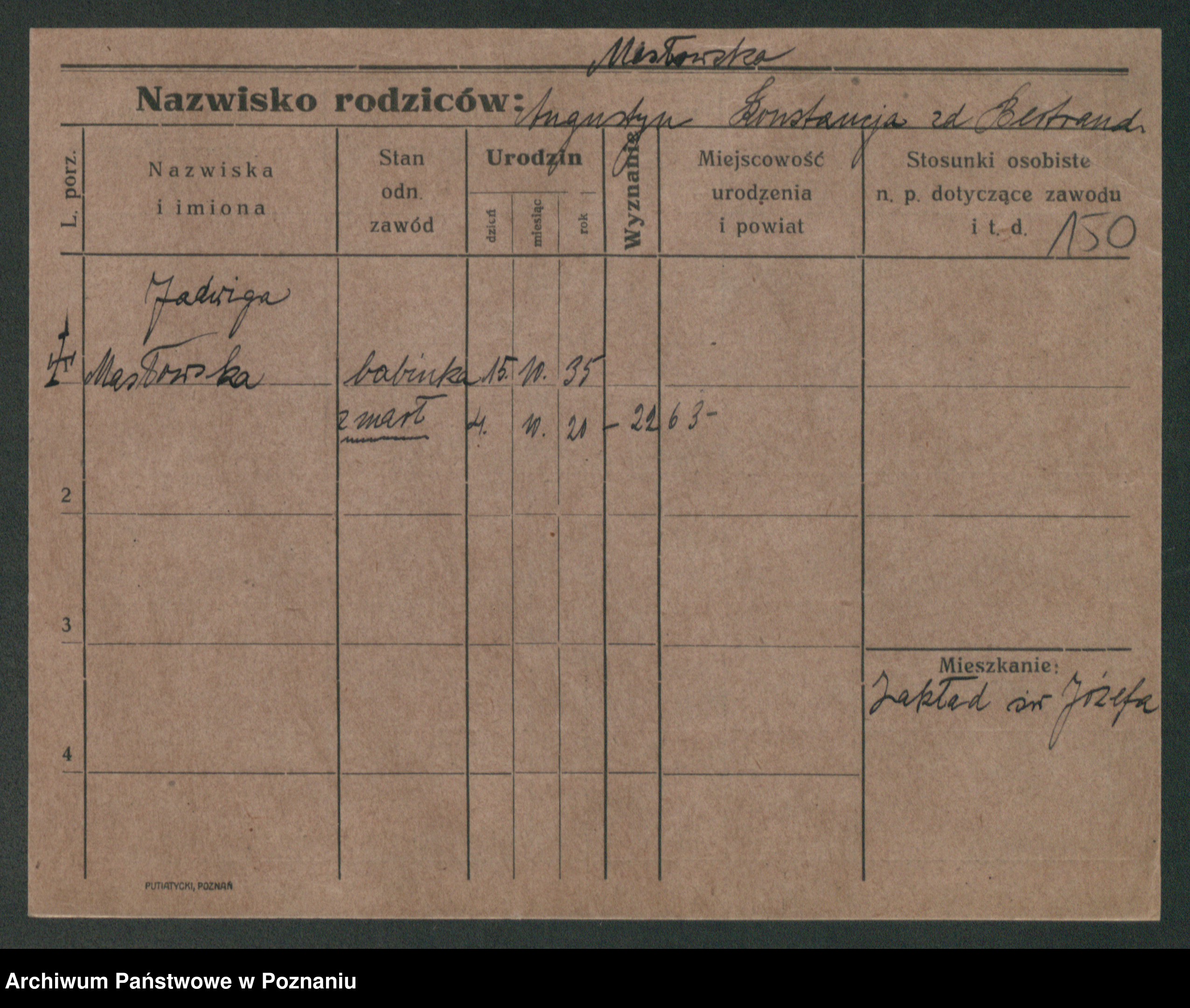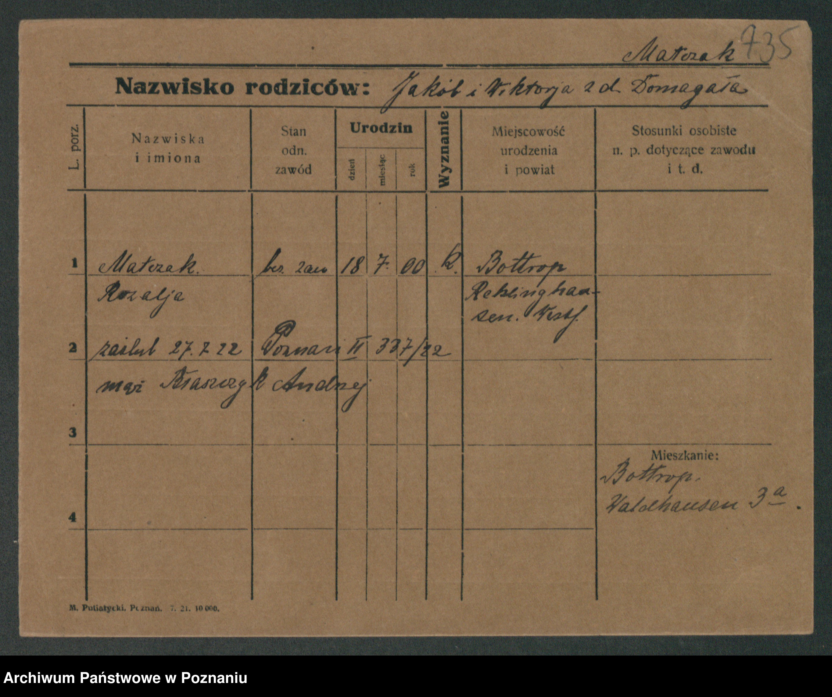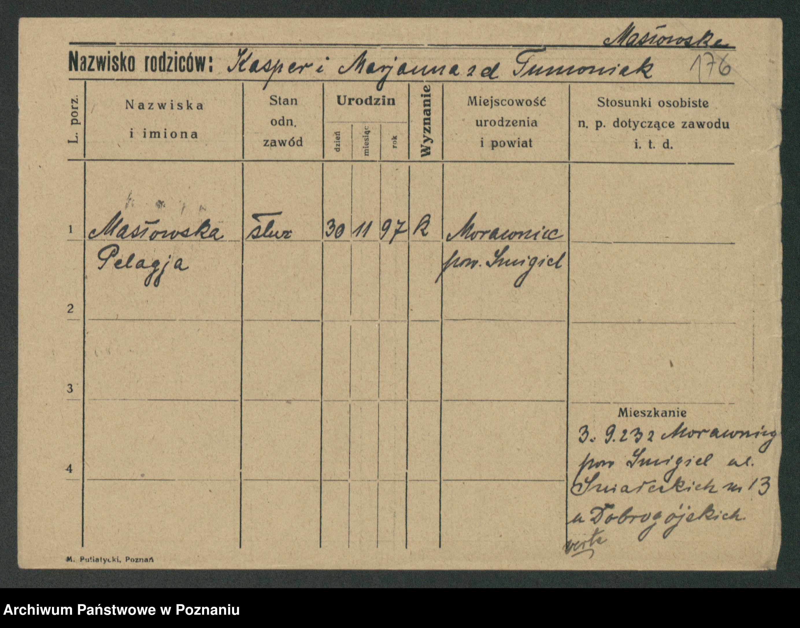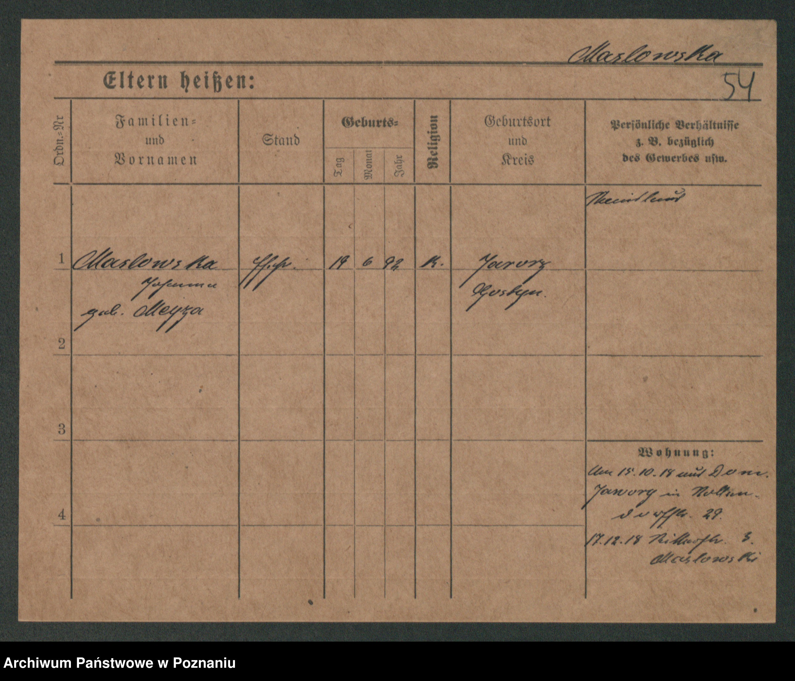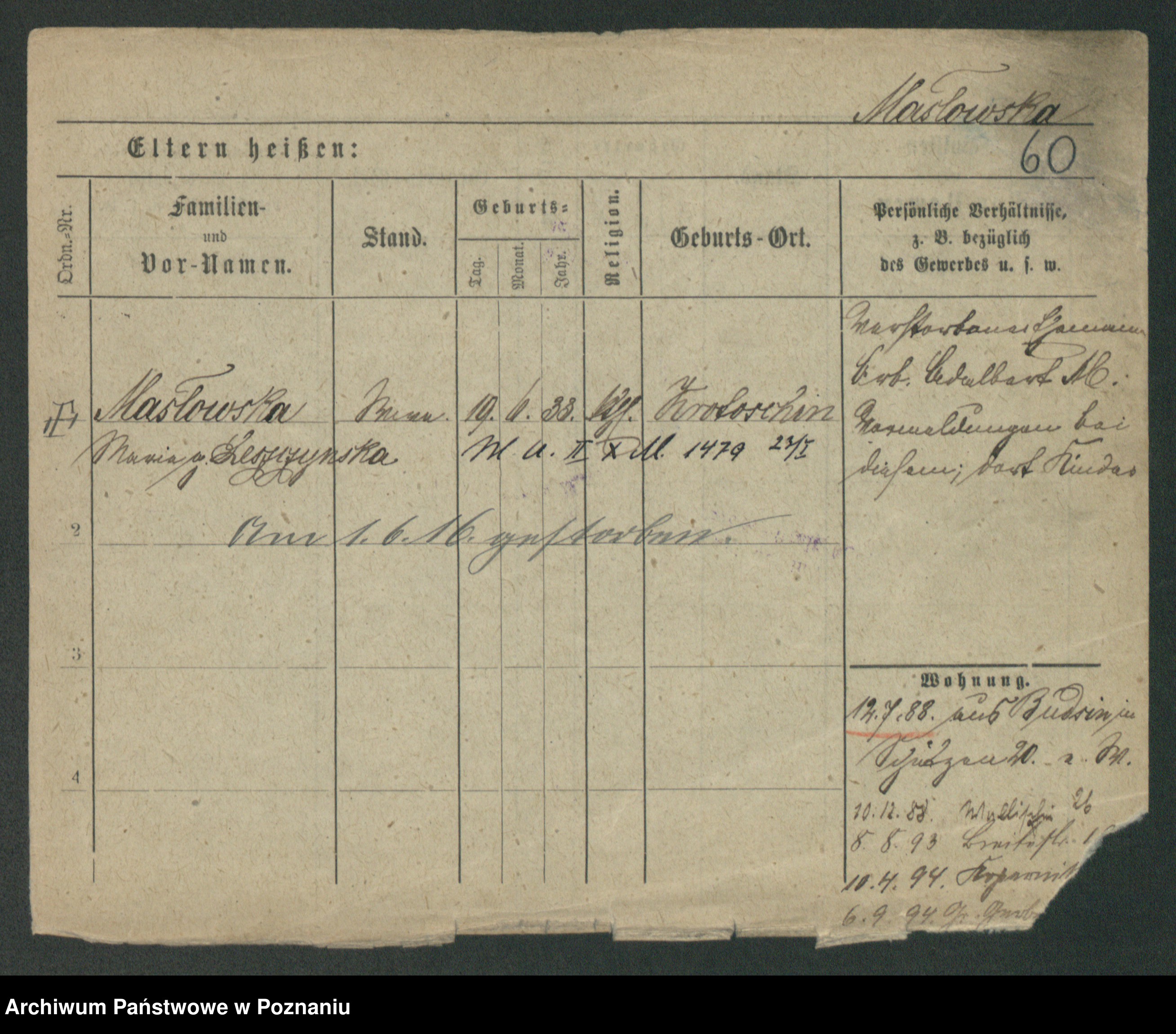 Maslowski zd. Bojanowska von Iv. Tomaszewska, Josefa