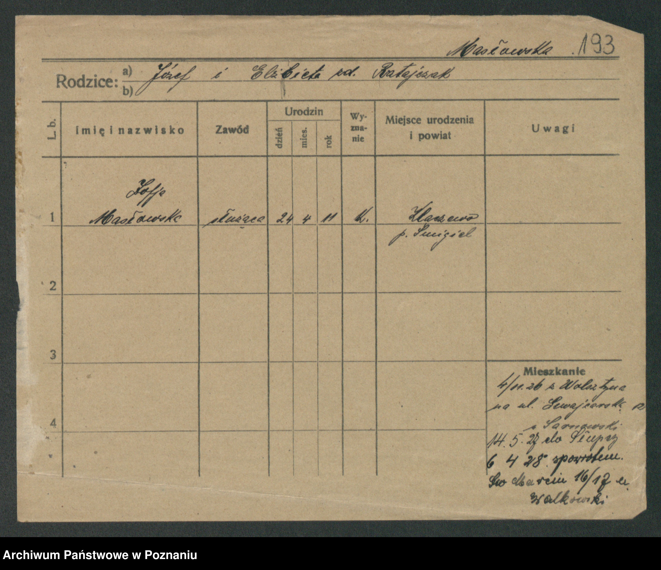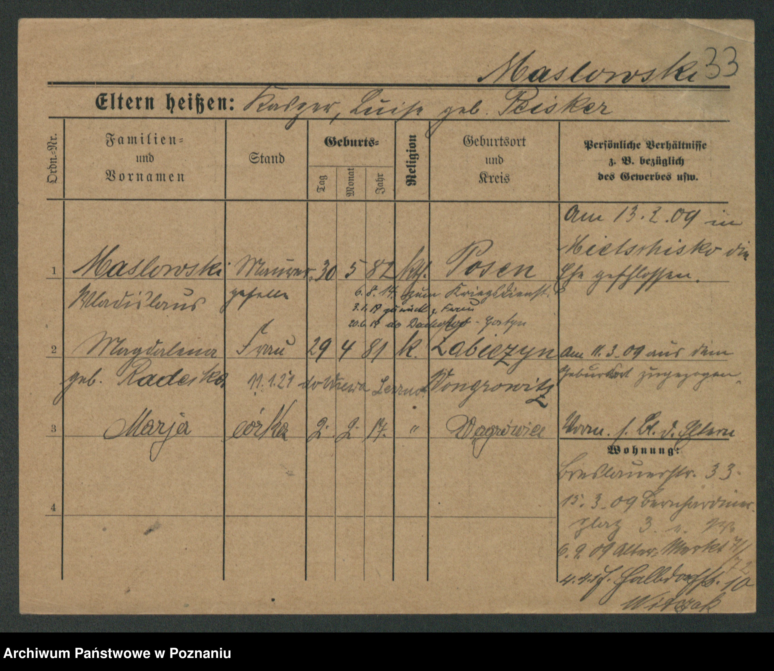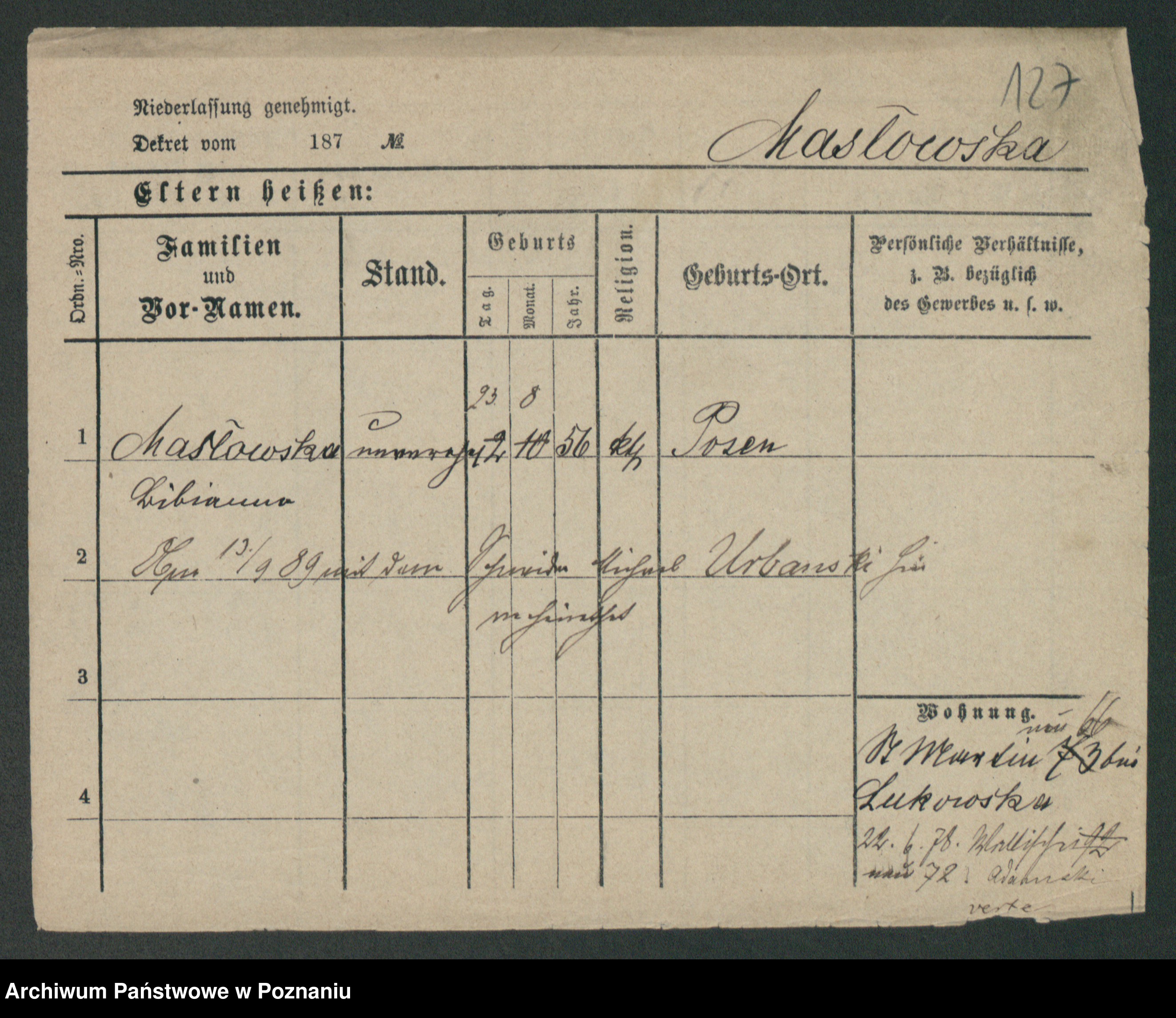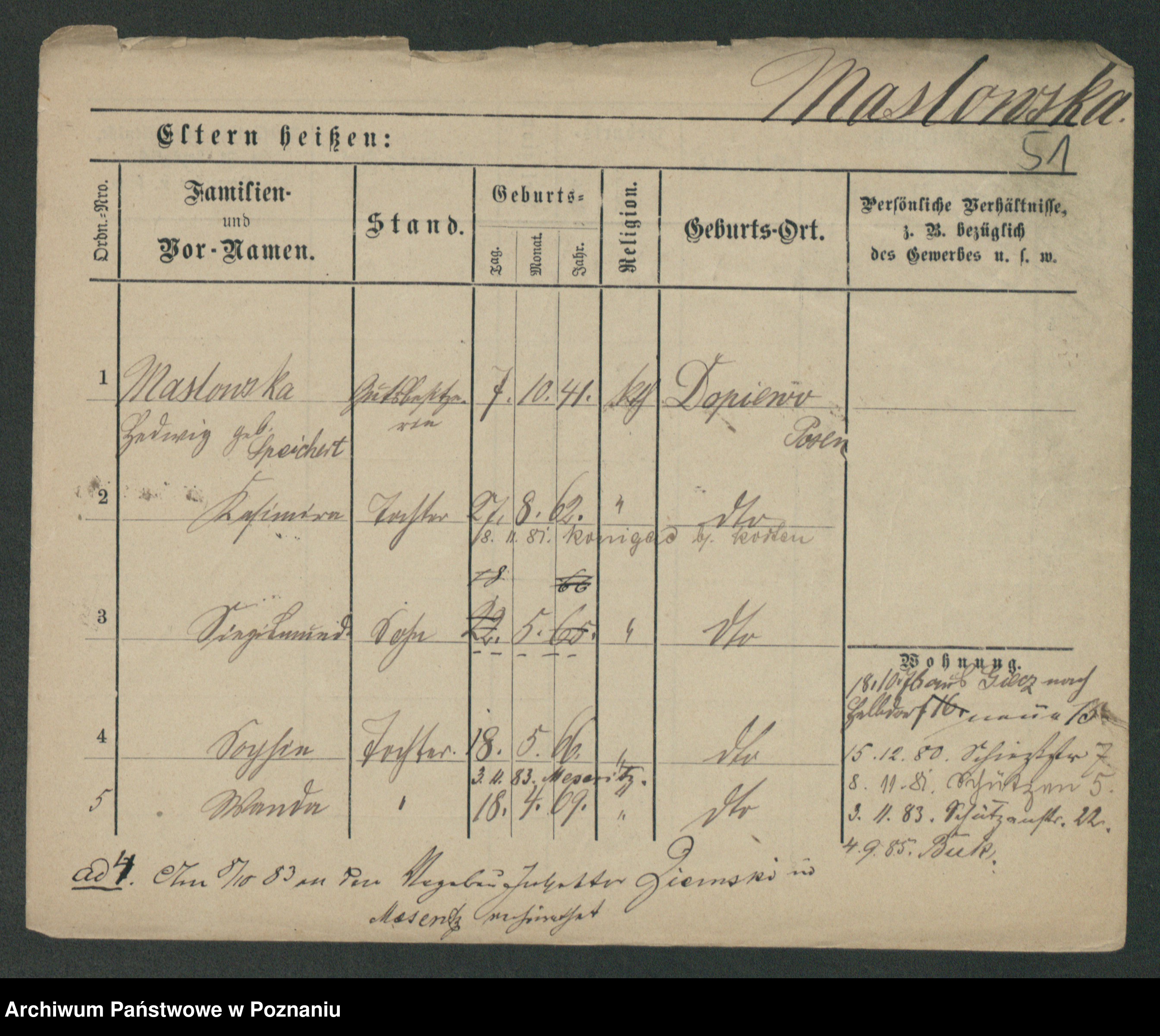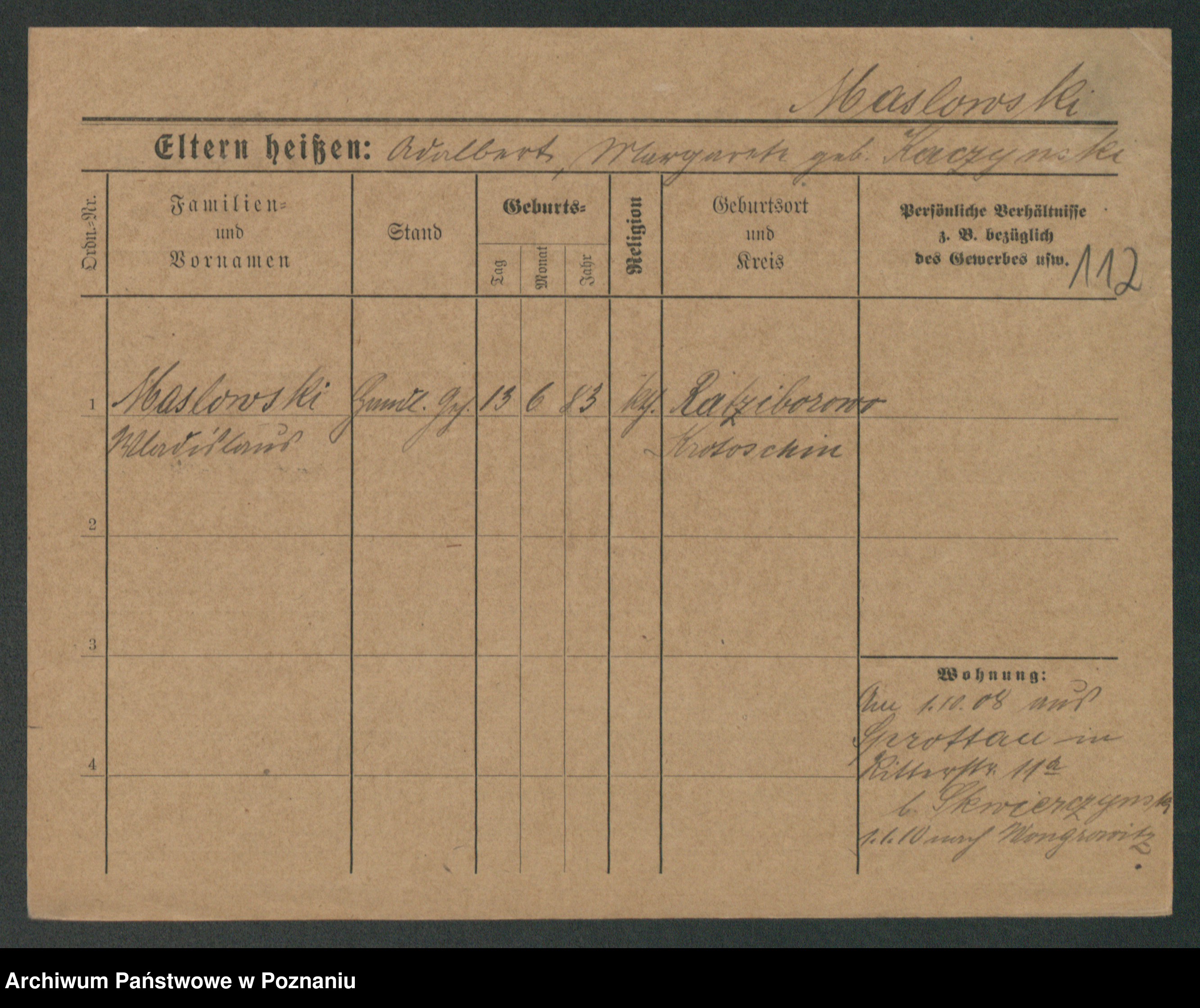 Maslowski zd. Bojanowska von Iv. Tomaszewska, Josefa