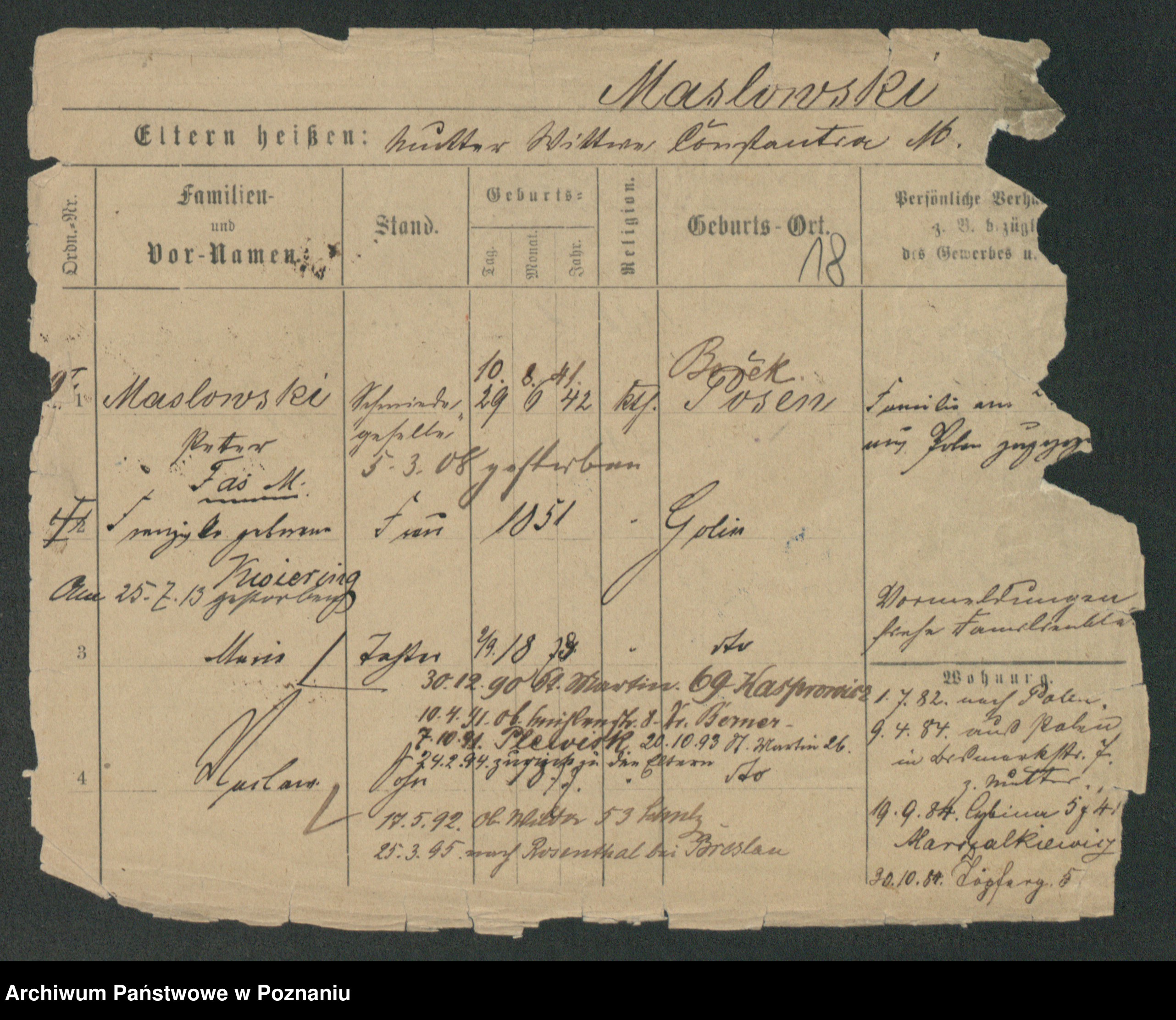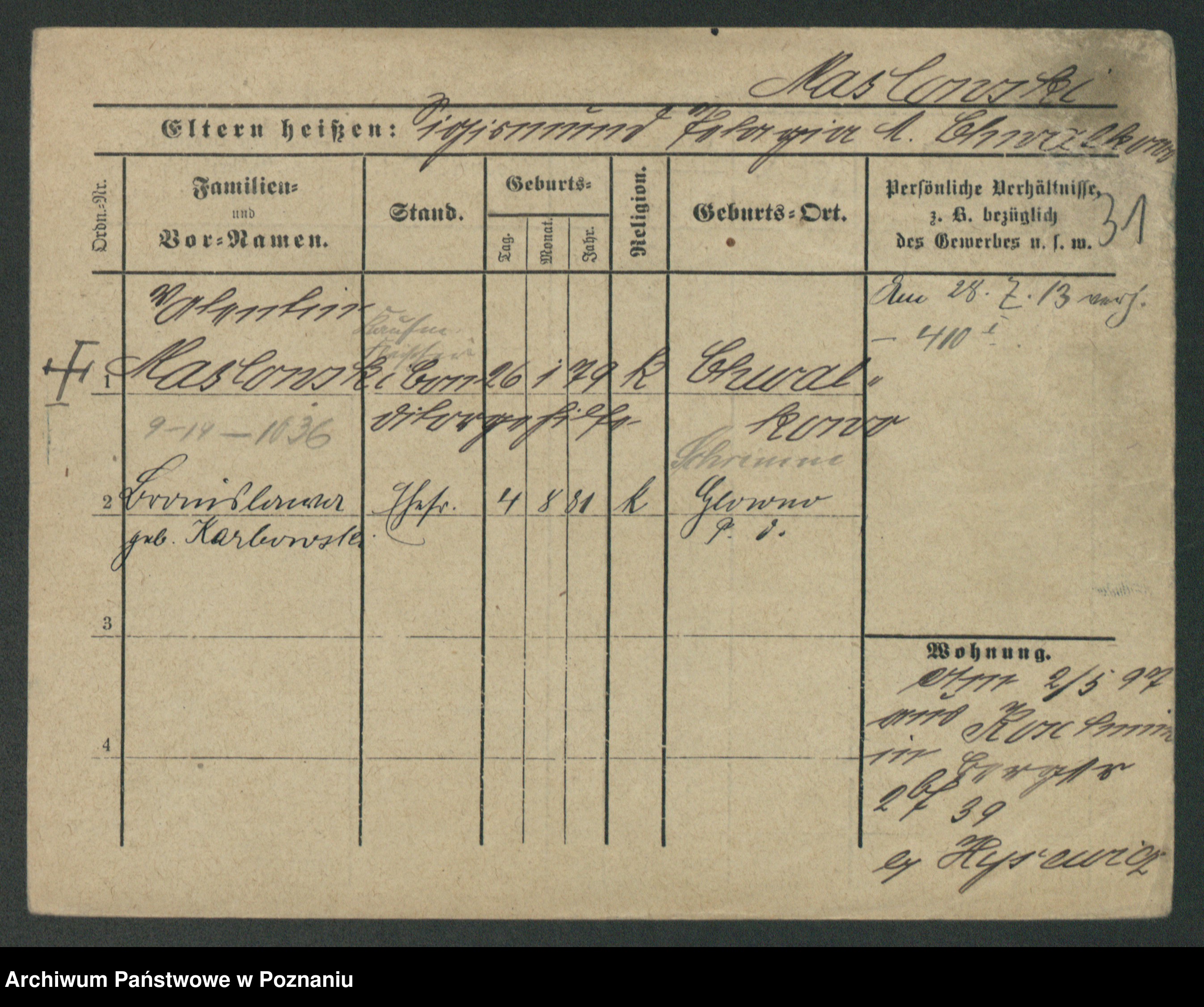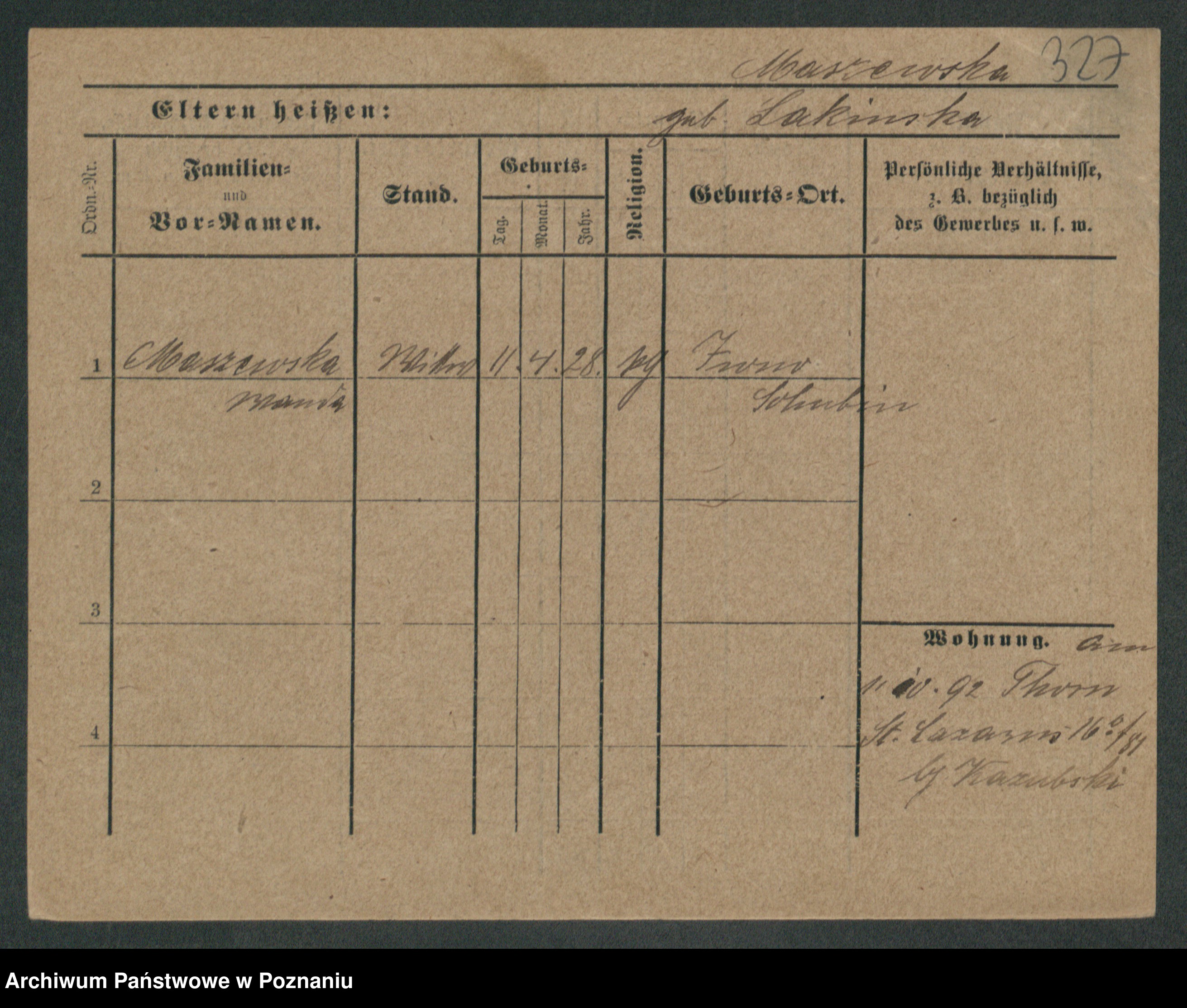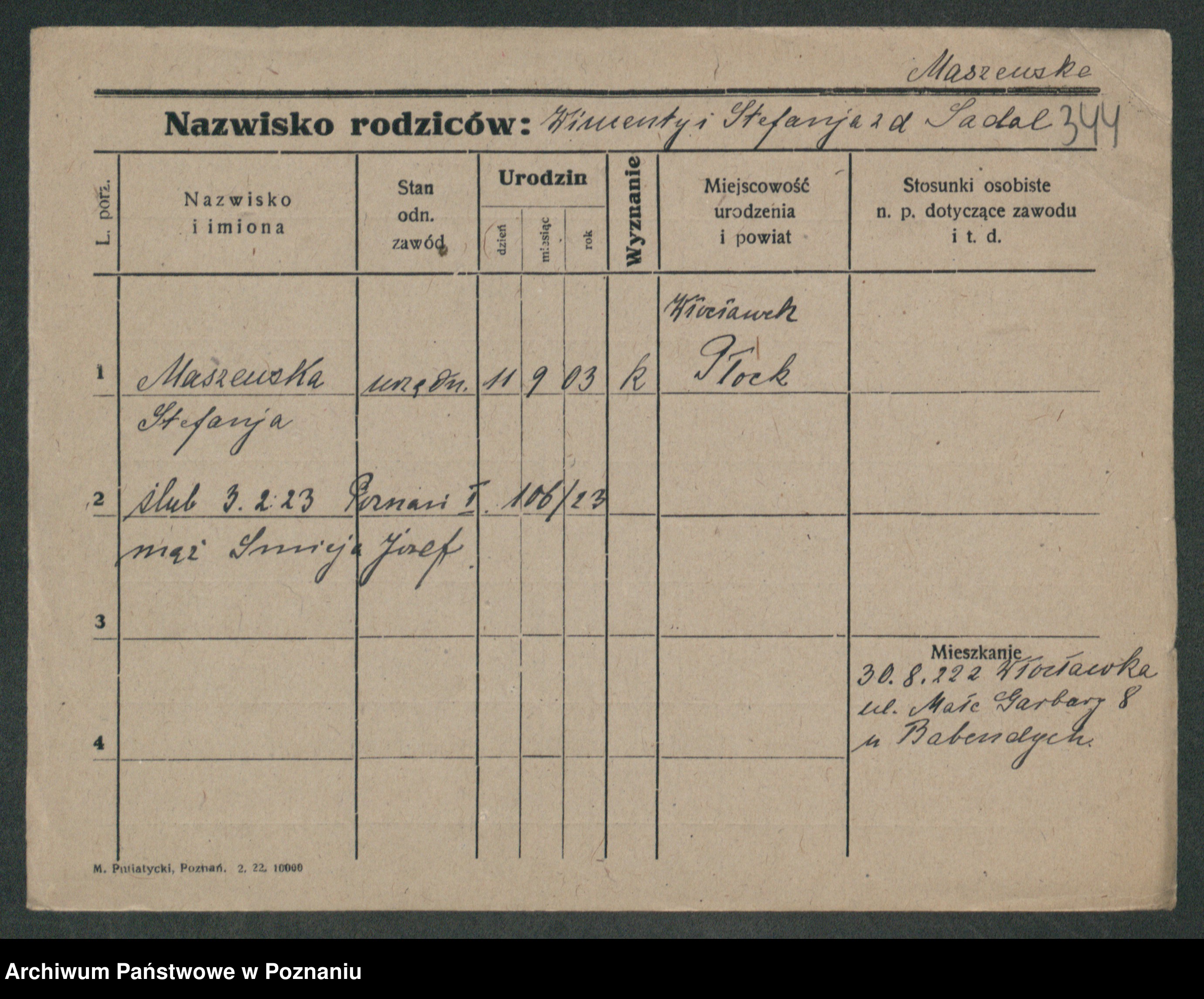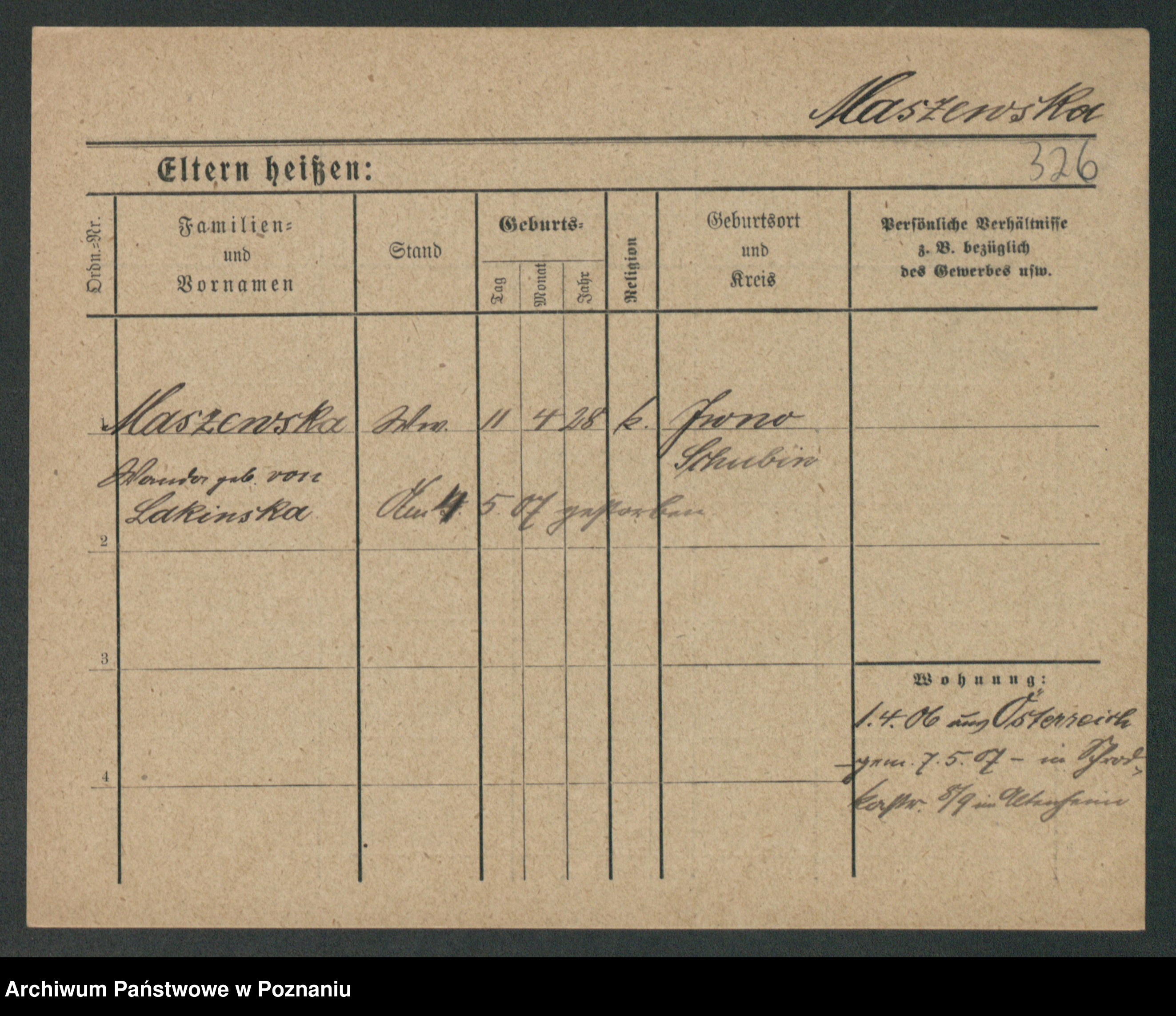 Maslowski zd. Bojanowska von Iv. Tomaszewska, Josefa