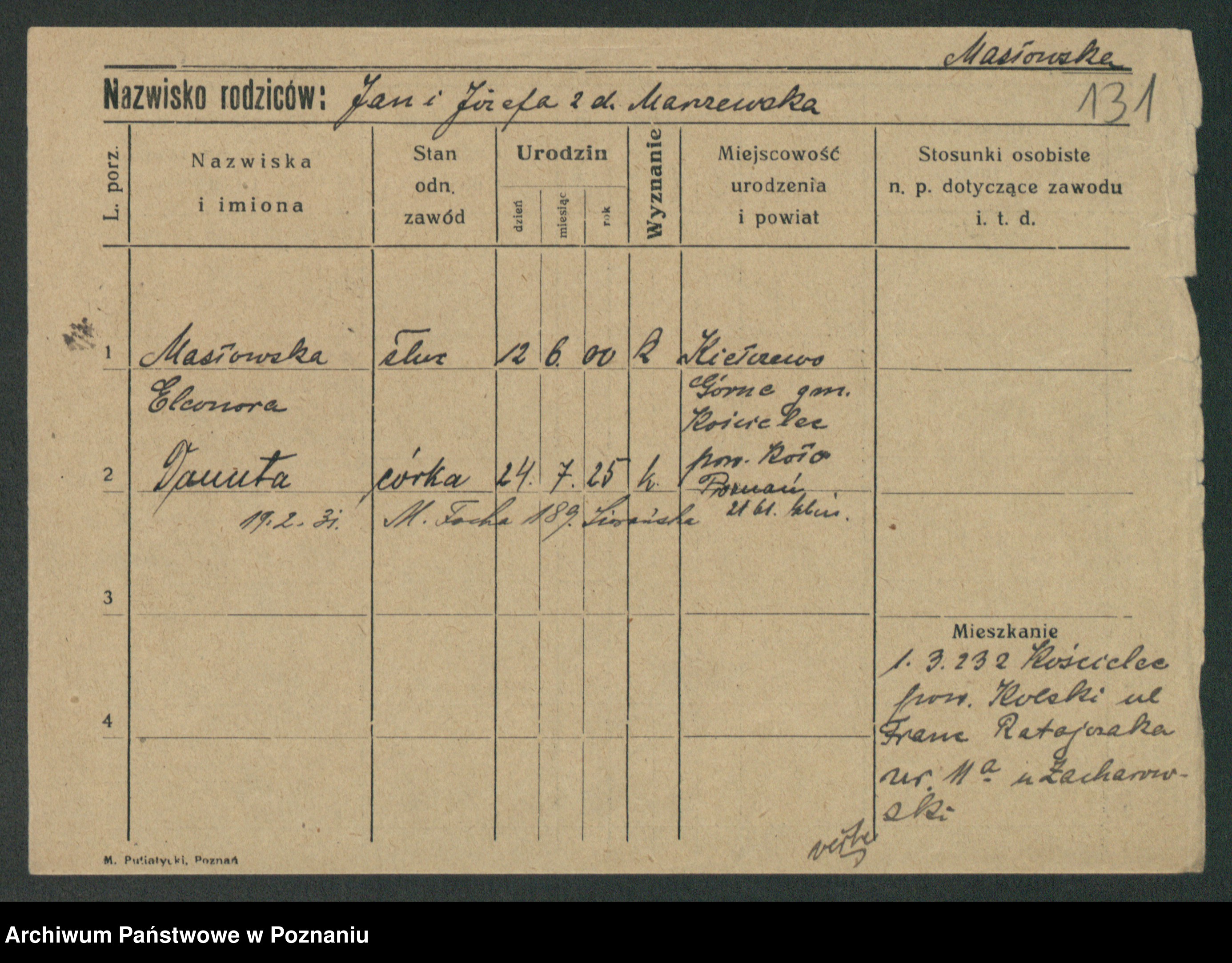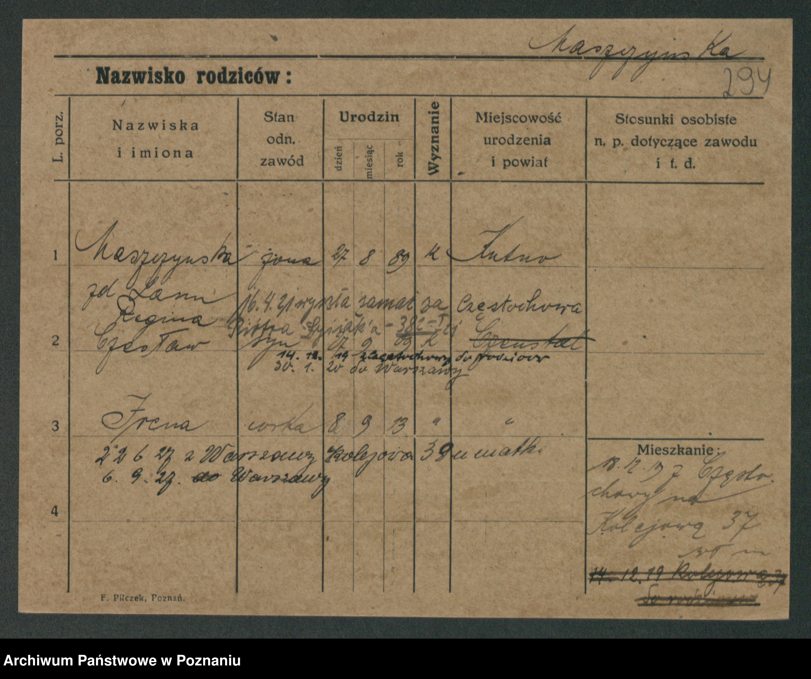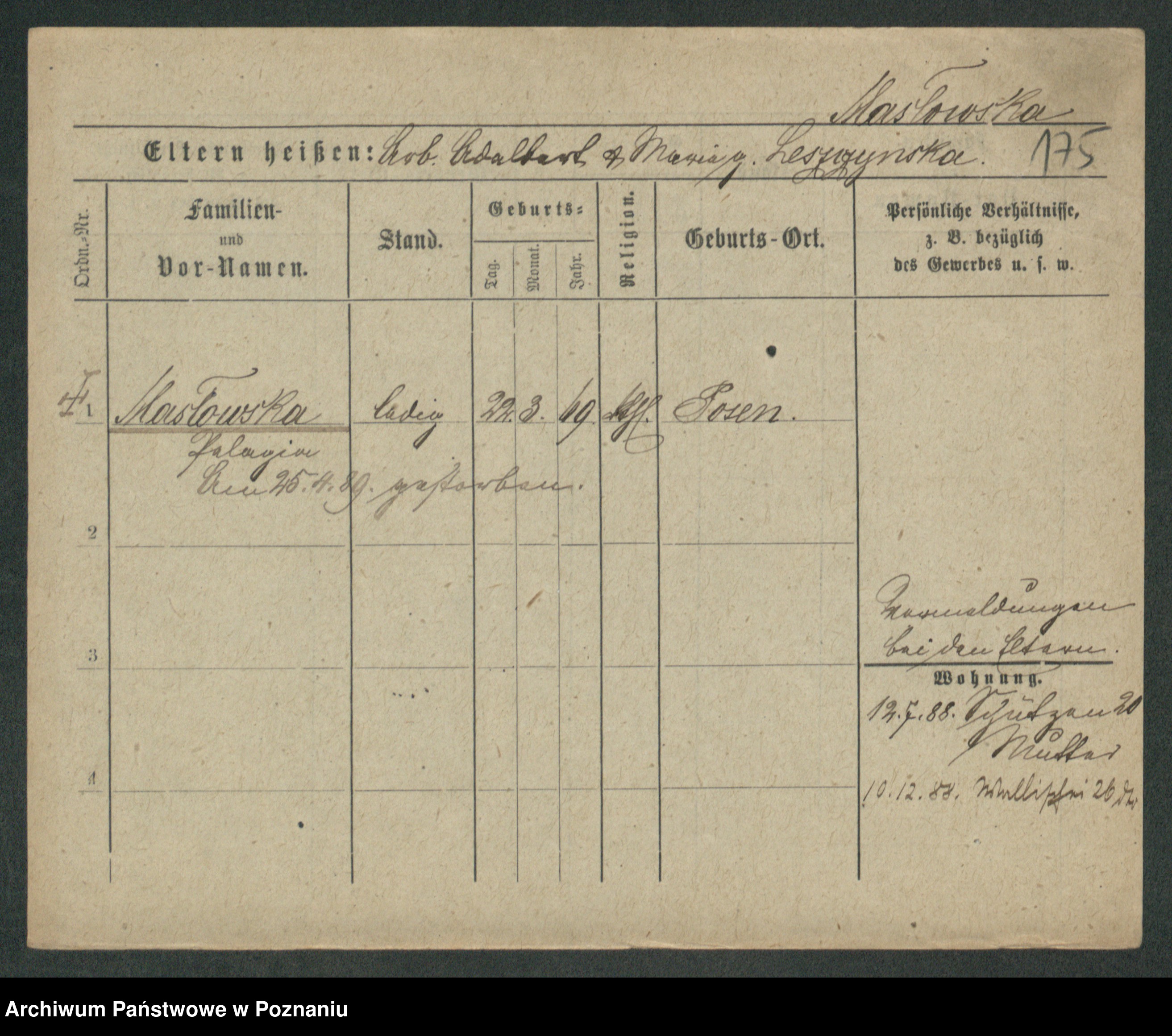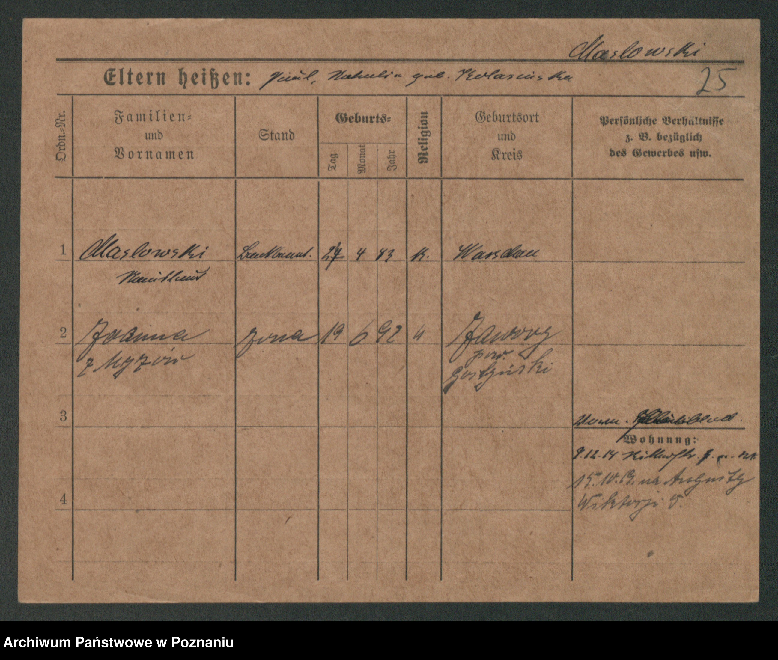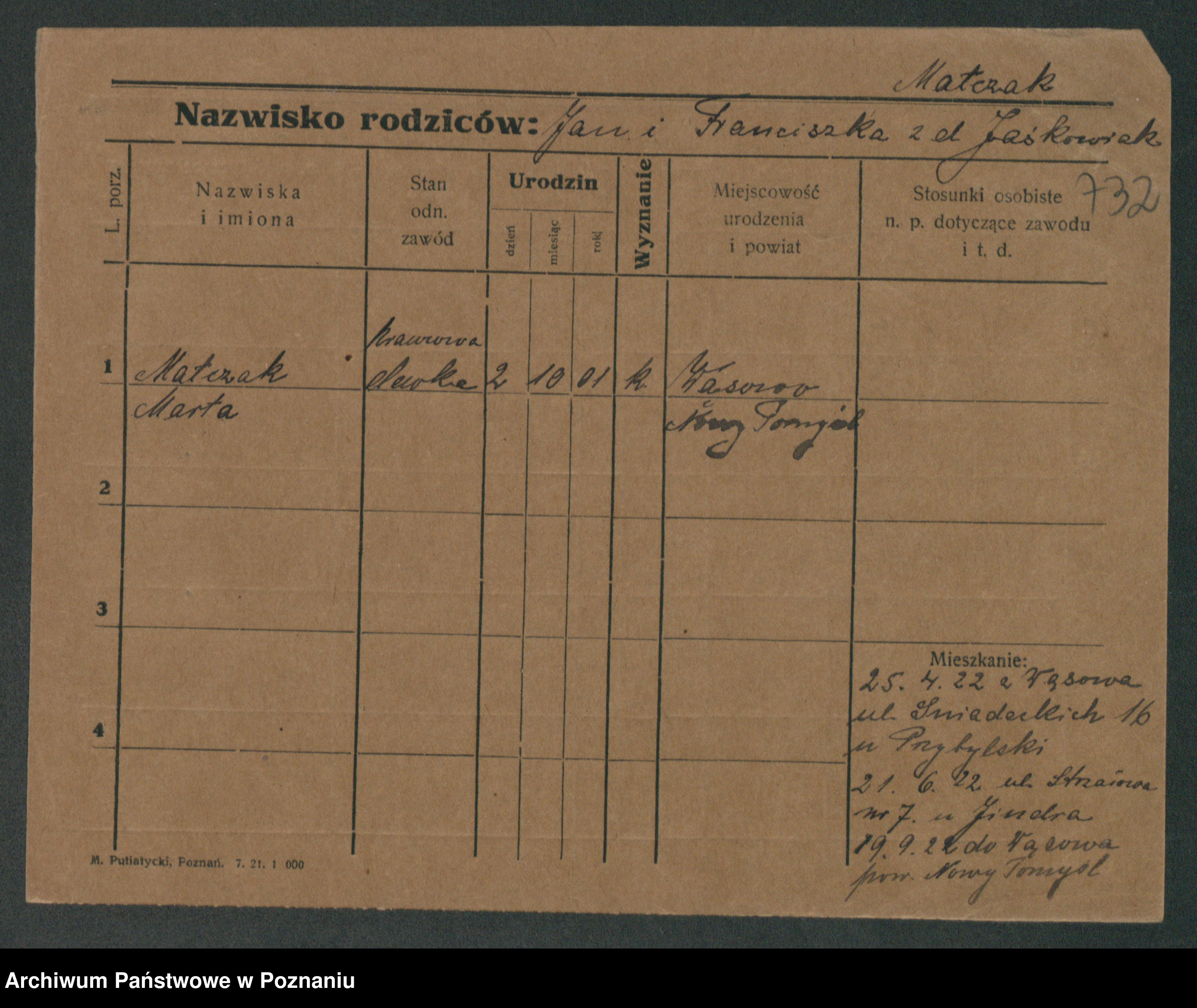 Maslowski zd. Bojanowska von Iv. Tomaszewska, Josefa