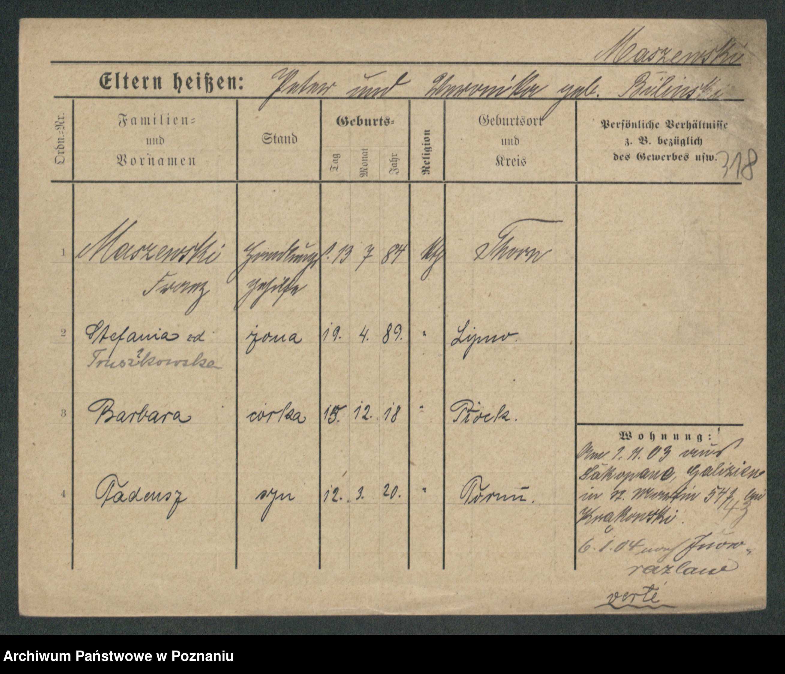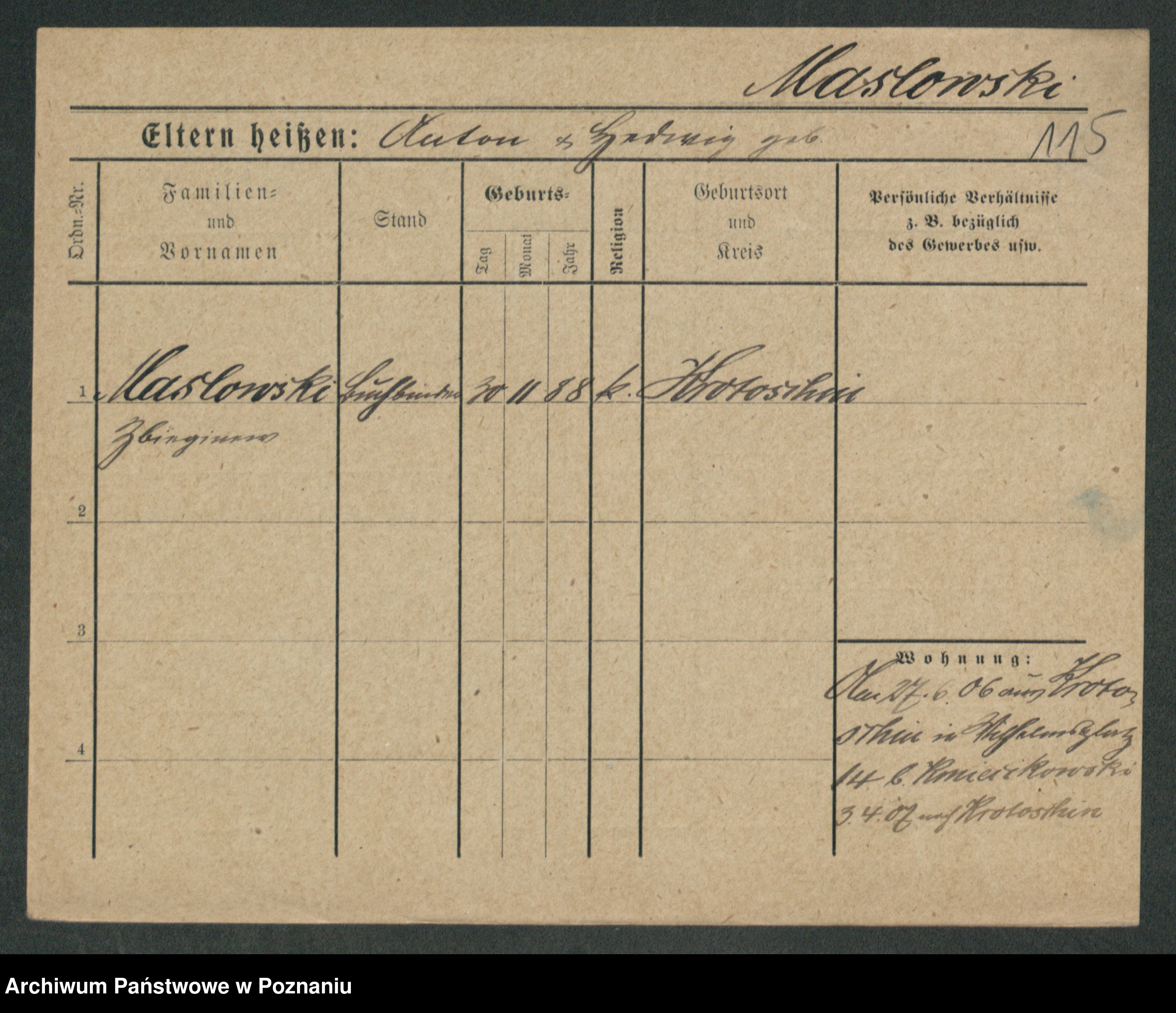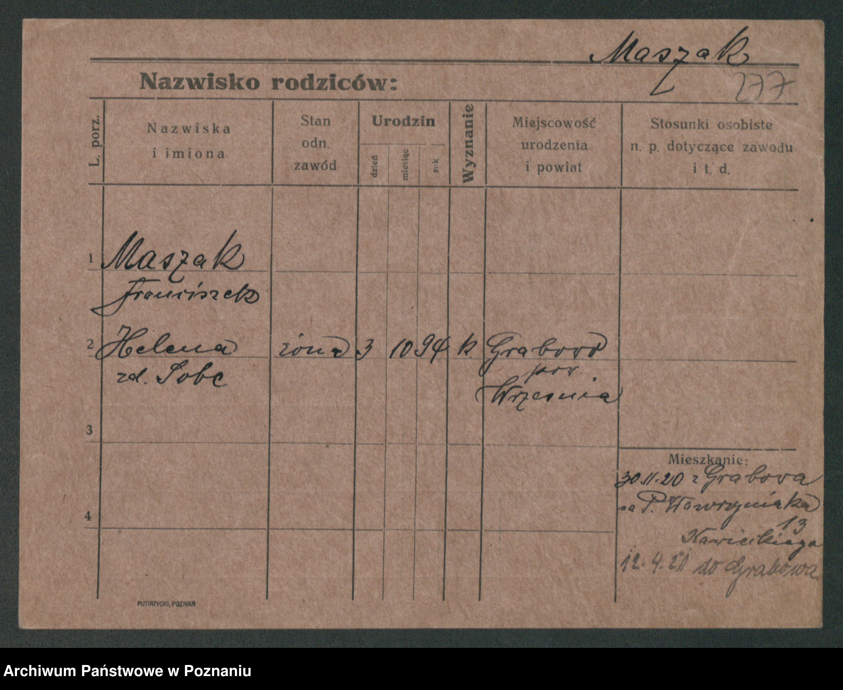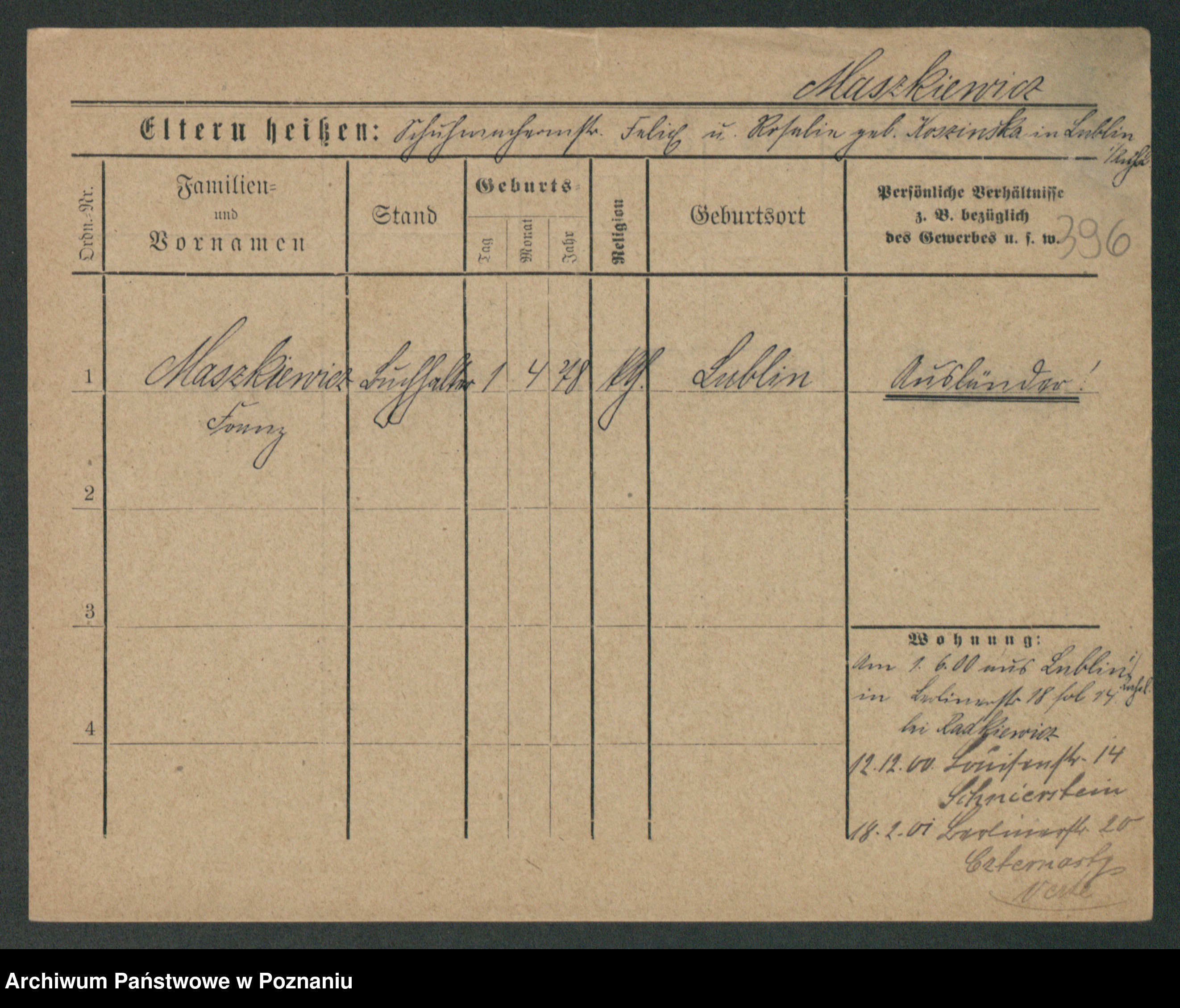 Maslowski zd. Bojanowska von Iv. Tomaszewska, Josefa