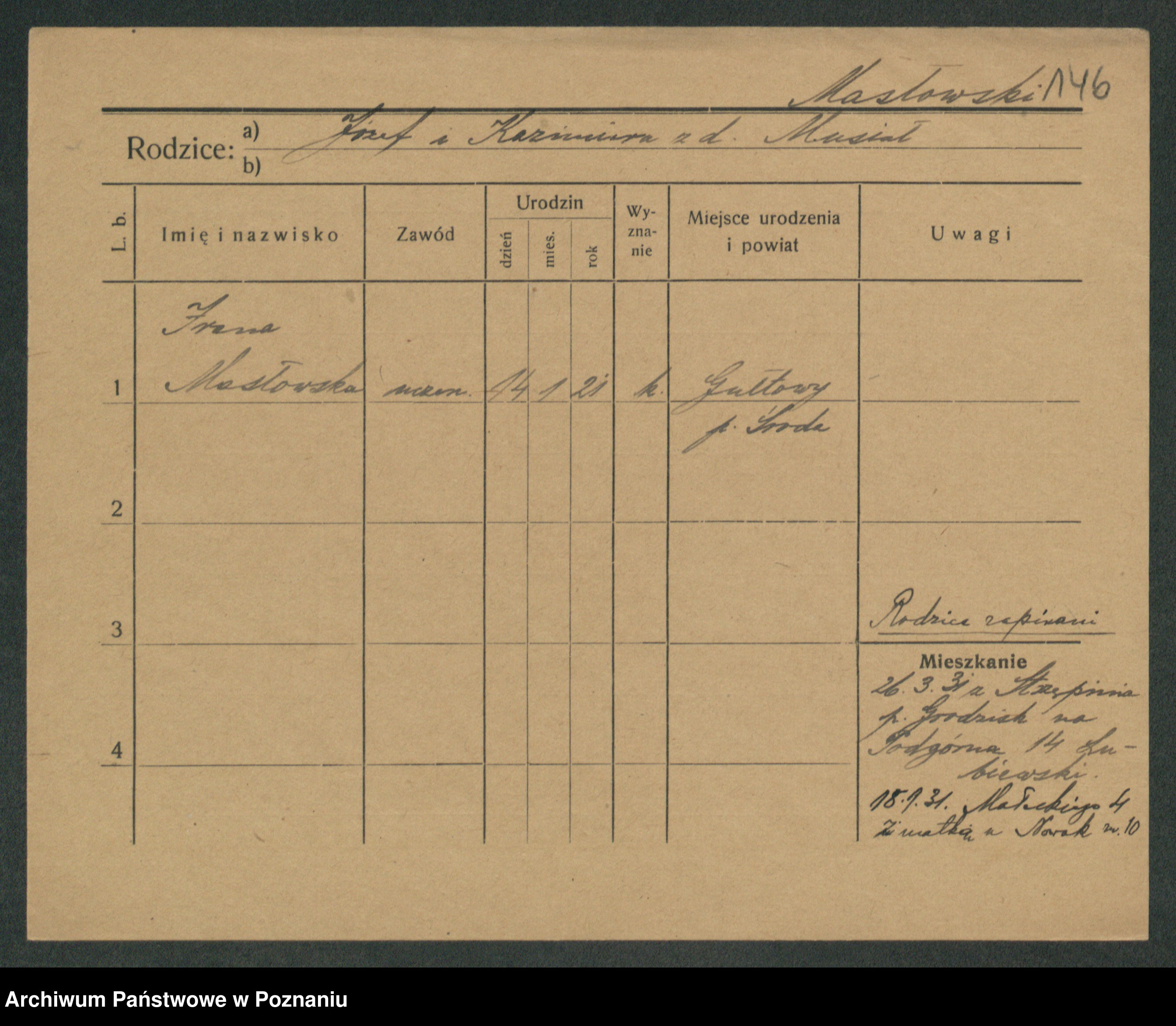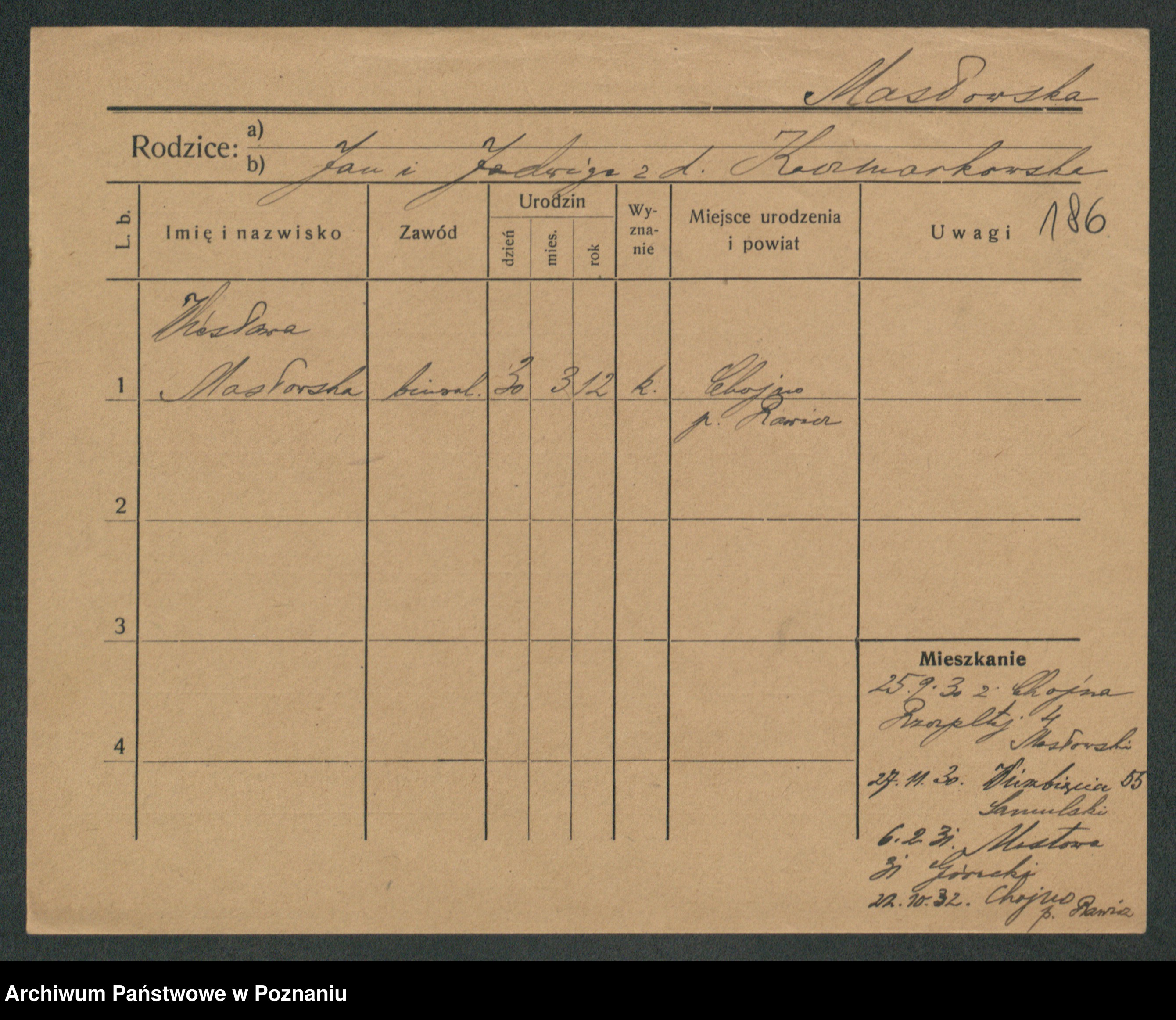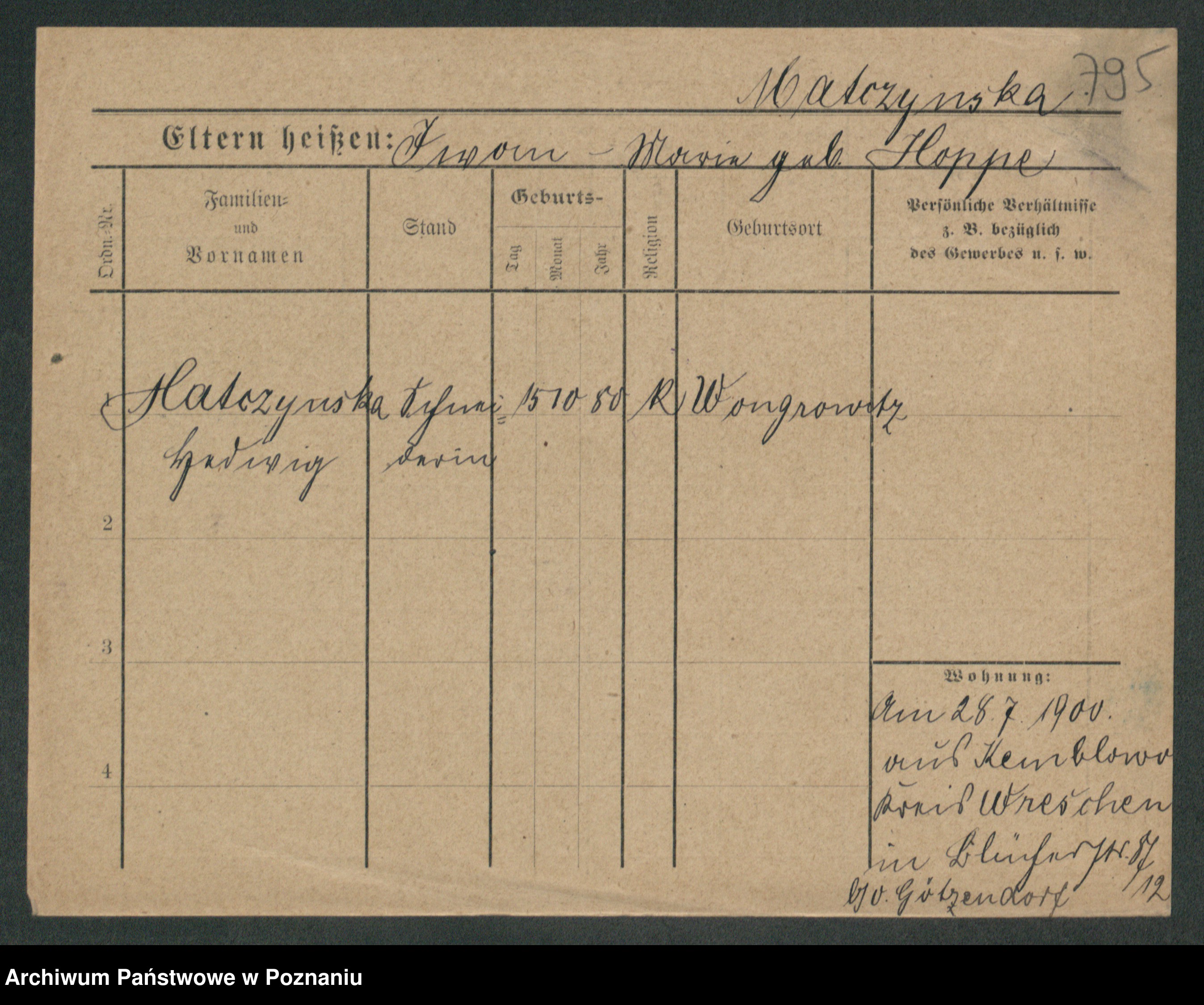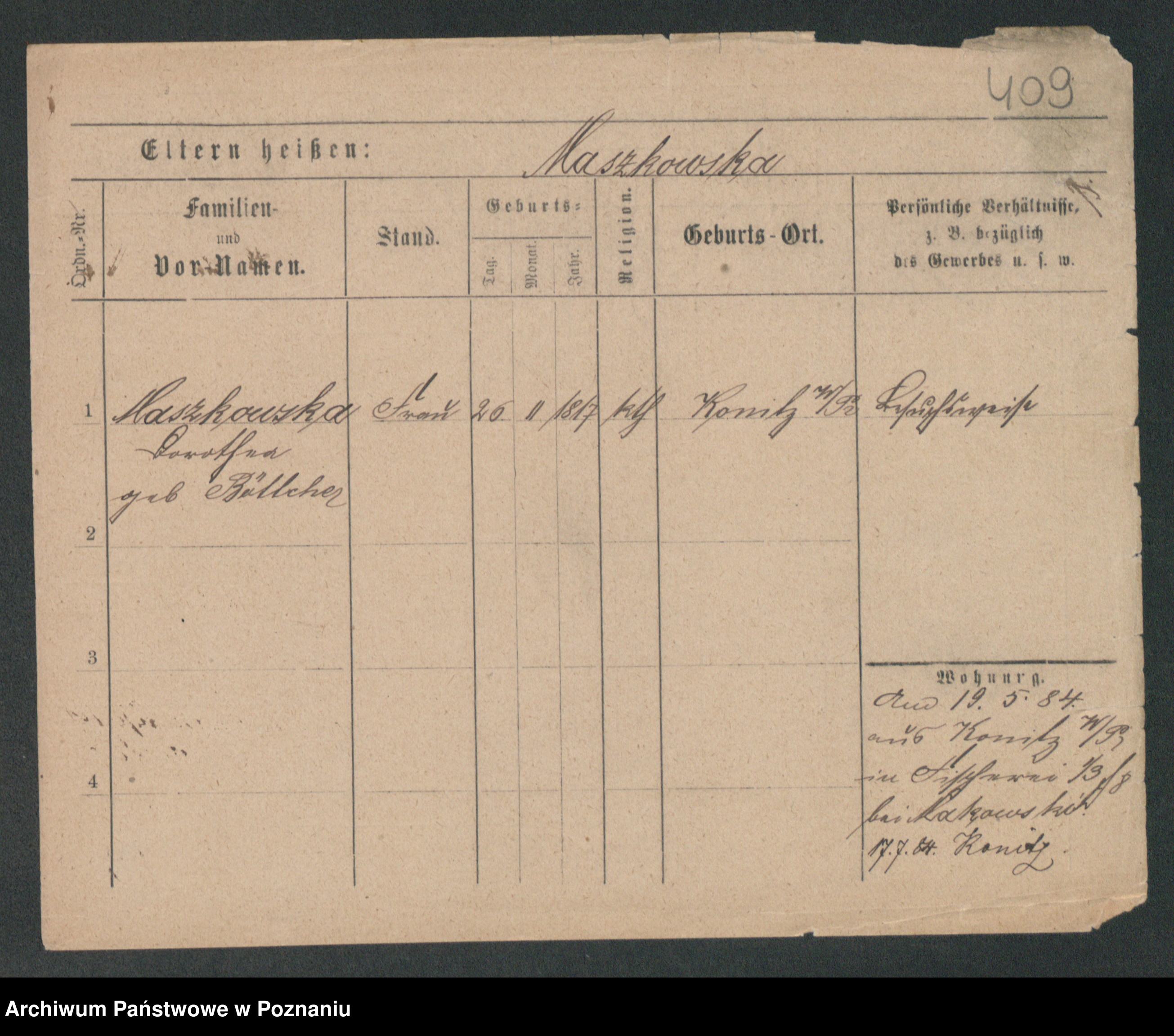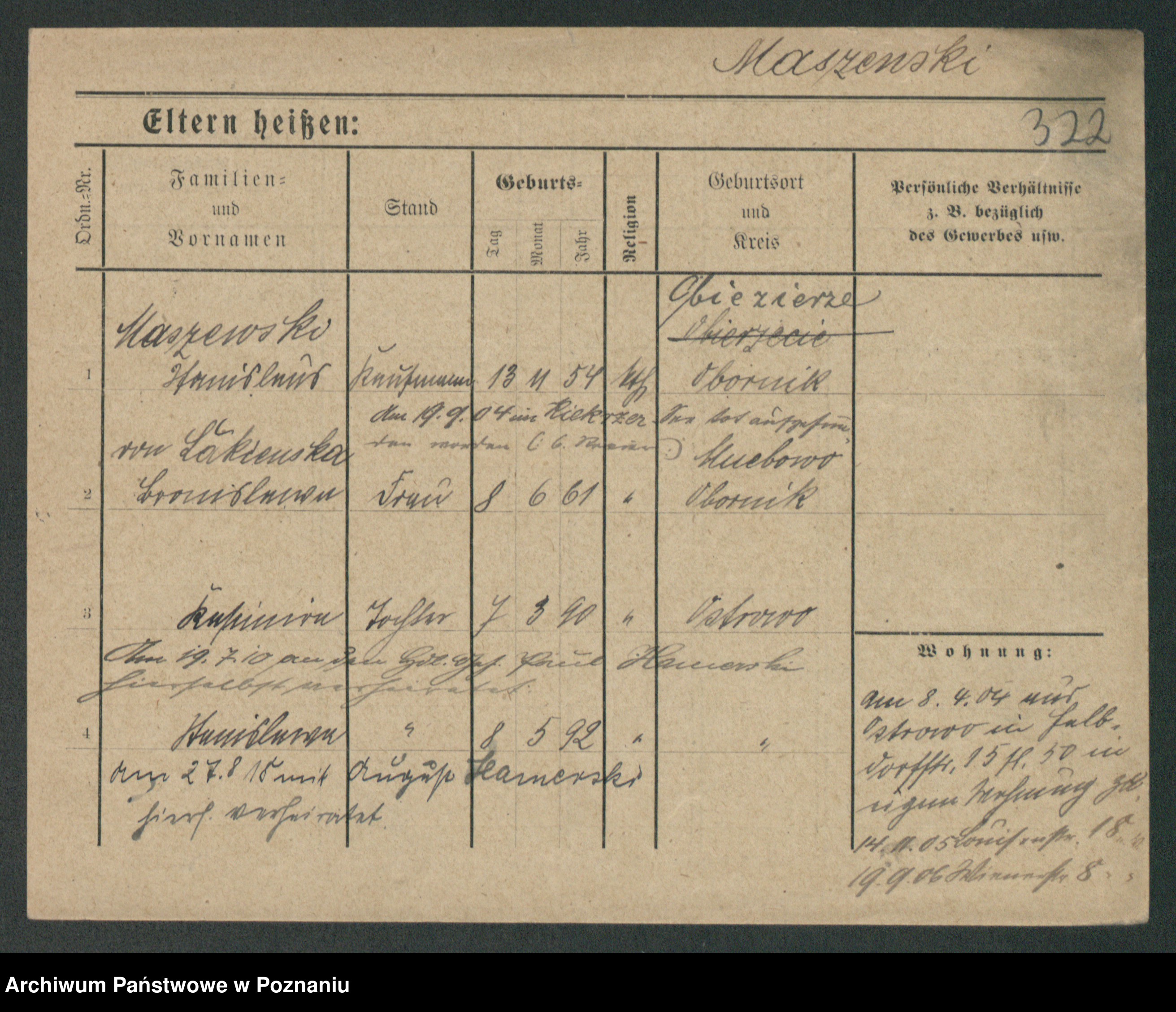 Maslowski zd. Bojanowska von Iv. Tomaszewska, Josefa