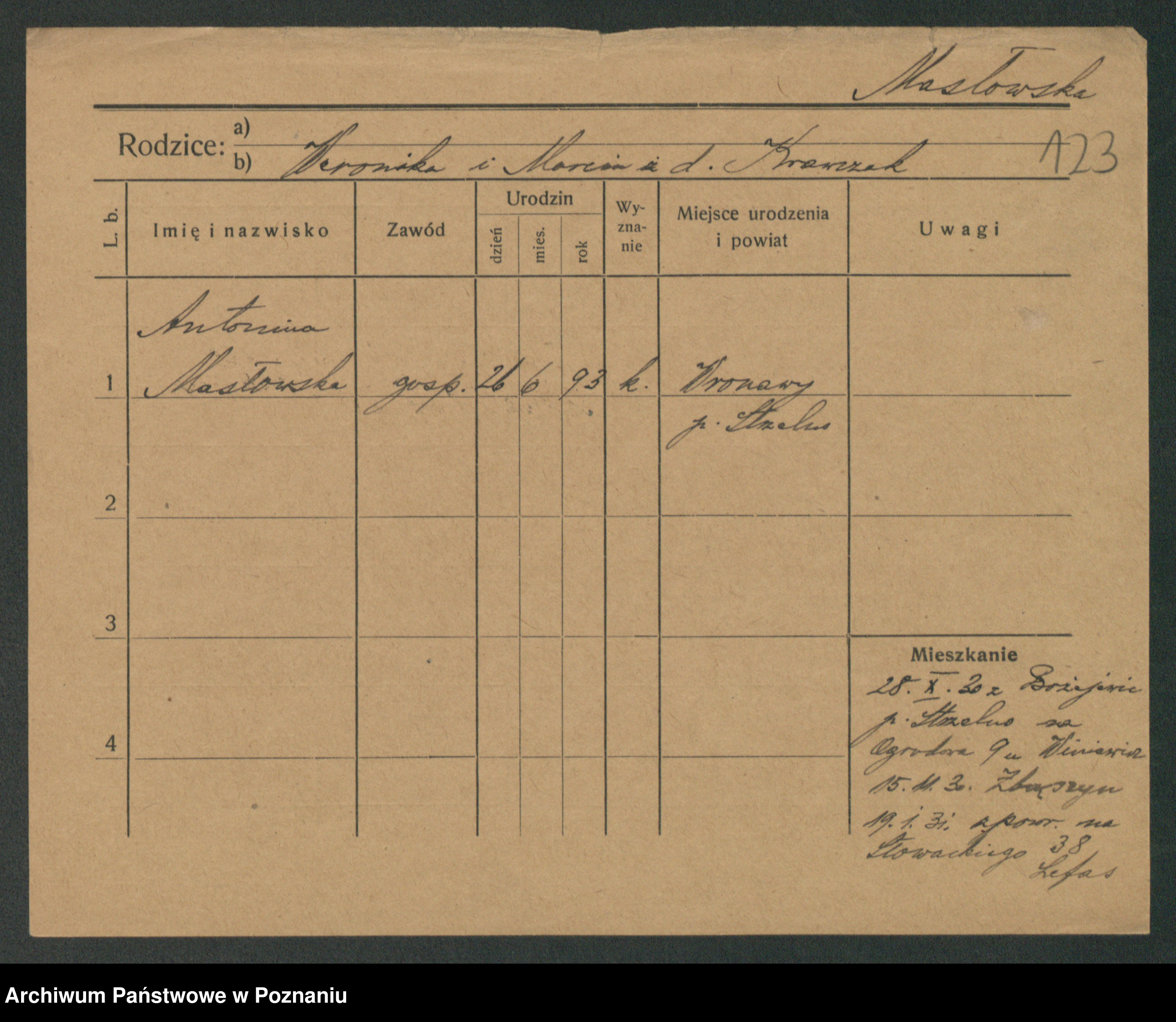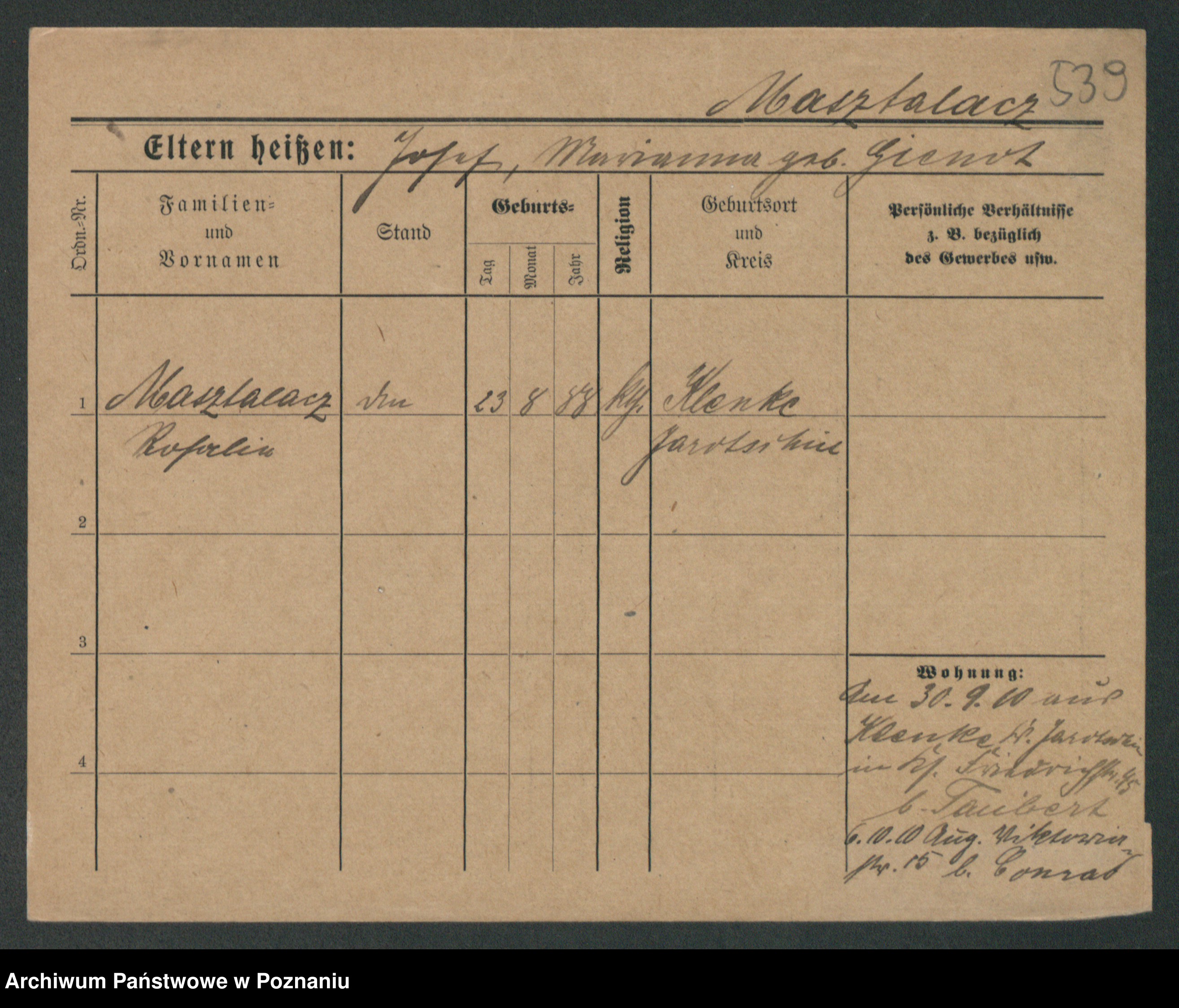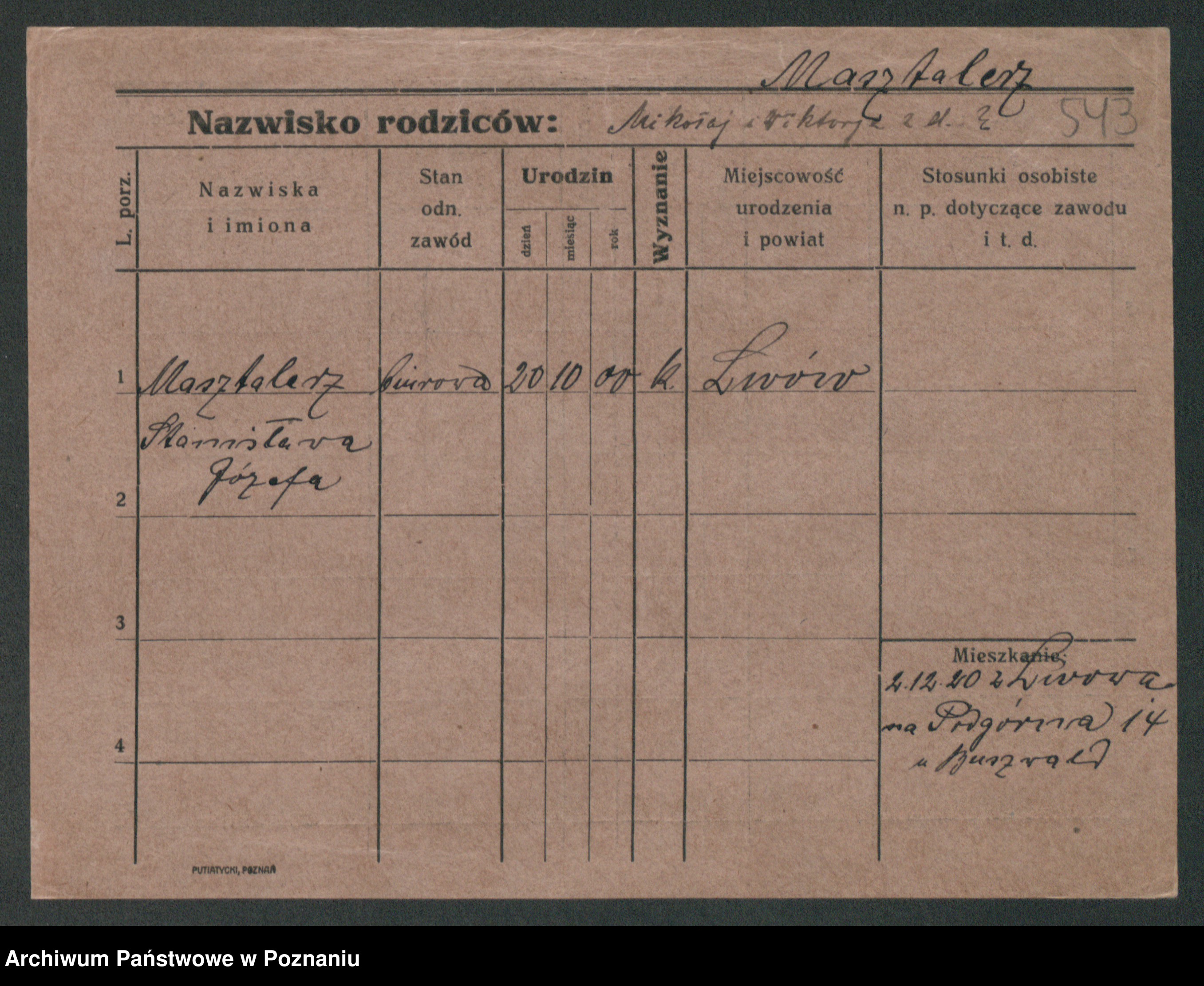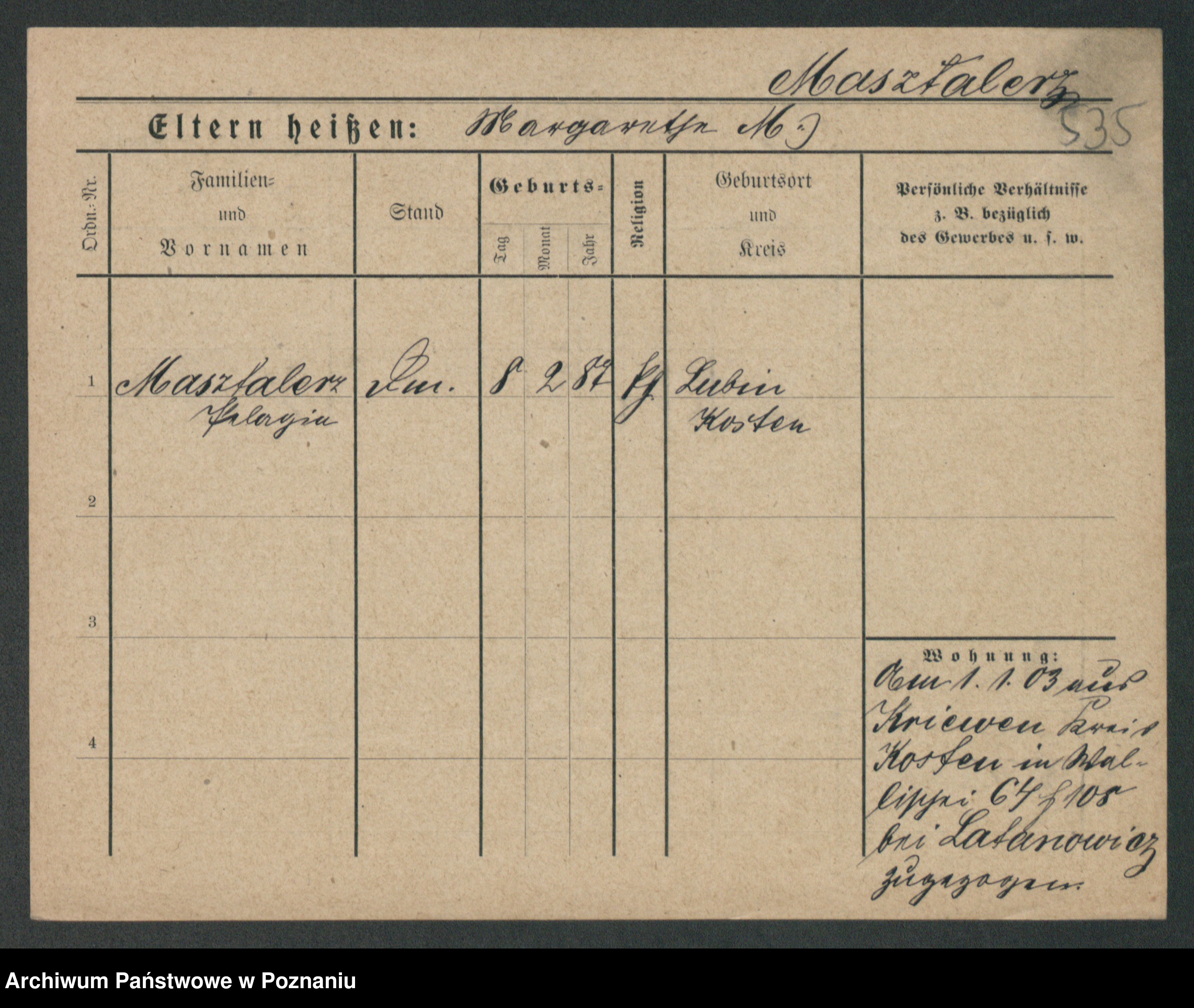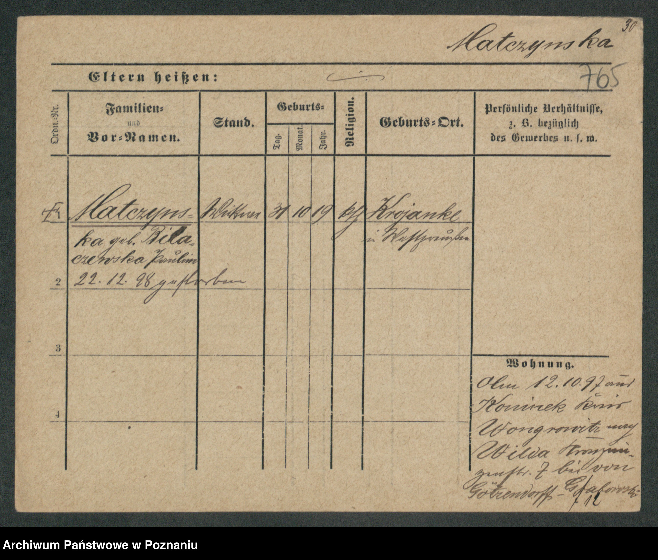 Maslowski zd. Bojanowska von Iv. Tomaszewska, Josefa
