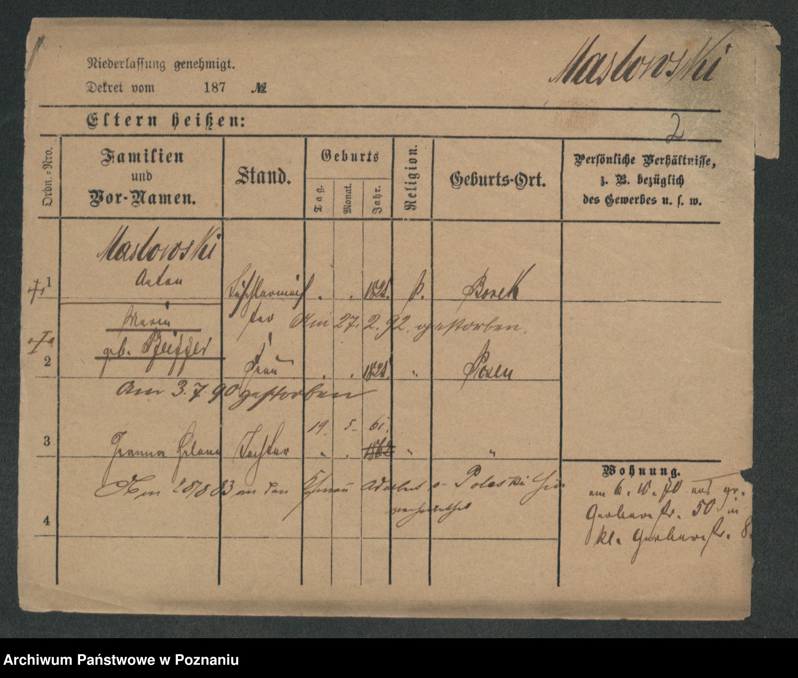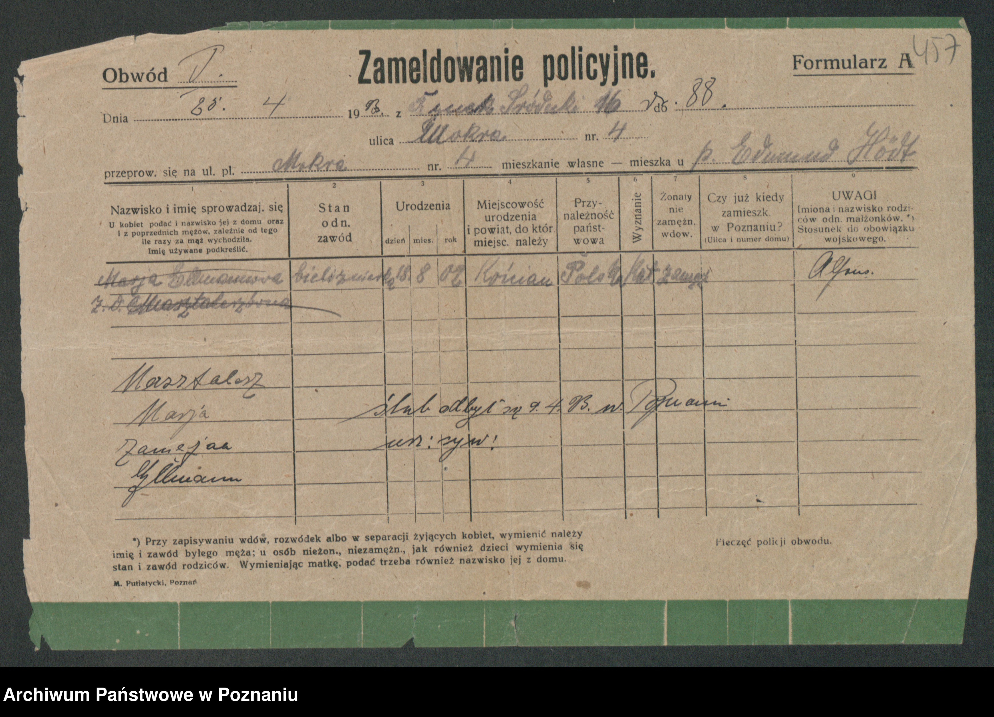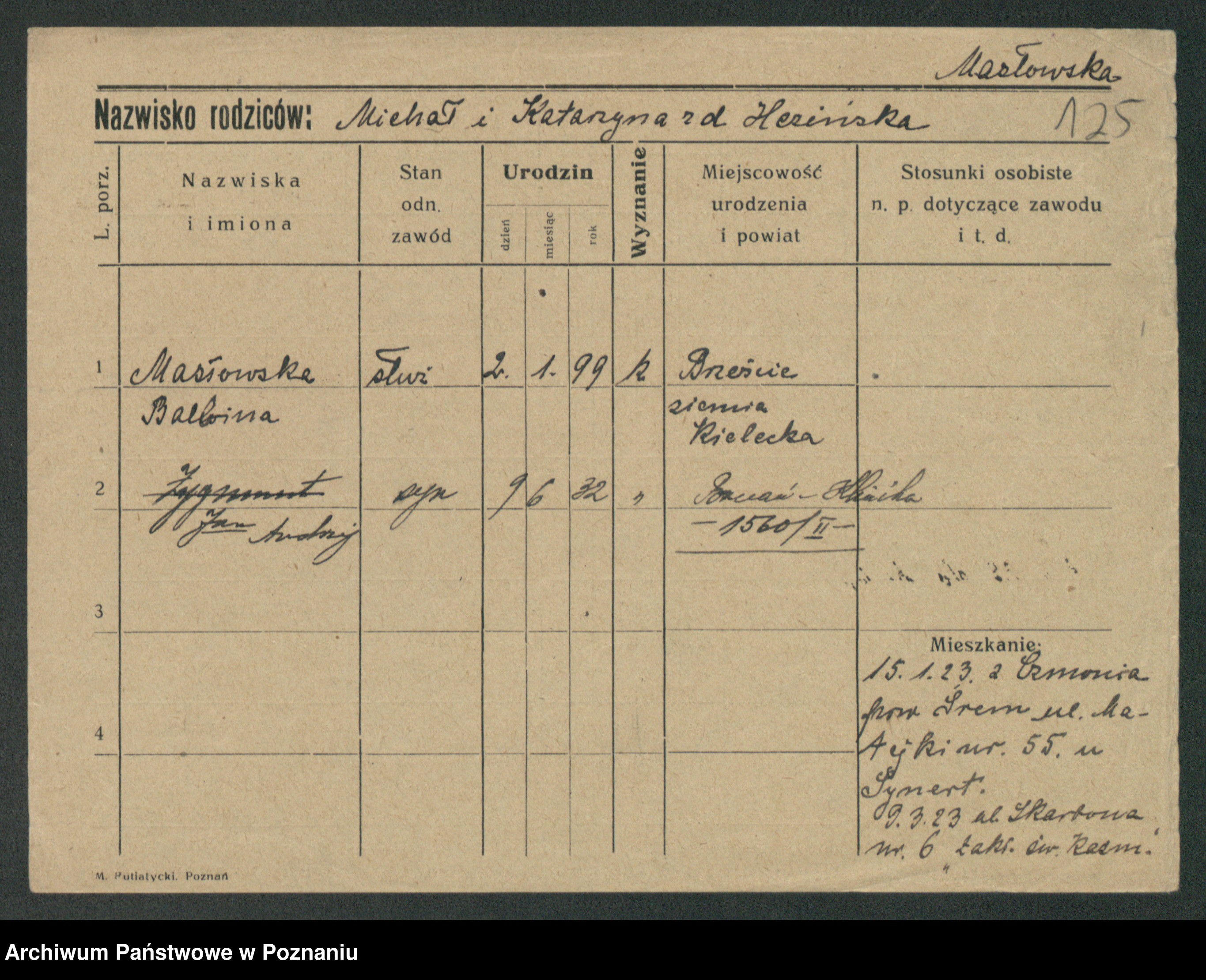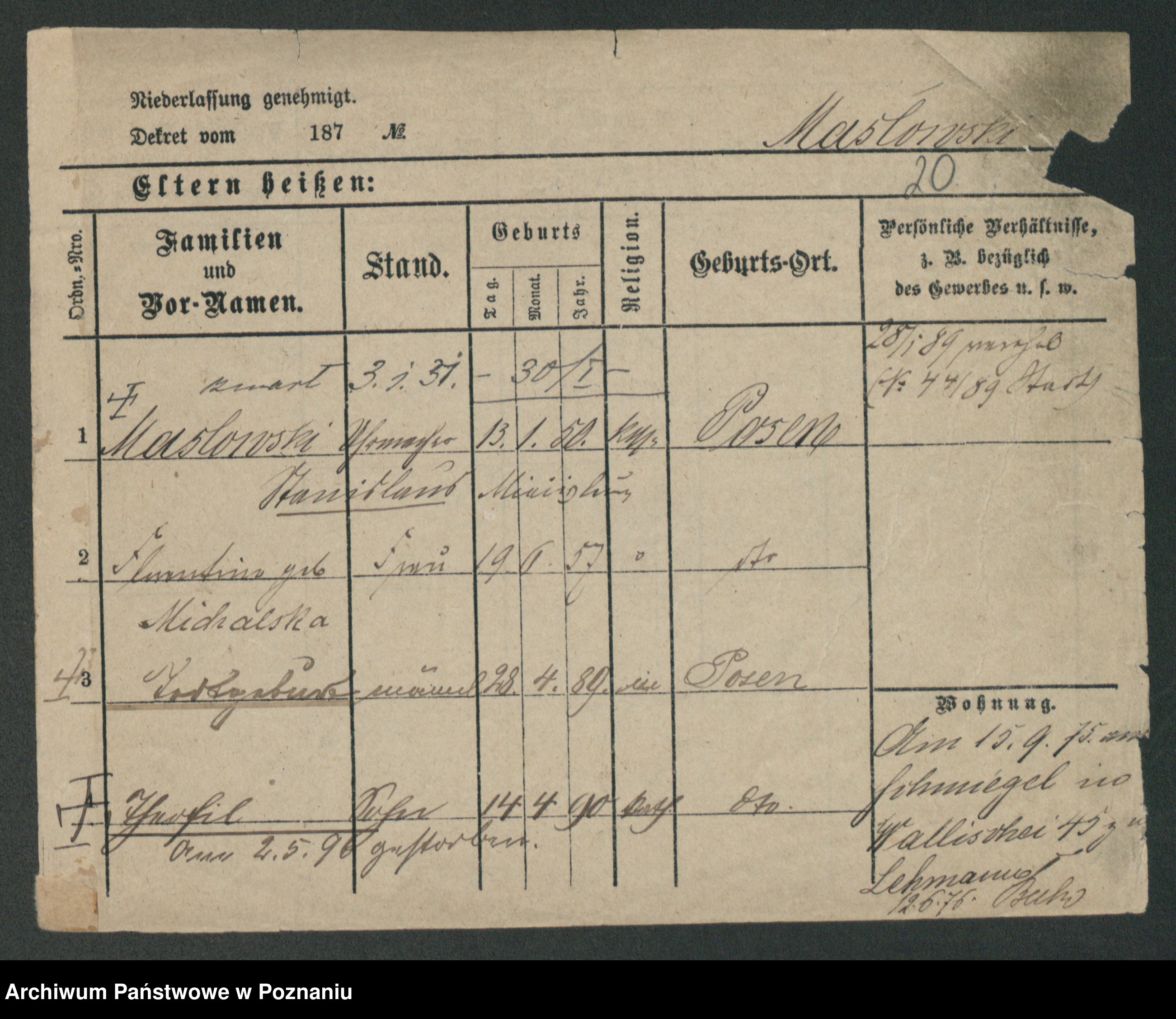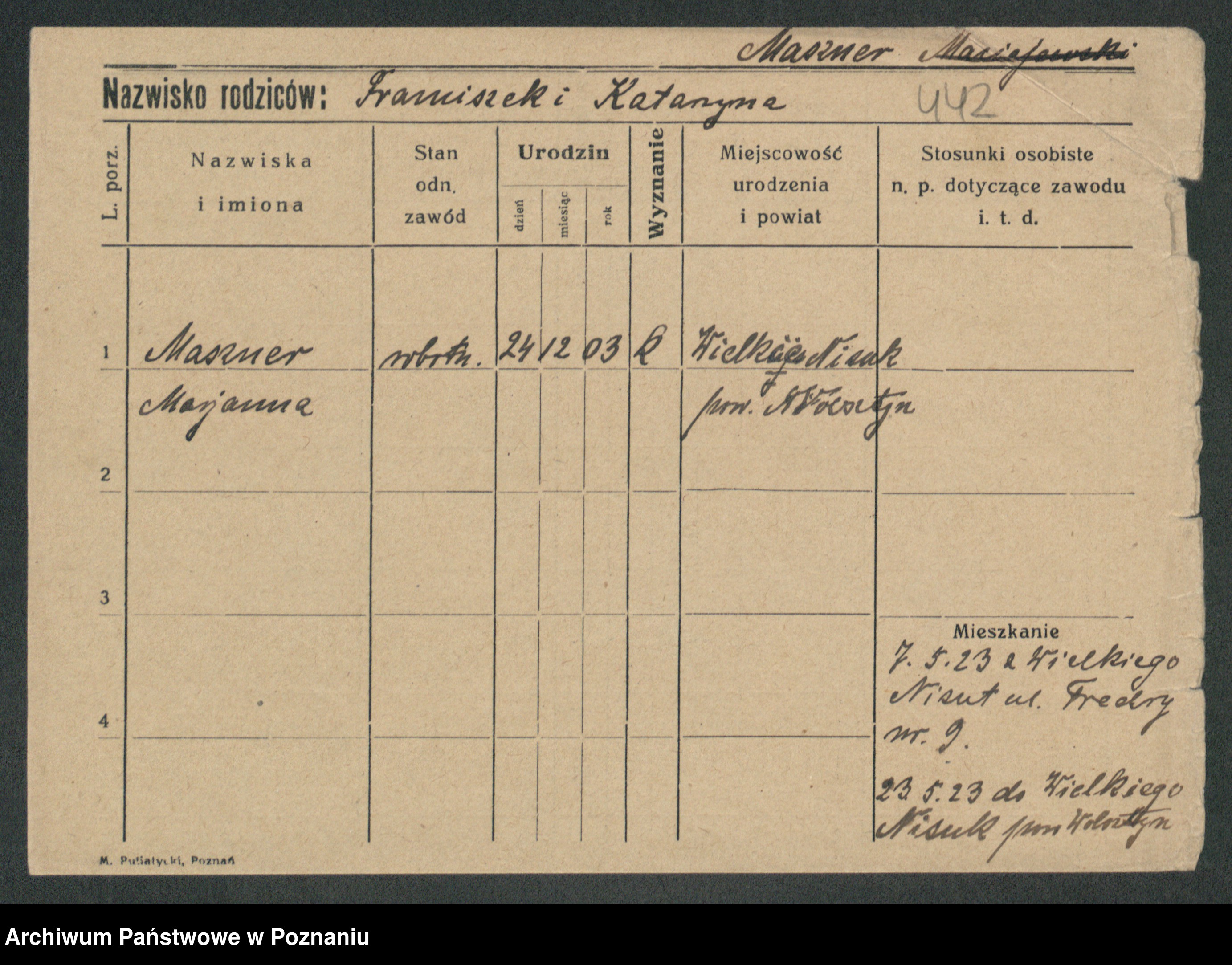 Maslowski zd. Bojanowska von Iv. Tomaszewska, Josefa