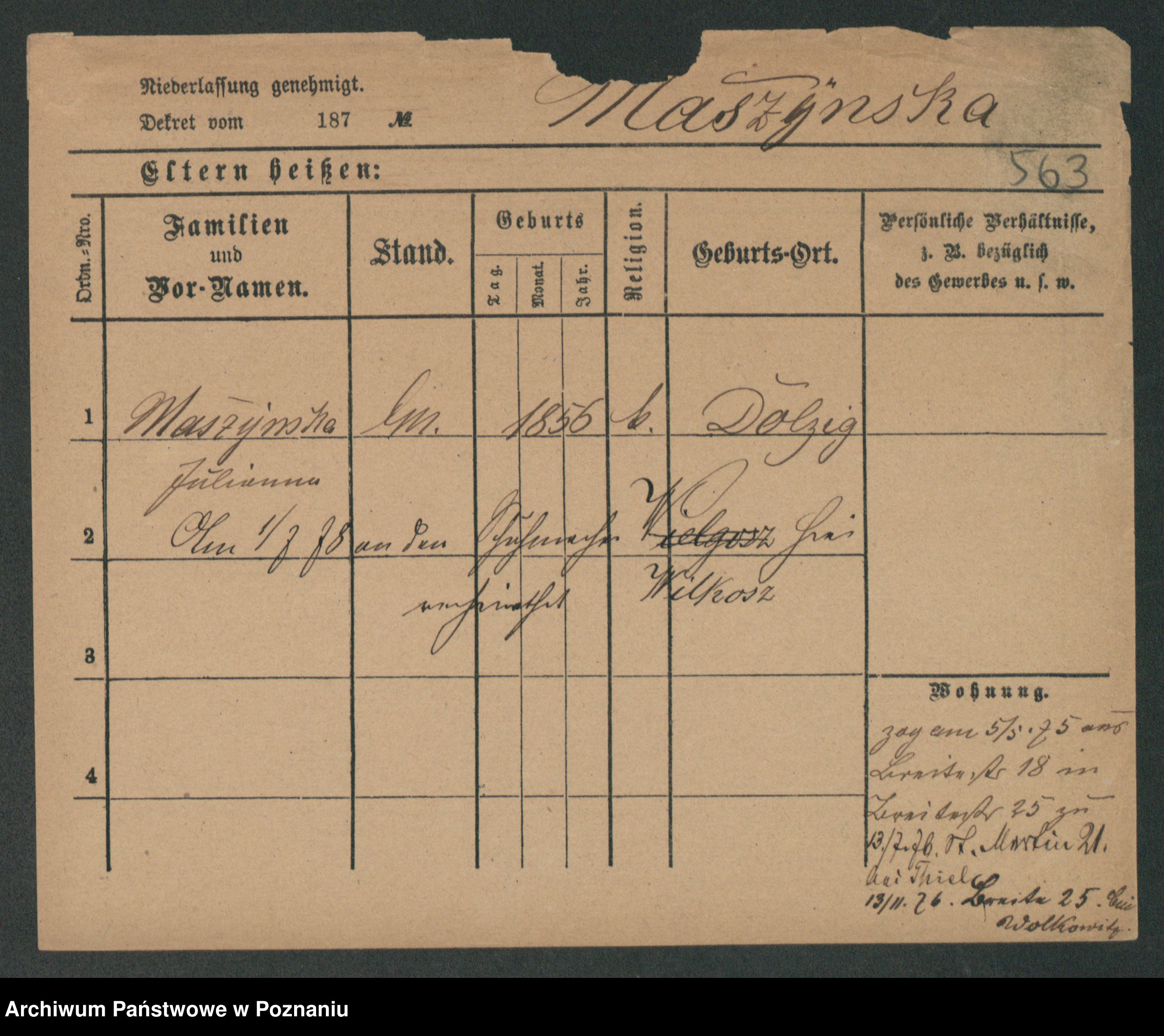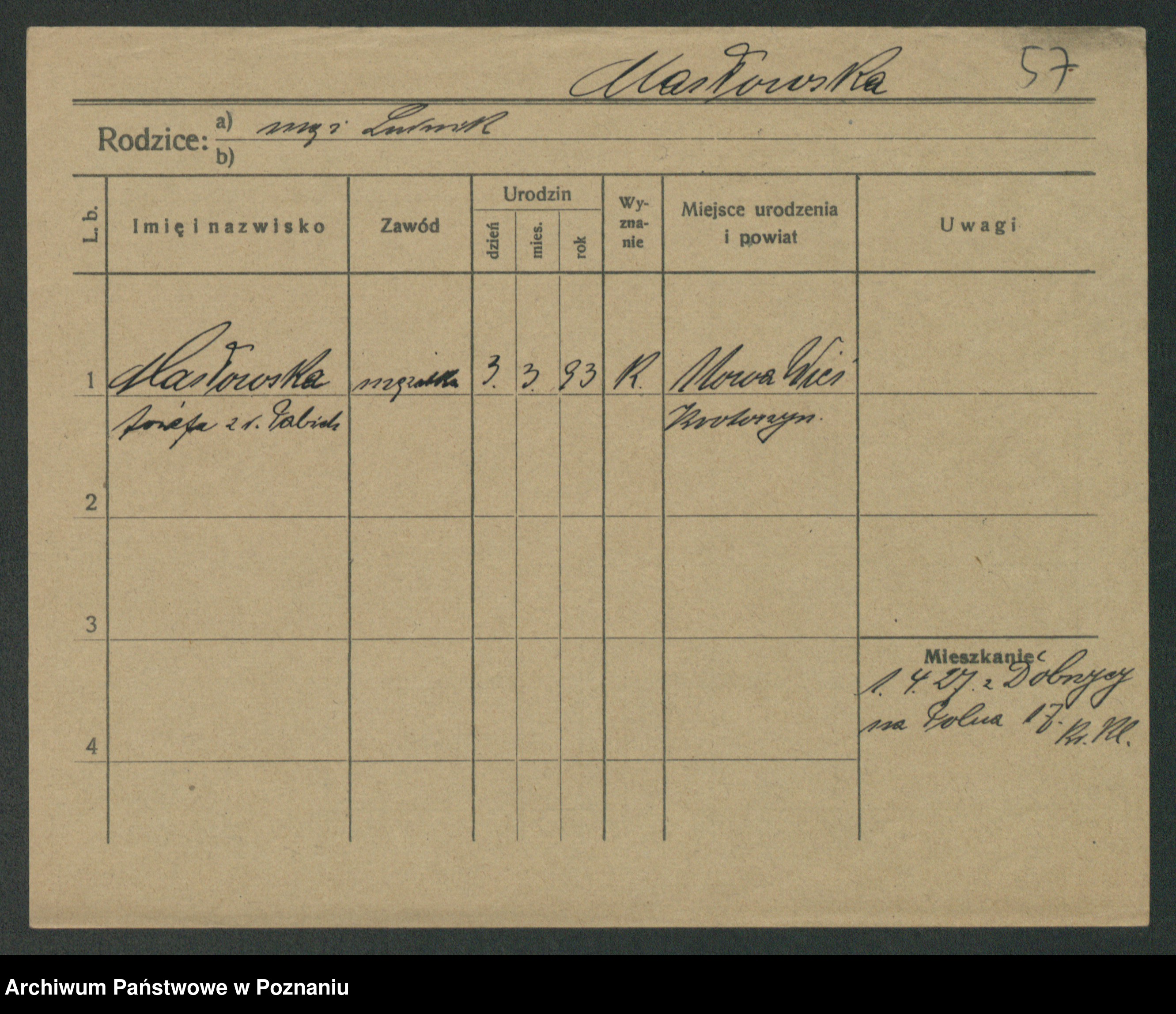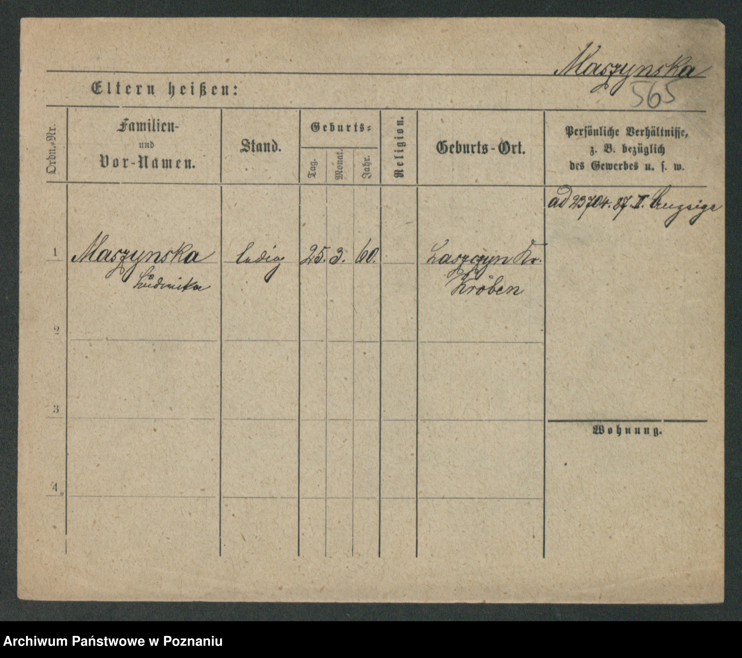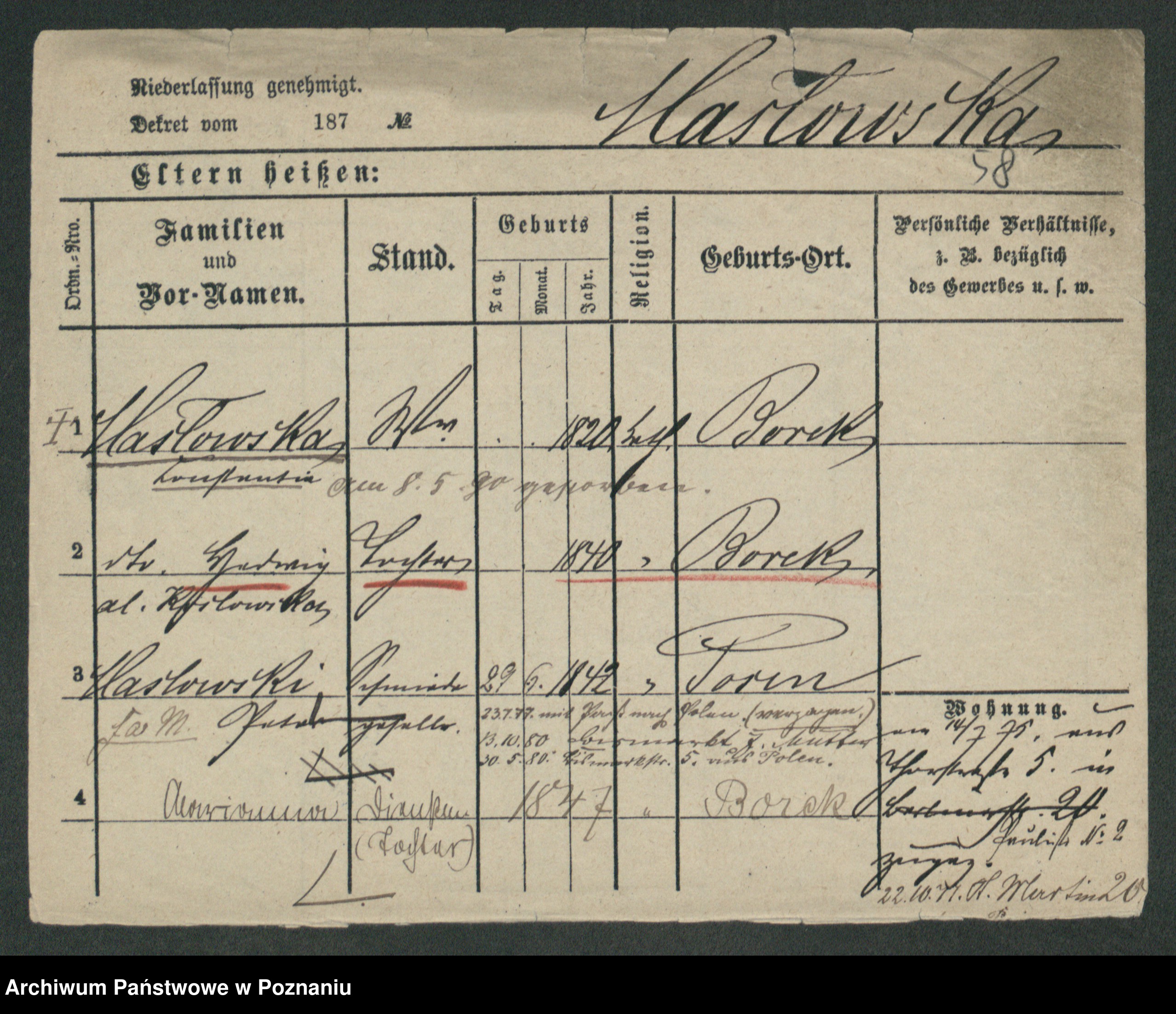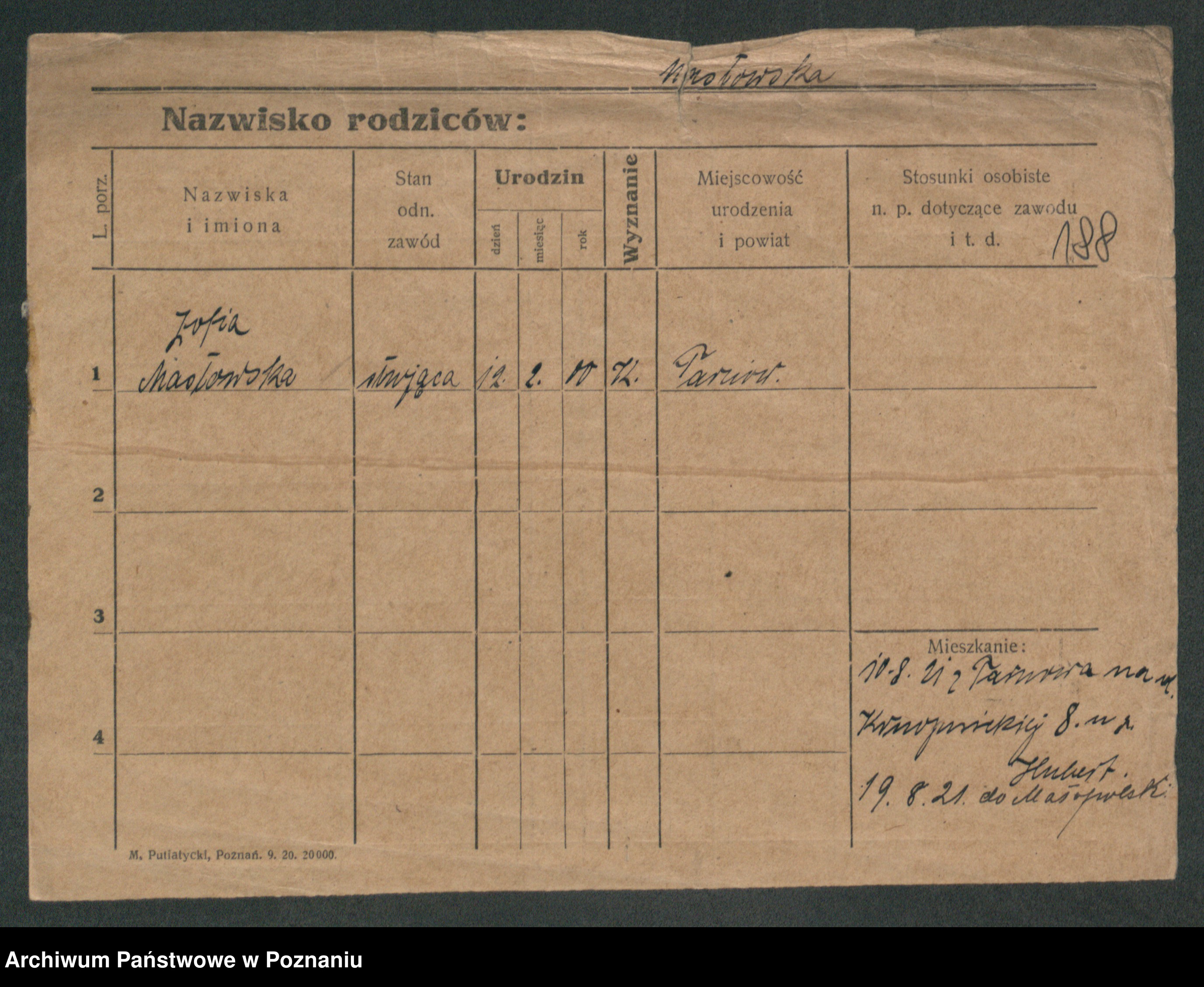 Maslowski zd. Bojanowska von Iv. Tomaszewska, Josefa