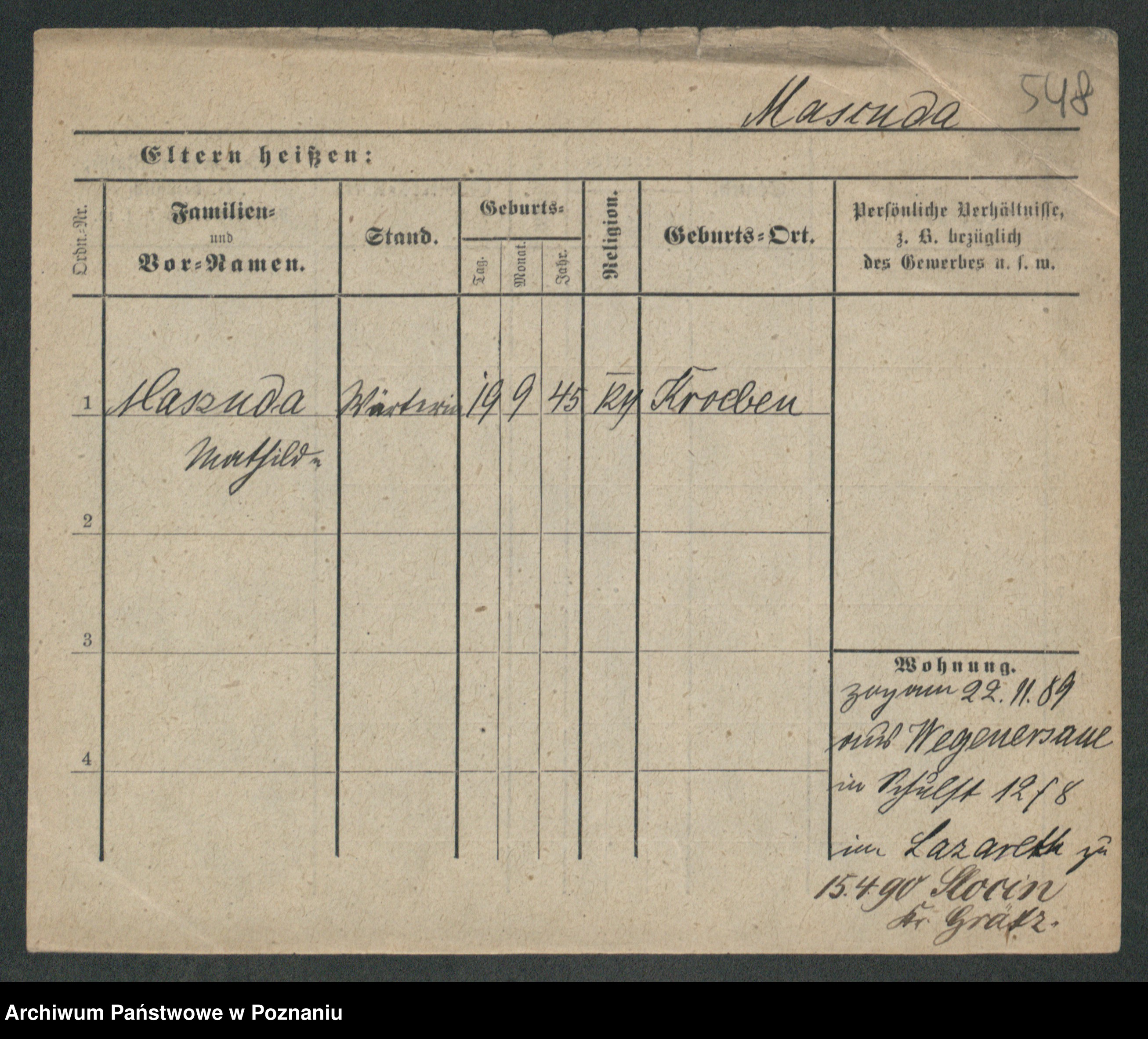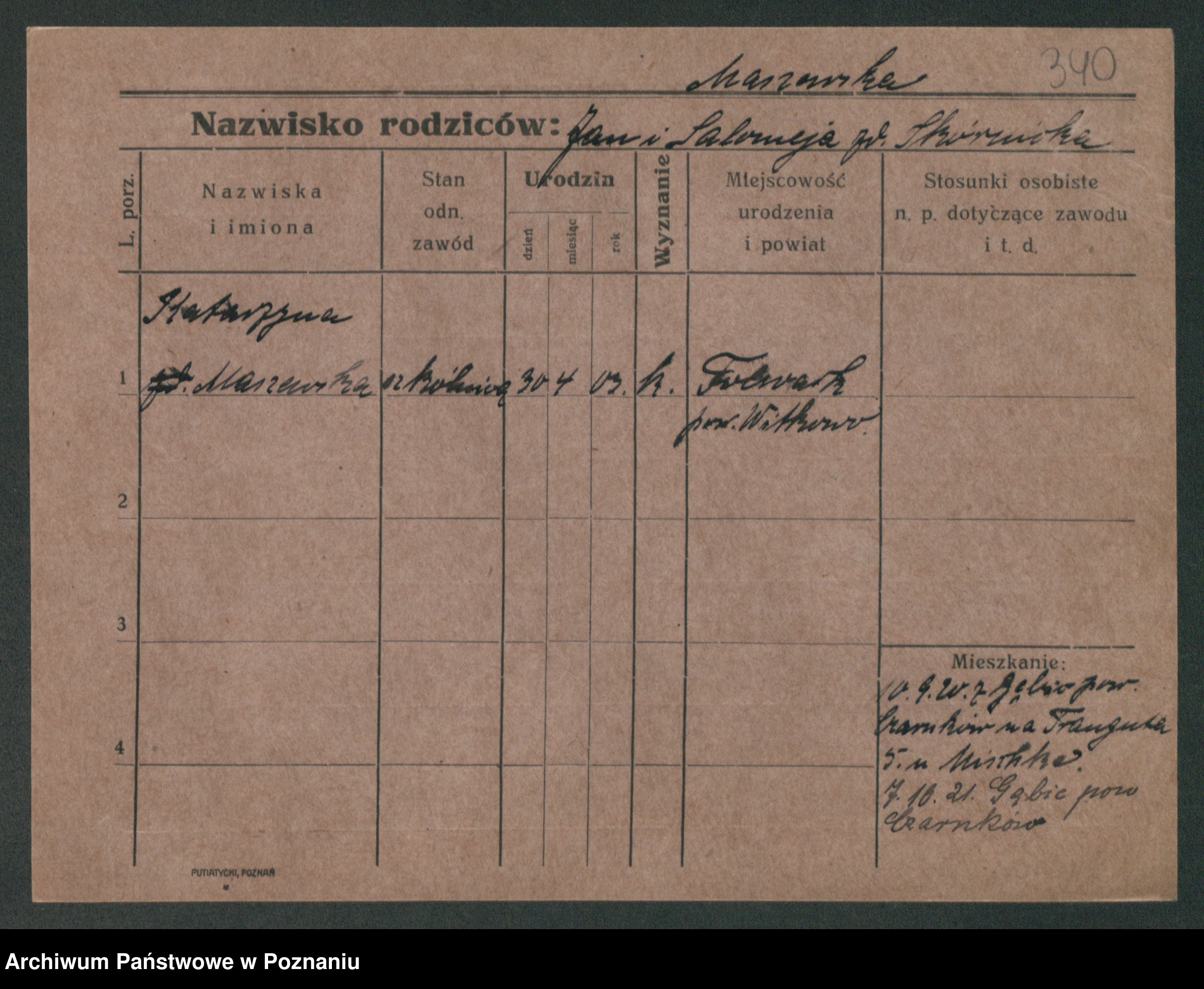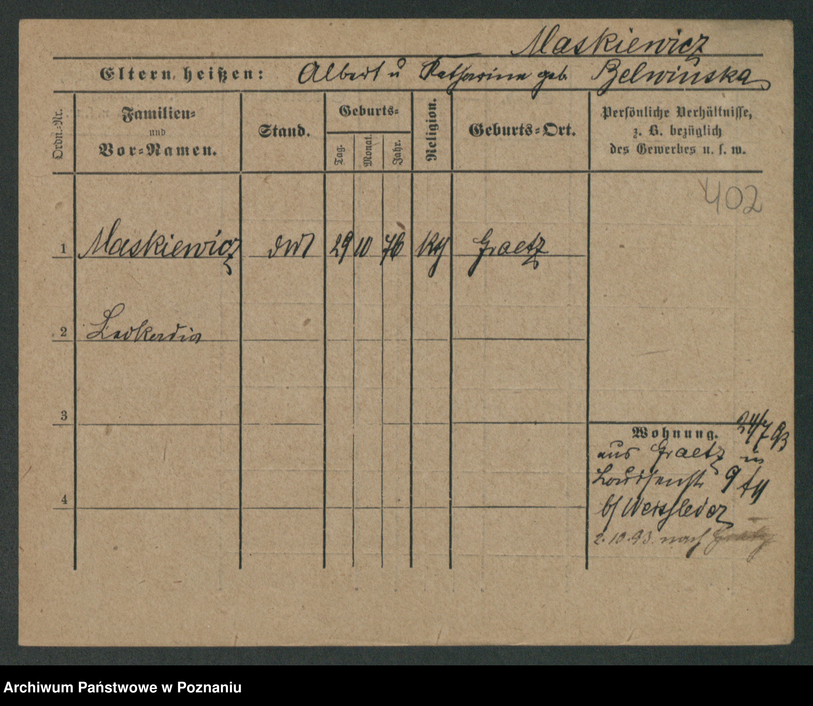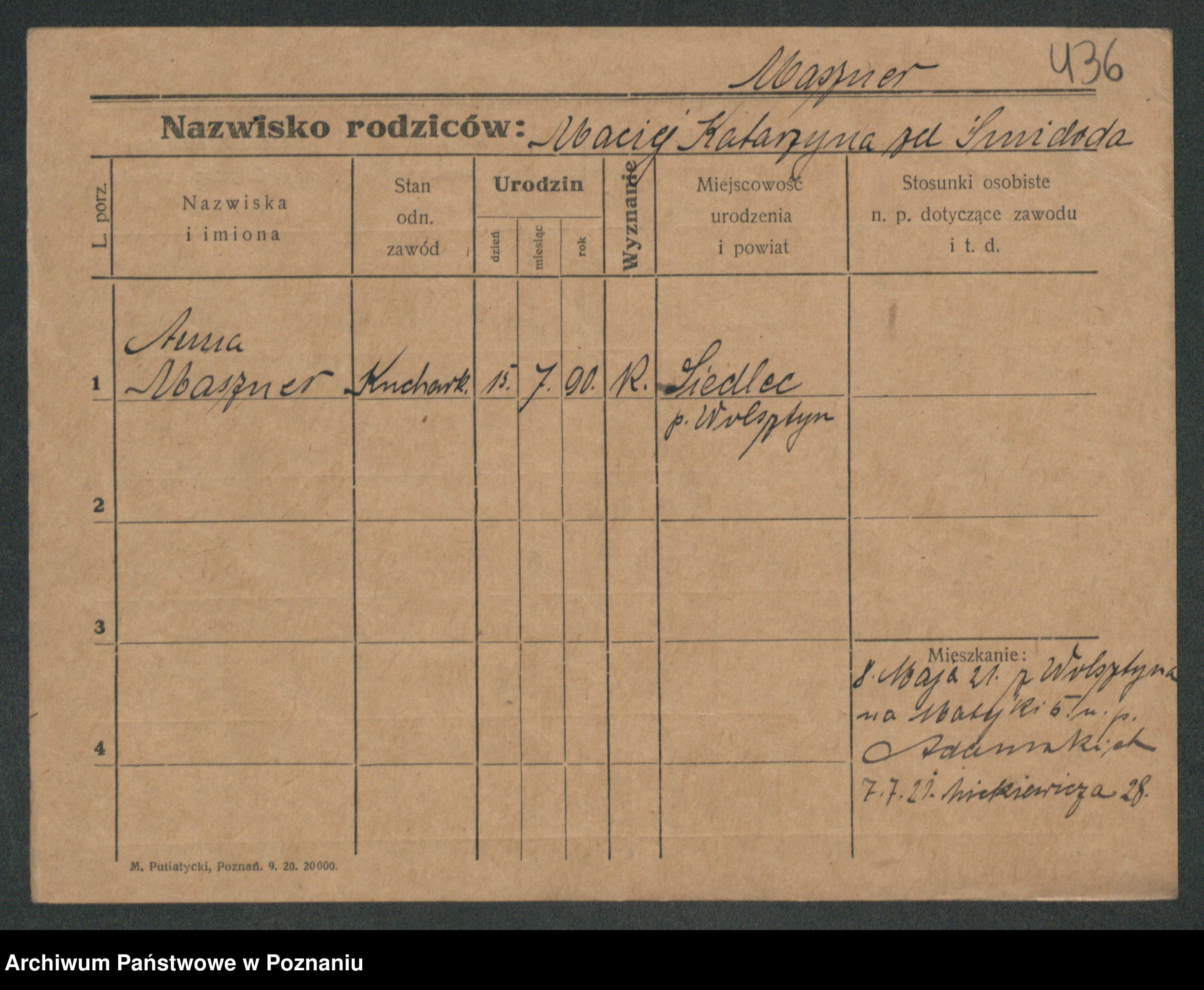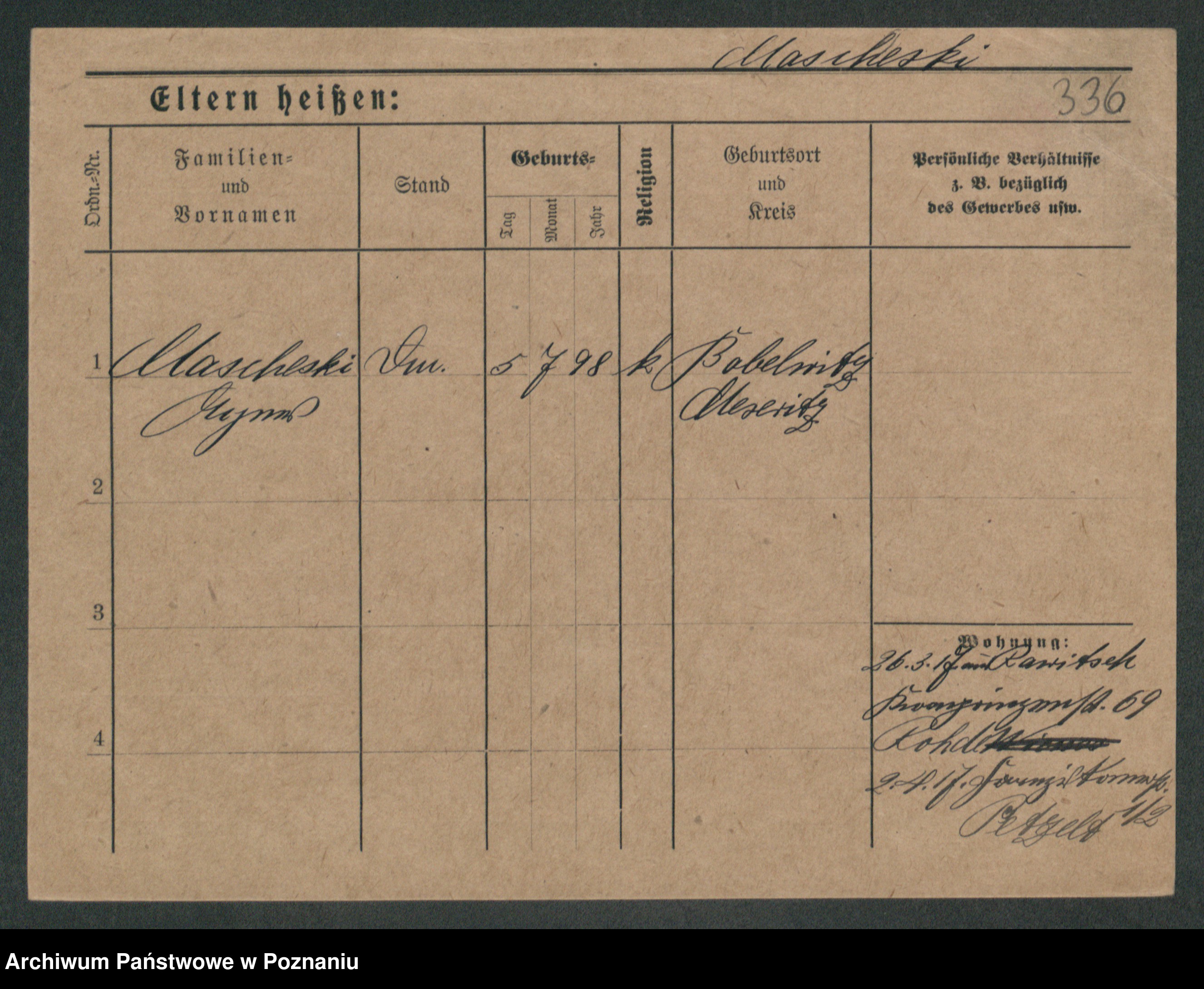 Maslowski zd. Bojanowska von Iv. Tomaszewska, Josefa