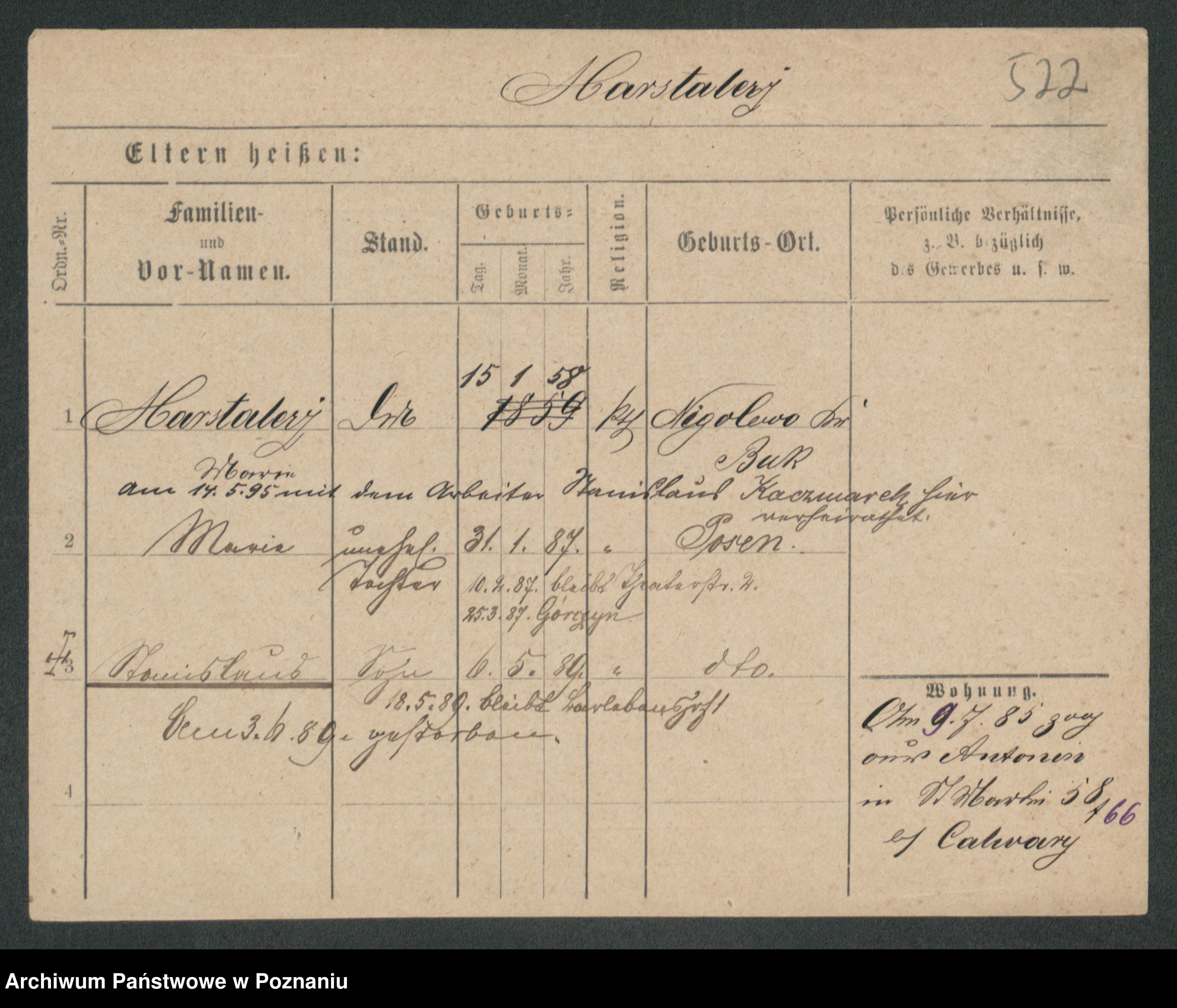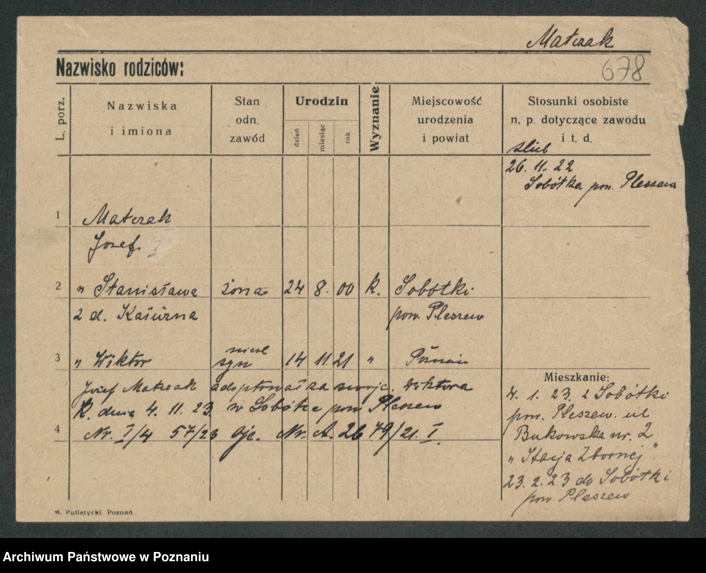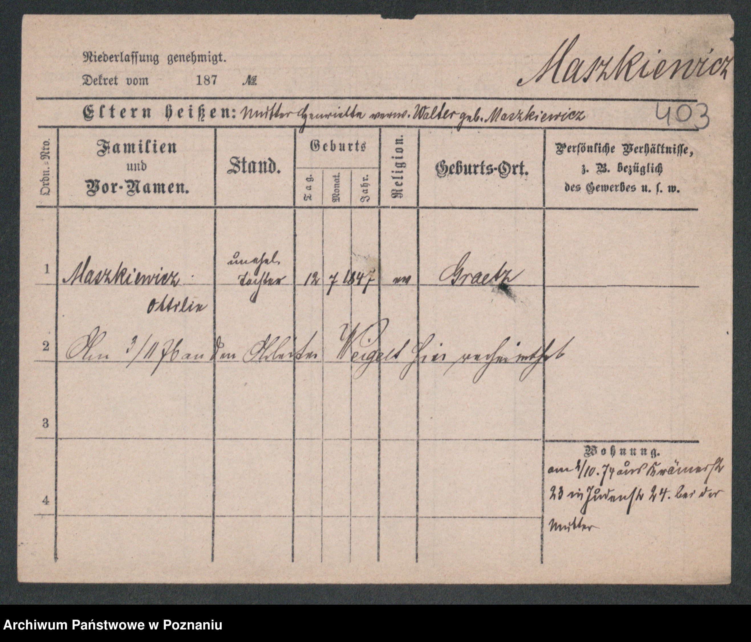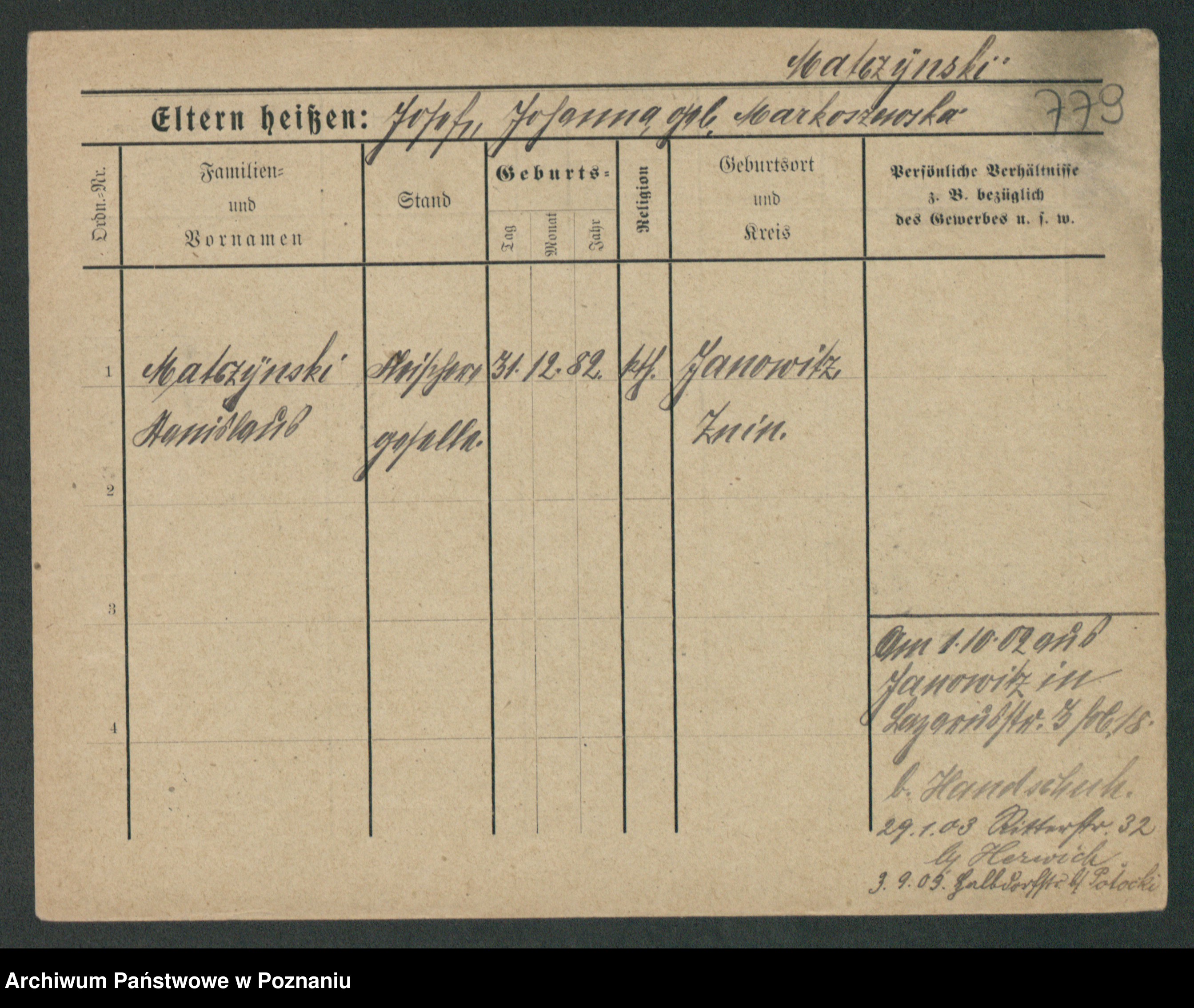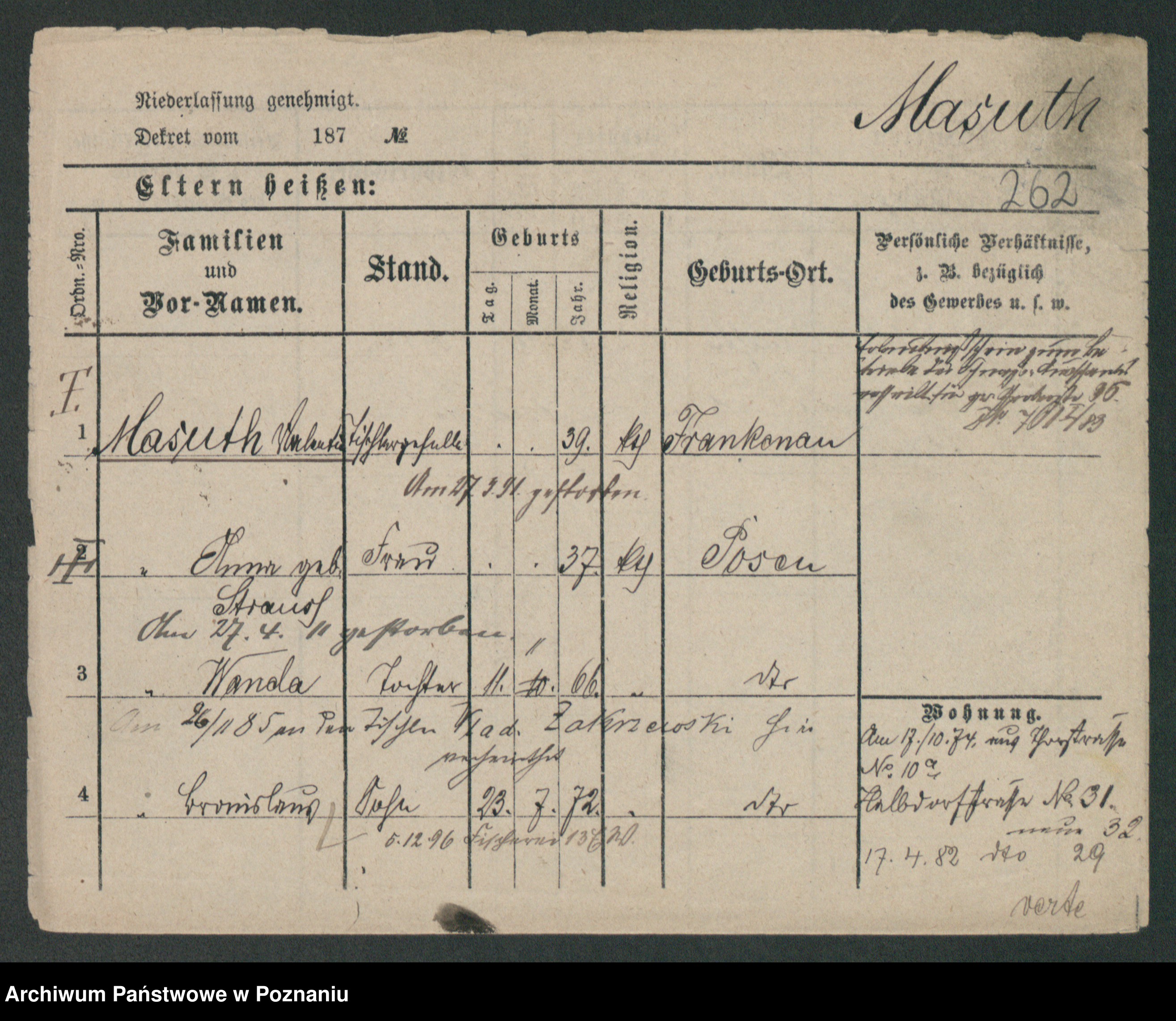 Maslowski zd. Bojanowska von Iv. Tomaszewska, Josefa