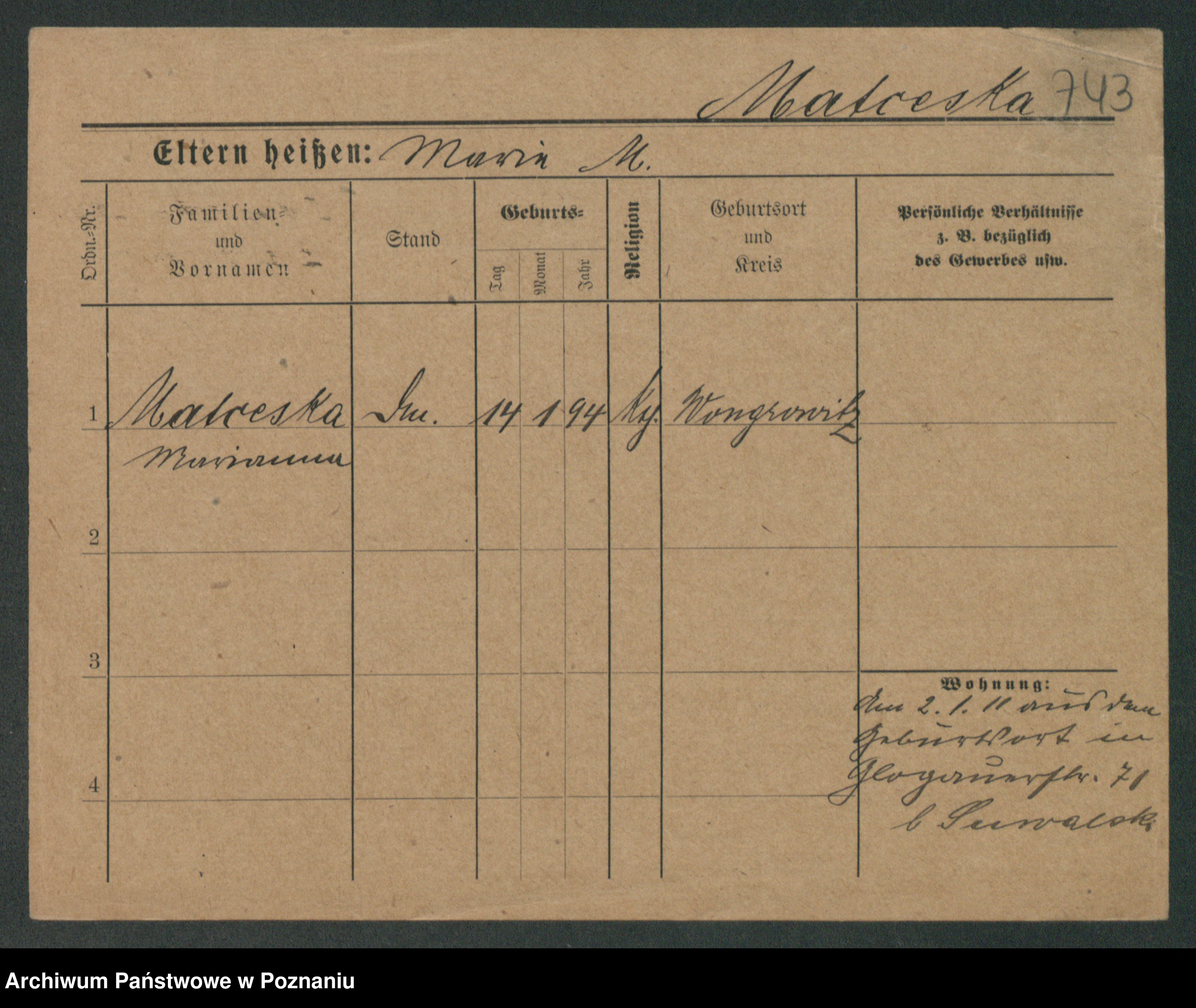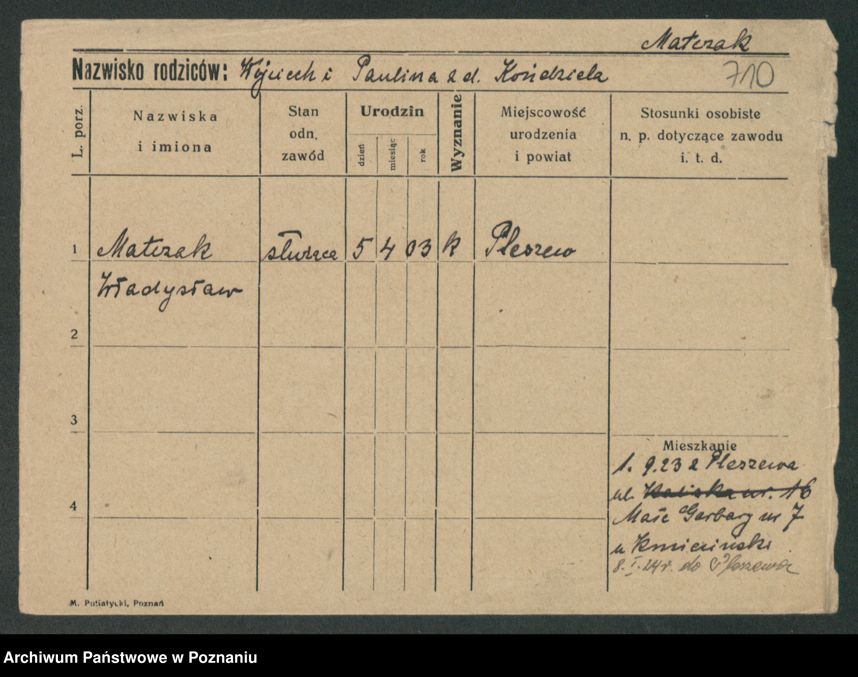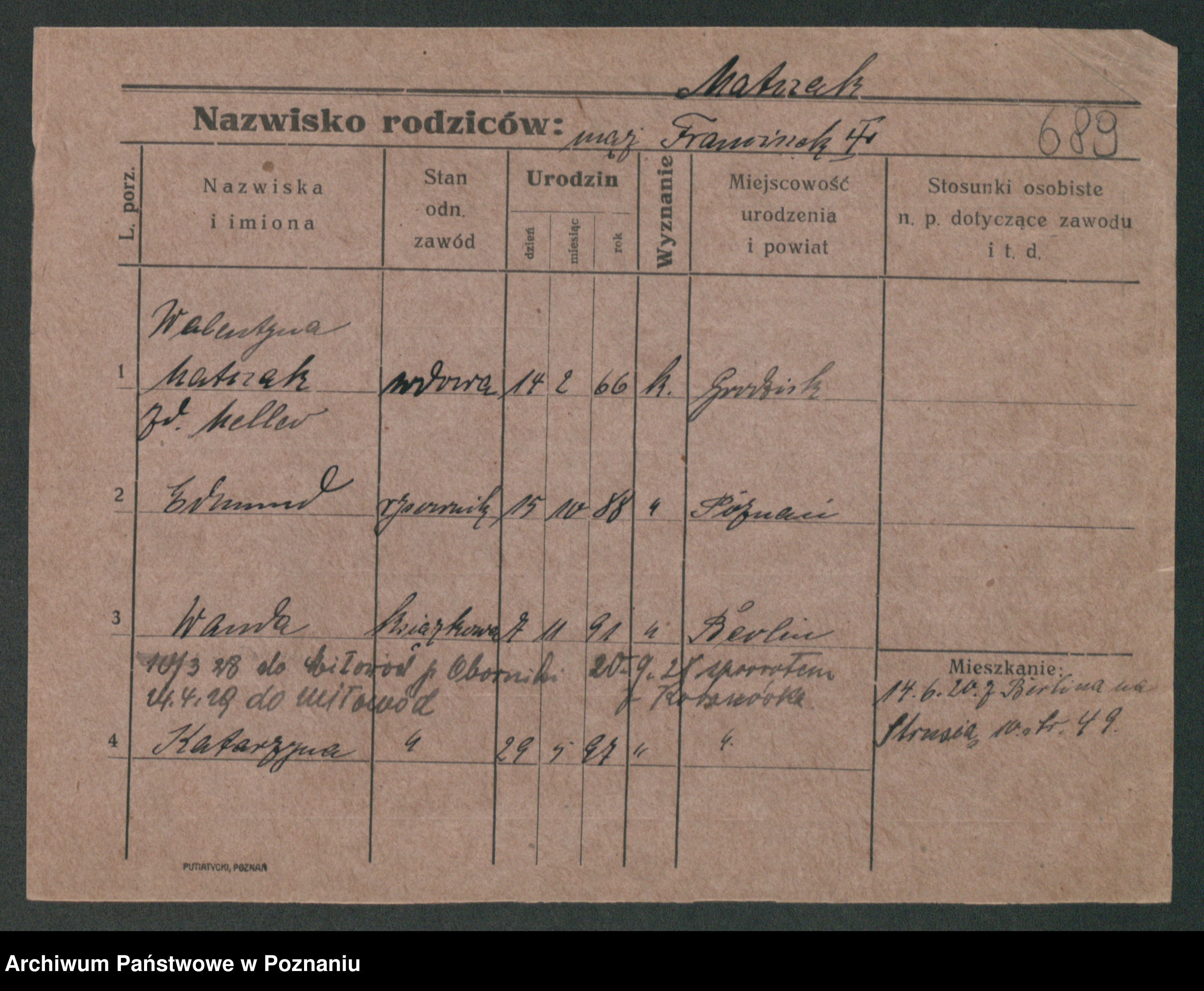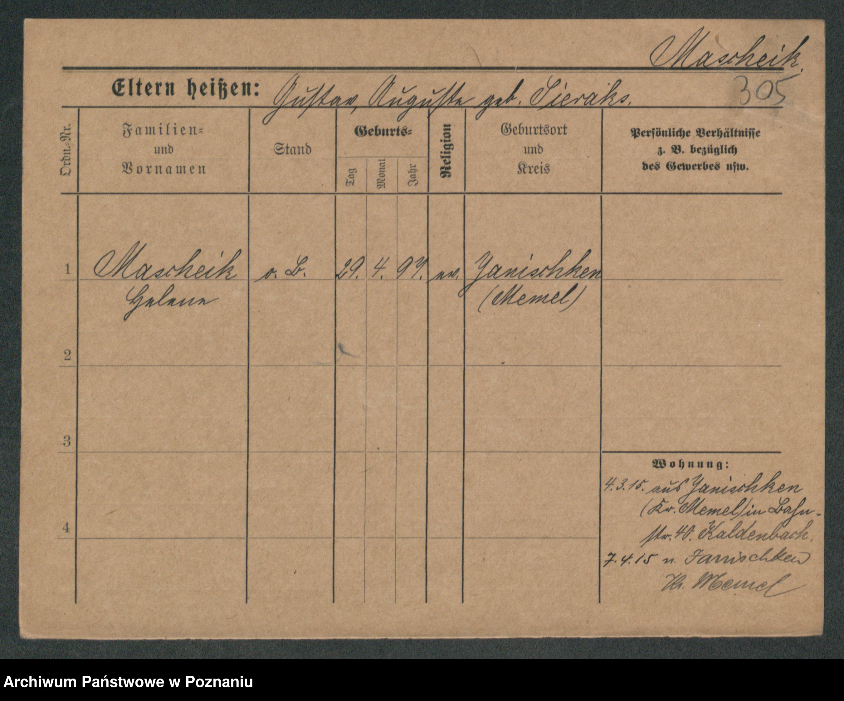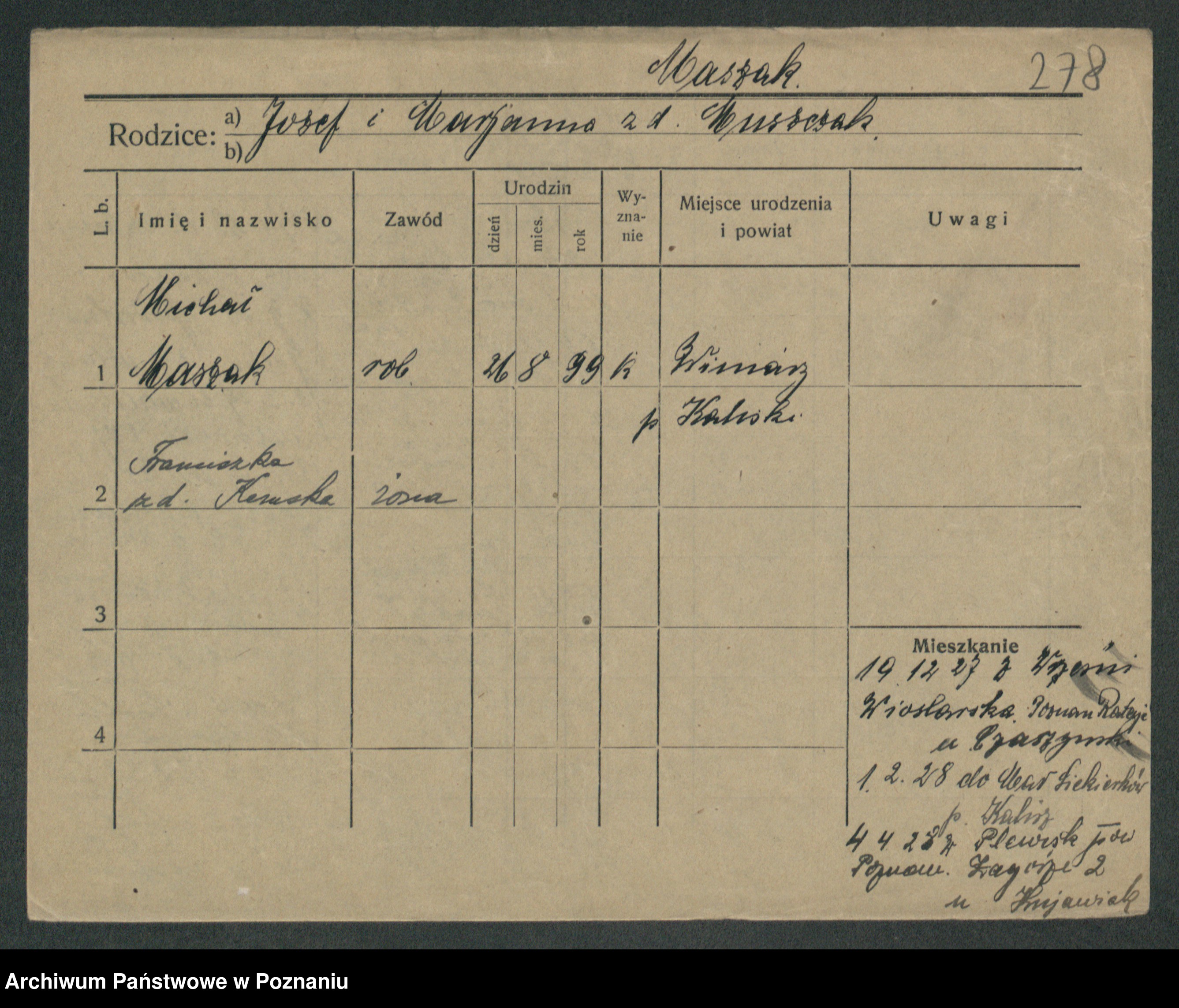 Maslowski zd. Bojanowska von Iv. Tomaszewska, Josefa