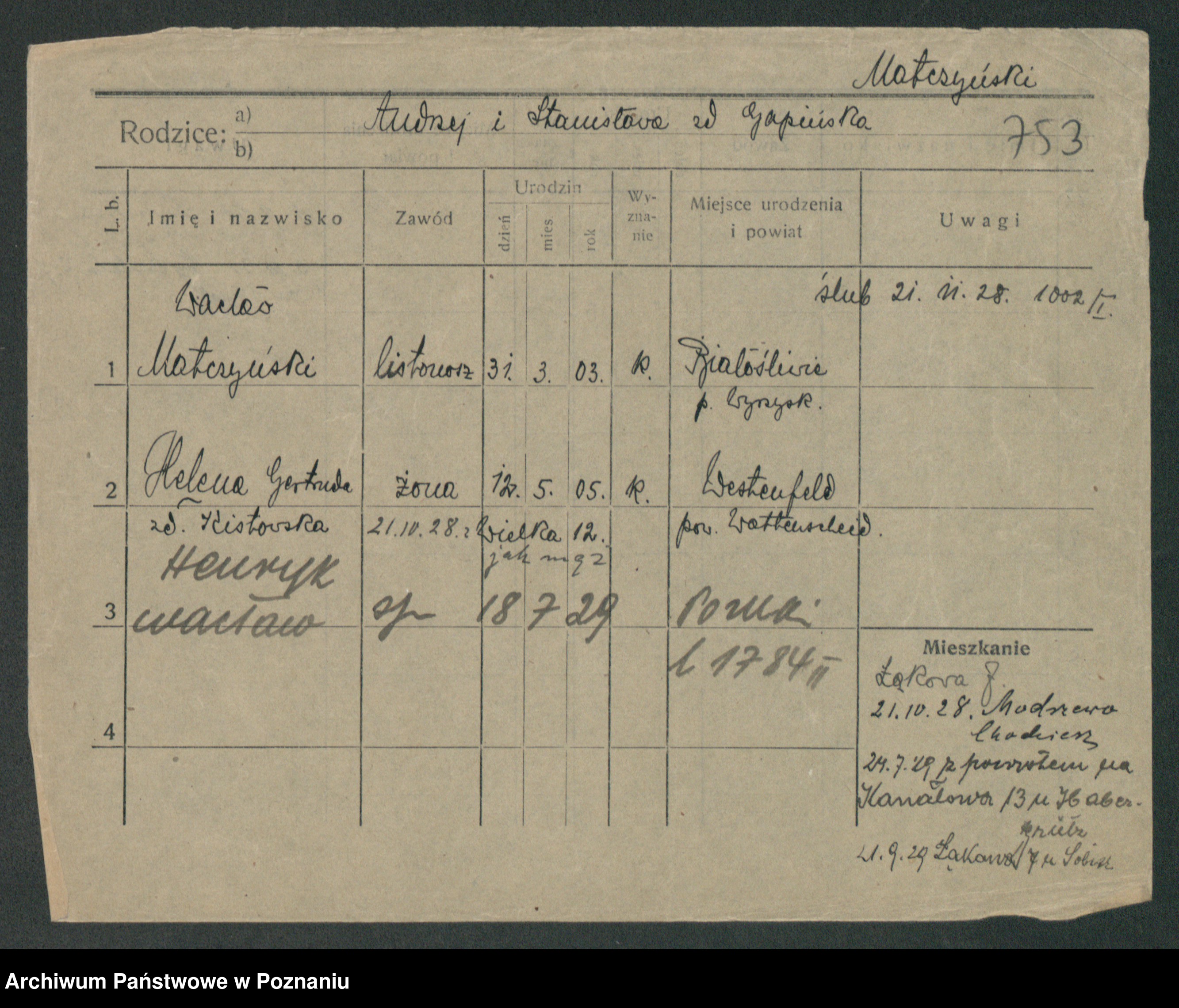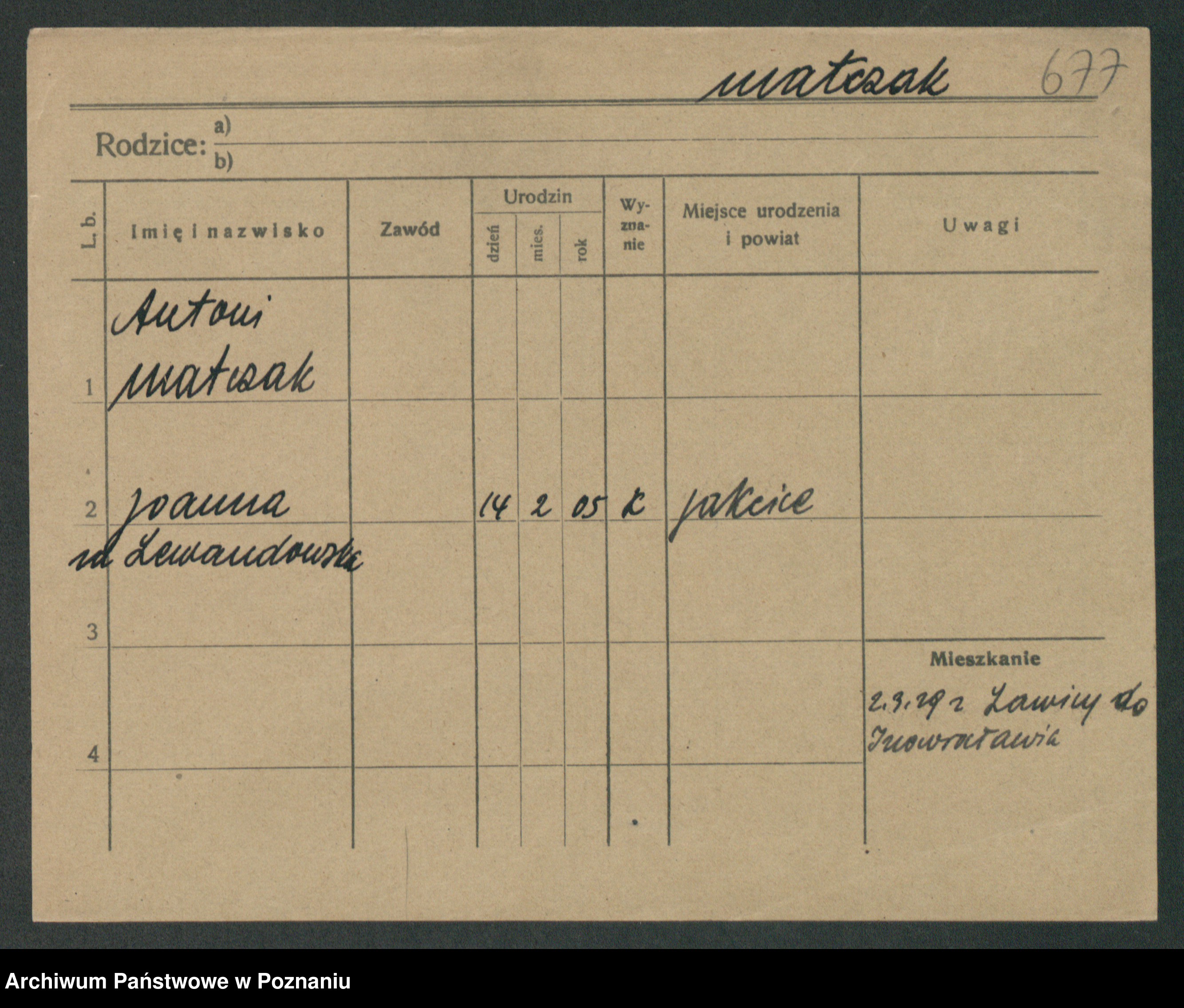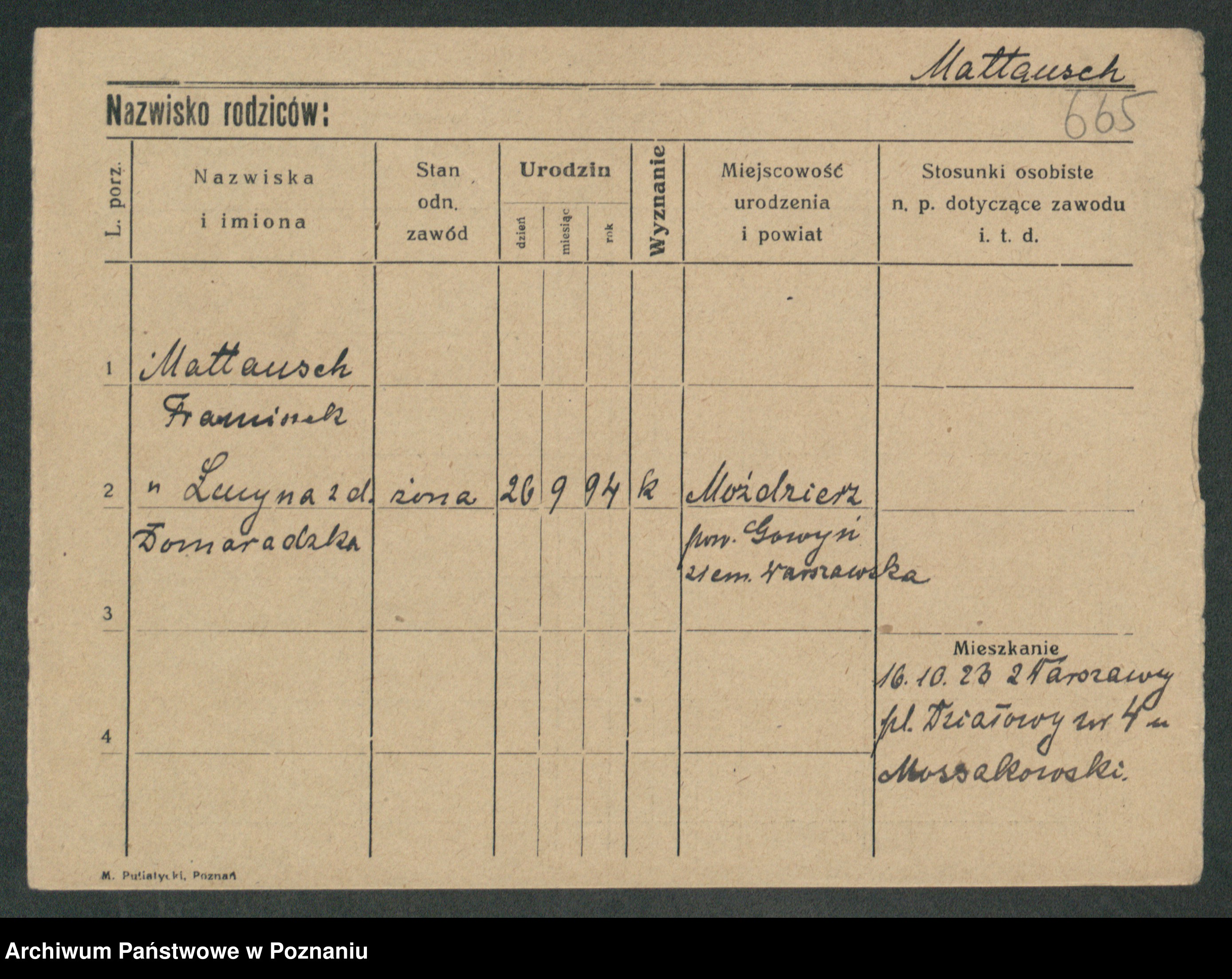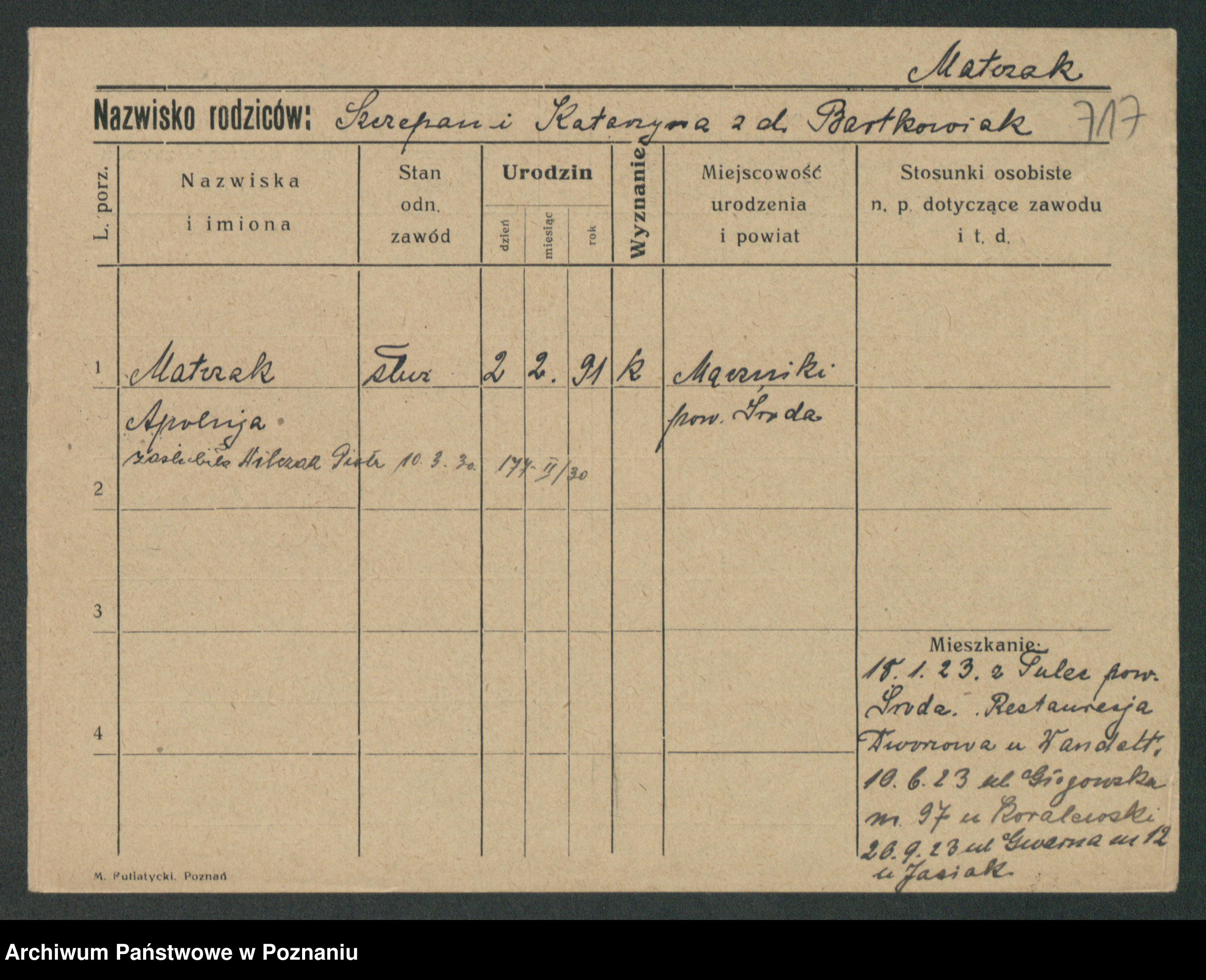 Matczynska zd. Luczkowska, Apolonie