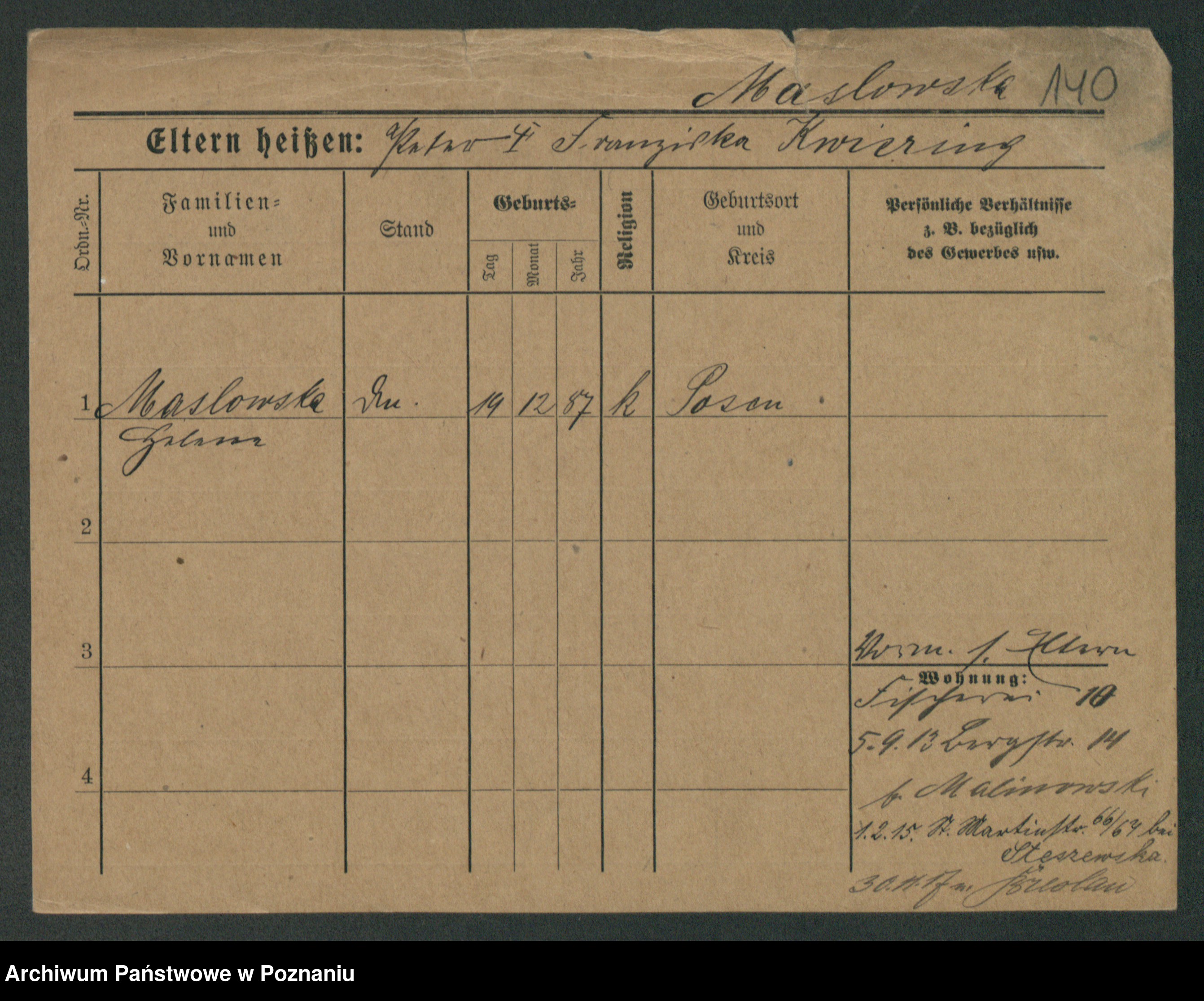 Maslowski zd. Kwiering, Franziska