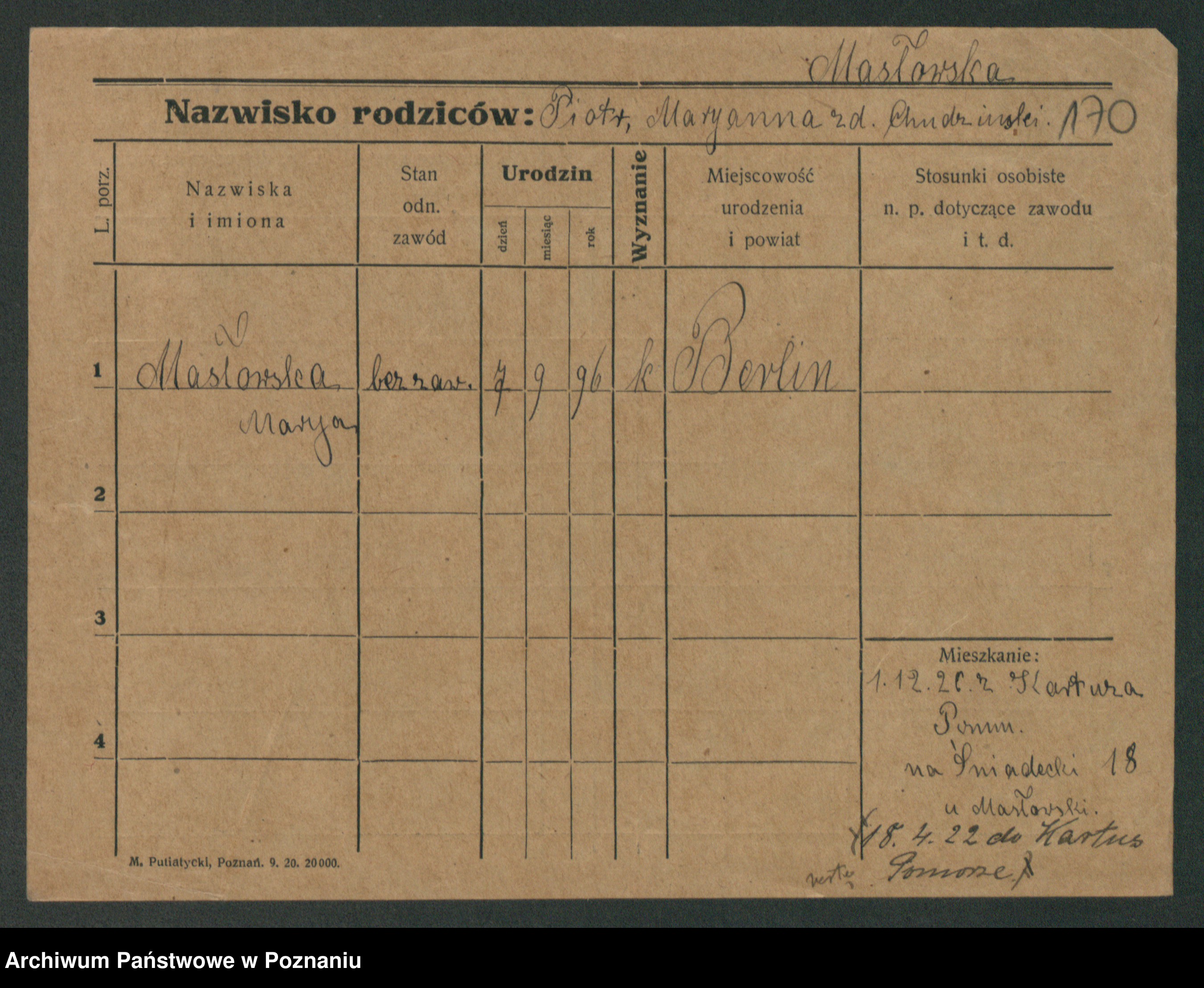 Masłowski, Marja