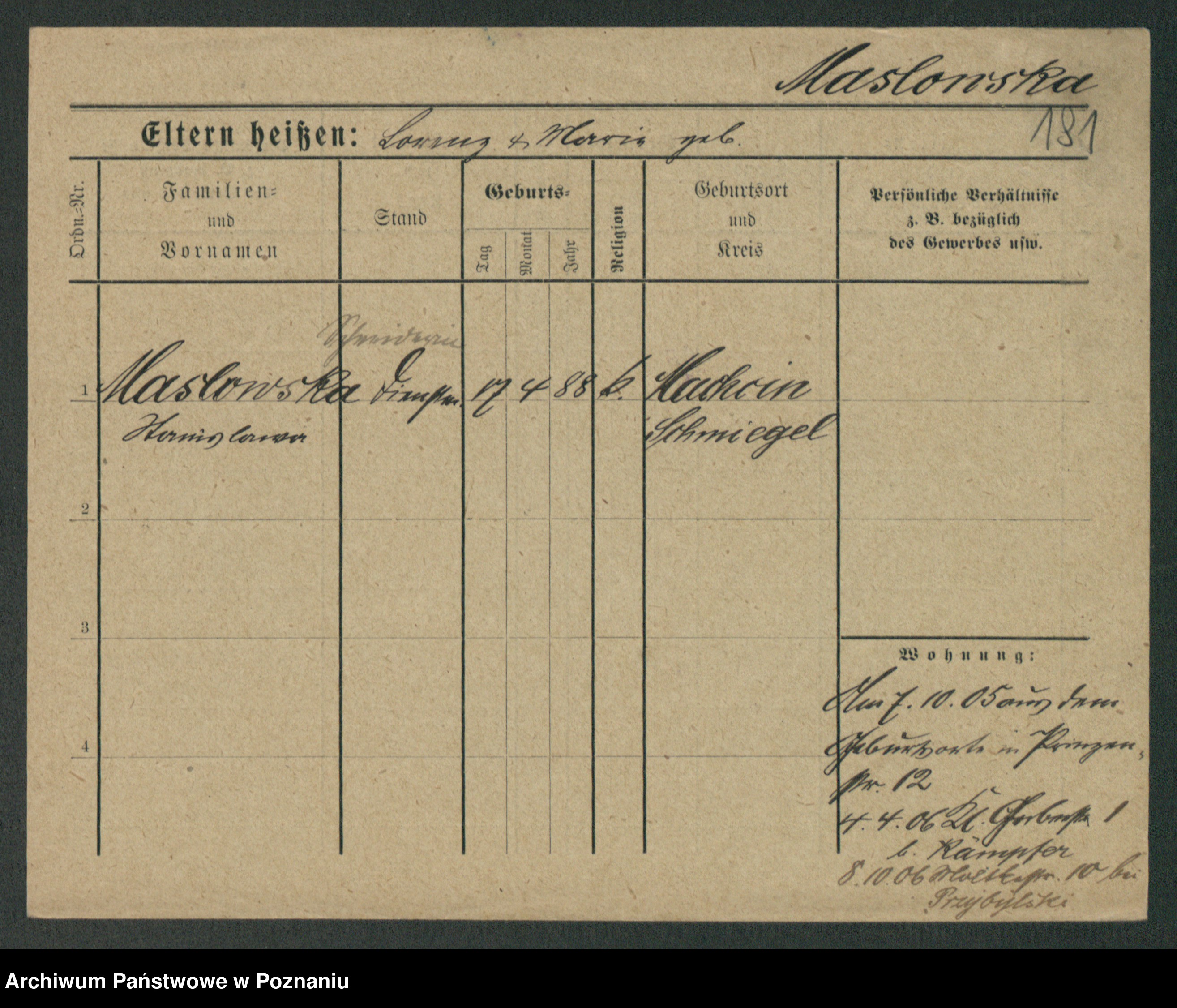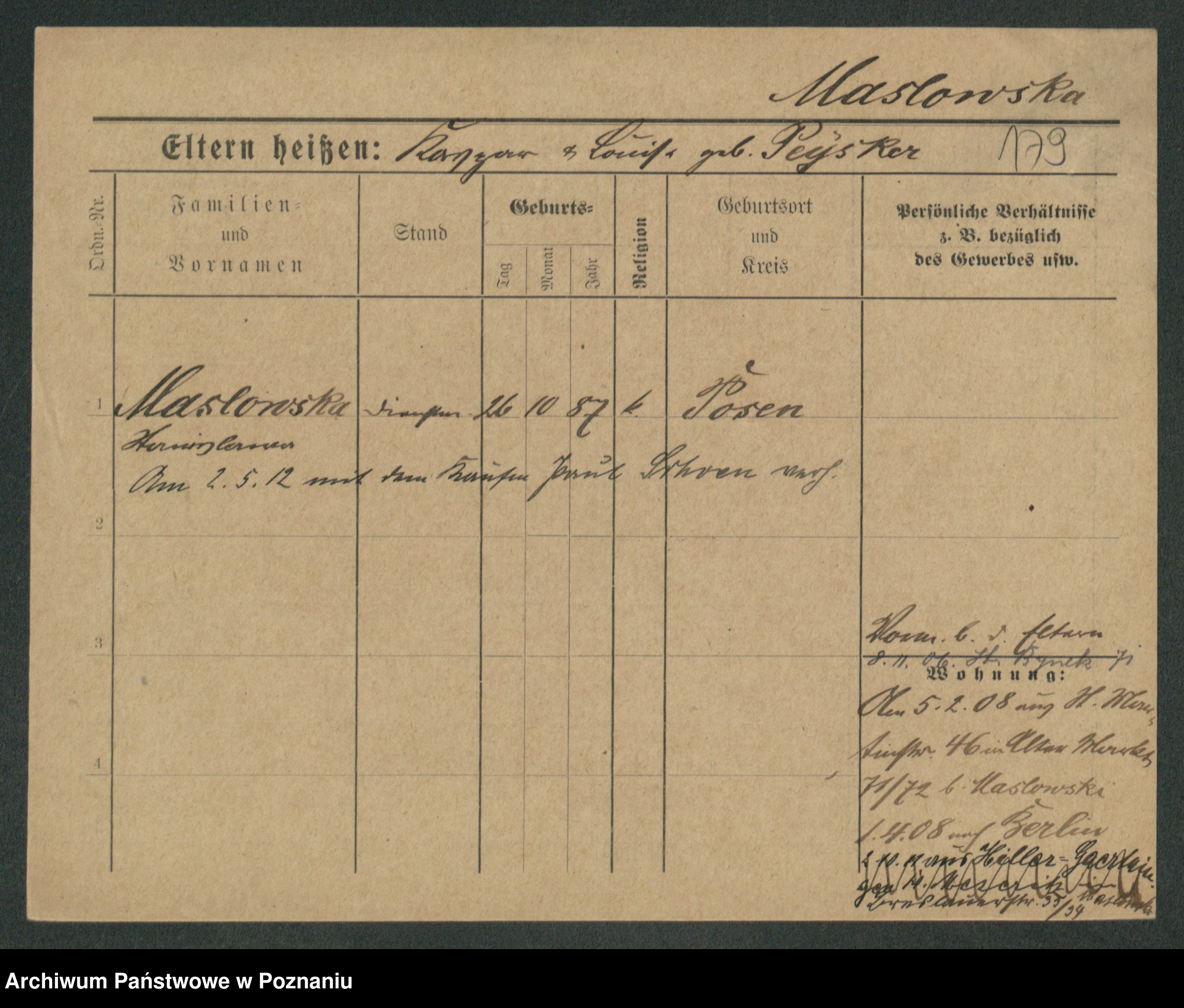 Maslowski zd. Peysker, Louise