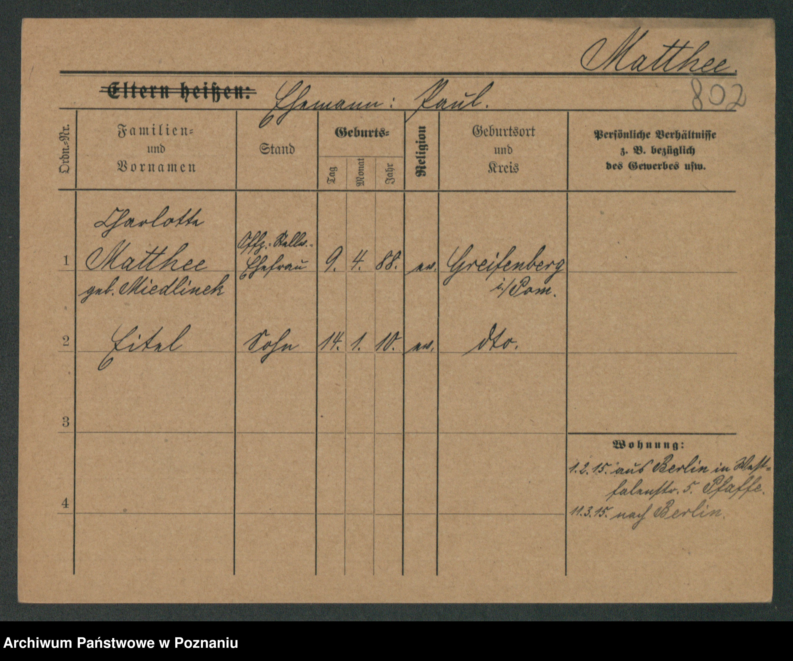 Matthee zd.Miedlinek, Charlotte