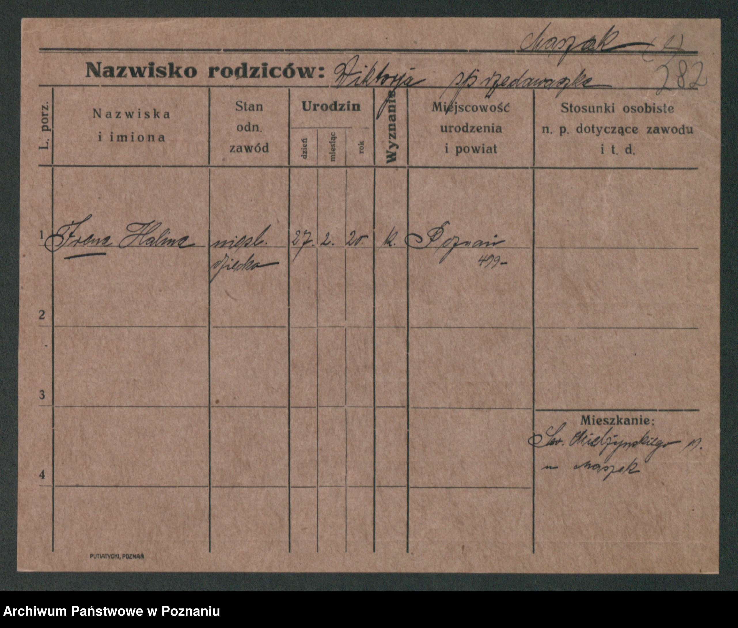 Masłowski zd. Pieprzyk, Antonina