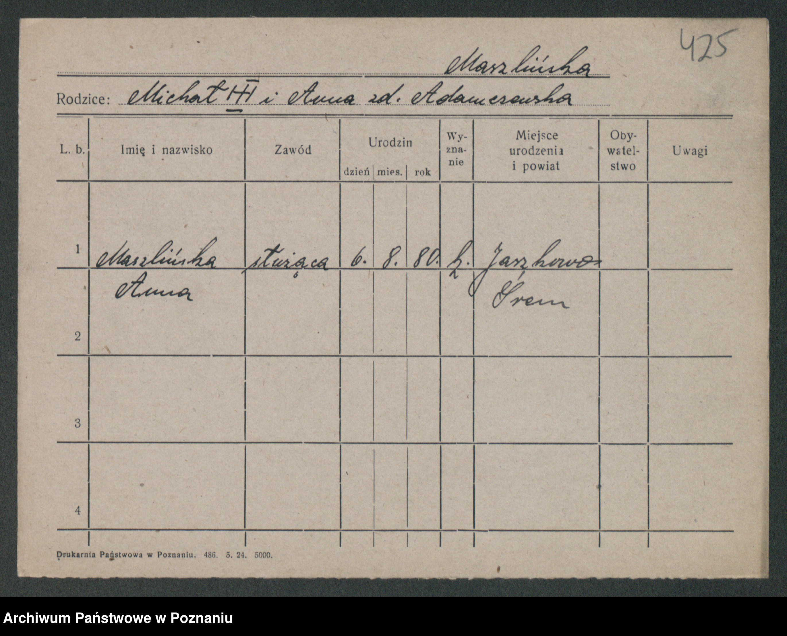 Masłowski, Marjanna