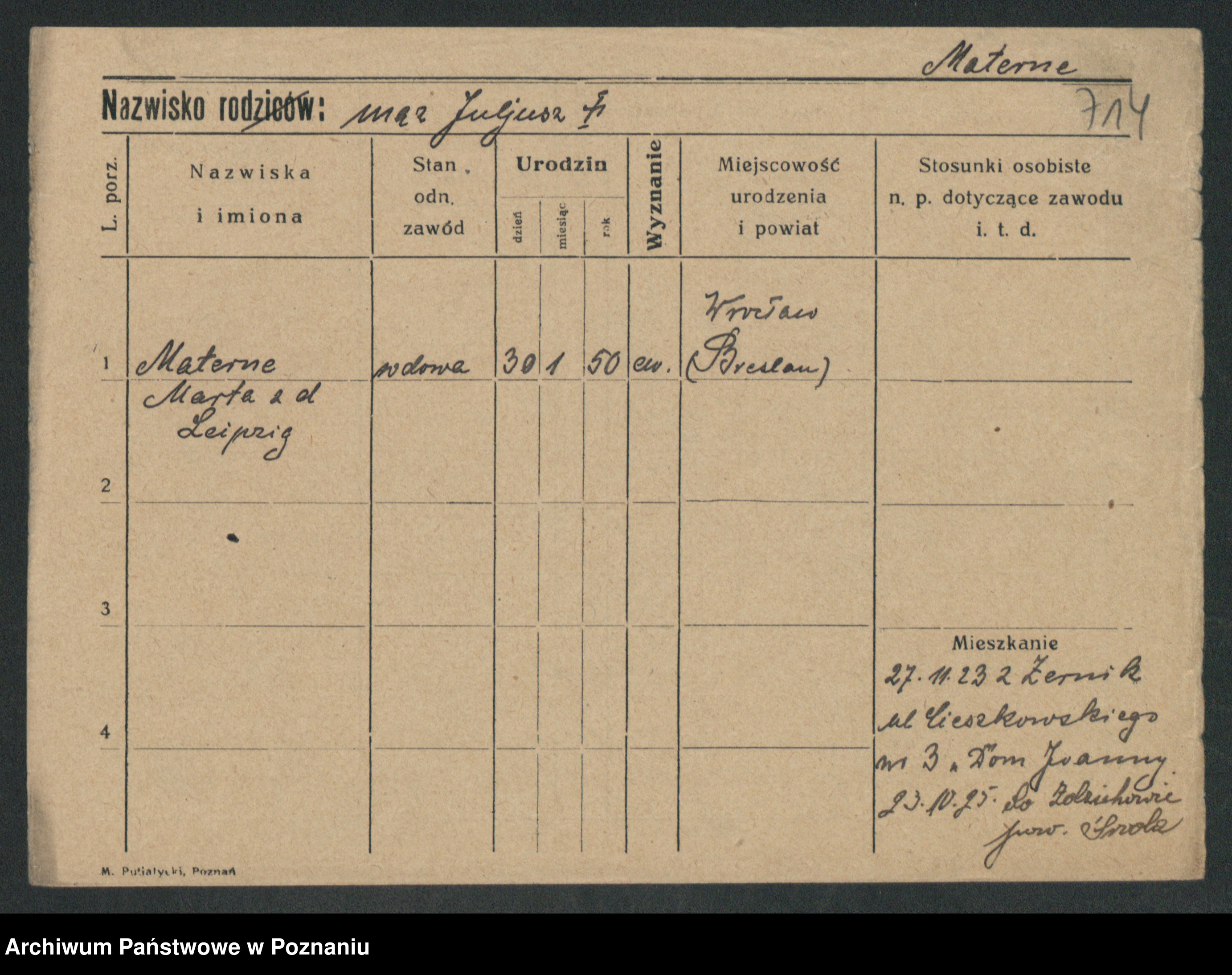 Matensohns zd. Dzierzawczyk, Katarzyna
