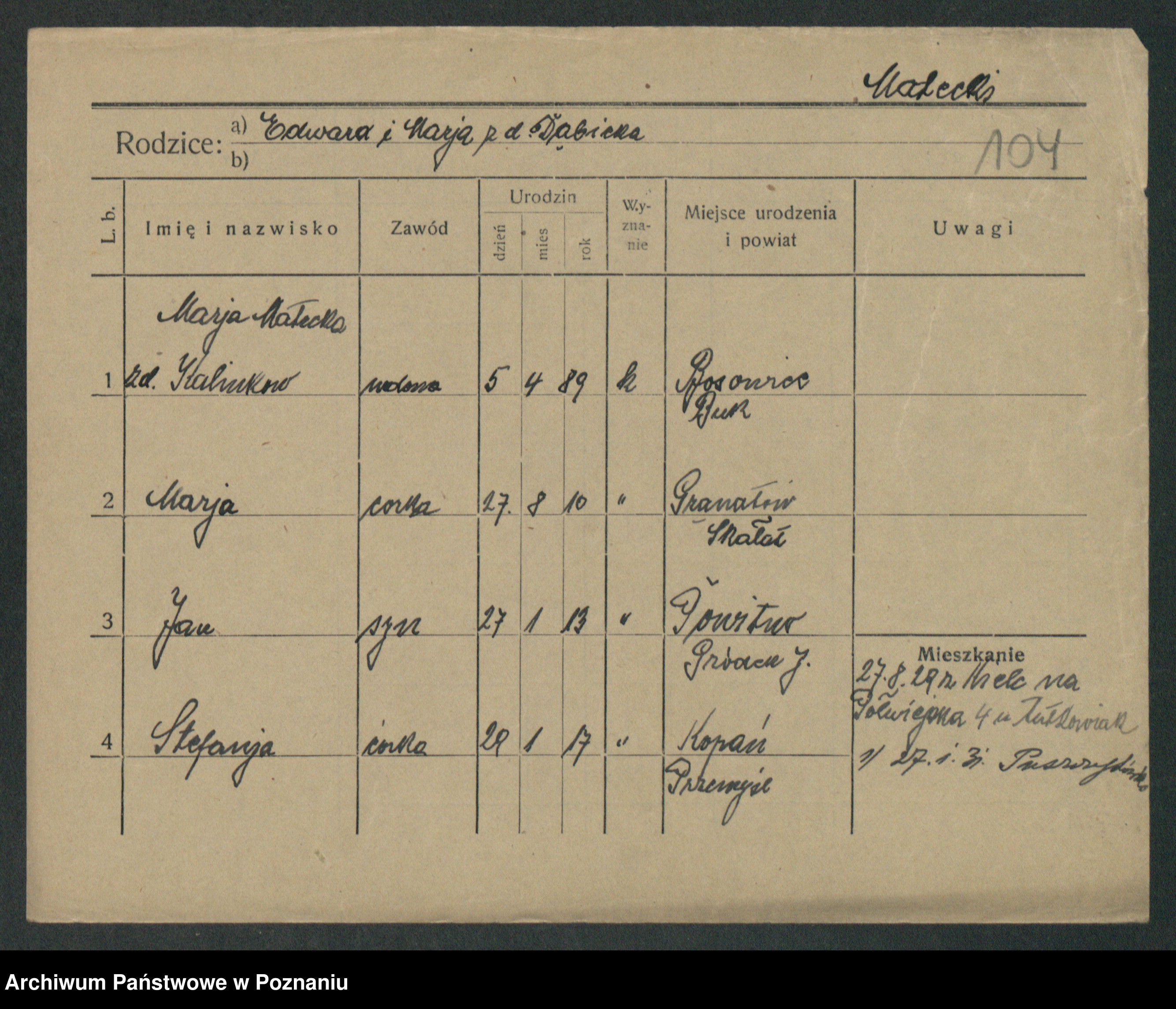 Matecki zd. Szulczynska Iv. Uznamska, Salomea