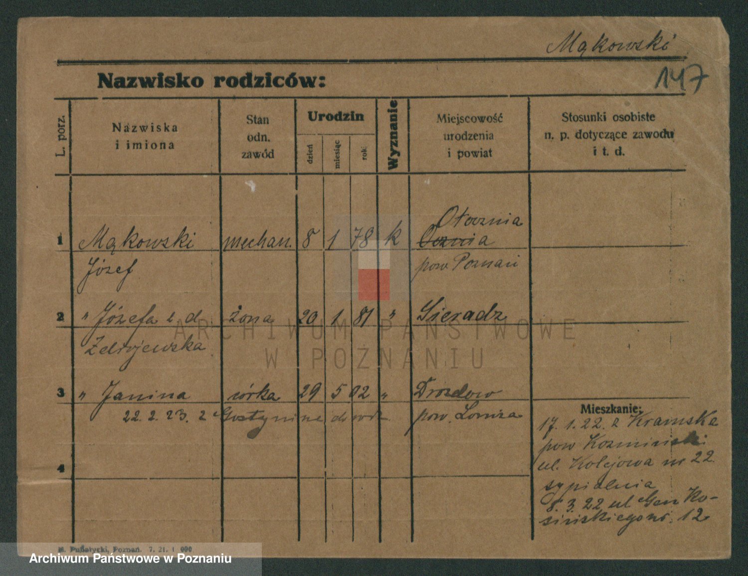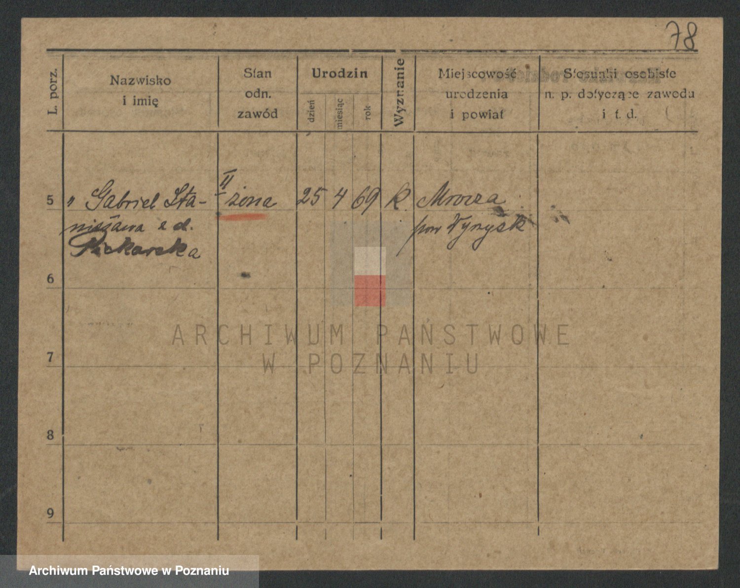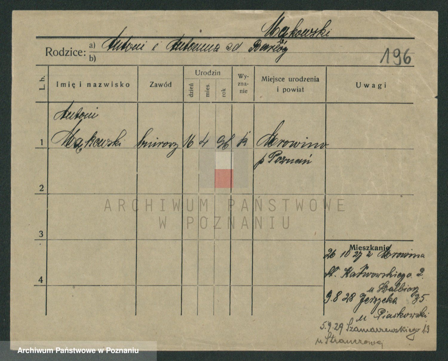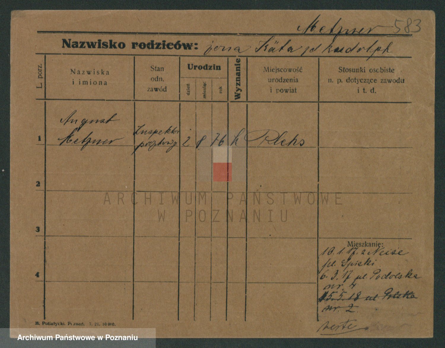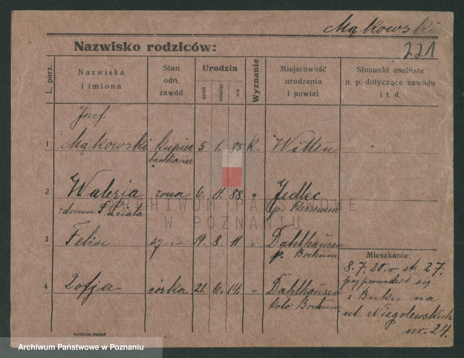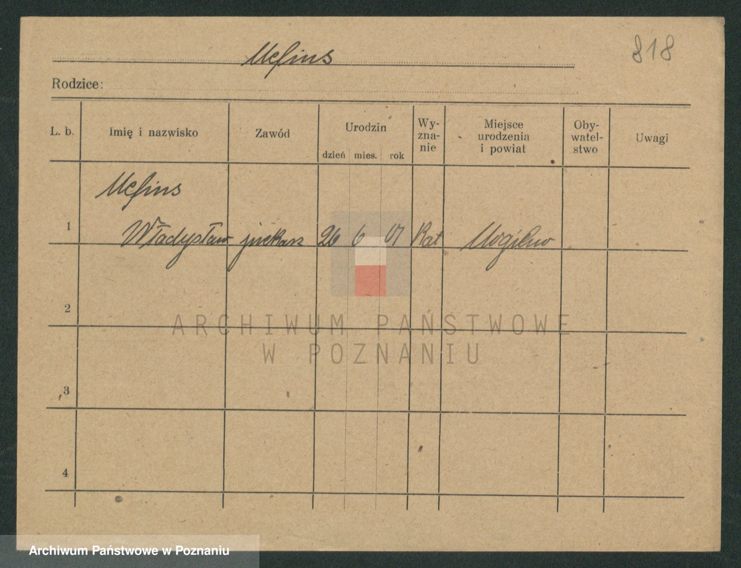 Podgląd karty osobowej dostępny jest po kliknięciu na nazwisko lub ikonkę karty. Można dokonywać powiększenia (ikony na górze) lub przechodzić między kolejnymi skanami (strzałki po bokach).