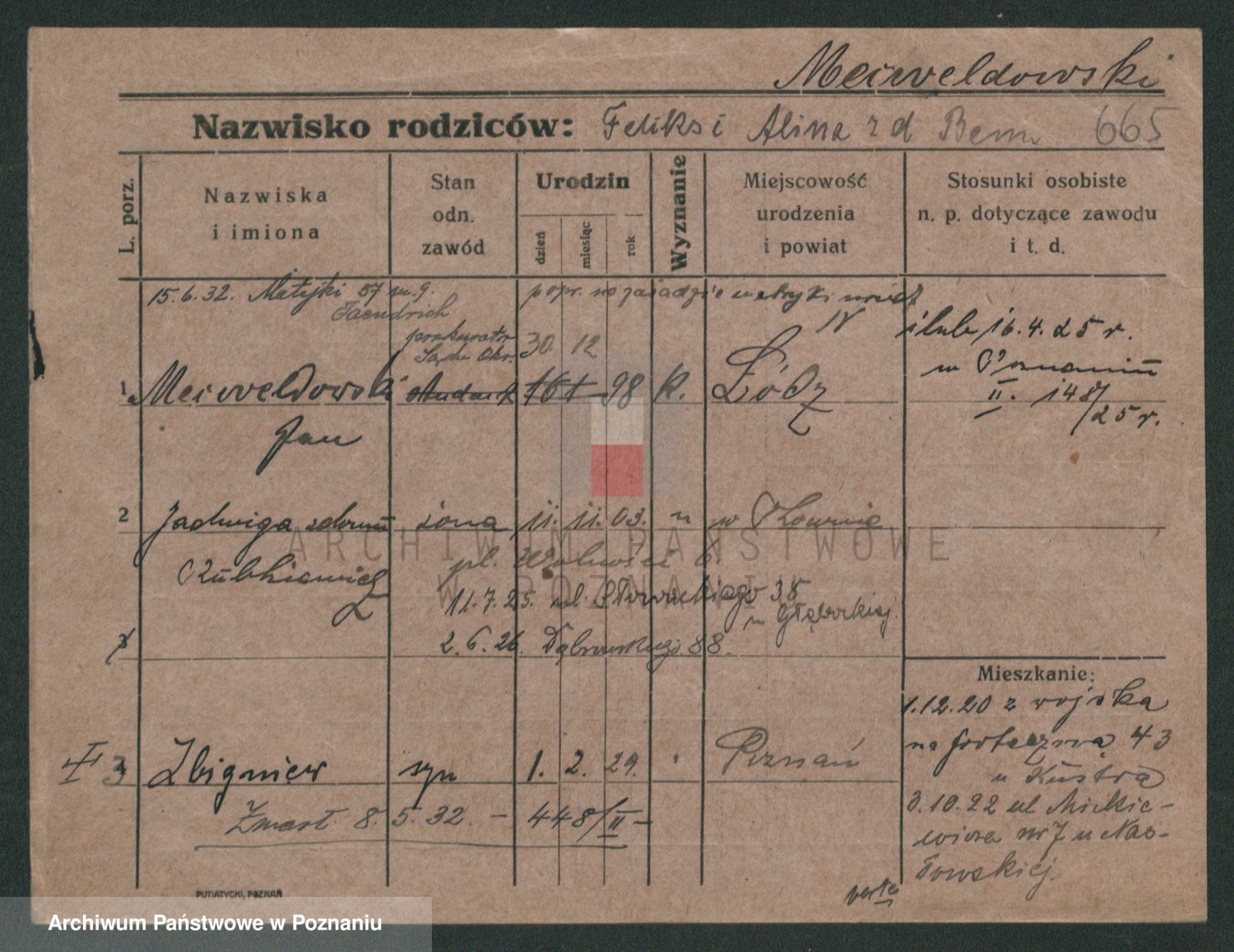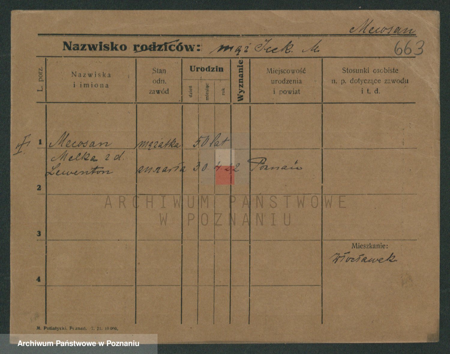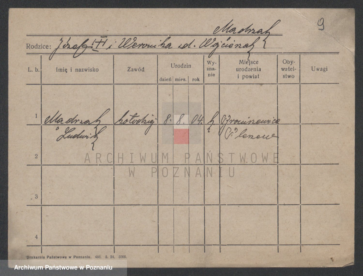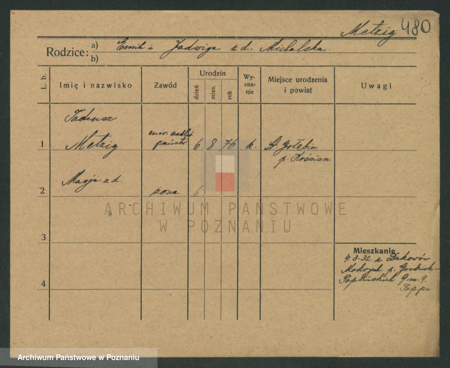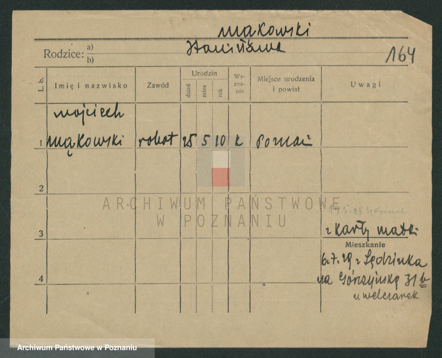Podgląd karty osobowej dostępny jest po kliknięciu na nazwisko lub ikonkę karty. Można dokonywać powiększenia (ikony na górze) lub przechodzić między kolejnymi skanami (strzałki po bokach).