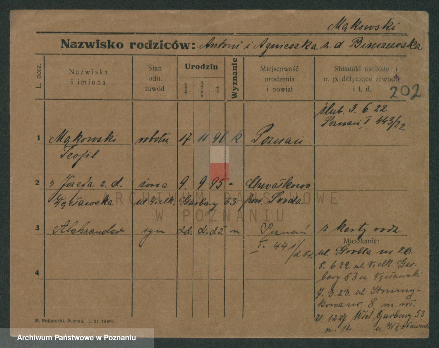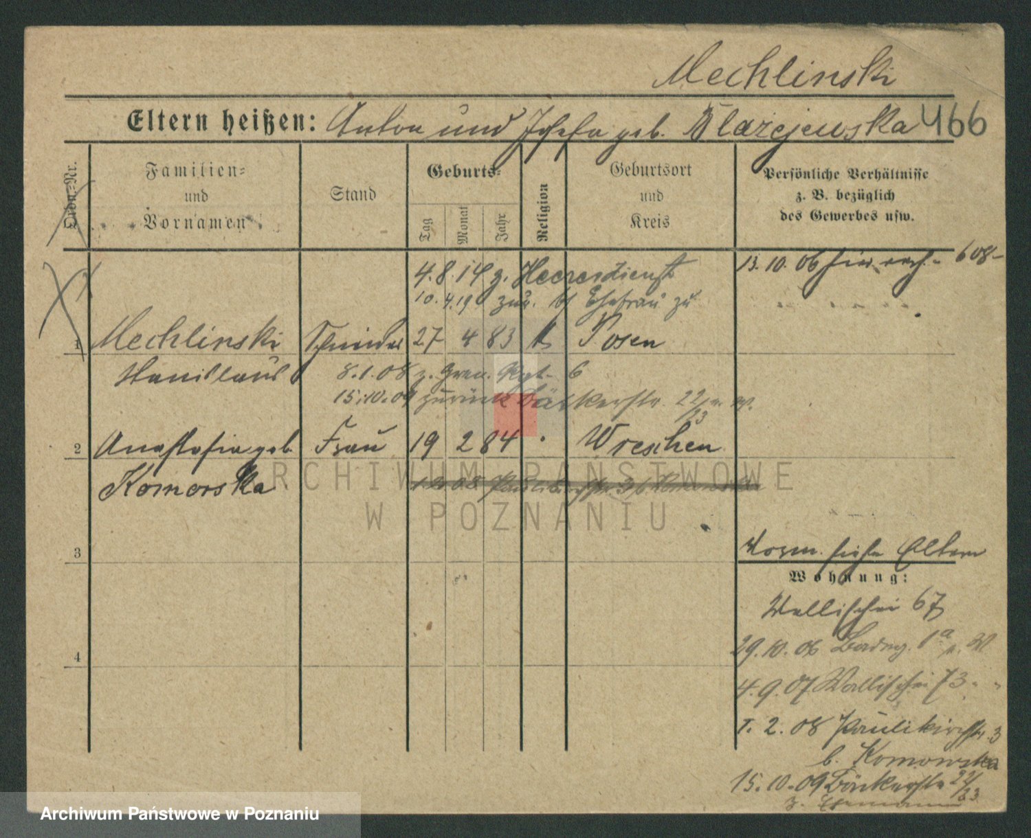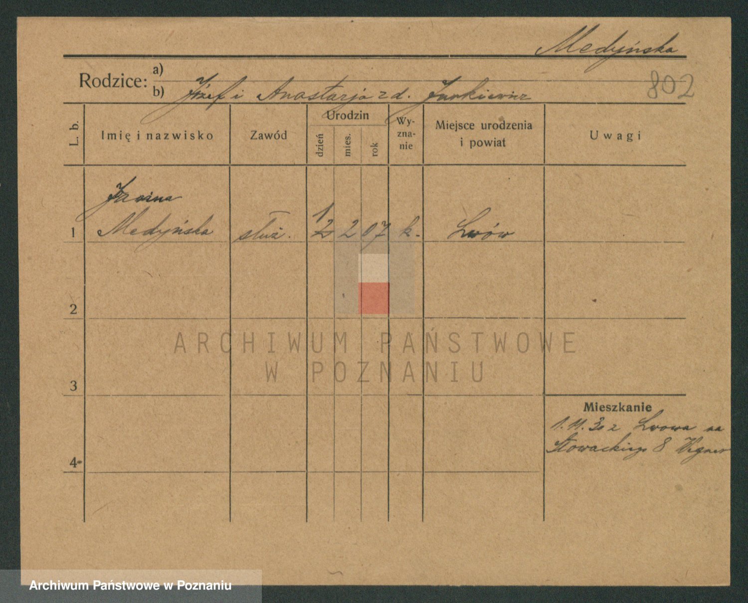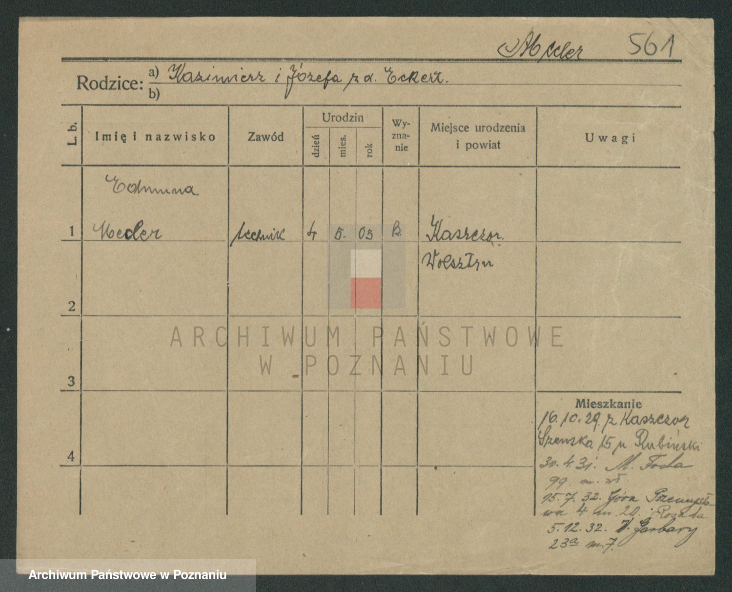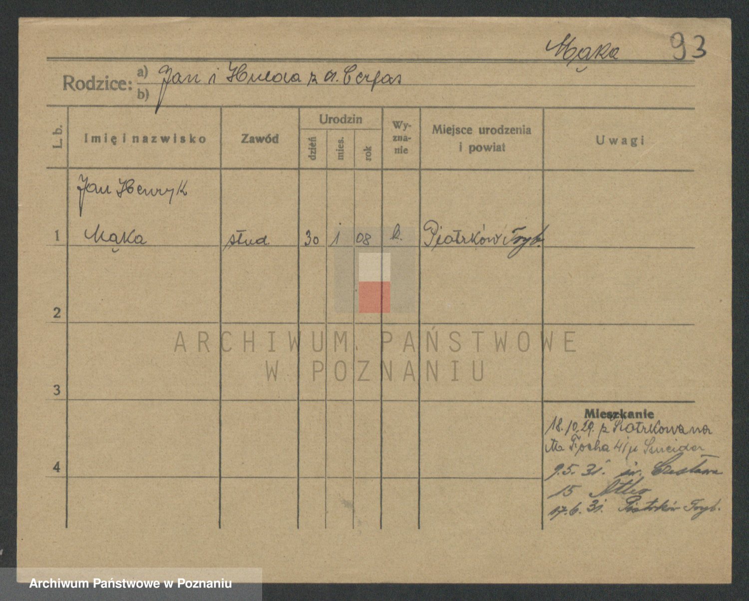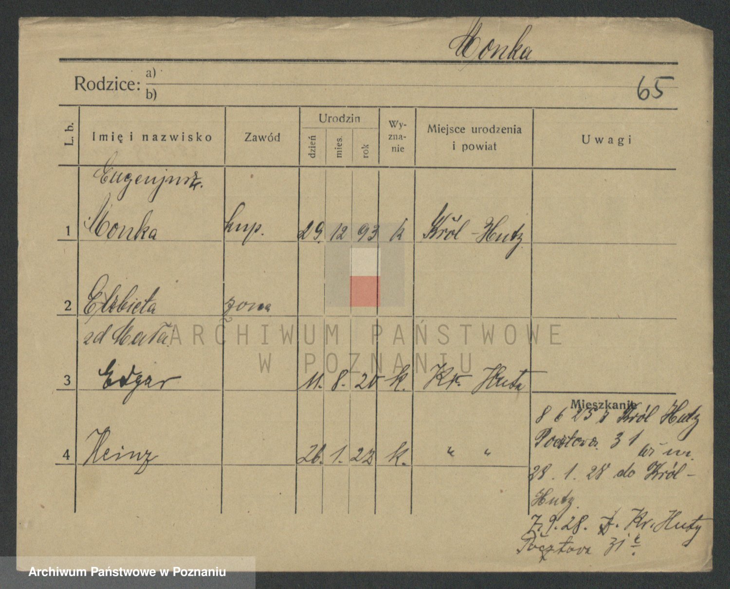 Podgląd karty osobowej dostępny jest po kliknięciu na nazwisko lub ikonkę karty. Można dokonywać powiększenia (ikony na górze) lub przechodzić między kolejnymi skanami (strzałki po bokach).