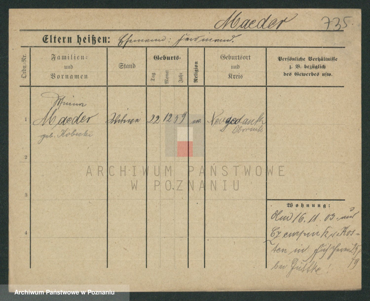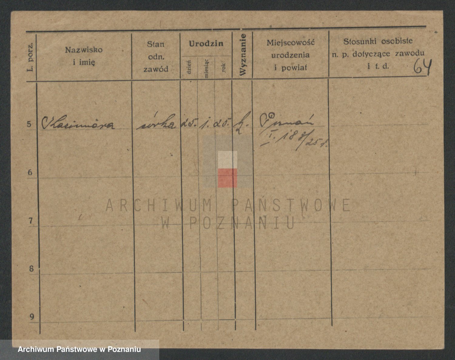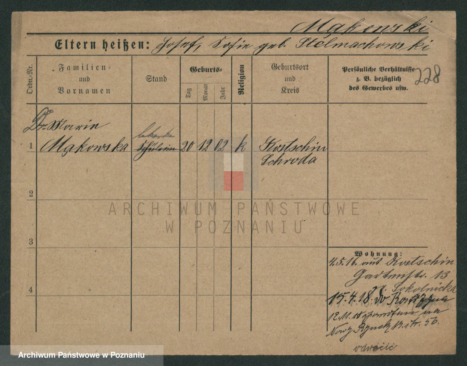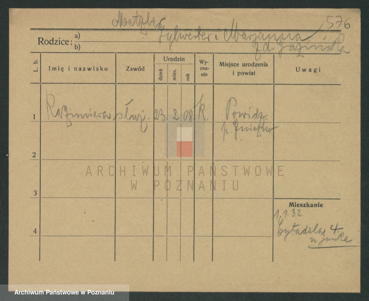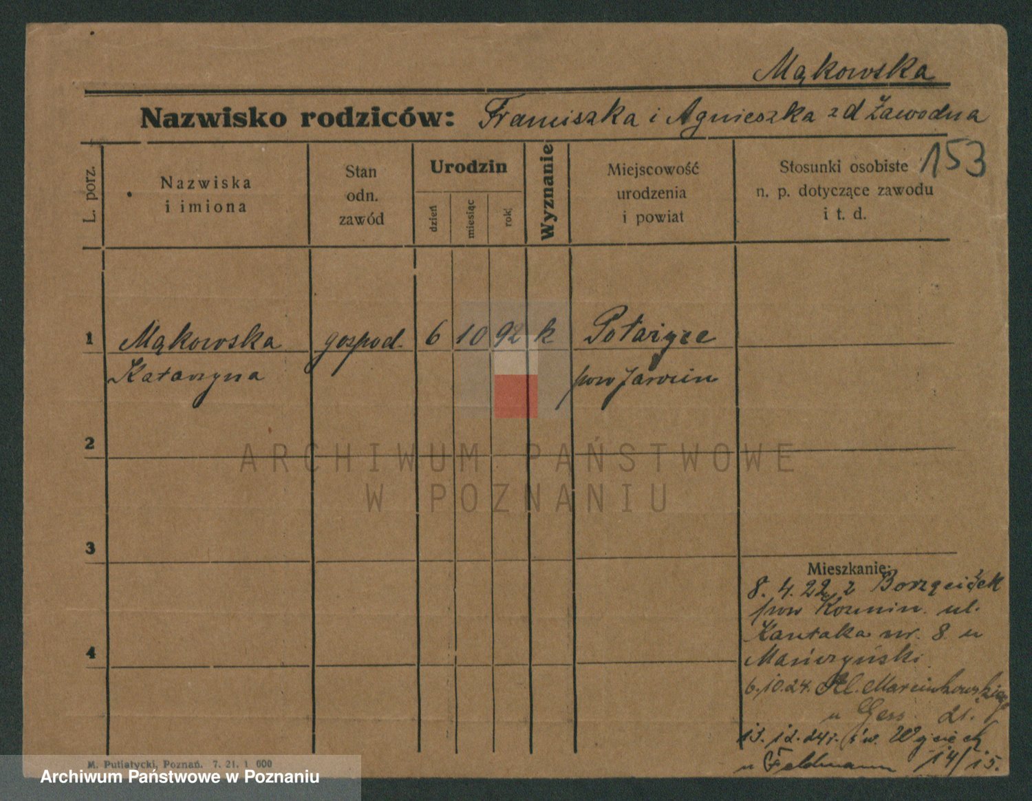 Podgląd karty osobowej dostępny jest po kliknięciu na nazwisko lub ikonkę karty. Można dokonywać powiększenia (ikony na górze) lub przechodzić między kolejnymi skanami (strzałki po bokach).