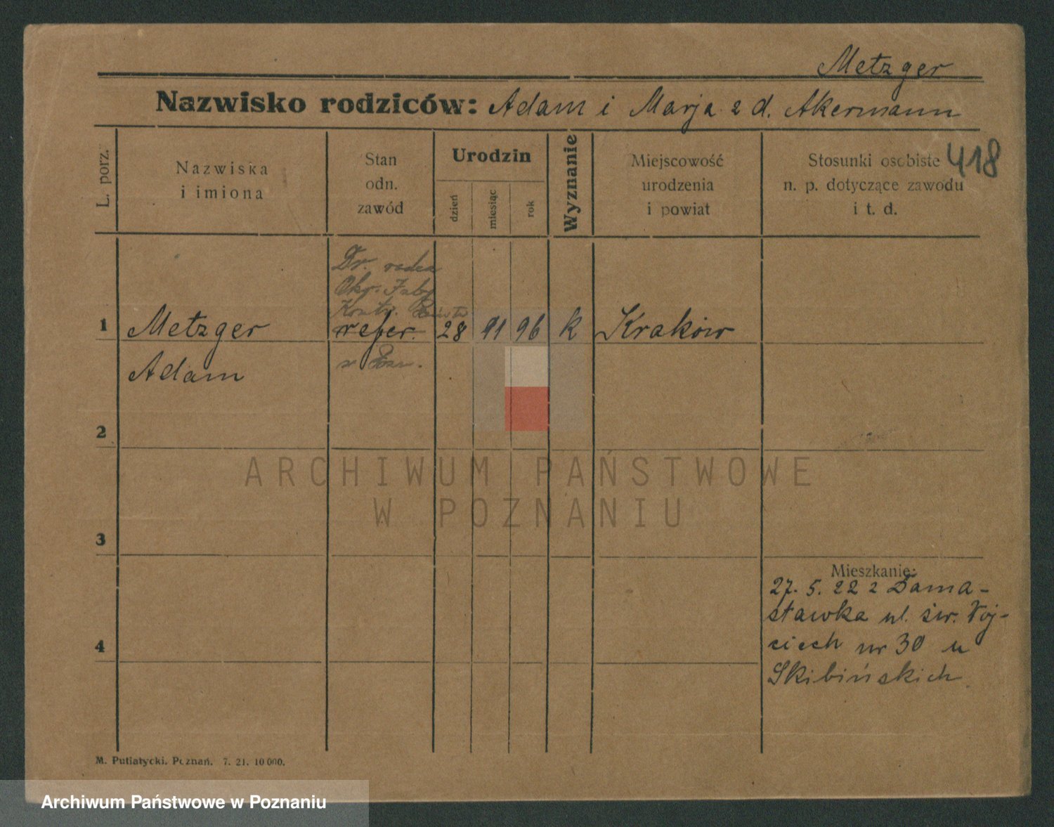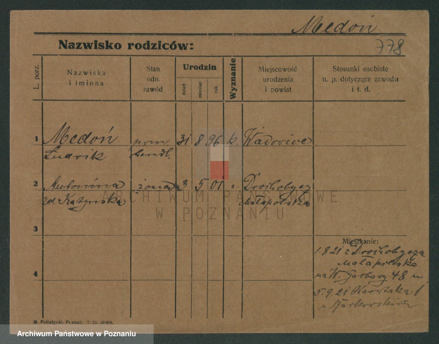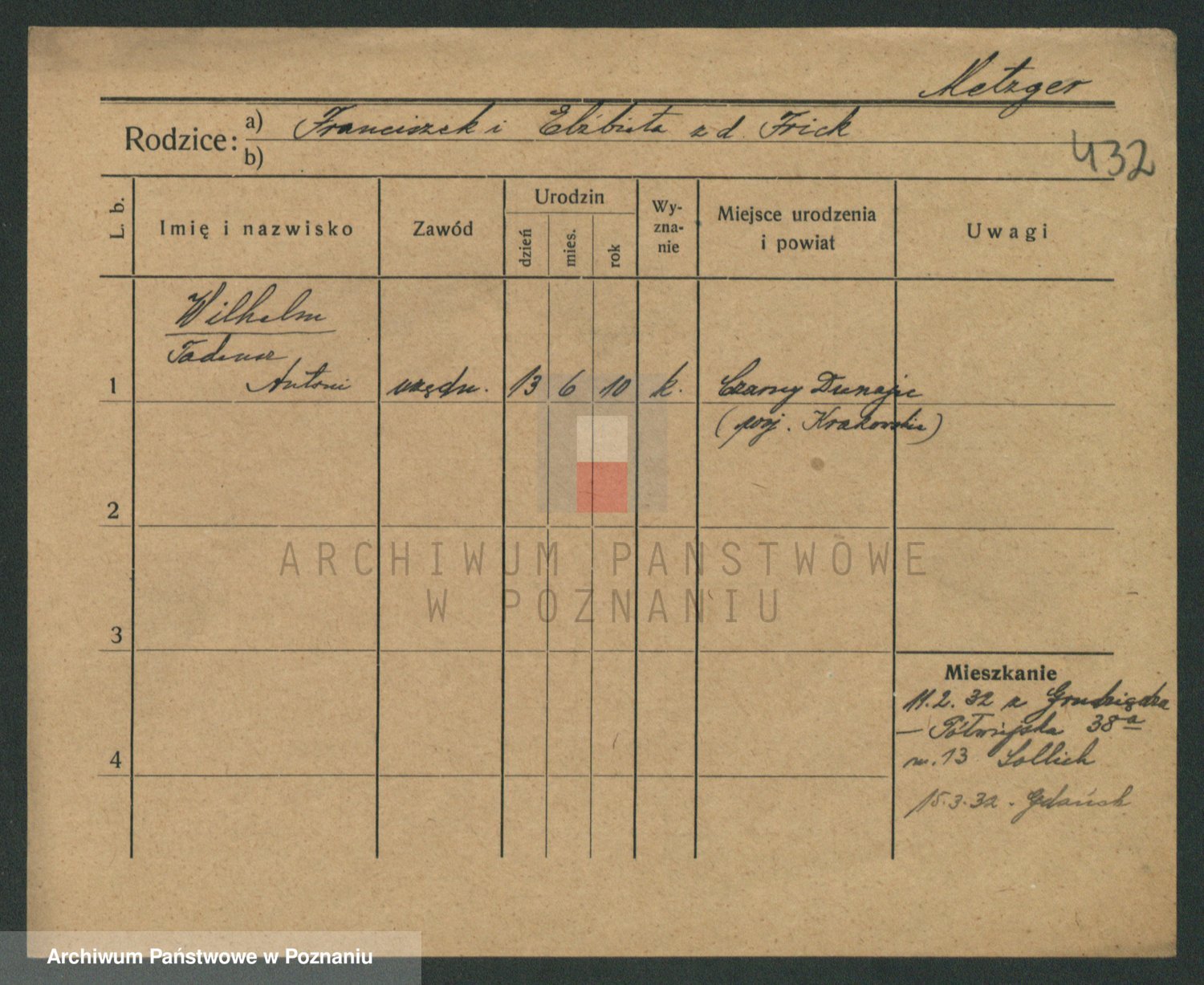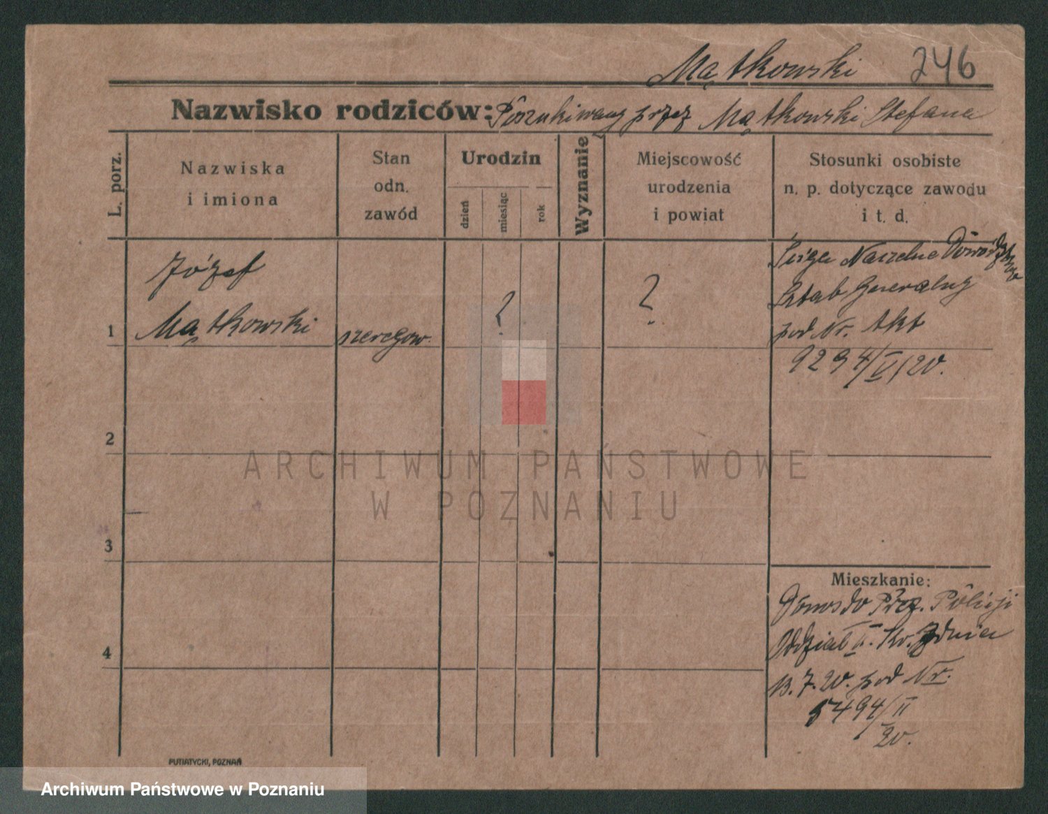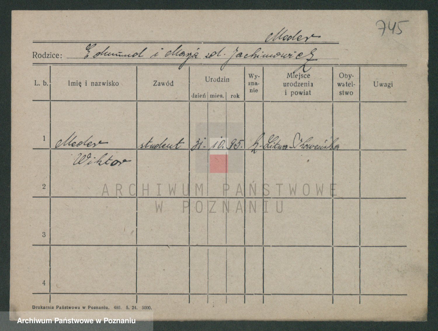 Podgląd karty osobowej dostępny jest po kliknięciu na nazwisko lub ikonkę karty. Można dokonywać powiększenia (ikony na górze) lub przechodzić między kolejnymi skanami (strzałki po bokach).