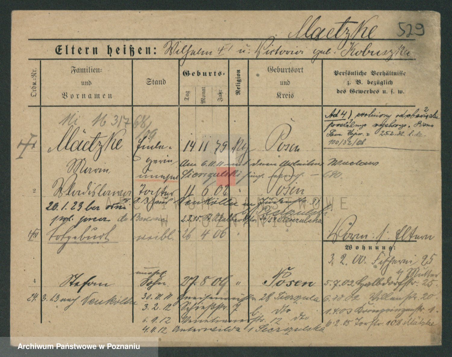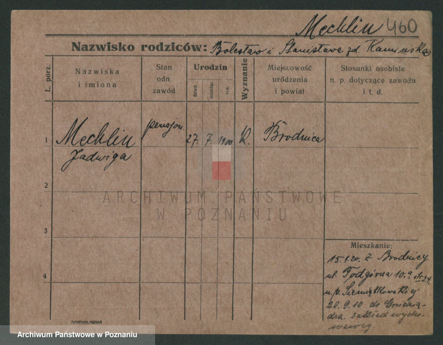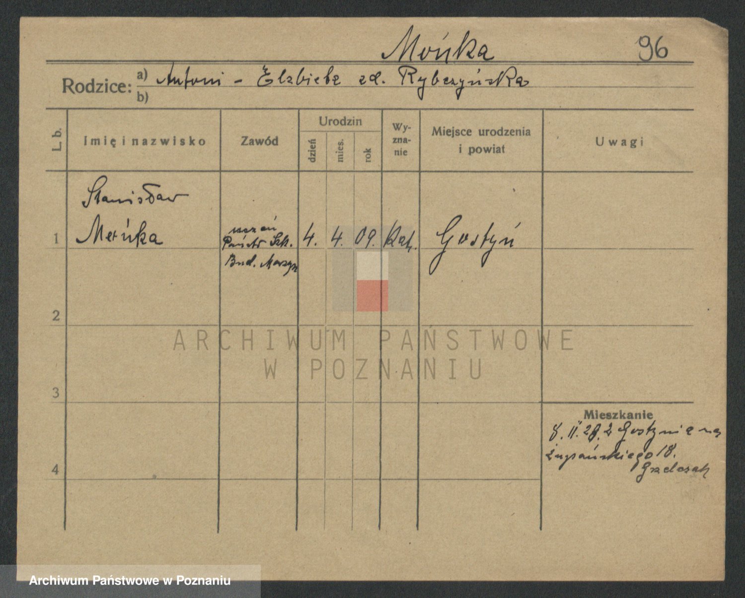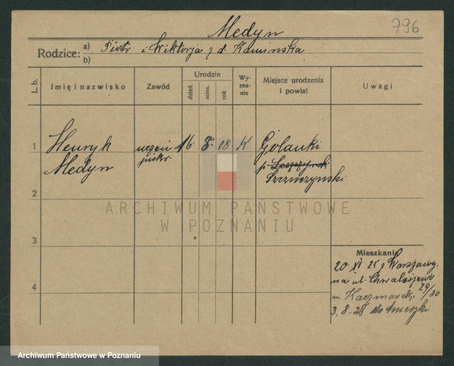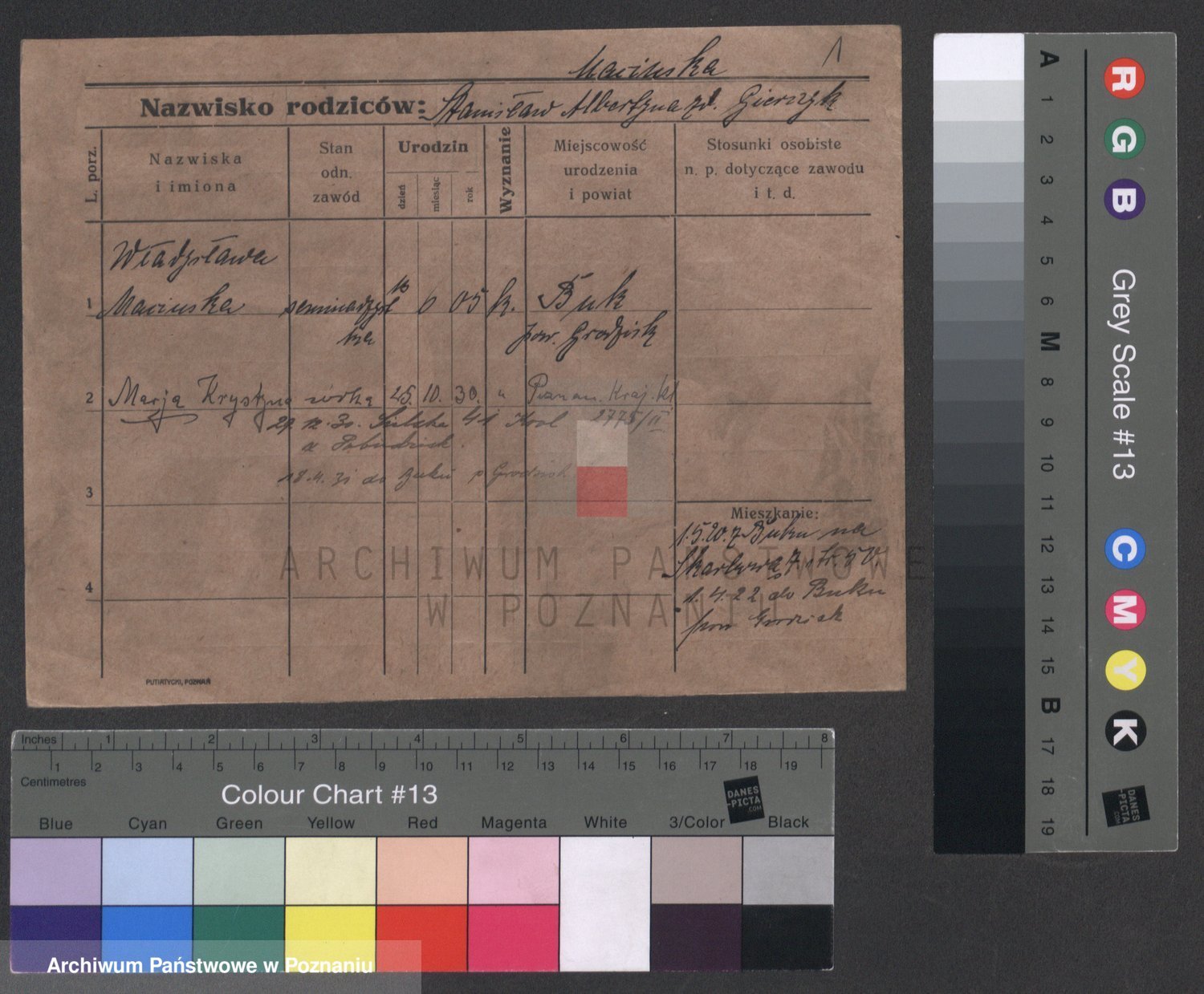 Podgląd karty osobowej dostępny jest po kliknięciu na nazwisko lub ikonkę karty. Można dokonywać powiększenia (ikony na górze) lub przechodzić między kolejnymi skanami (strzałki po bokach).