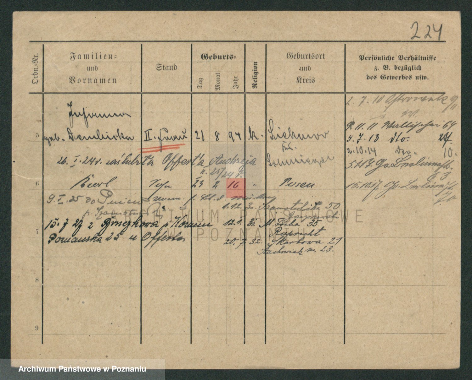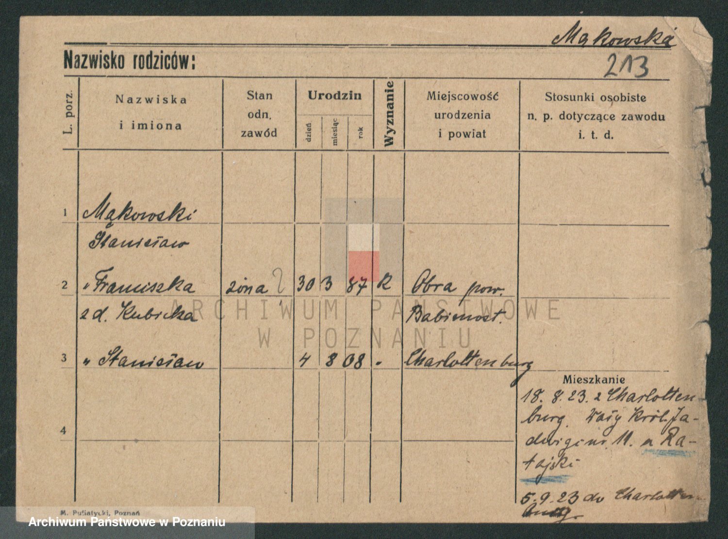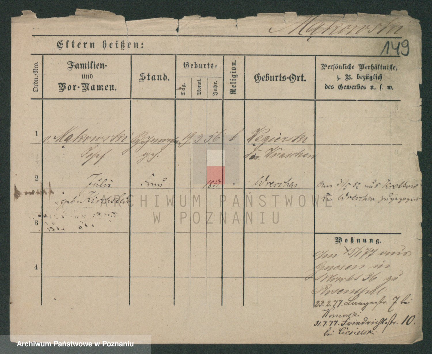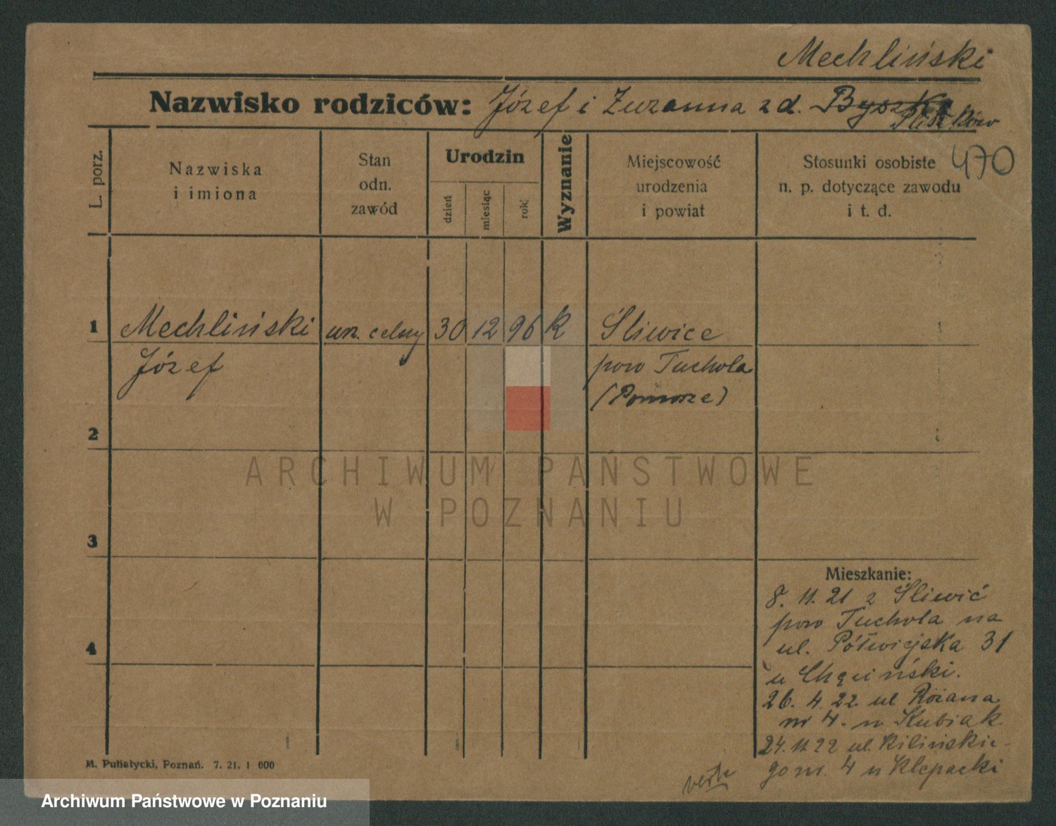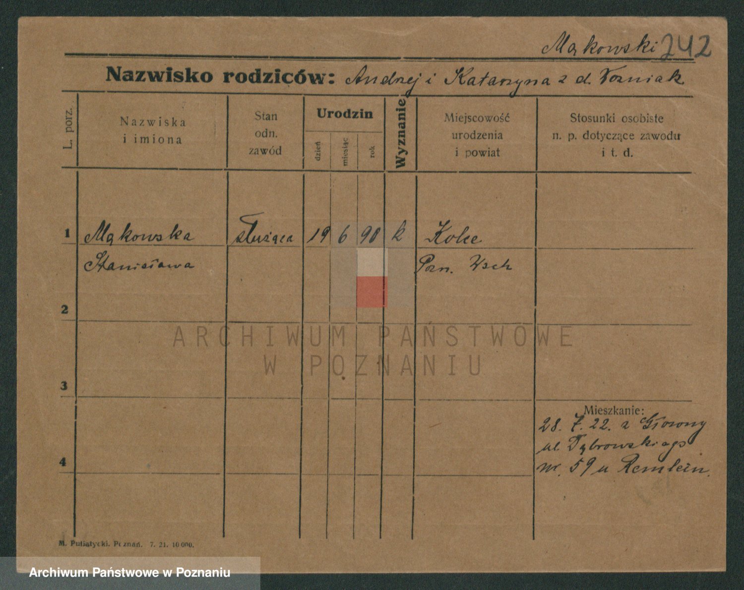 Podgląd karty osobowej dostępny jest po kliknięciu na nazwisko lub ikonkę karty. Można dokonywać powiększenia (ikony na górze) lub przechodzić między kolejnymi skanami (strzałki po bokach).