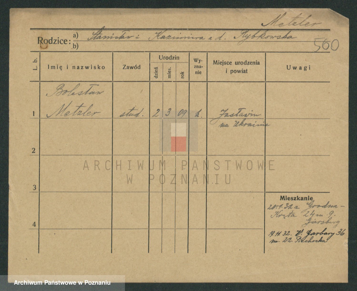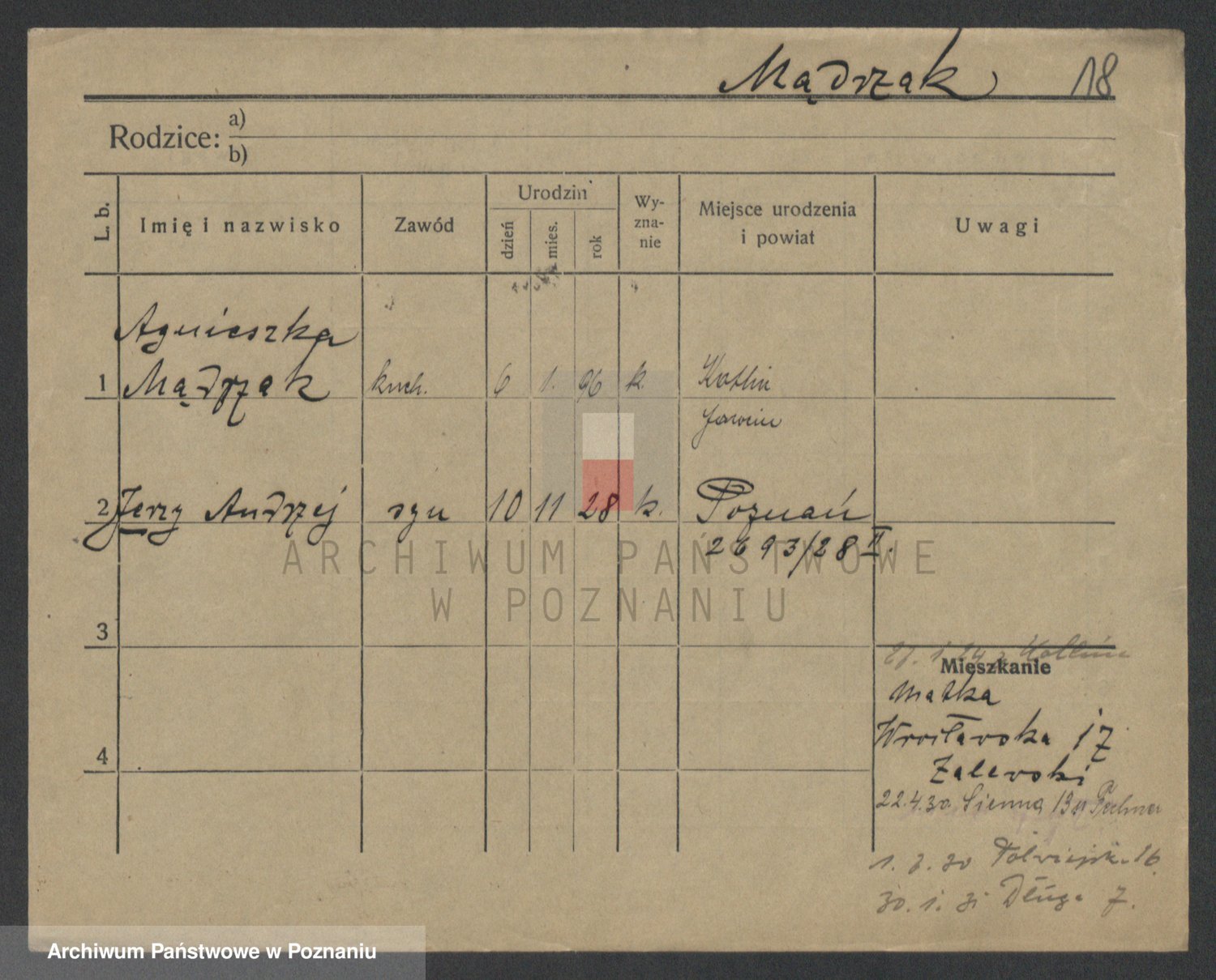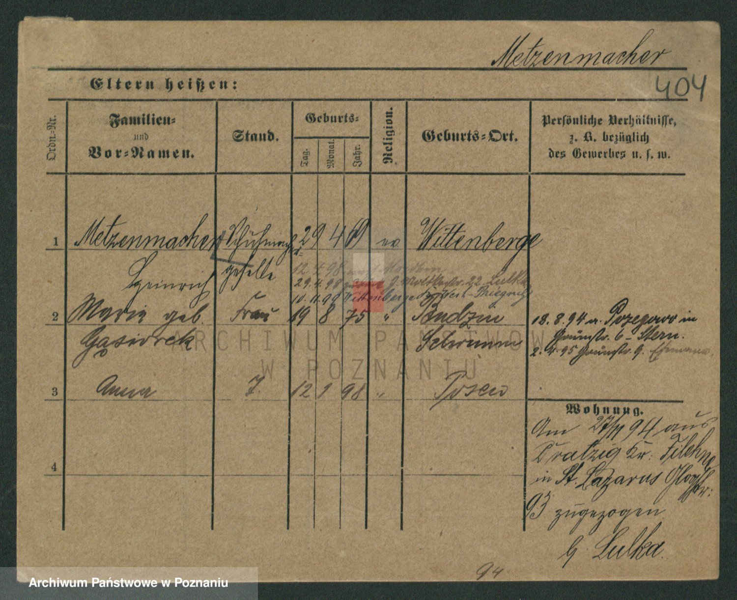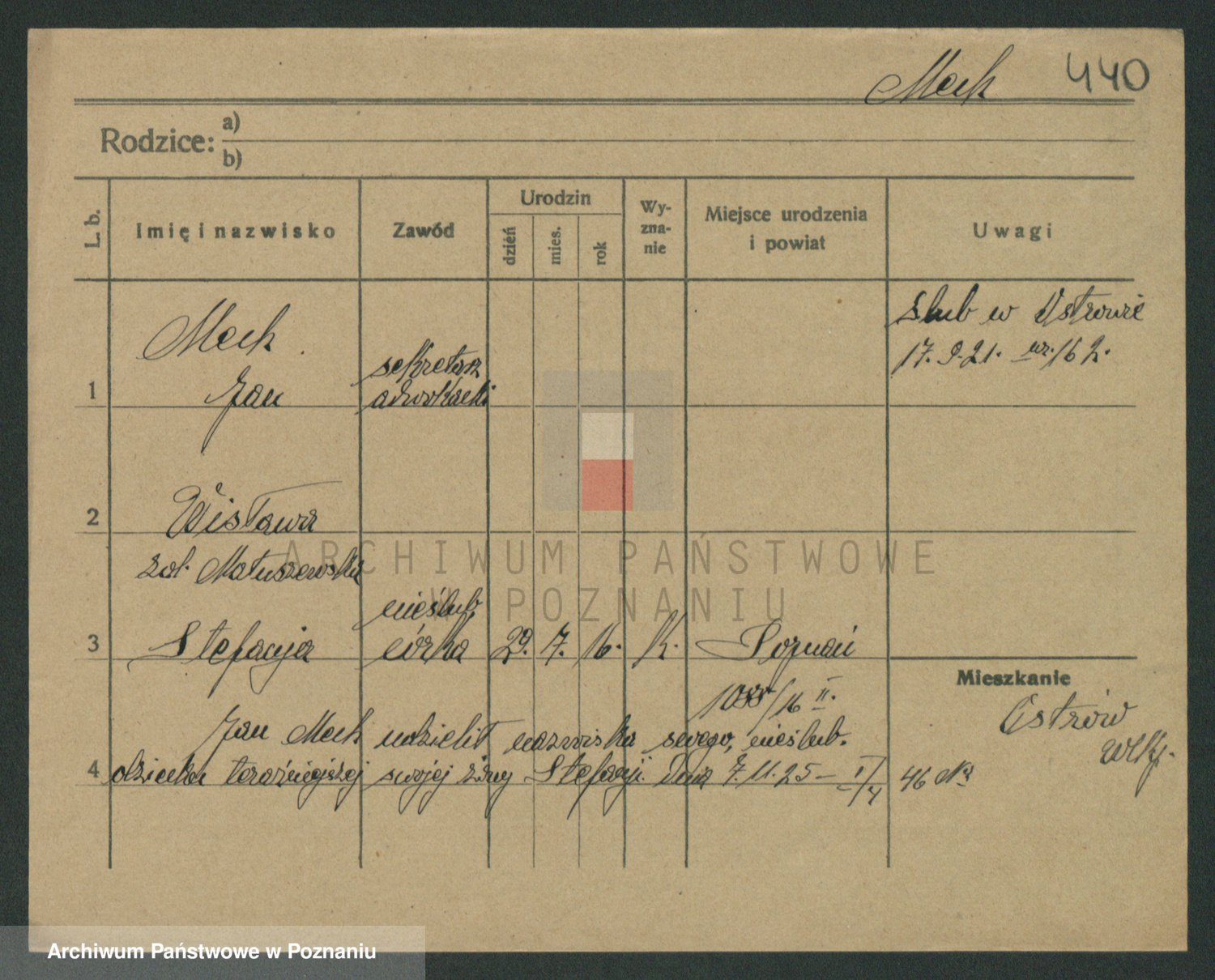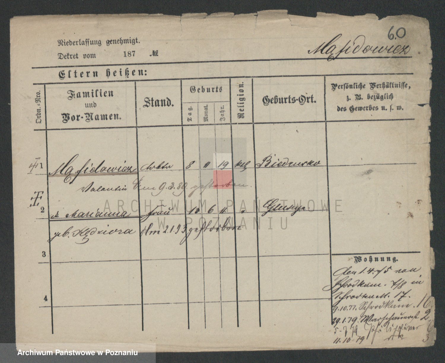Podgląd karty osobowej dostępny jest po kliknięciu na nazwisko lub ikonkę karty. Można dokonywać powiększenia (ikony na górze) lub przechodzić między kolejnymi skanami (strzałki po bokach).