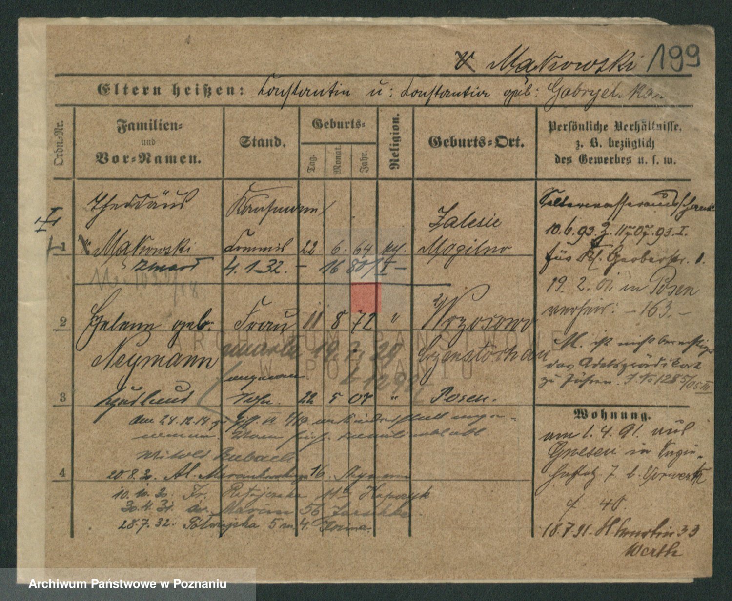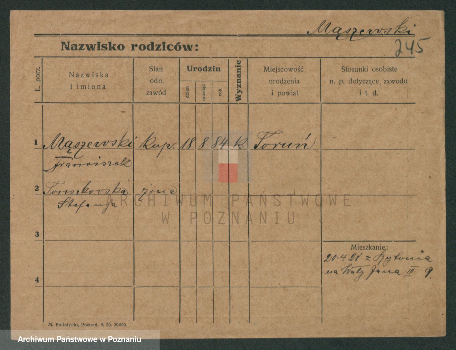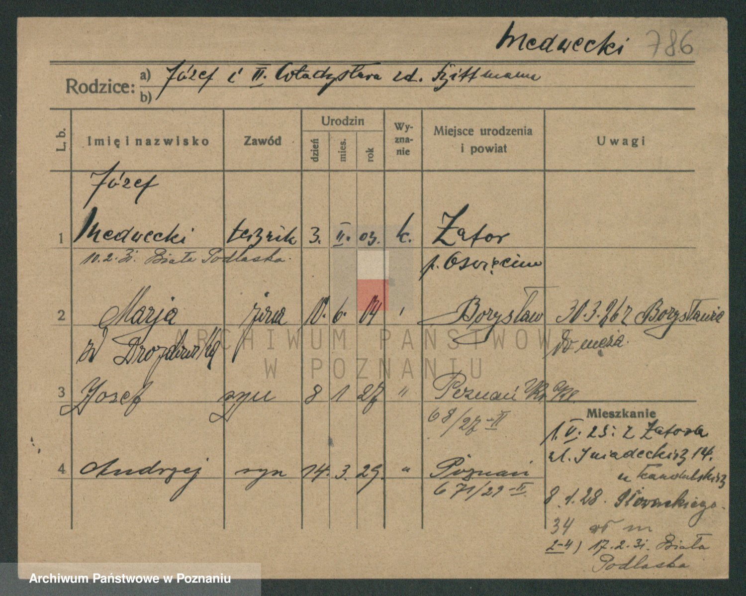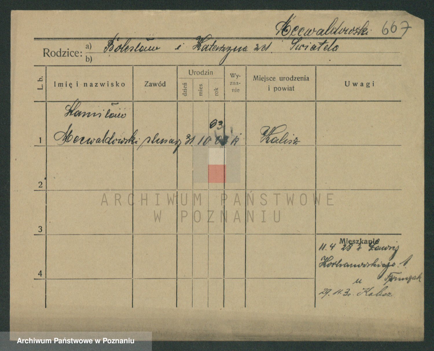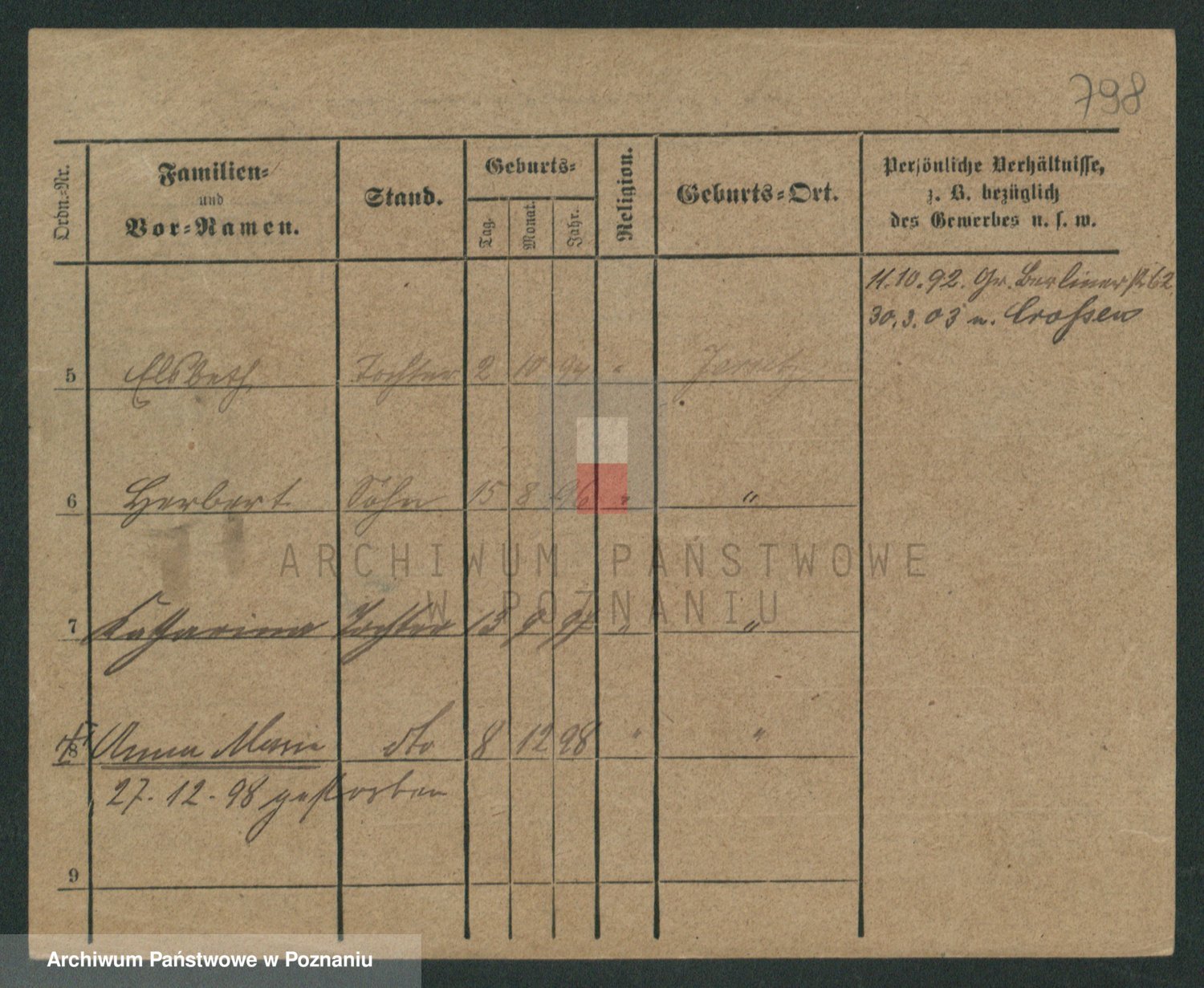 Podgląd karty osobowej dostępny jest po kliknięciu na nazwisko lub ikonkę karty. Można dokonywać powiększenia (ikony na górze) lub przechodzić między kolejnymi skanami (strzałki po bokach).