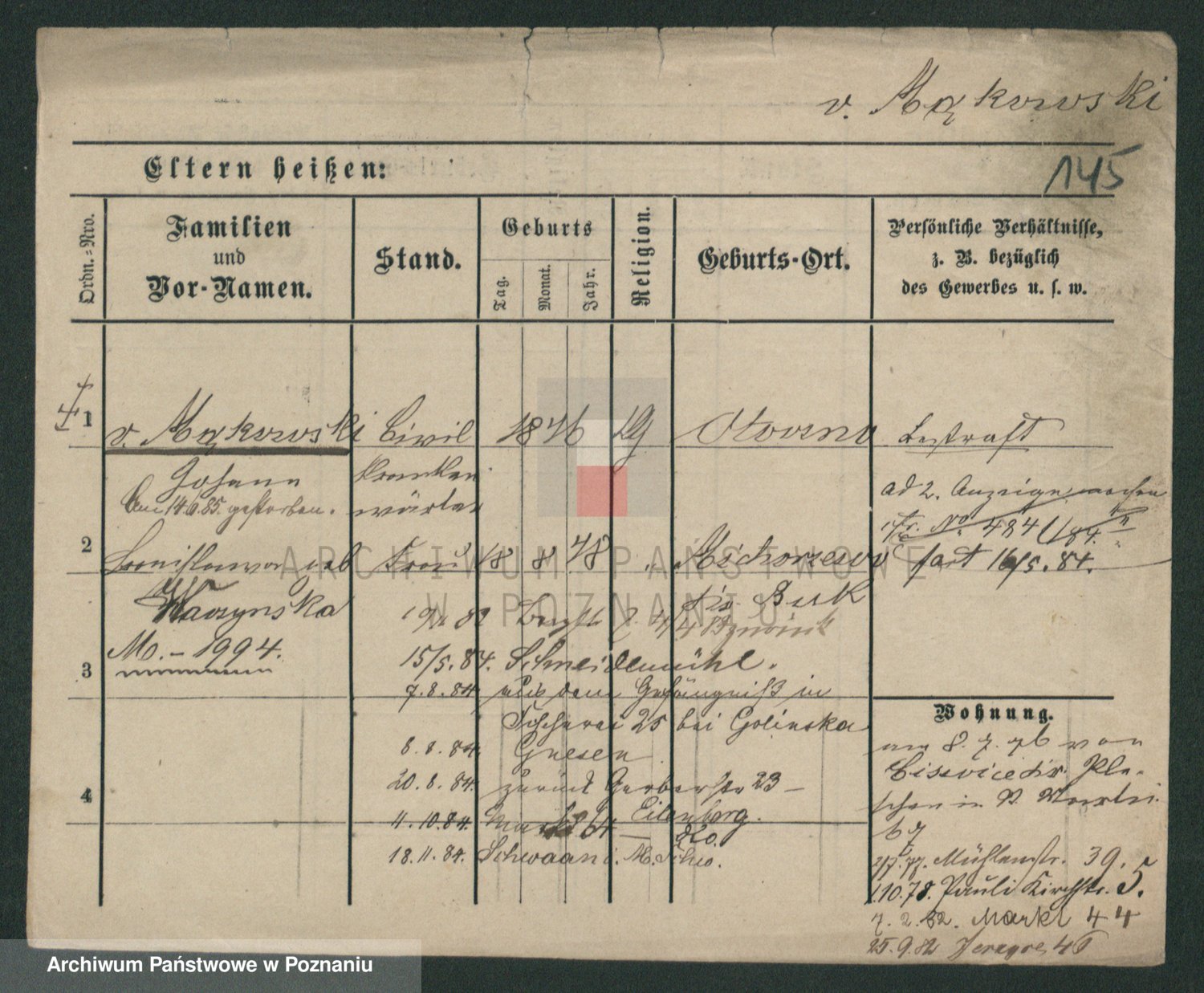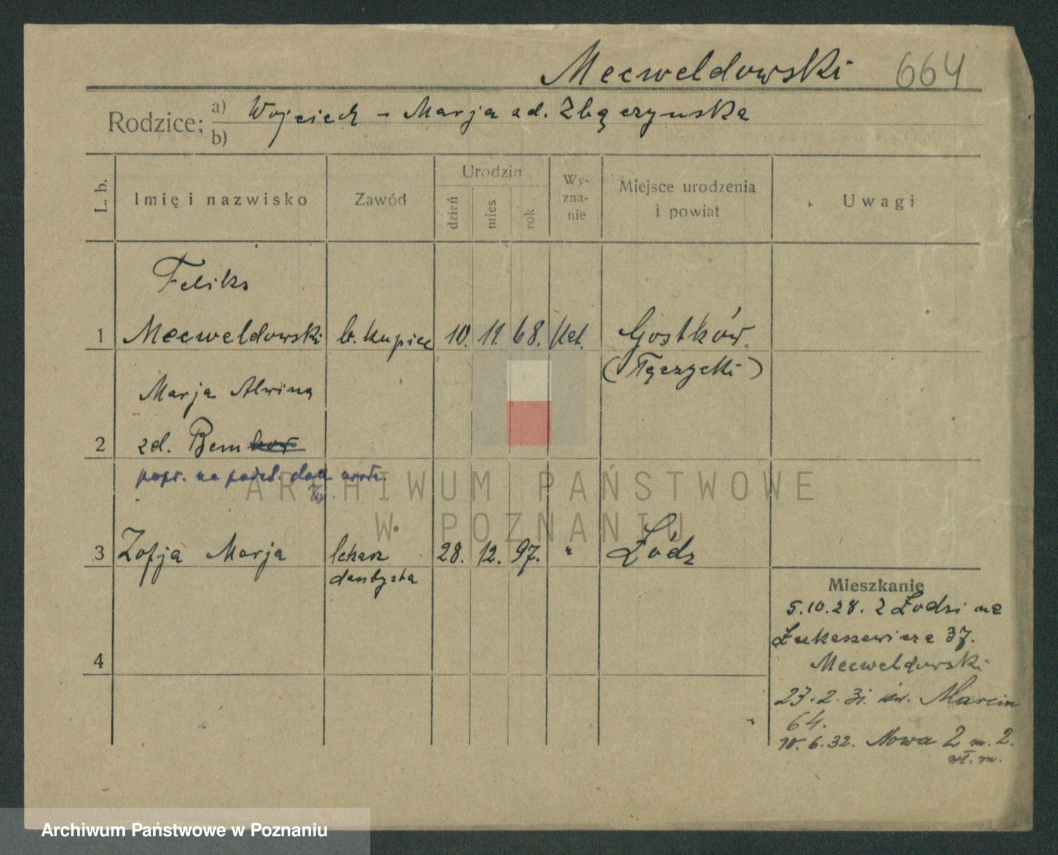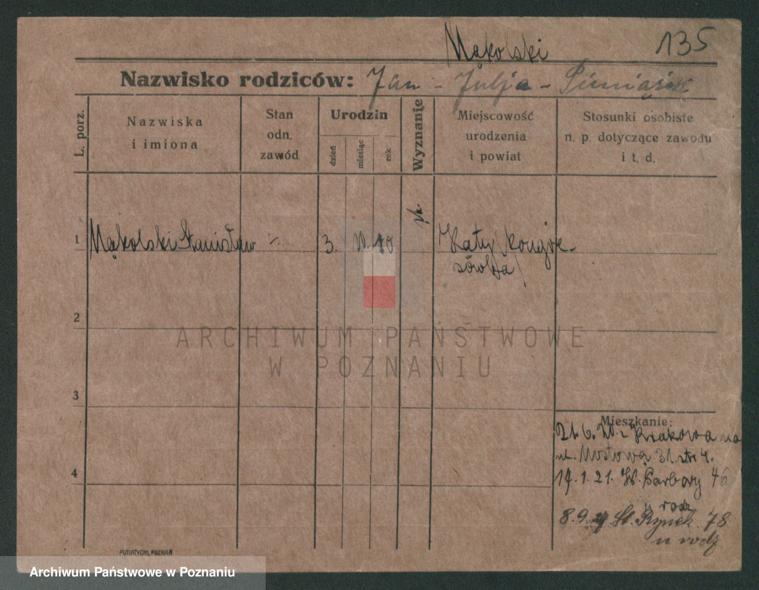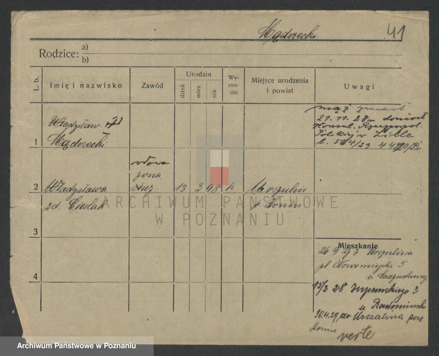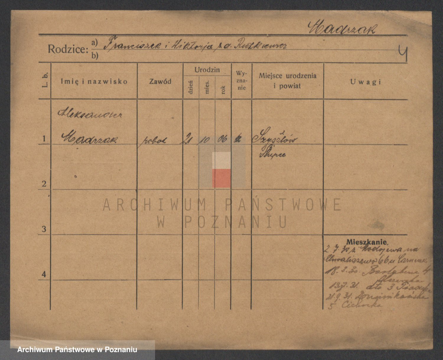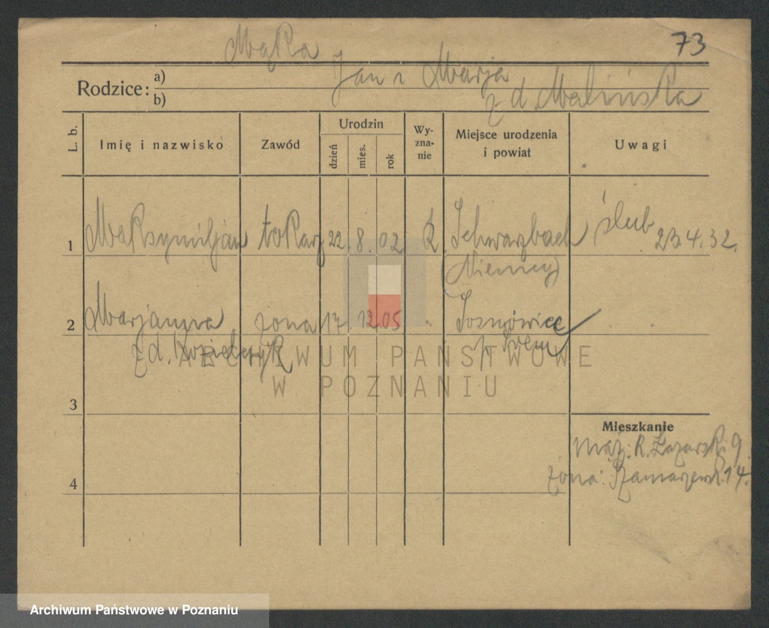 Podgląd karty osobowej dostępny jest po kliknięciu na nazwisko lub ikonkę karty. Można dokonywać powiększenia (ikony na górze) lub przechodzić między kolejnymi skanami (strzałki po bokach).