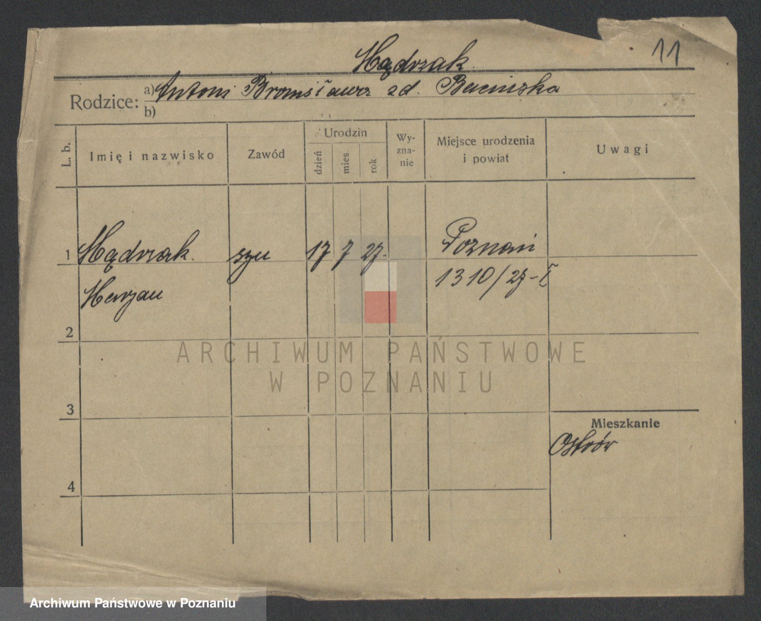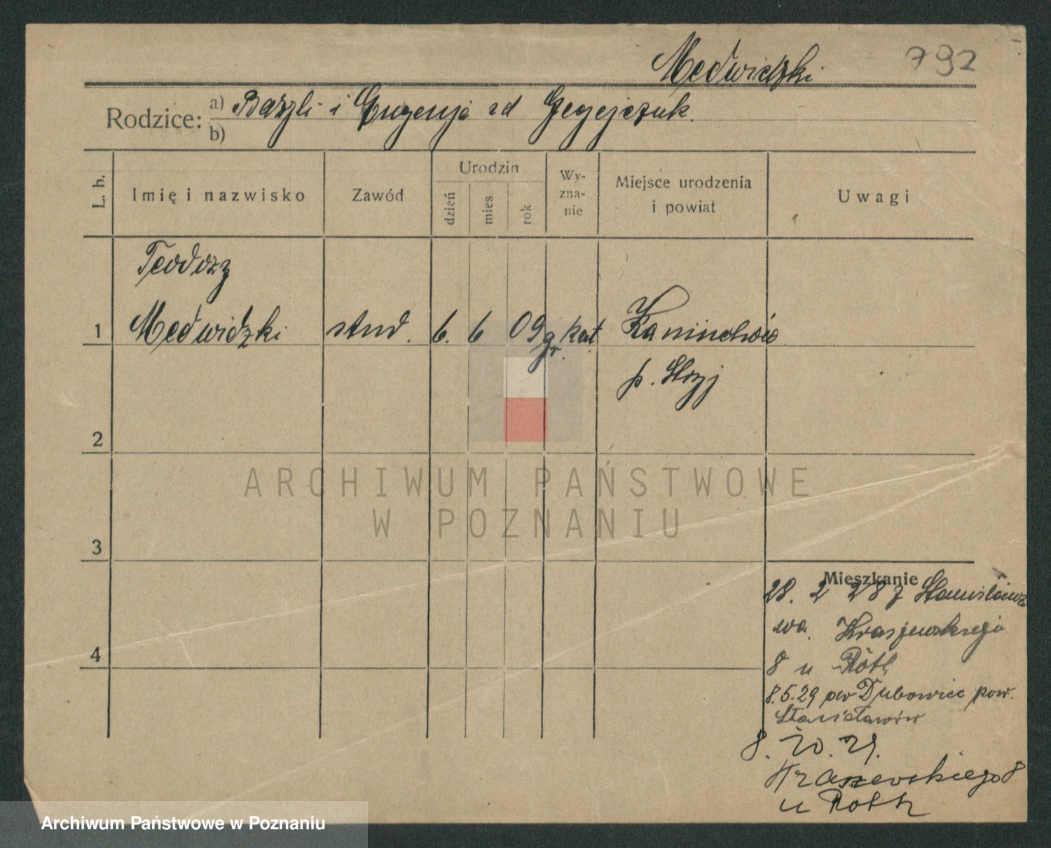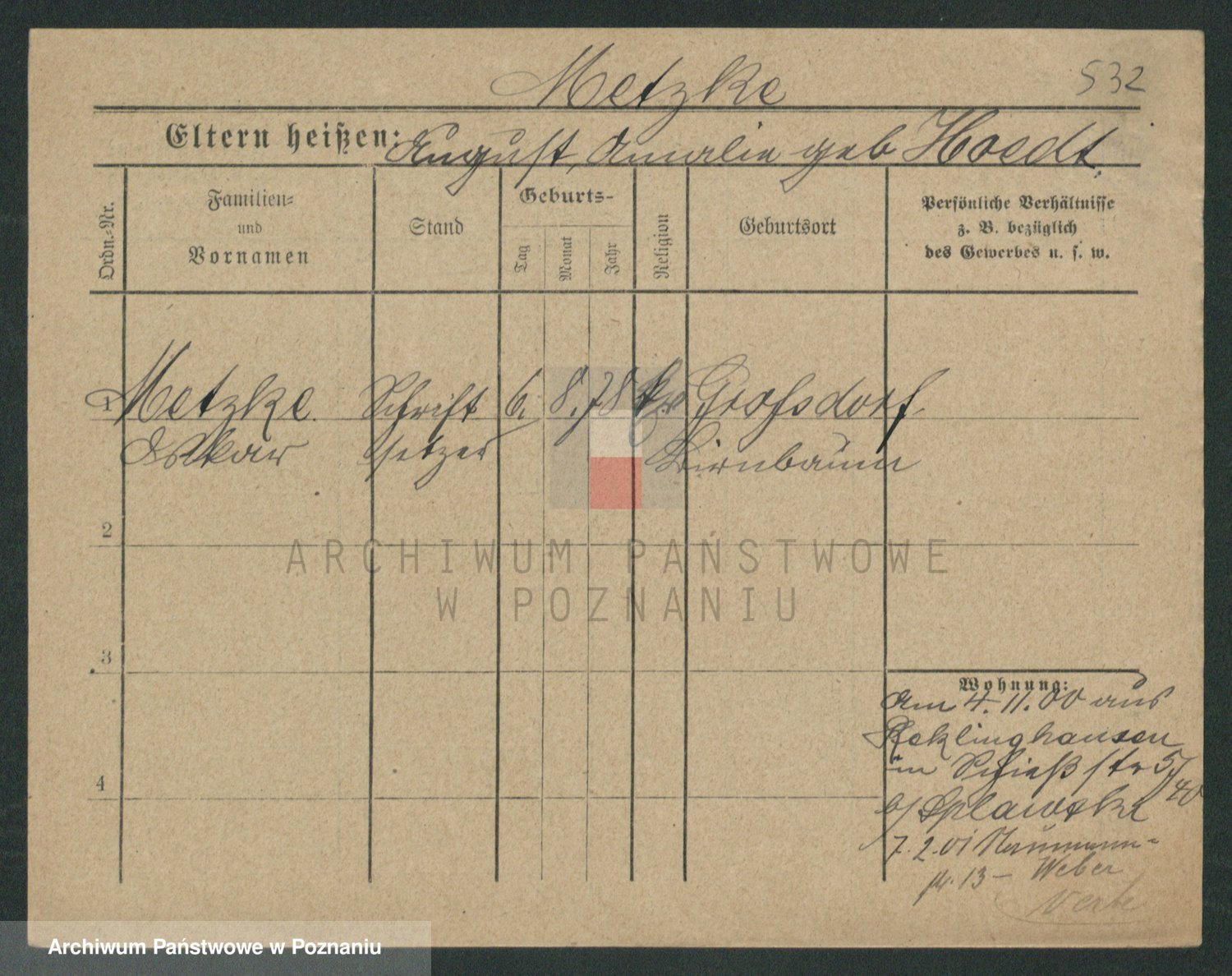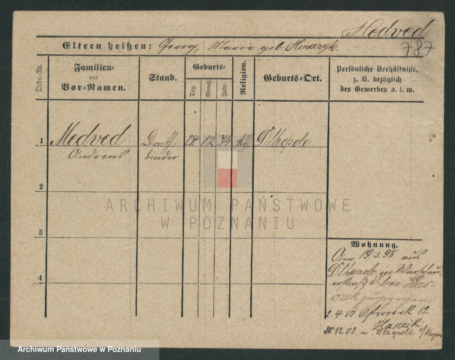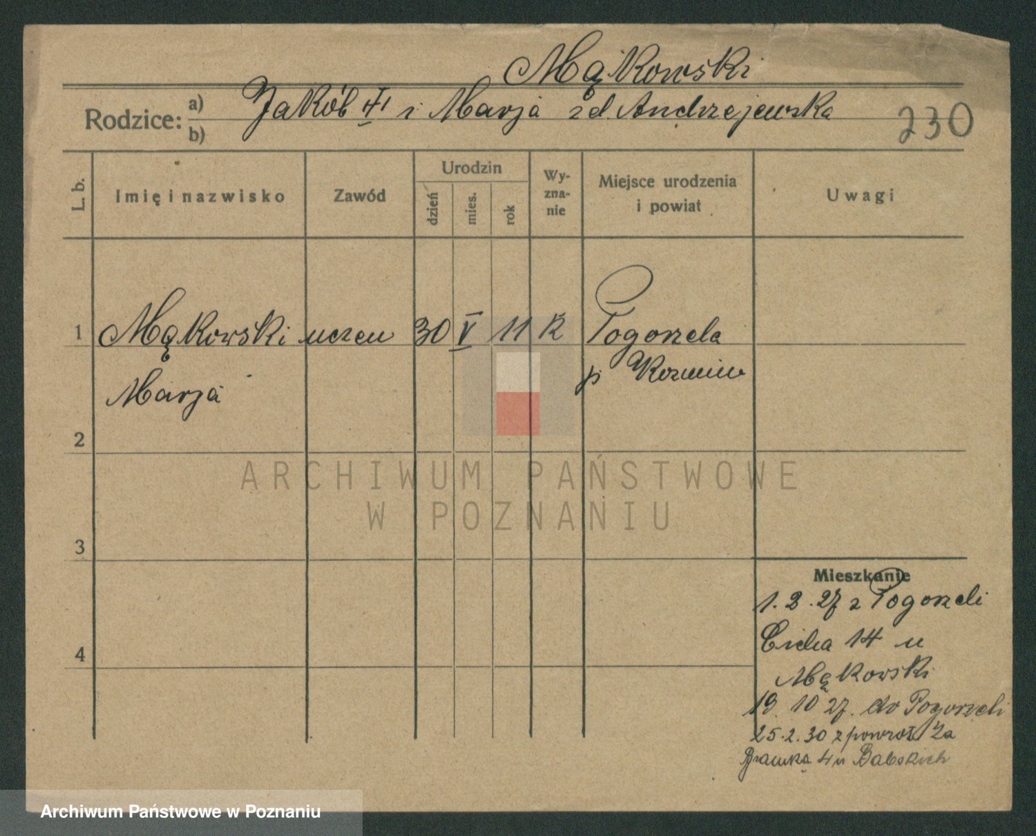 Podgląd karty osobowej dostępny jest po kliknięciu na nazwisko lub ikonkę karty. Można dokonywać powiększenia (ikony na górze) lub przechodzić między kolejnymi skanami (strzałki po bokach).