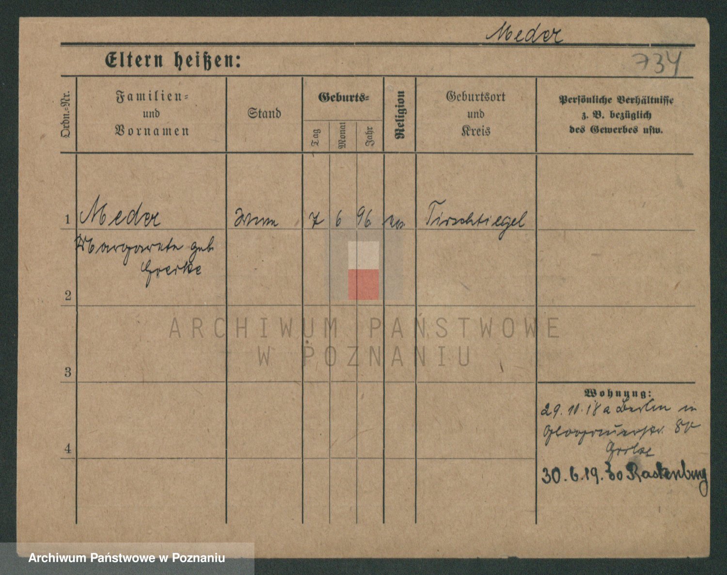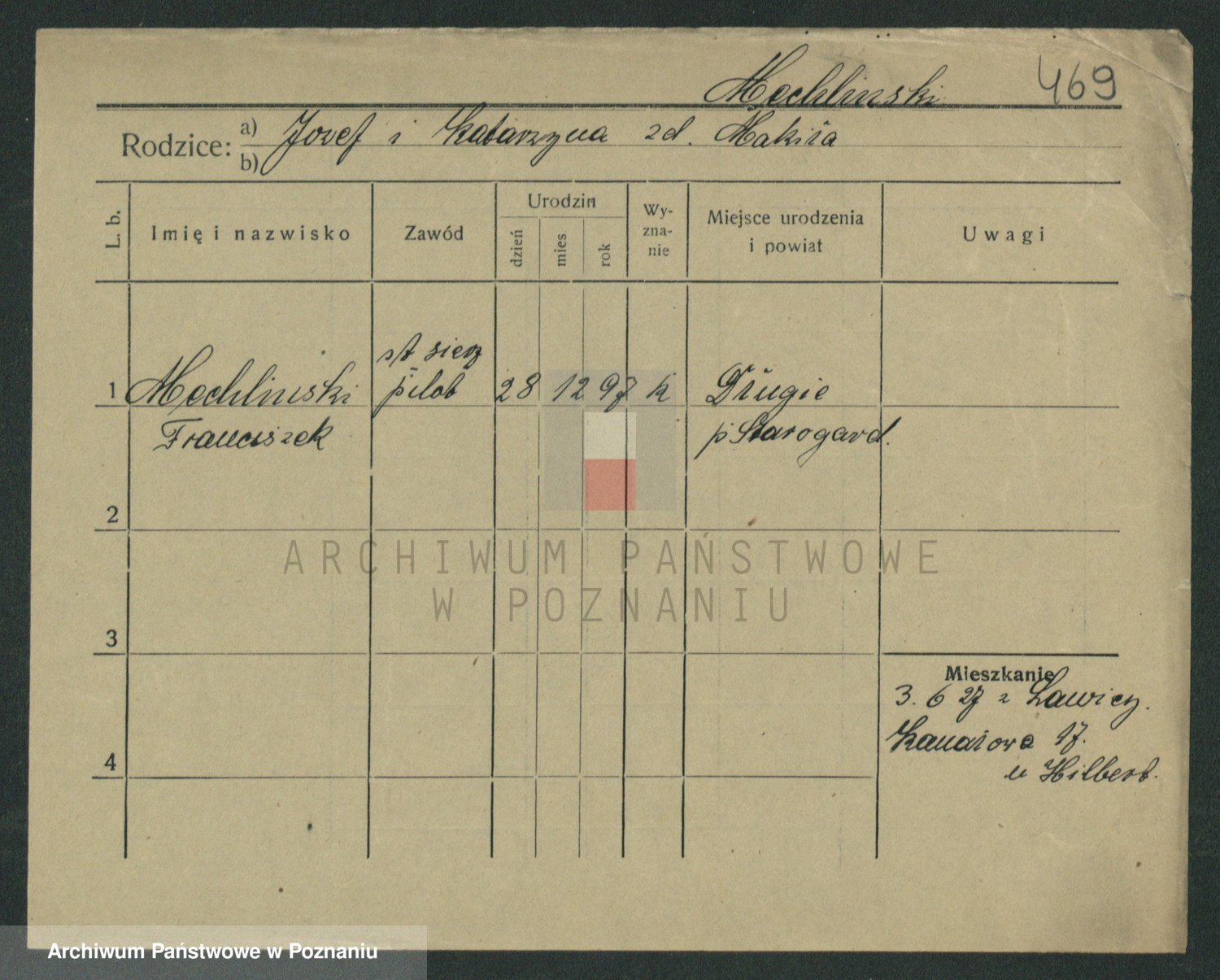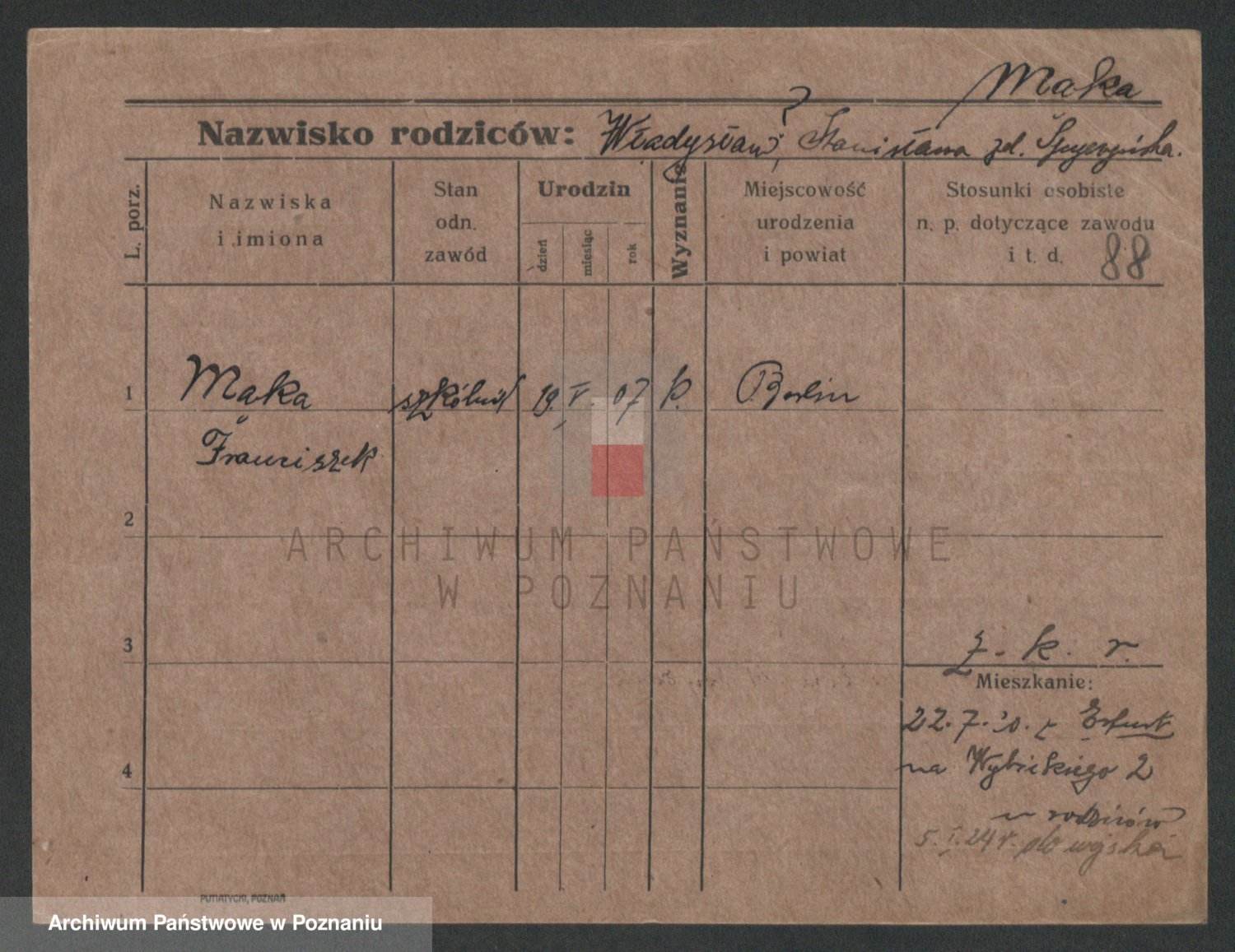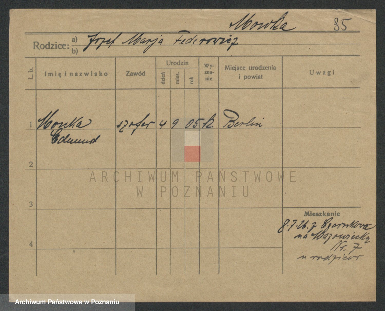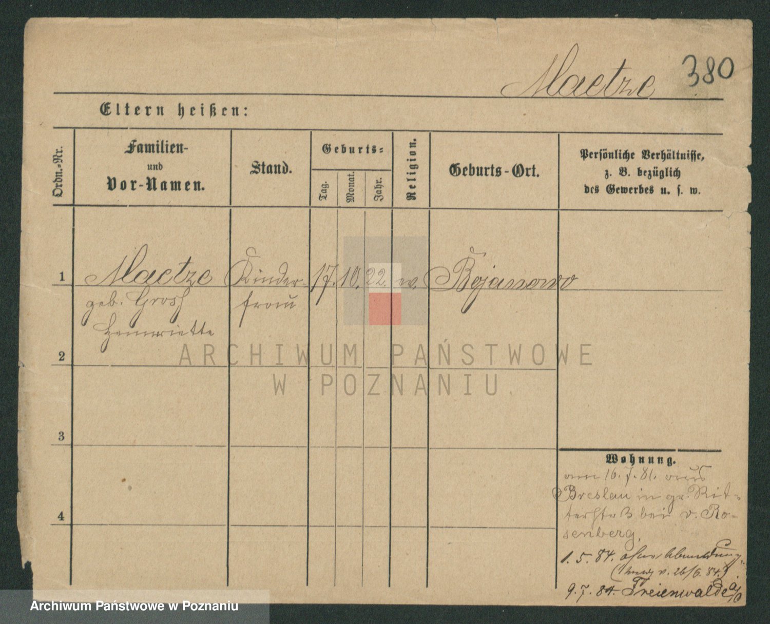 Podgląd karty osobowej dostępny jest po kliknięciu na nazwisko lub ikonkę karty. Można dokonywać powiększenia (ikony na górze) lub przechodzić między kolejnymi skanami (strzałki po bokach).