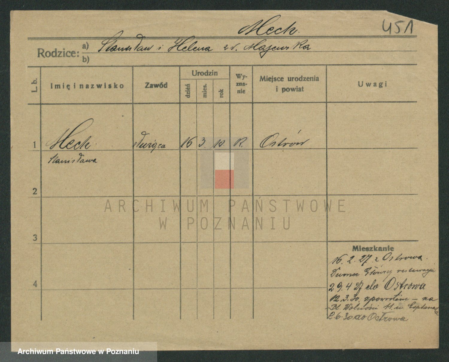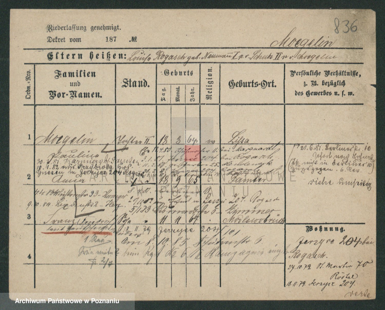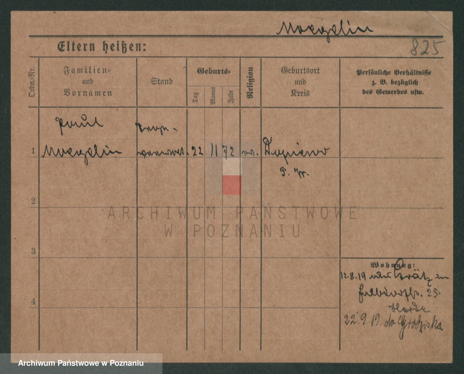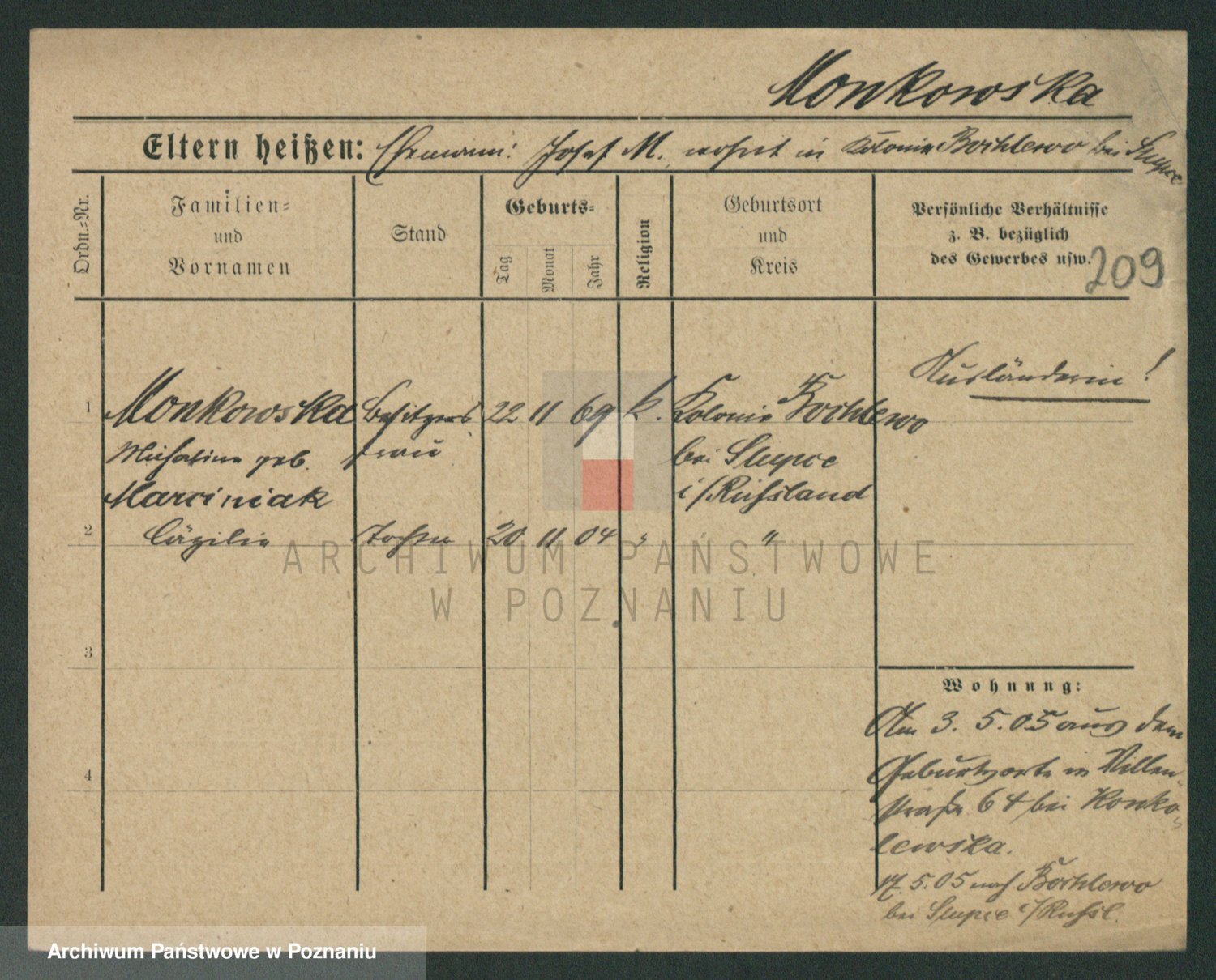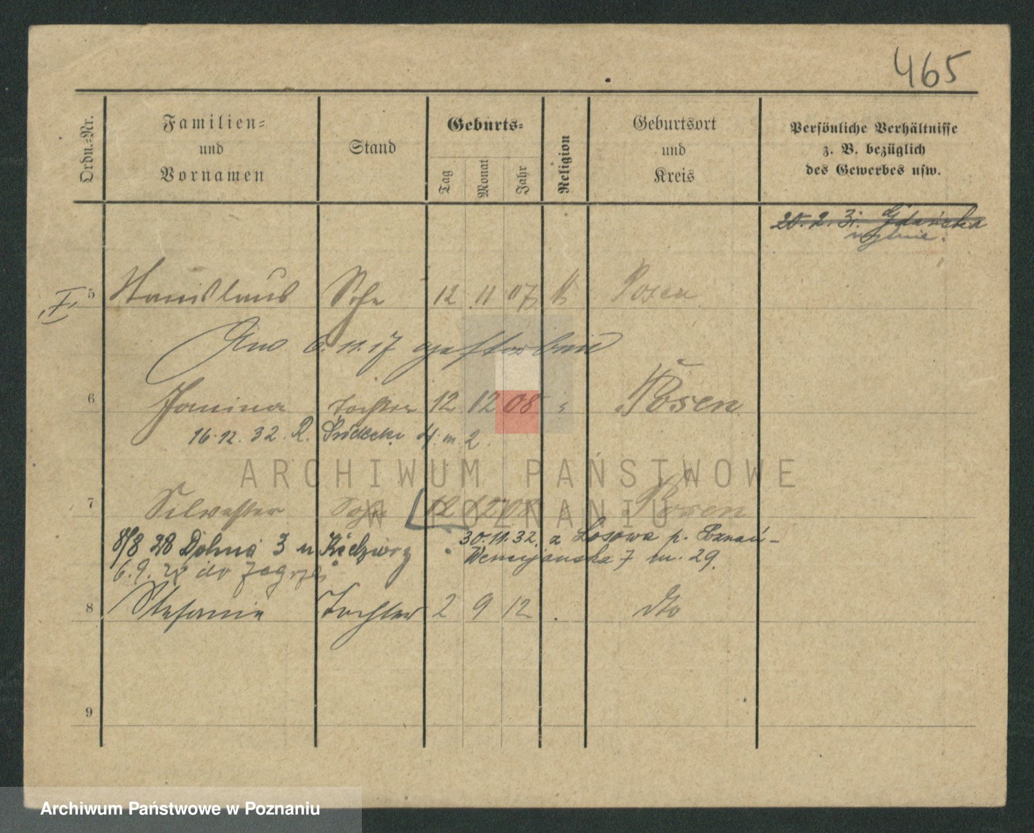 Podgląd karty osobowej dostępny jest po kliknięciu na nazwisko lub ikonkę karty. Można dokonywać powiększenia (ikony na górze) lub przechodzić między kolejnymi skanami (strzałki po bokach).