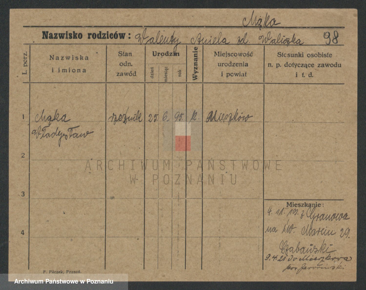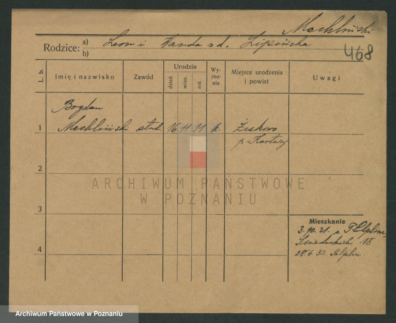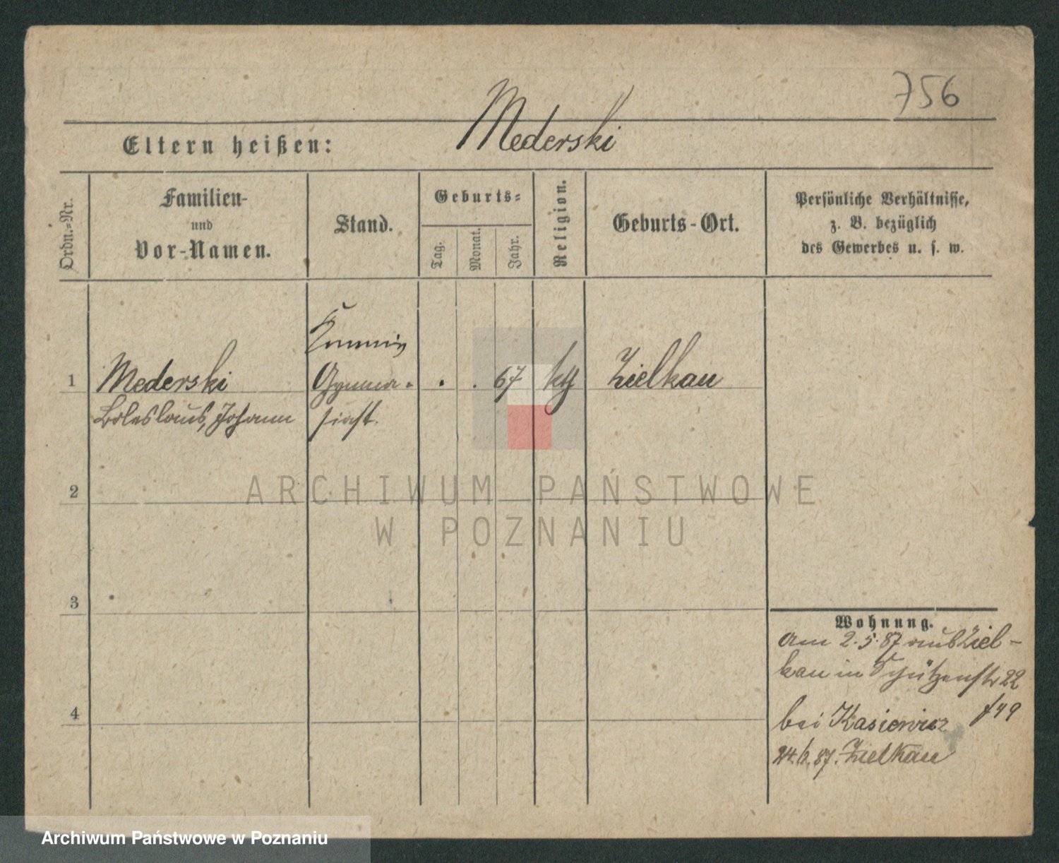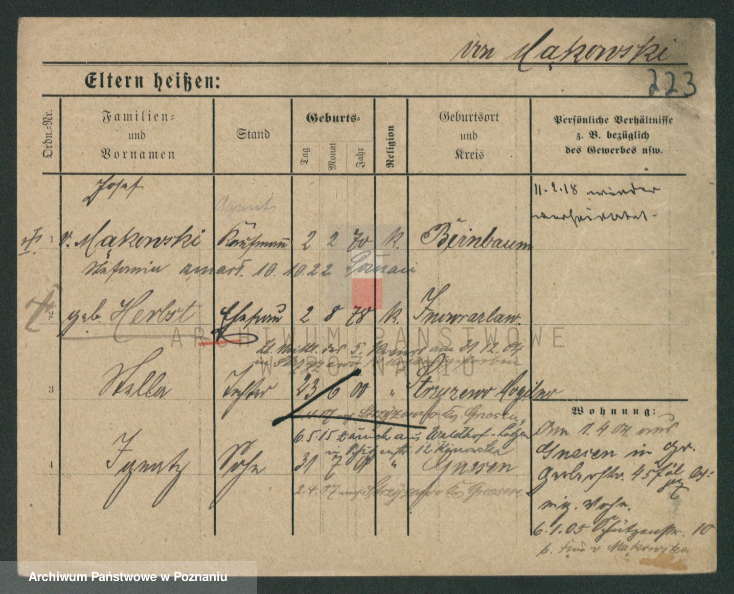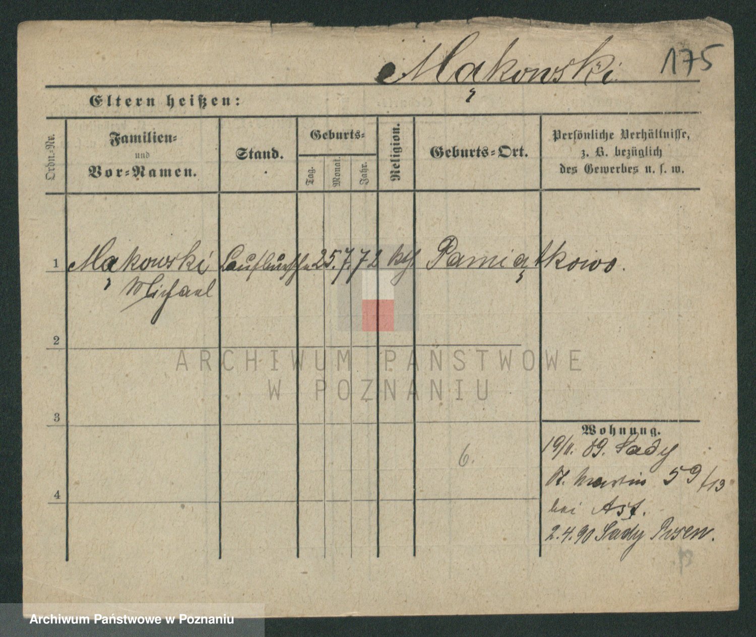 Podgląd karty osobowej dostępny jest po kliknięciu na nazwisko lub ikonkę karty. Można dokonywać powiększenia (ikony na górze) lub przechodzić między kolejnymi skanami (strzałki po bokach).