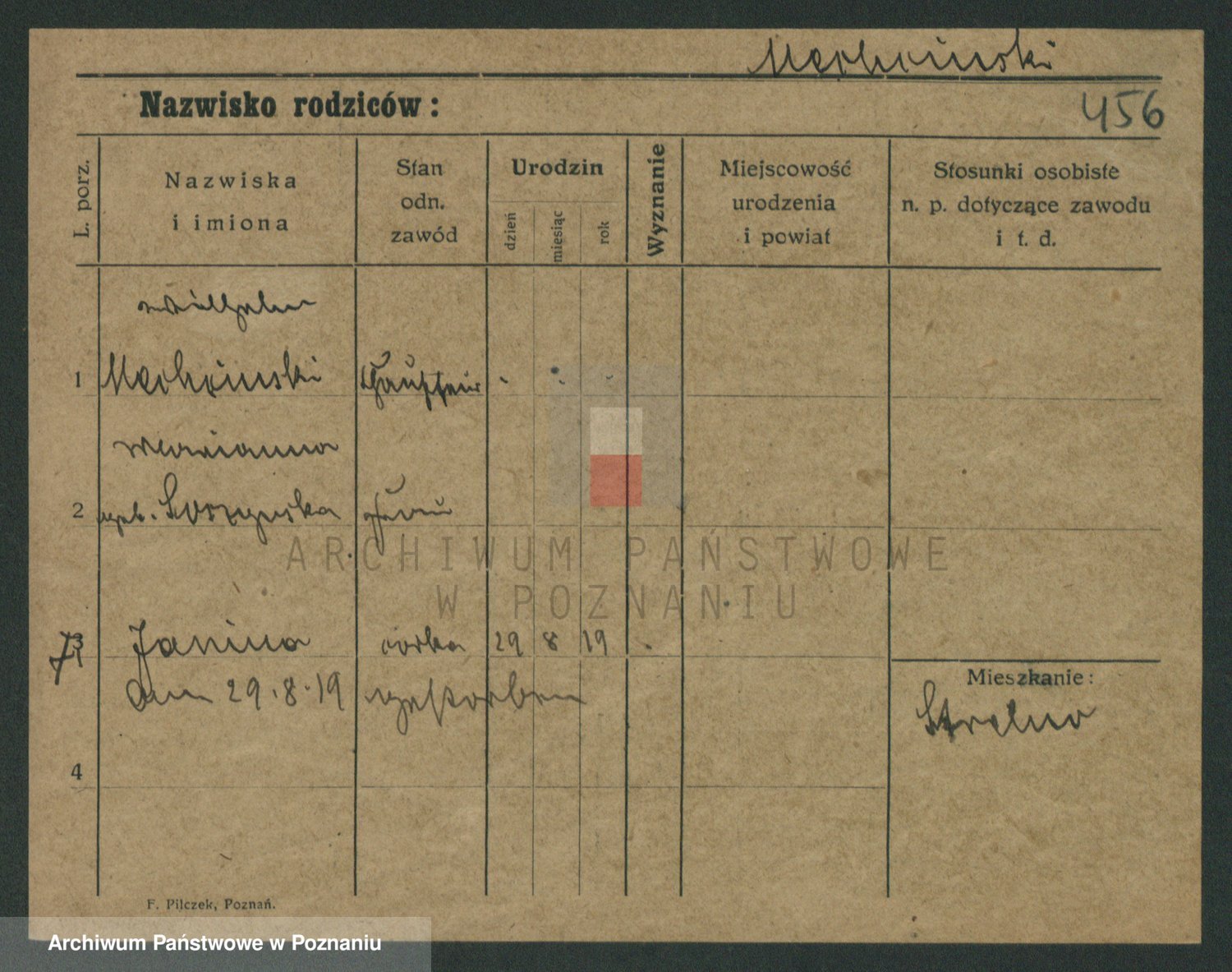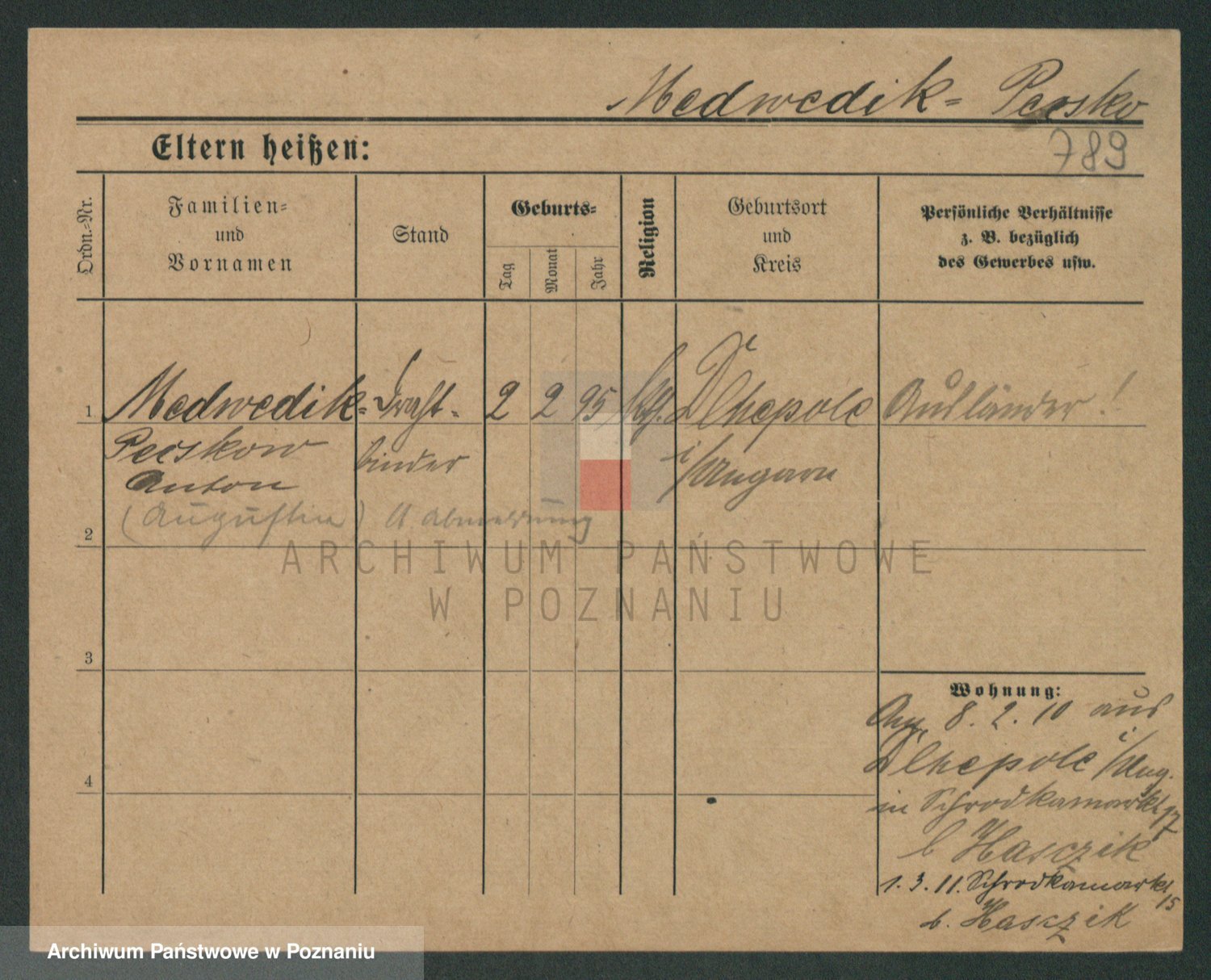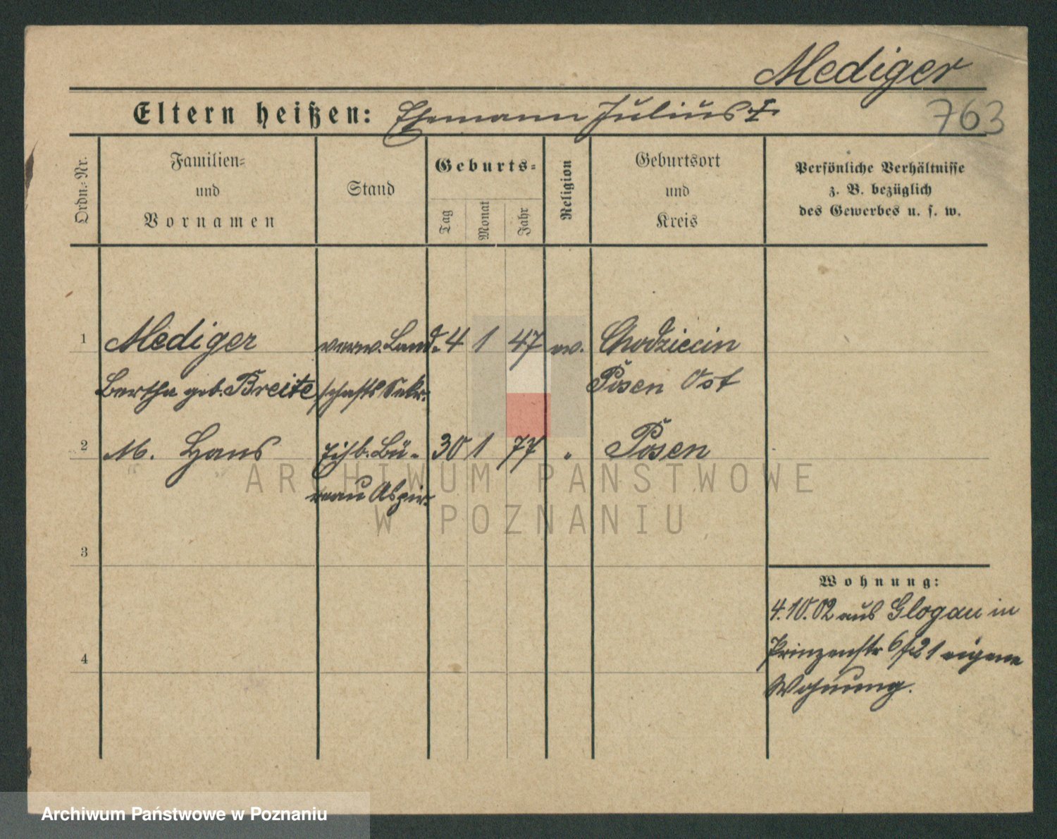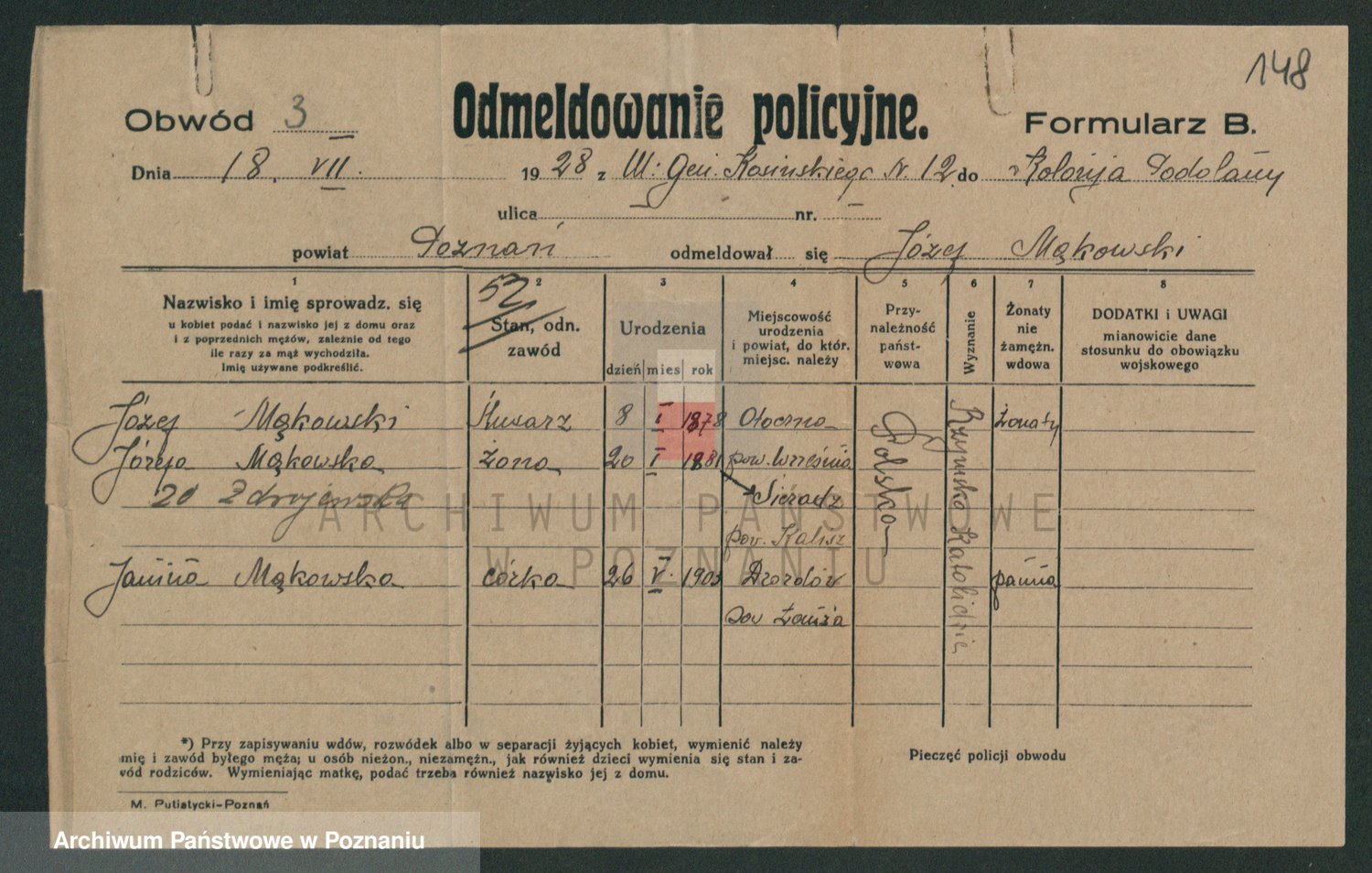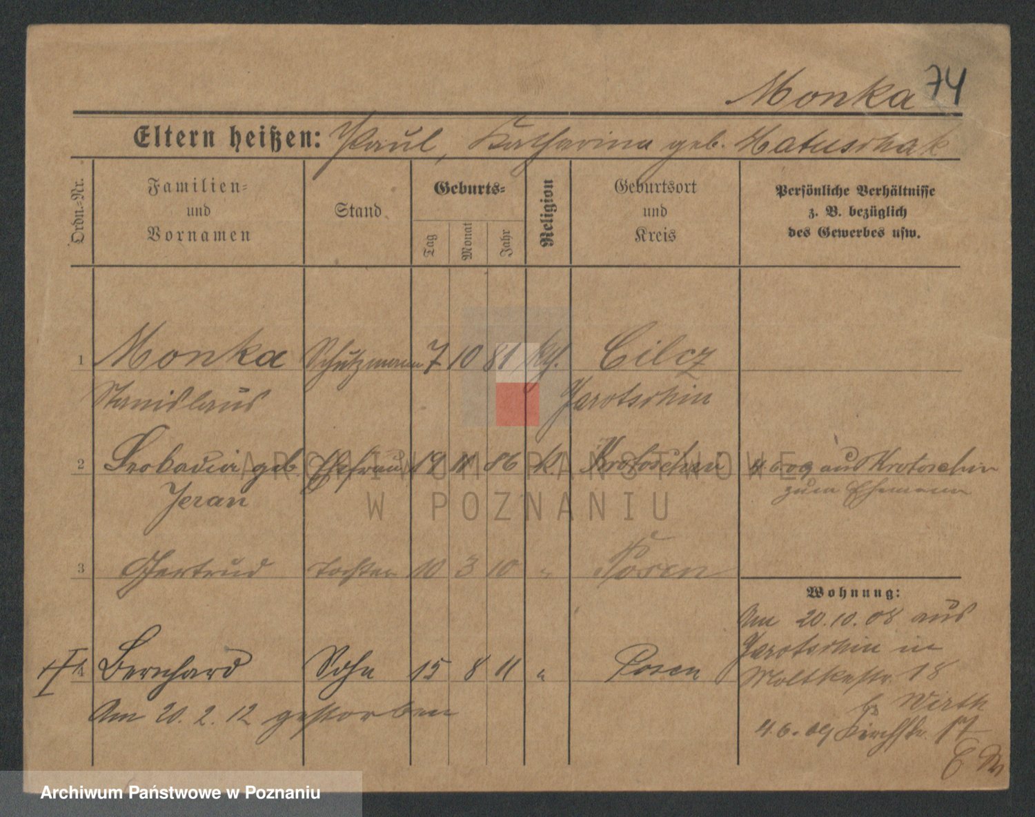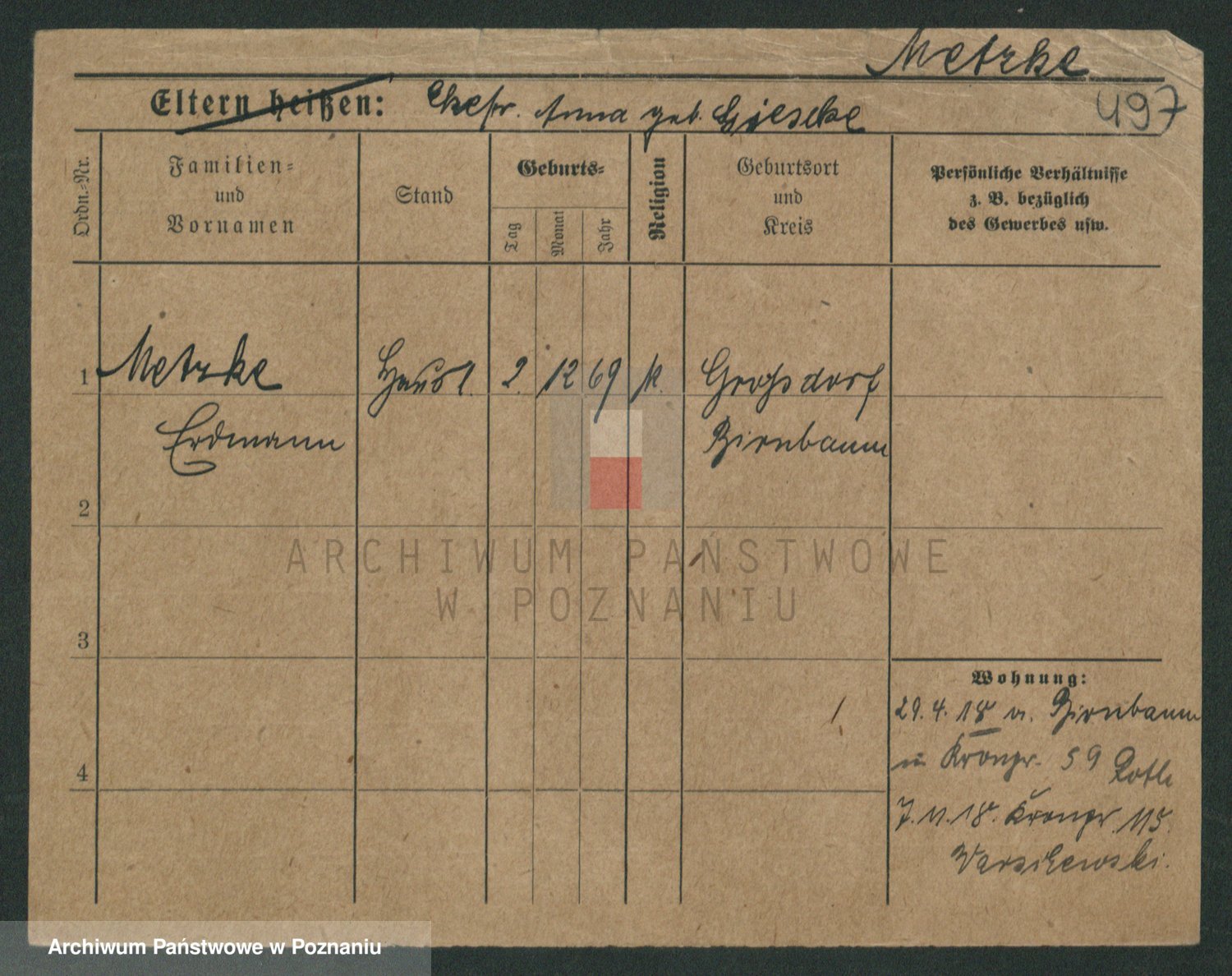 Podgląd karty osobowej dostępny jest po kliknięciu na nazwisko lub ikonkę karty. Można dokonywać powiększenia (ikony na górze) lub przechodzić między kolejnymi skanami (strzałki po bokach).
