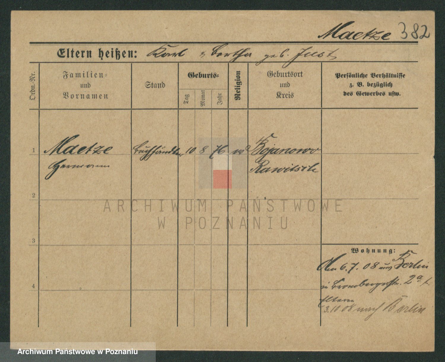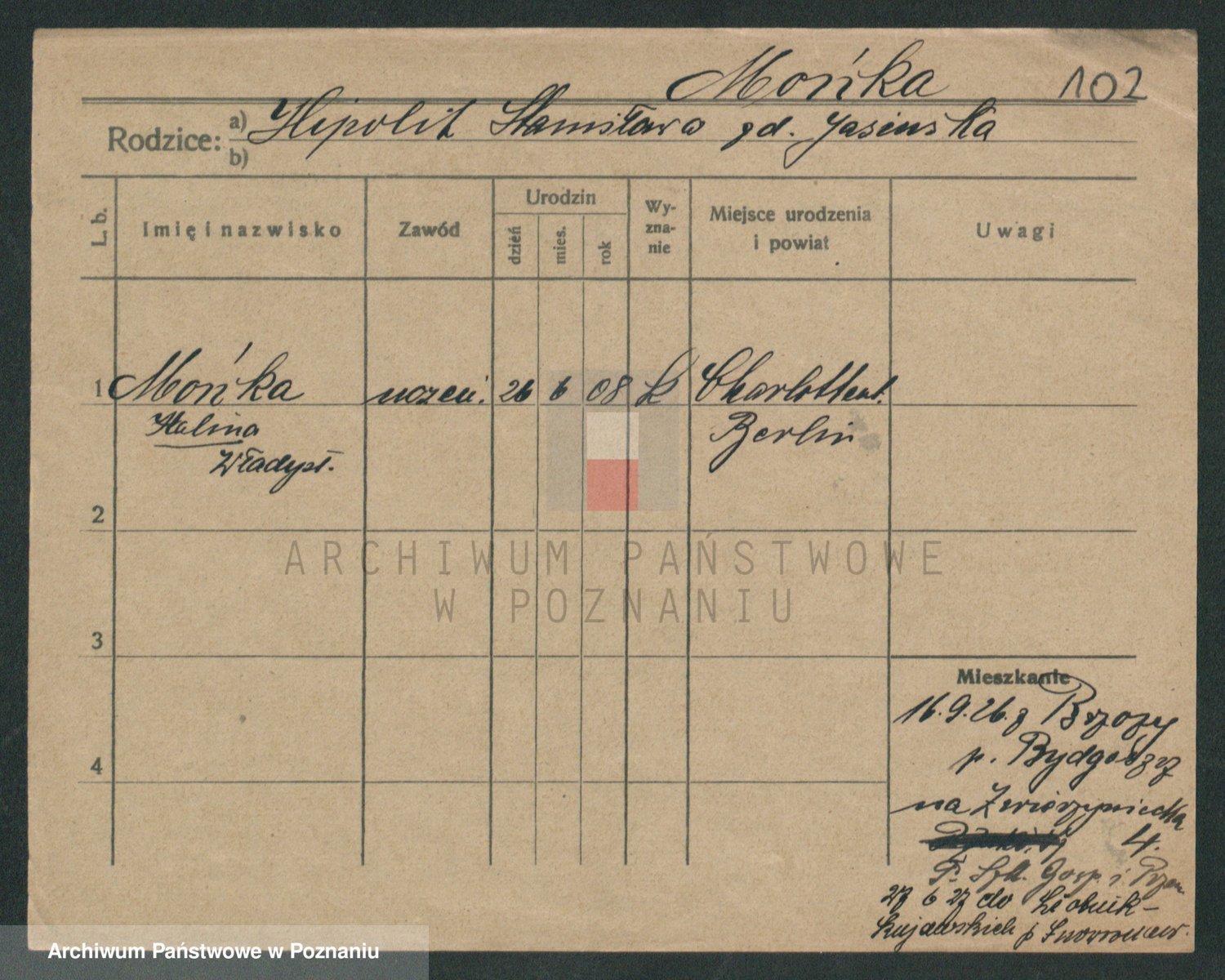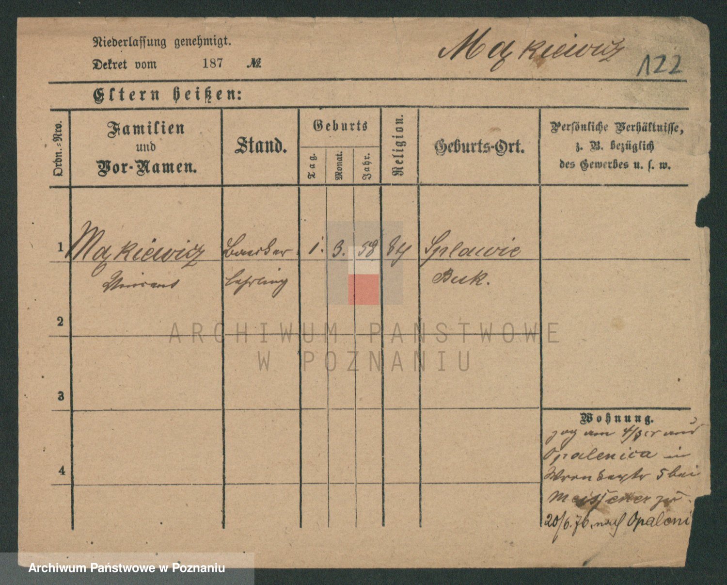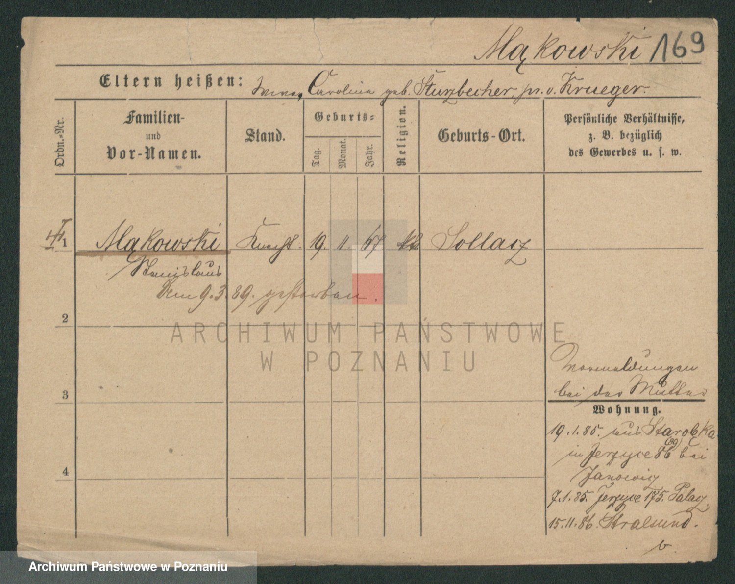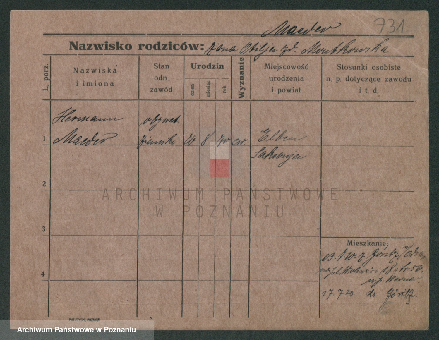 Podgląd karty osobowej dostępny jest po kliknięciu na nazwisko lub ikonkę karty. Można dokonywać powiększenia (ikony na górze) lub przechodzić między kolejnymi skanami (strzałki po bokach).