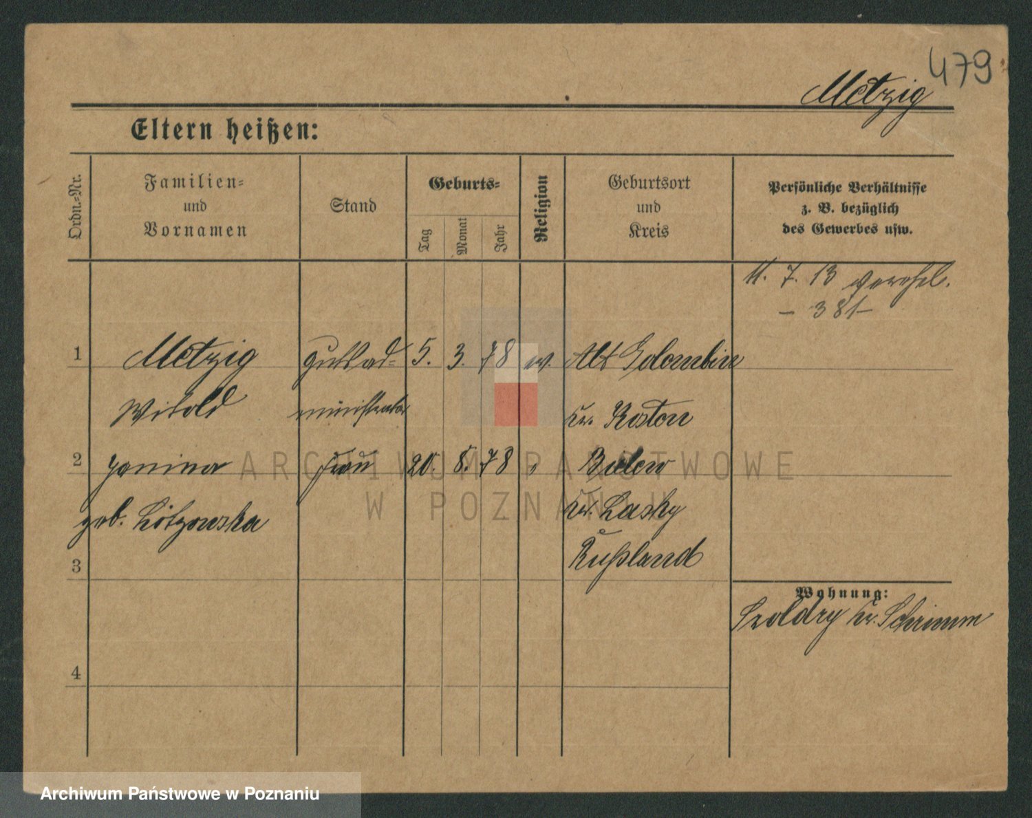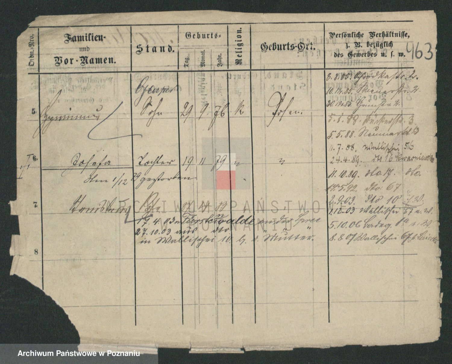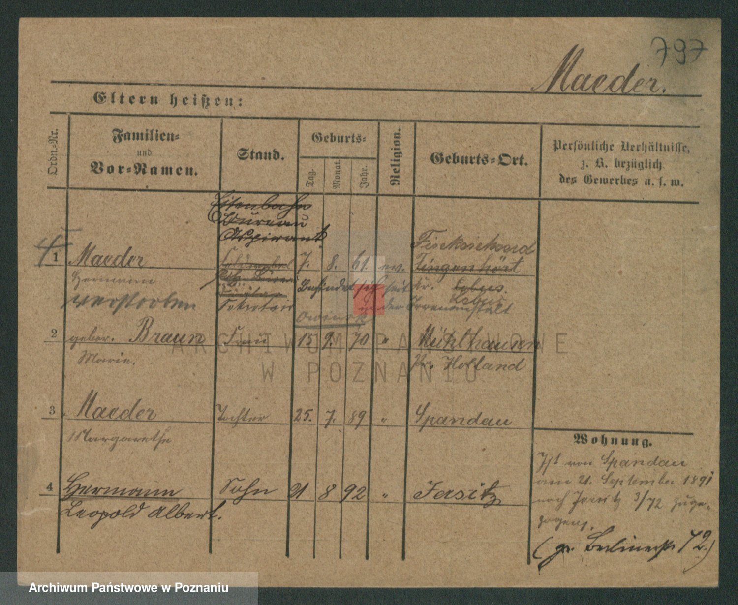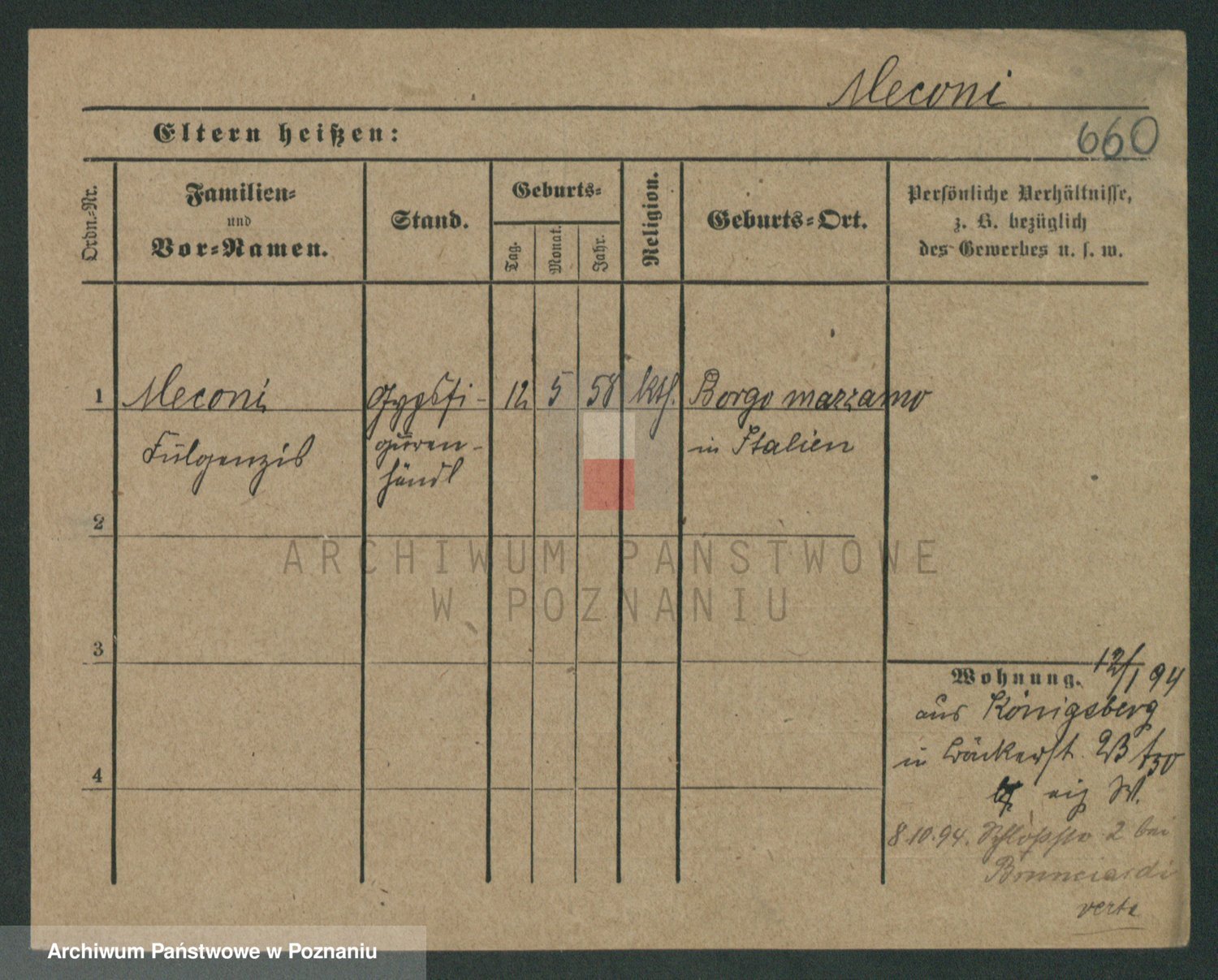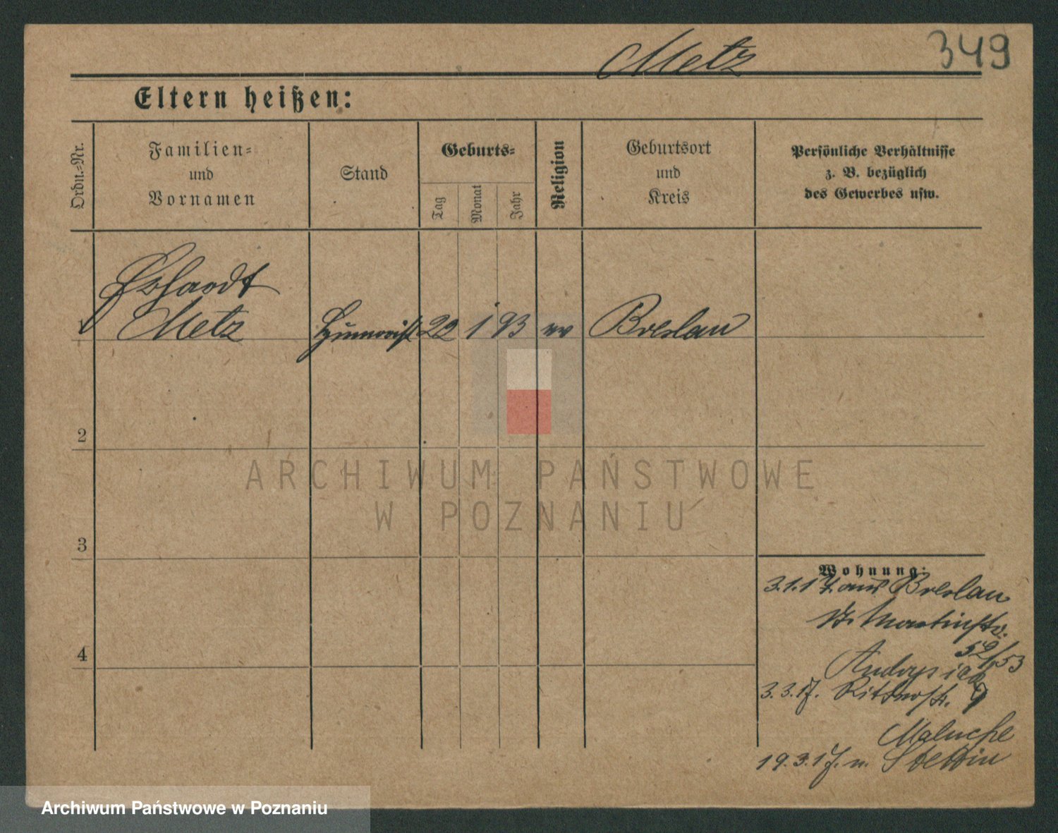 Podgląd karty osobowej dostępny jest po kliknięciu na nazwisko lub ikonkę karty. Można dokonywać powiększenia (ikony na górze) lub przechodzić między kolejnymi skanami (strzałki po bokach).