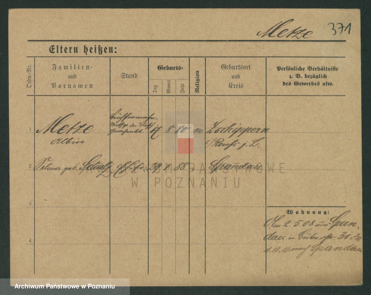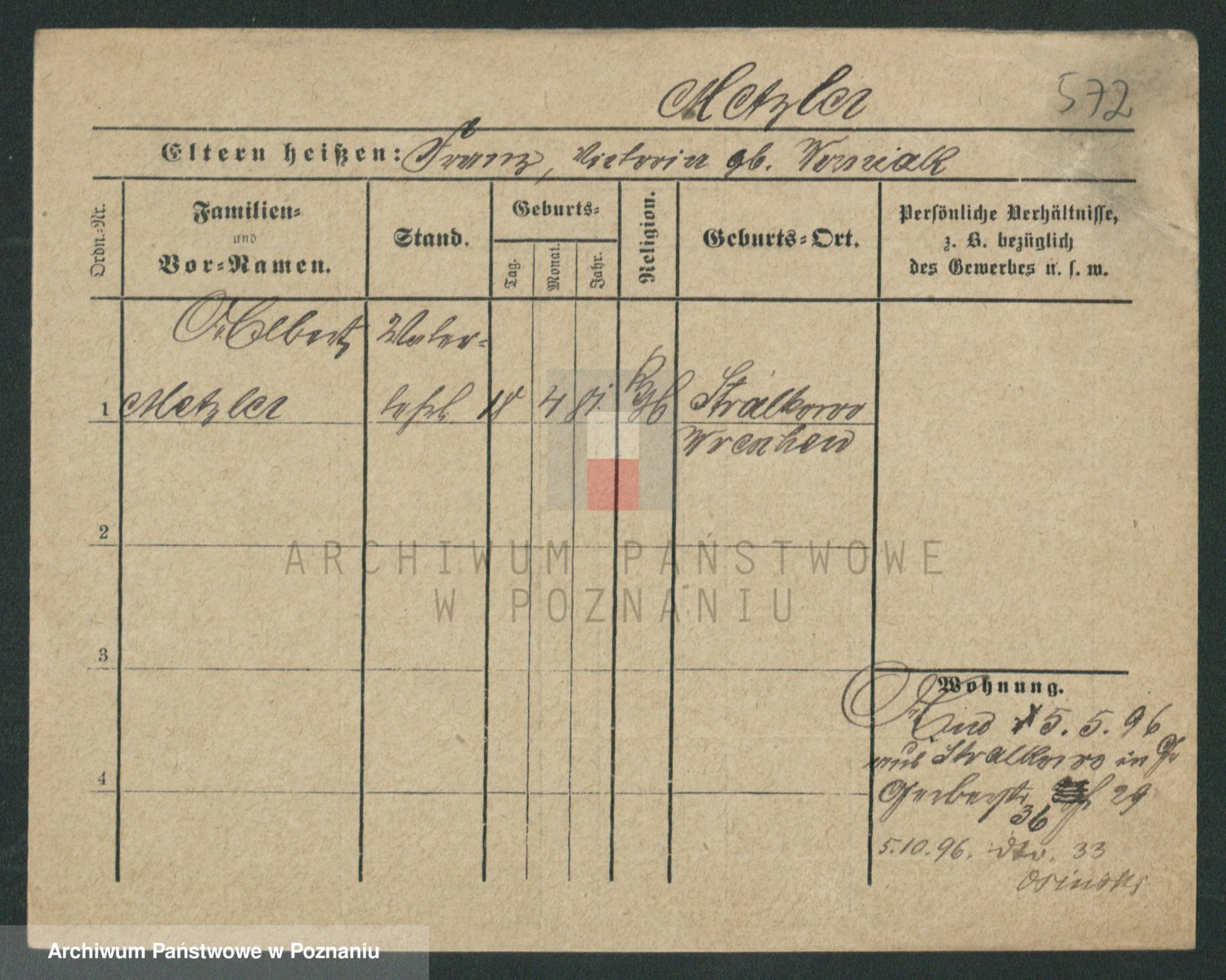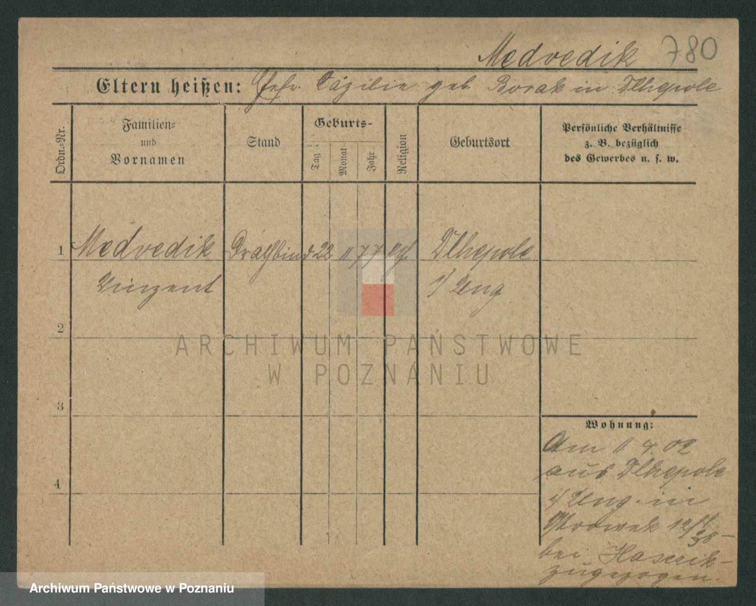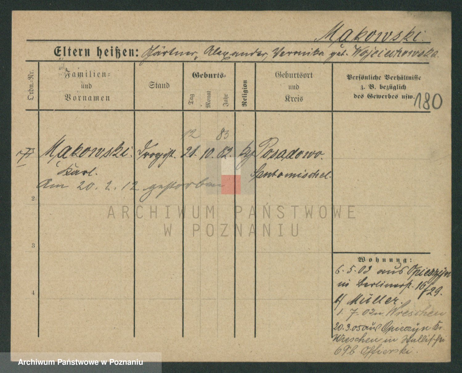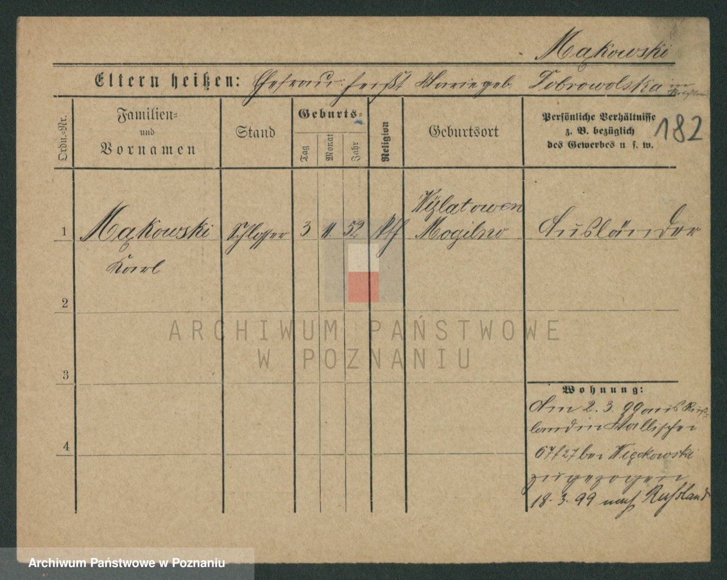 Podgląd karty osobowej dostępny jest po kliknięciu na nazwisko lub ikonkę karty. Można dokonywać powiększenia (ikony na górze) lub przechodzić między kolejnymi skanami (strzałki po bokach).