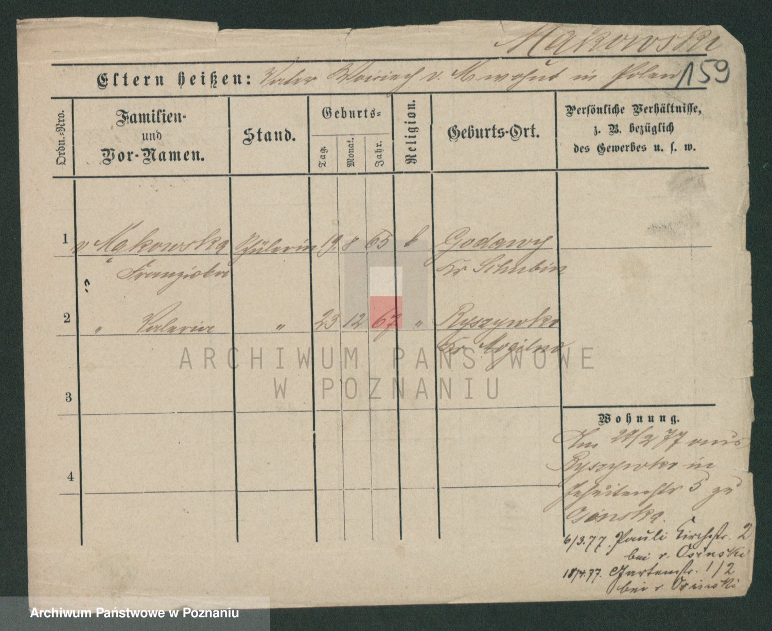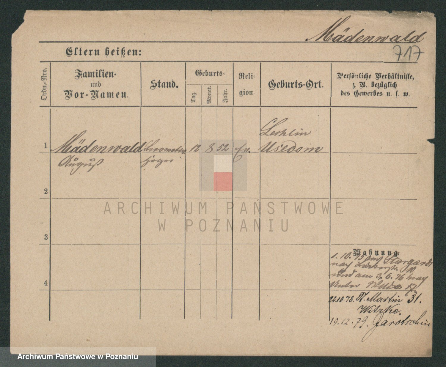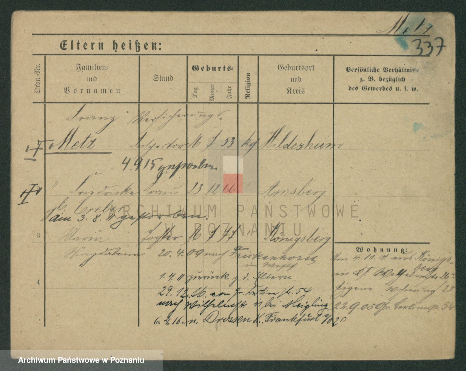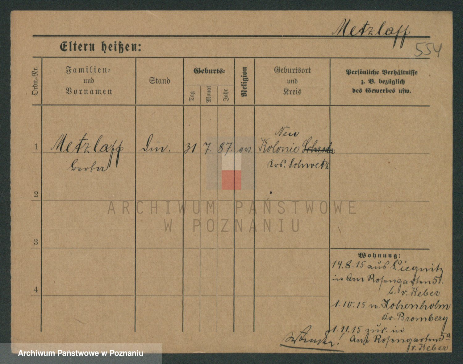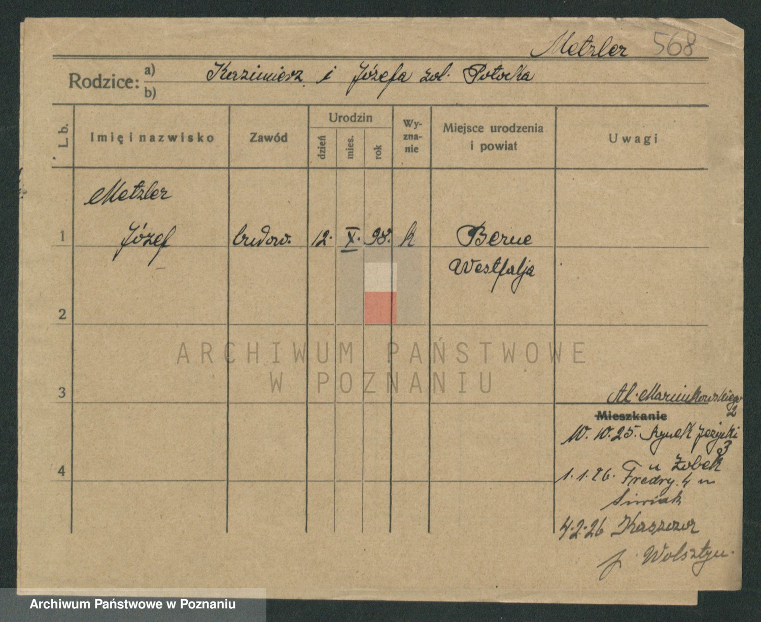 Podgląd karty osobowej dostępny jest po kliknięciu na nazwisko lub ikonkę karty. Można dokonywać powiększenia (ikony na górze) lub przechodzić między kolejnymi skanami (strzałki po bokach).