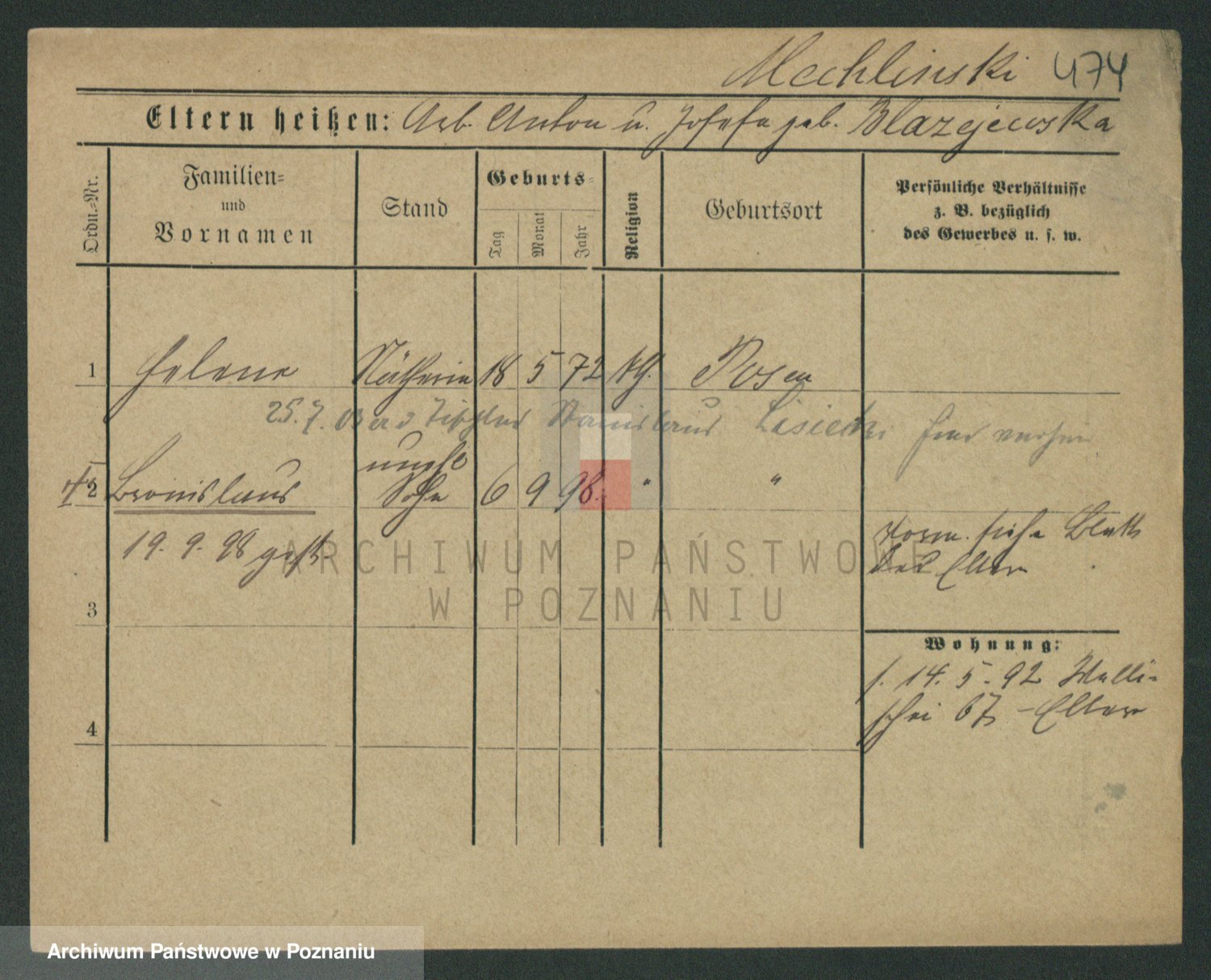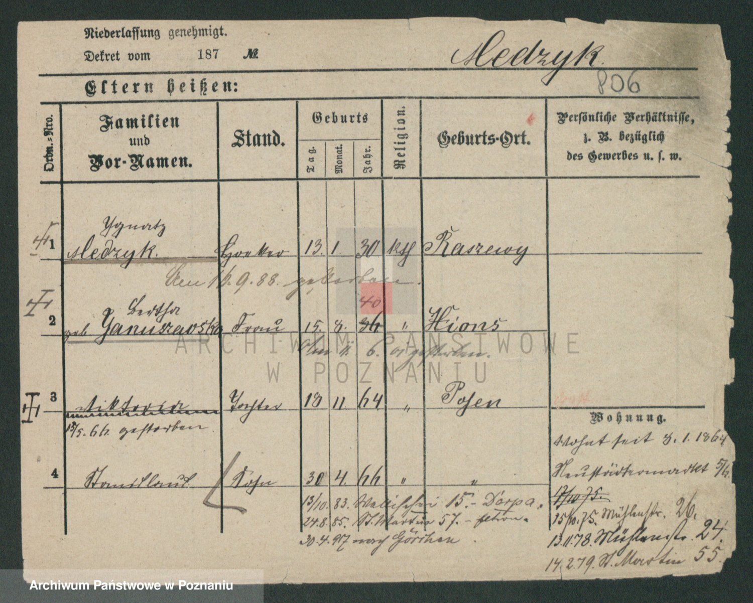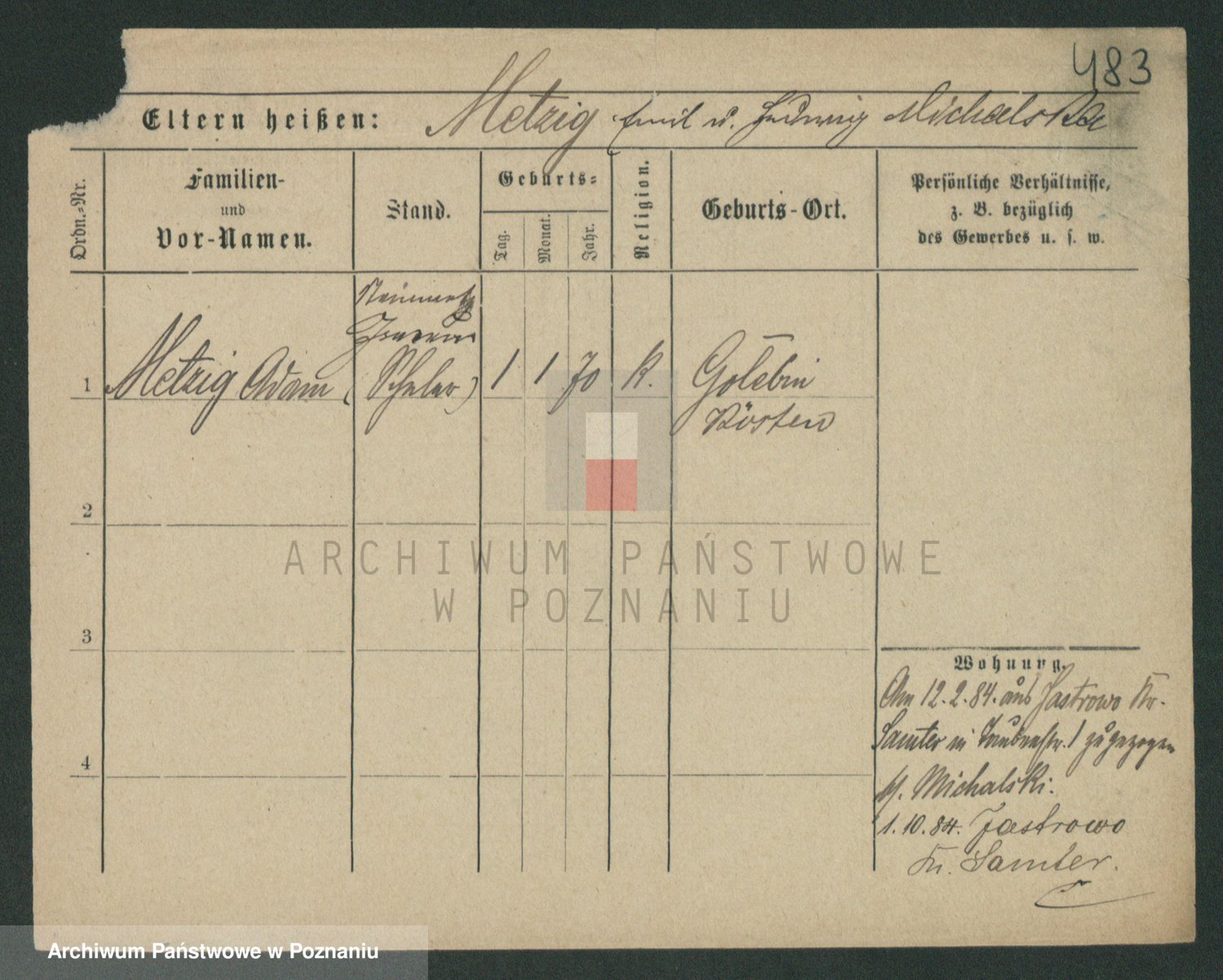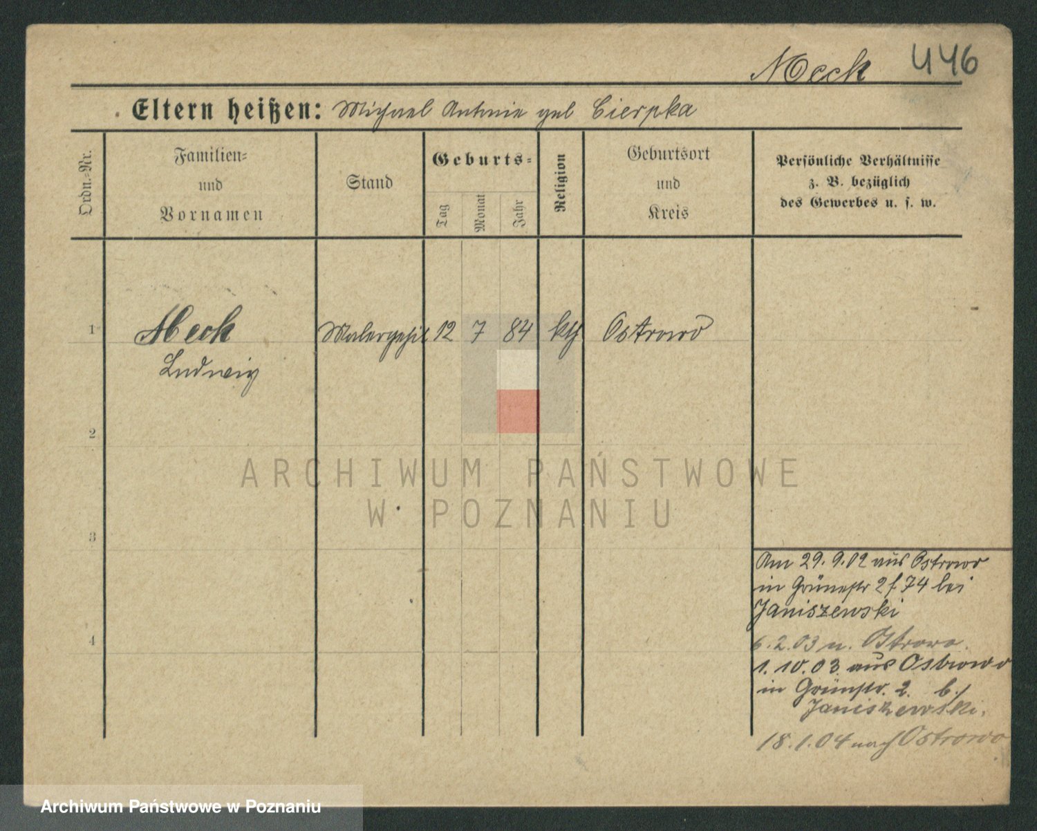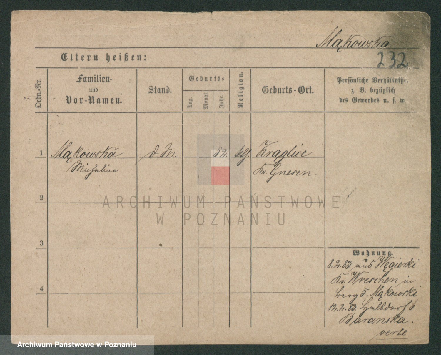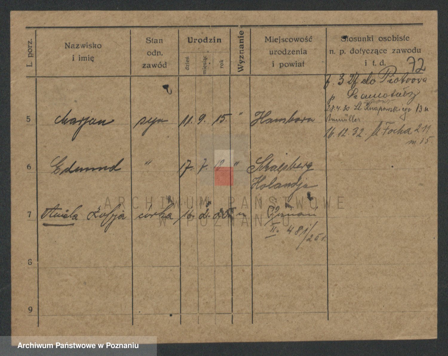 Podgląd karty osobowej dostępny jest po kliknięciu na nazwisko lub ikonkę karty. Można dokonywać powiększenia (ikony na górze) lub przechodzić między kolejnymi skanami (strzałki po bokach).