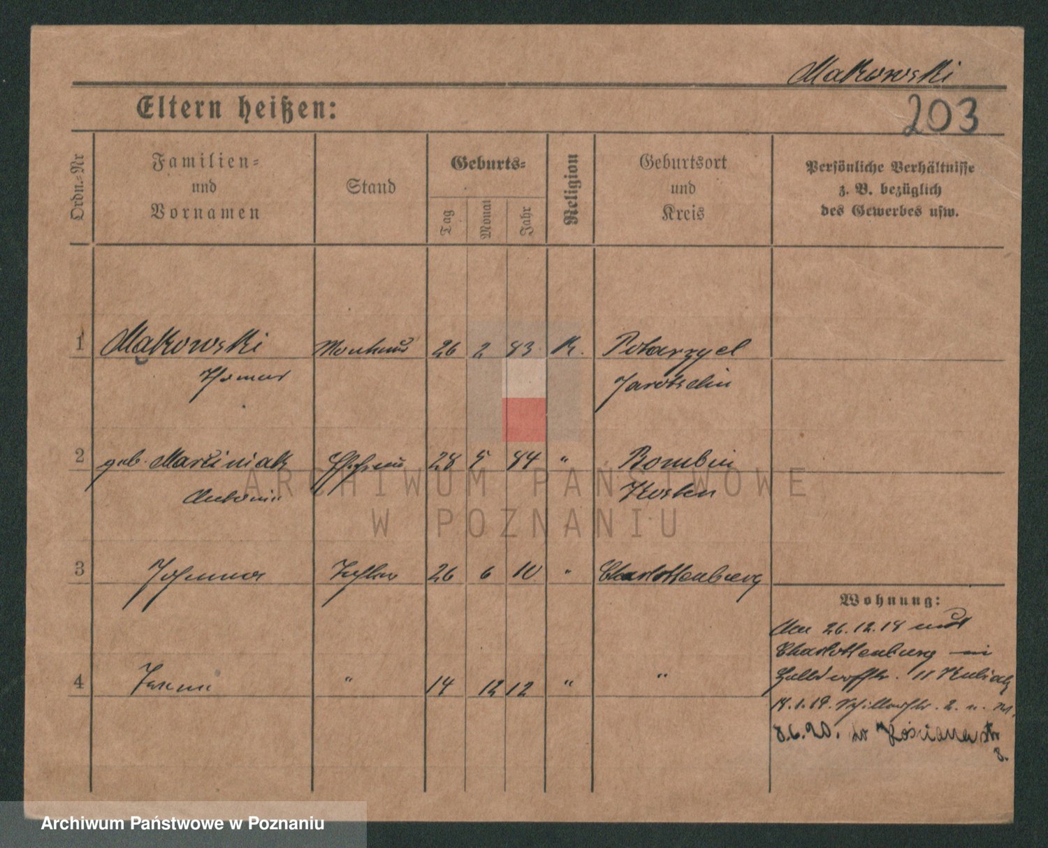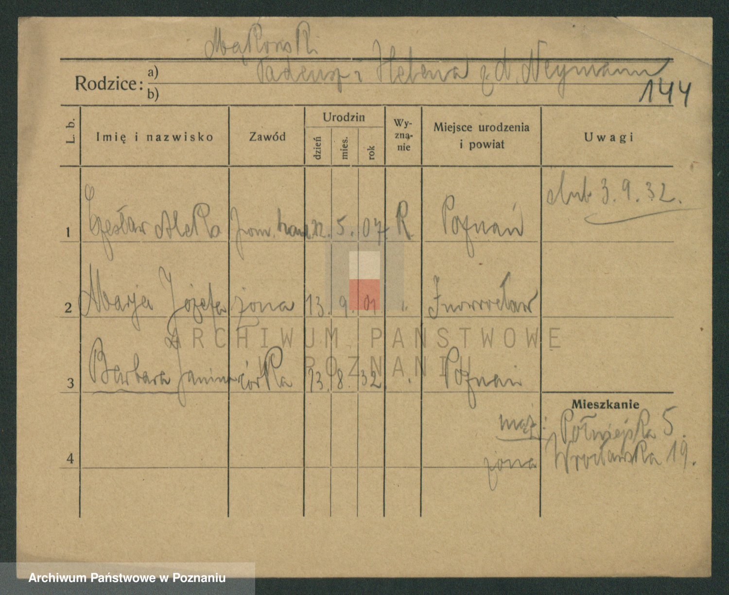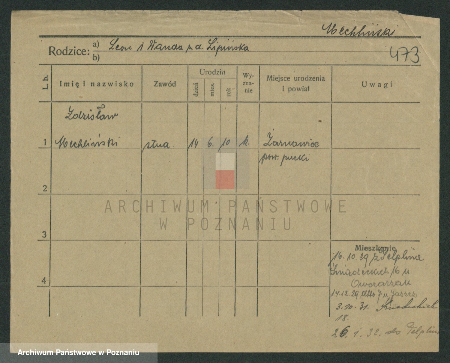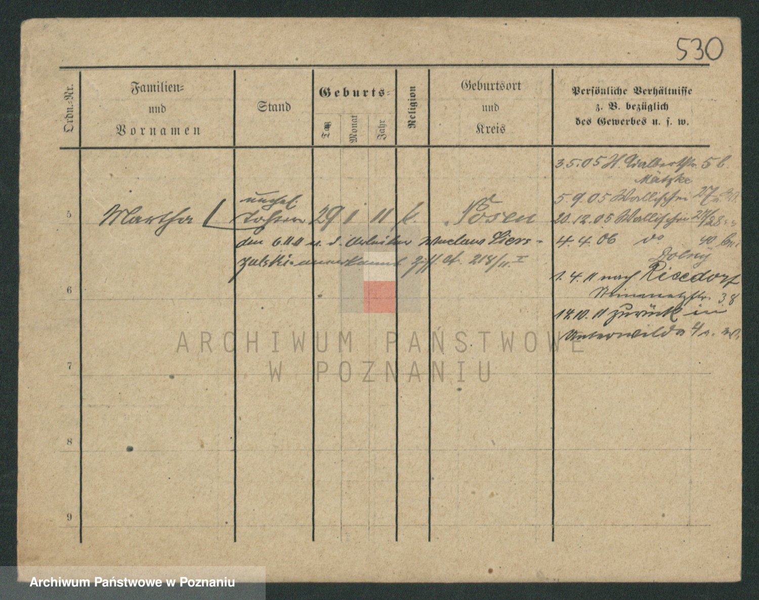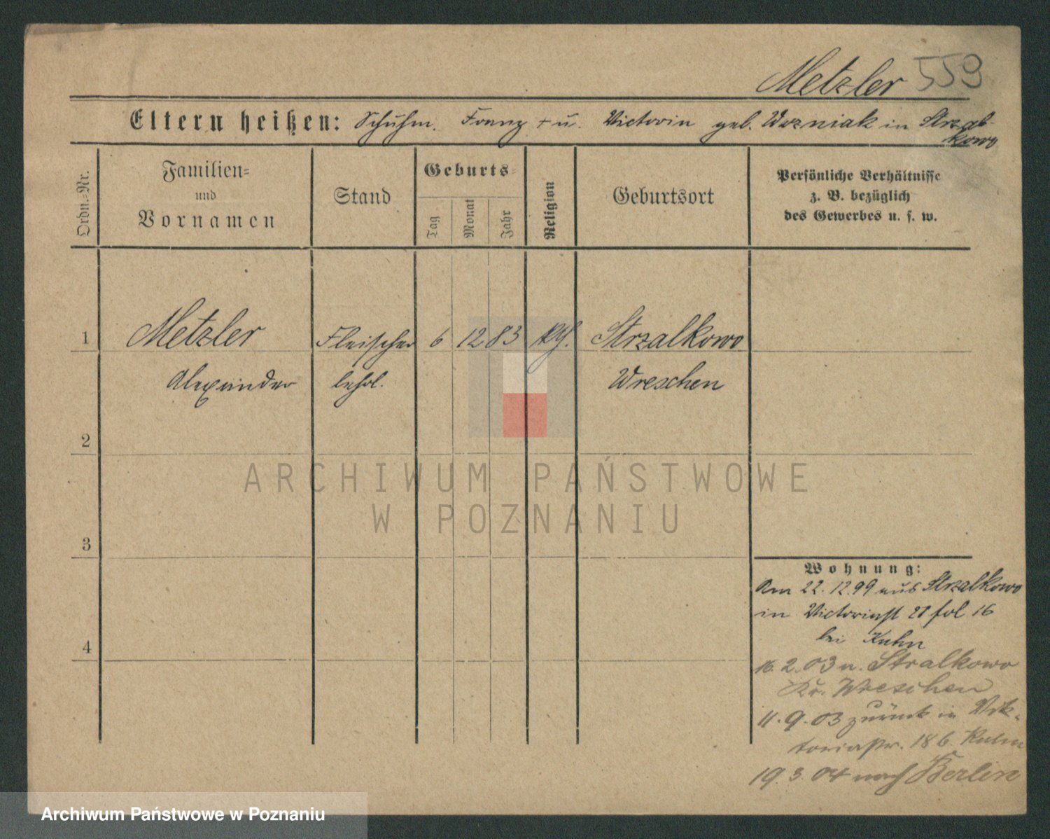 Podgląd karty osobowej dostępny jest po kliknięciu na nazwisko lub ikonkę karty. Można dokonywać powiększenia (ikony na górze) lub przechodzić między kolejnymi skanami (strzałki po bokach).