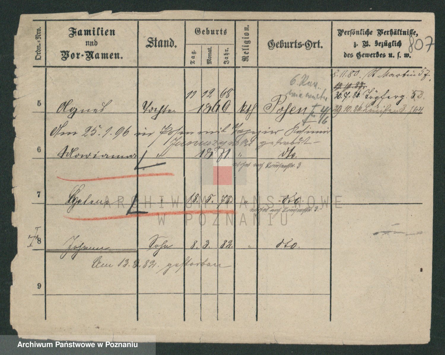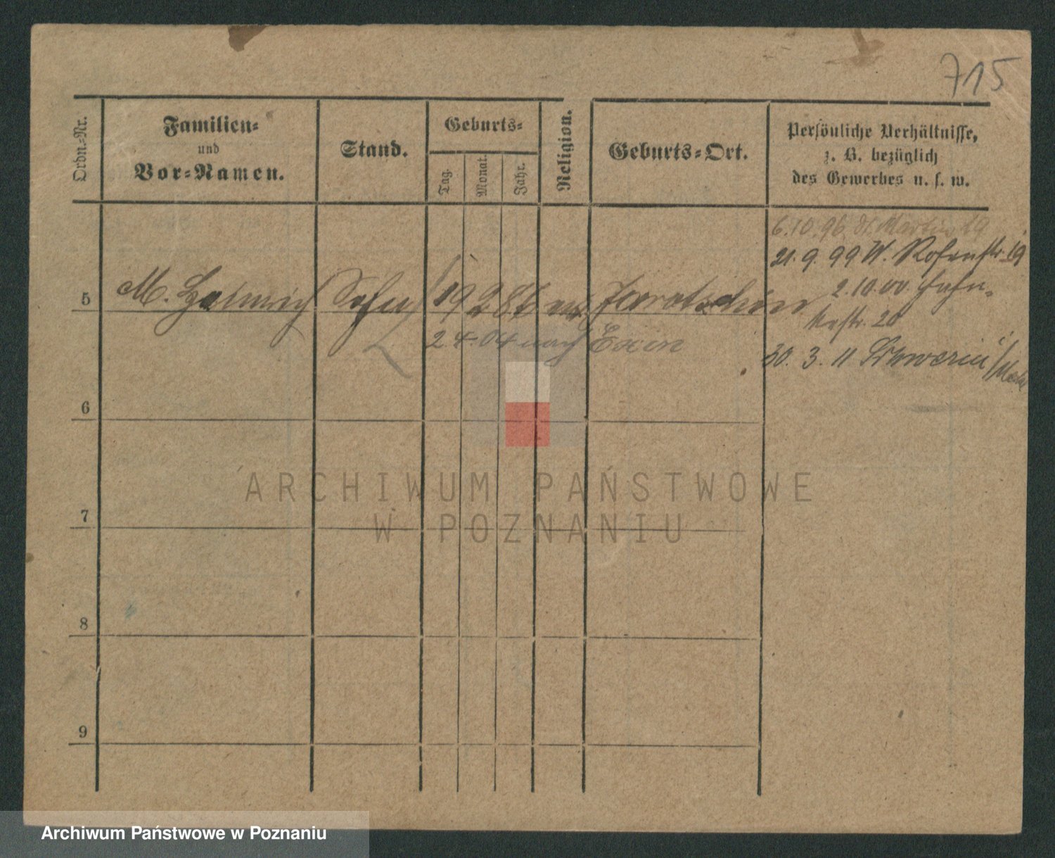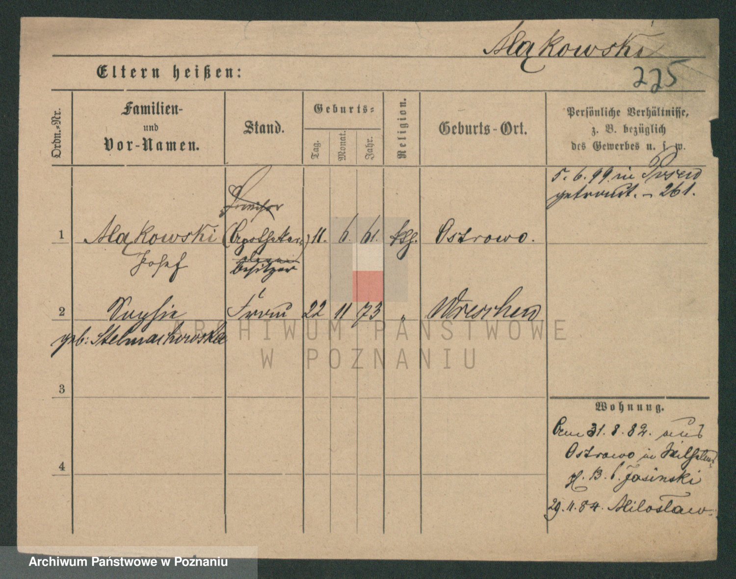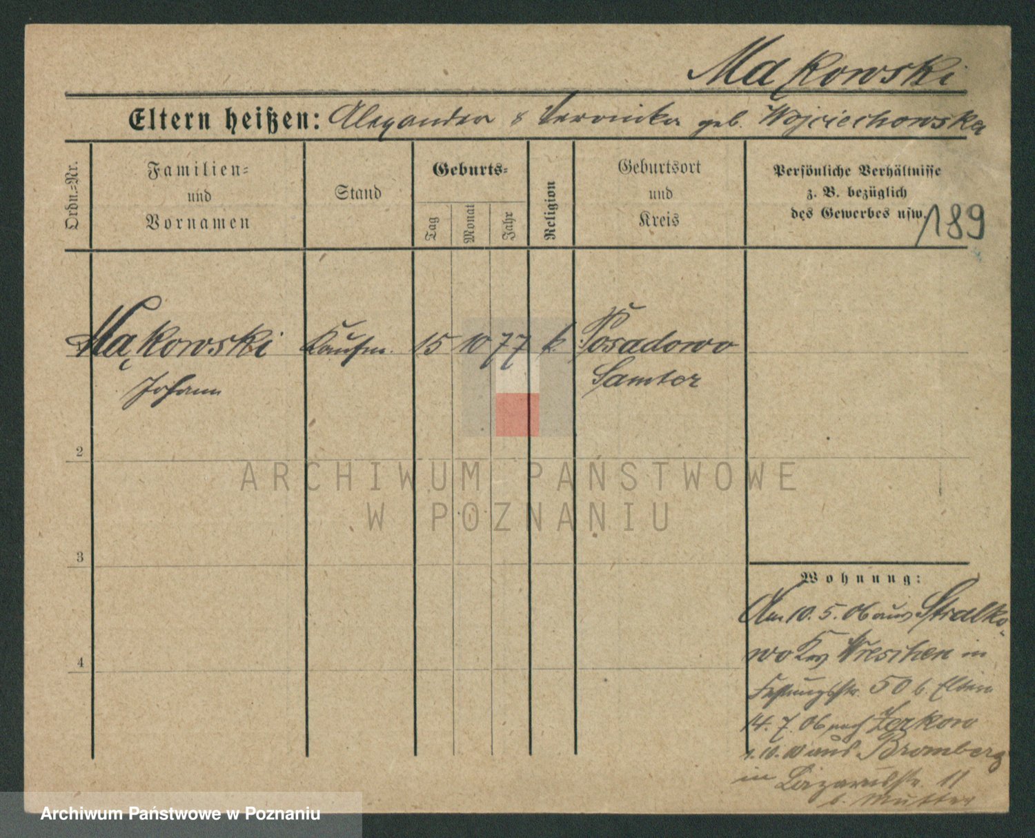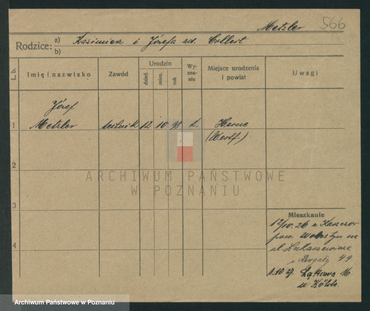 Podgląd karty osobowej dostępny jest po kliknięciu na nazwisko lub ikonkę karty. Można dokonywać powiększenia (ikony na górze) lub przechodzić między kolejnymi skanami (strzałki po bokach).